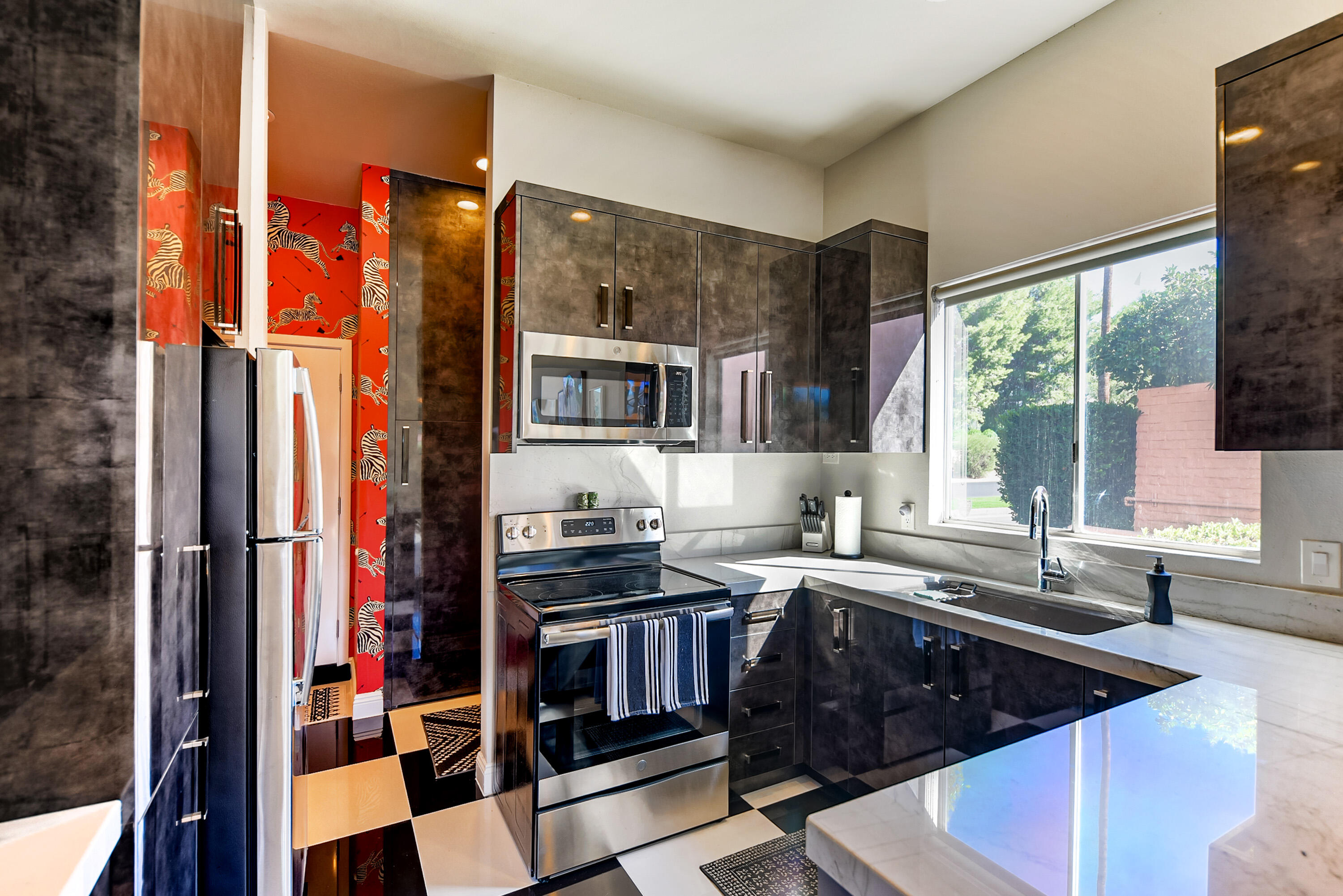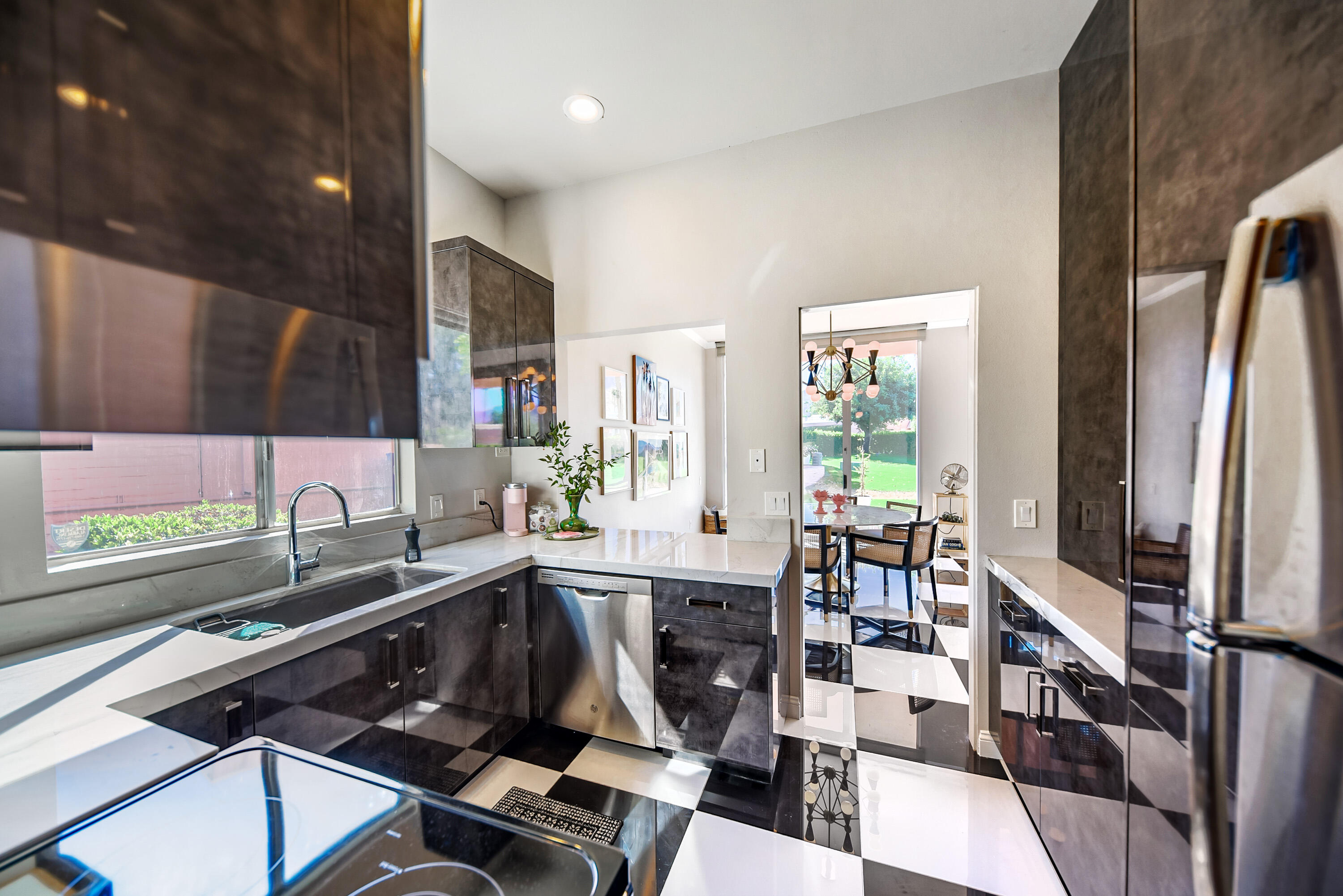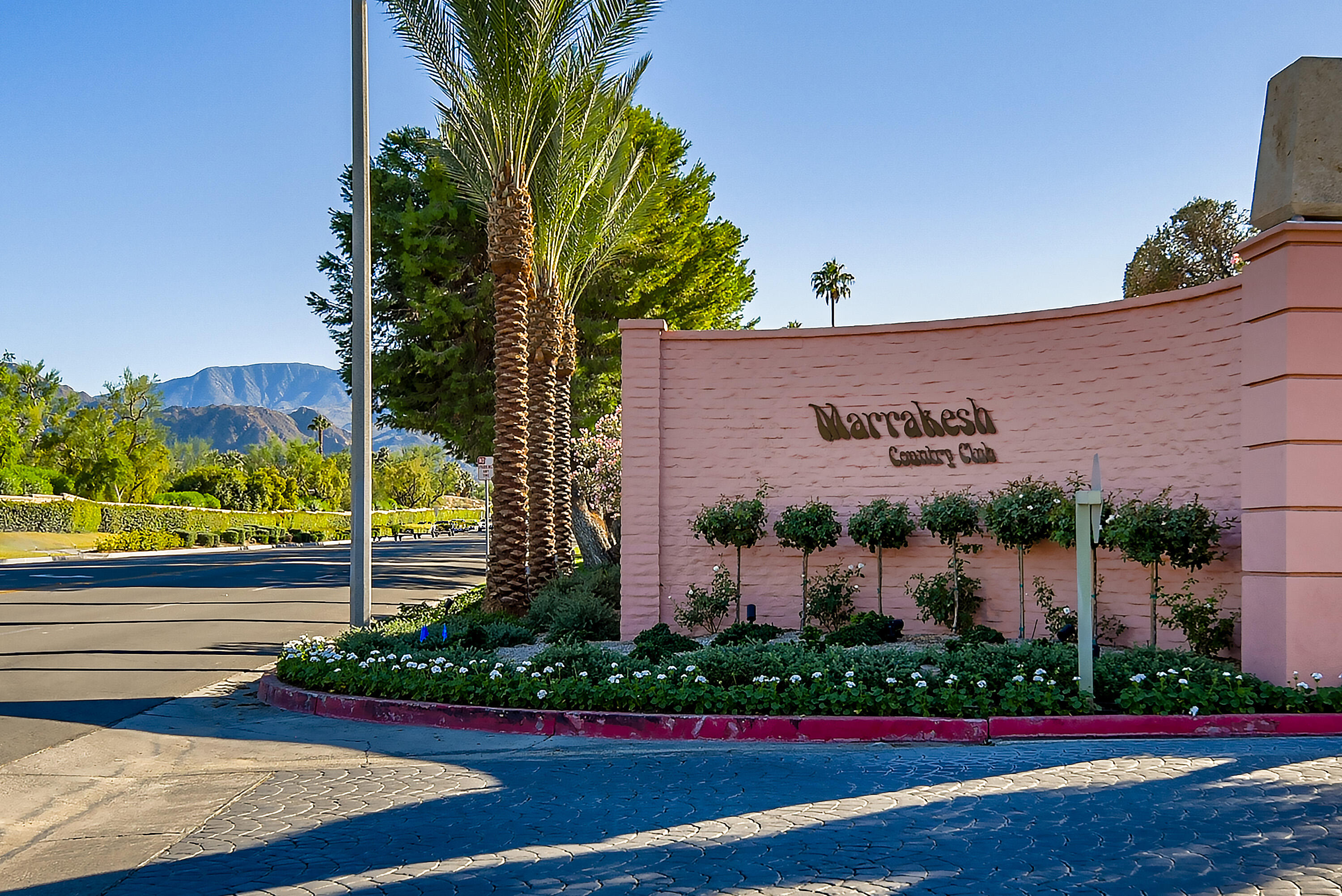 Welcome to Marrakesh Country Club! This beautiful villa offers Western mountain views and a private setting on the greenbelt. This home has been renovated and customized with striking black and white porcelain tile floors, iconic Scalamandre zebra wallpaper, wonderful laminated goat skin cabinets and Turkish stone counters in the kitchen. The luxurious bathrooms feature glass showers, stone counters and indirectly lighted mirrors. The extra spacious Master Suite has a generous walk-in closet. The tall double doors greet you into the large living room and an adjacent dining area with direct patio access for an exceptional indoor-outdoor desert resort living experience. The home also features a private front patio. Perfectly situated close to the clubhouse and saltwater pool. Marrakesh was designed to be special and to distinguish itself from other desert golf clubs. Located just minutes away from the famed El Paseo with world-class shopping and dining. This wonderful home is waiting for its winter guests!Interested in this Listing?