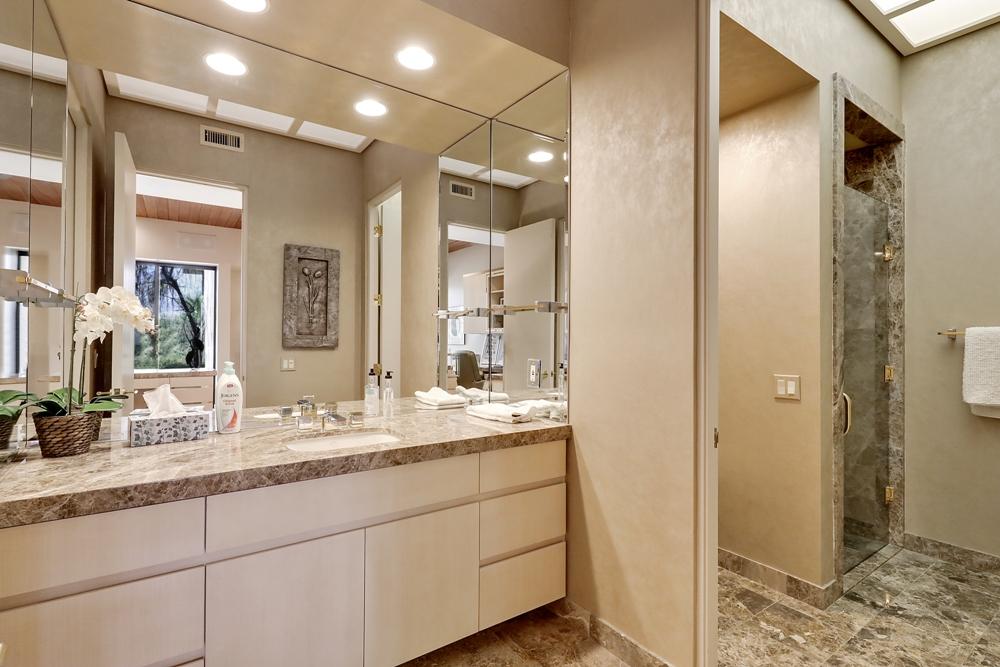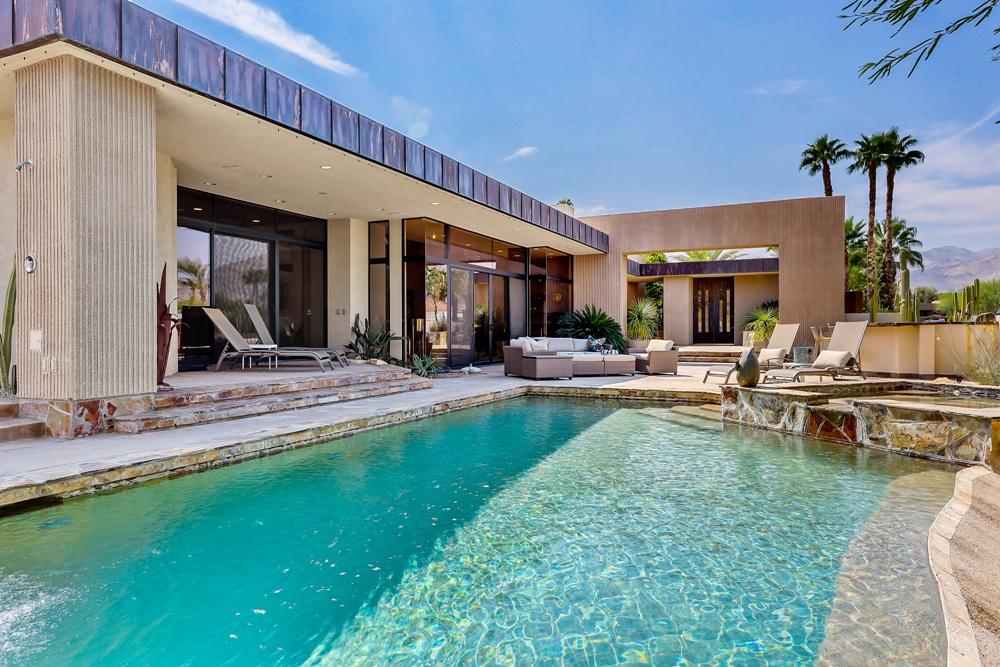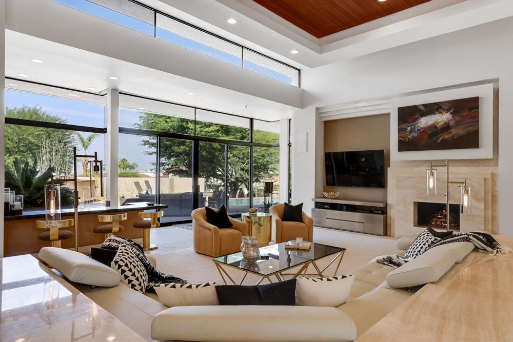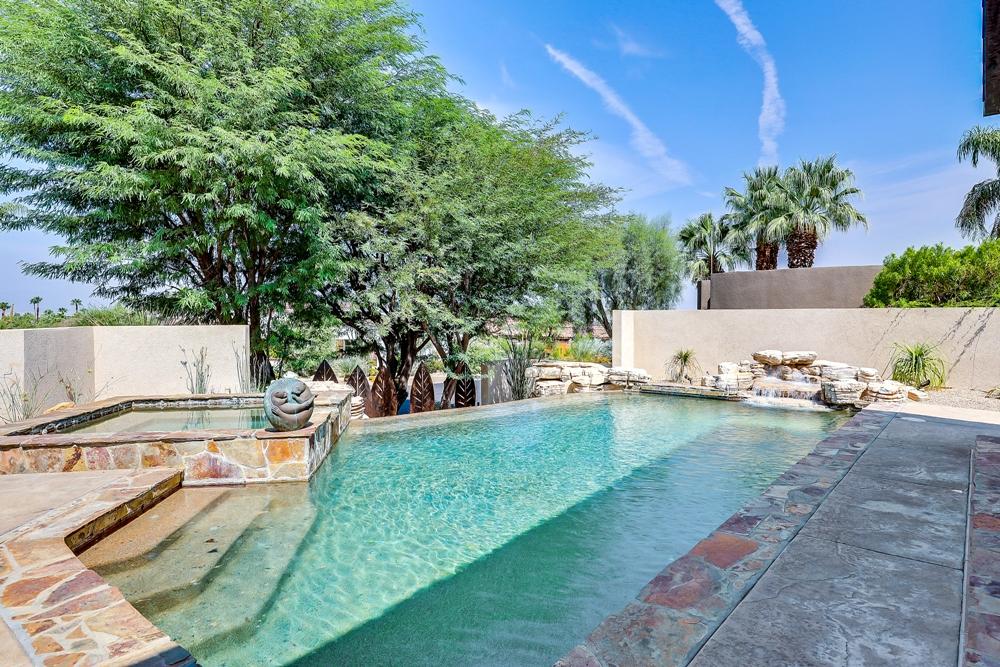 Elevate your vacation lifestyle at this stunning contemporary custom home located in a prestigious neighborhood of 20,000 sq. ft. lots behind the gates of the awesome Ironwood Country Club. You will be impressed even before stepping inside. The extraordinary entry to home boasts privacy and panoramic mountain views and a huge outdoor entertaining area -- custom water features, infinity saltwater pool, spa, outdoor kitchen, dramatic landscape lighting and mountain views. The backyard has another large entertaining space with a BBQ island, custom fire pit and more beautiful mountain views. That fun spot is surrounded with lush landscaping and lawn. The dramatic open floor plan is light filled and its walls of windows offer breathtaking mountain views everywhere you look. The great room with its fireplace, bar and large media center is open to the kitchen that offers casual eating at the breakfast bar or in the adjacent formal dining room with amazing views.The master bedroom wing includes an adjacent office with gorgeous built-in cabinetry while the guest bedroom wing is on the opposite side of house and hosts two additional bedrooms, one with private entry.Make this your HOLIDAY HOME!Interested in this Listing?