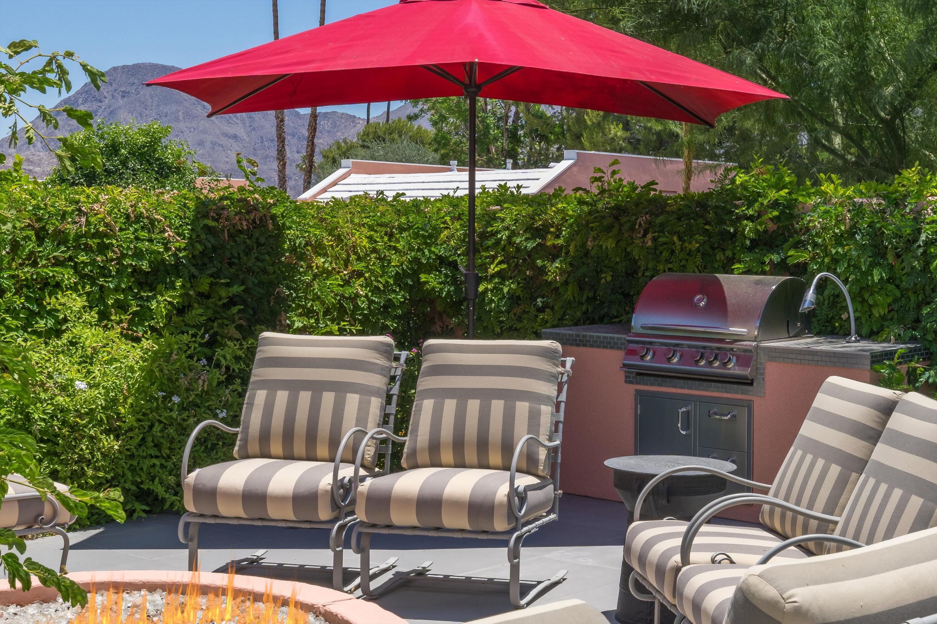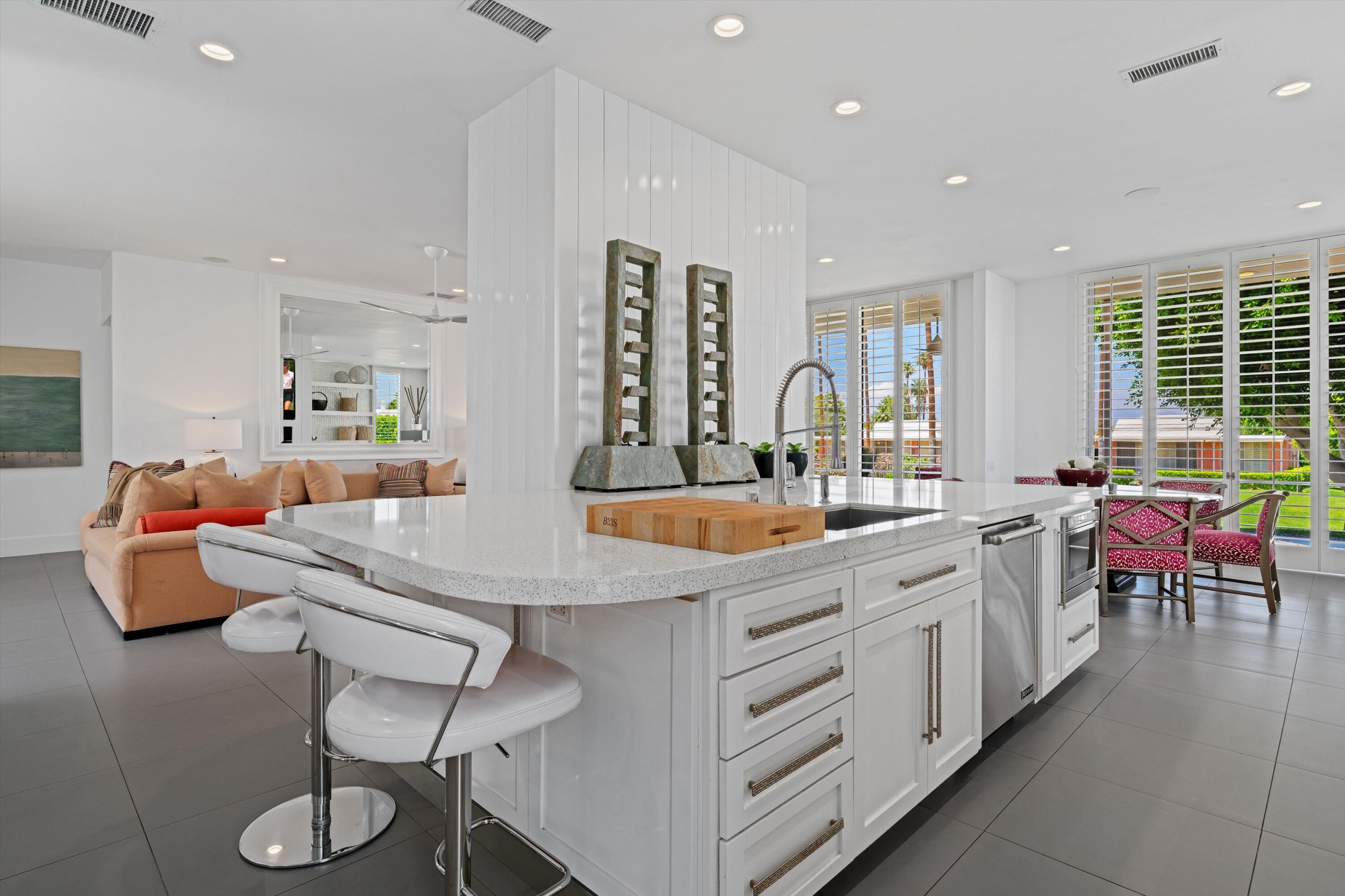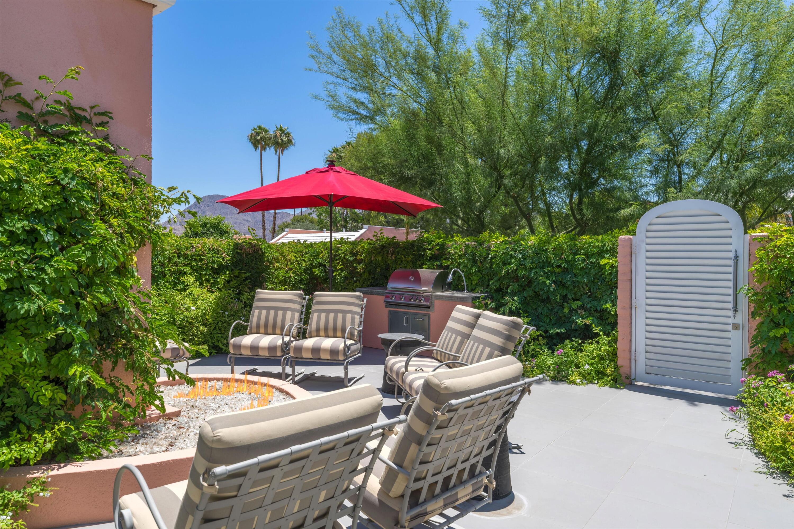 RENTED November, 2024 through April 2025. This gorgeous home on an elevated corner lot is now offered as a seasonal rental and has everything you've been looking for your luxurious desert vacation experience. Updated and upgraded to perfection, this home delivers all trends of the present. Modern living space features an open floor plan with towering ceilings and walls of glass opening onto the back terrace with a wonderful view of the mountains and a sparkling community pool. State-of-the-art open concept gourmet kitchen showcases custom stonework, an oversized island, breakfast bar, new cabinetry and a striking glass tile backsplash. All 3 bedrooms have direct patio access for an exceptional indoor-outdoor desert resort living experience. Completely reimagined primary suite includes a luxurious spa-style bathroom, dual vanity, oversized curbless shower, a separate soaking tub and not just one, but TWO walk-in closets with built-ins! Equally spacious guest bedroom with a well-appointed ensuite bathroom will delight your guests. 3rd bedroom is set up as an amazing office with a built-in desk and has a king-size Murphy bed to accommodate your extended family. Your lavish vacation continues as you relax in a very private front courtyard with a fire pit and a built-in gas BBQ. Nestled in the iconic Marrakesh Country Club, just minutes away from the famed El Paseo. Renter seasonal priviledges for use of the club facilities are available and may be added with additional cost.Interested in this Listing?