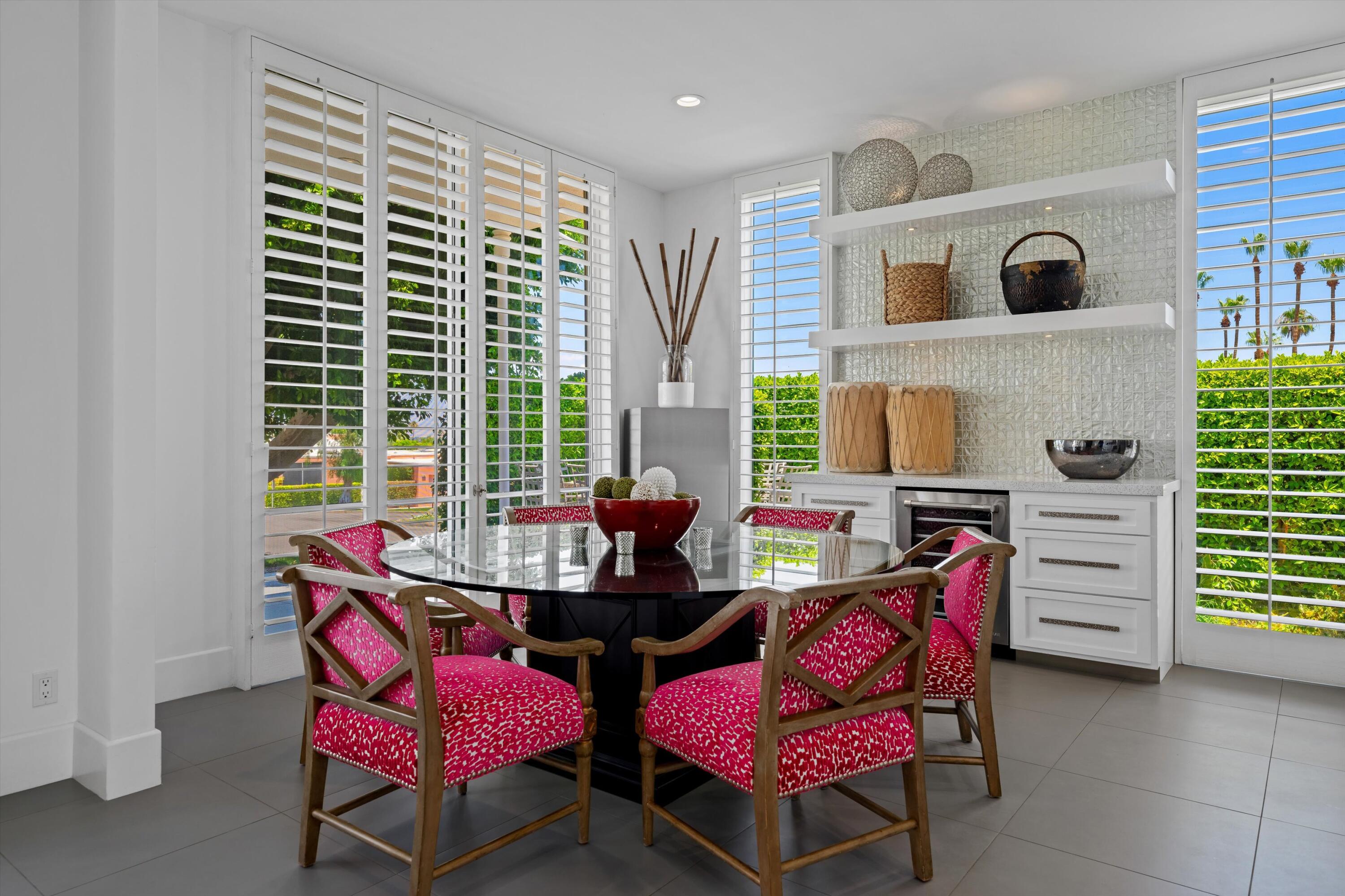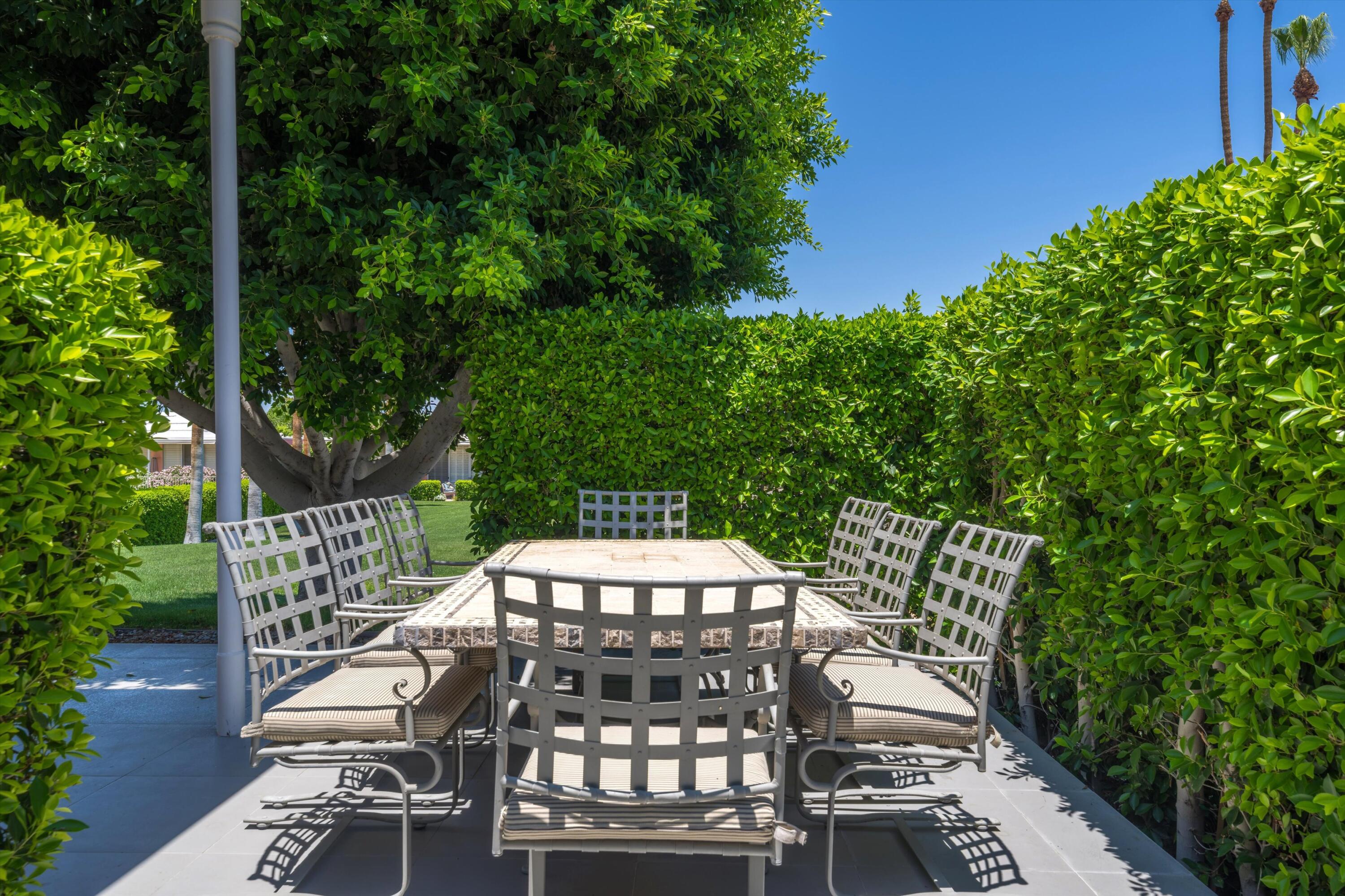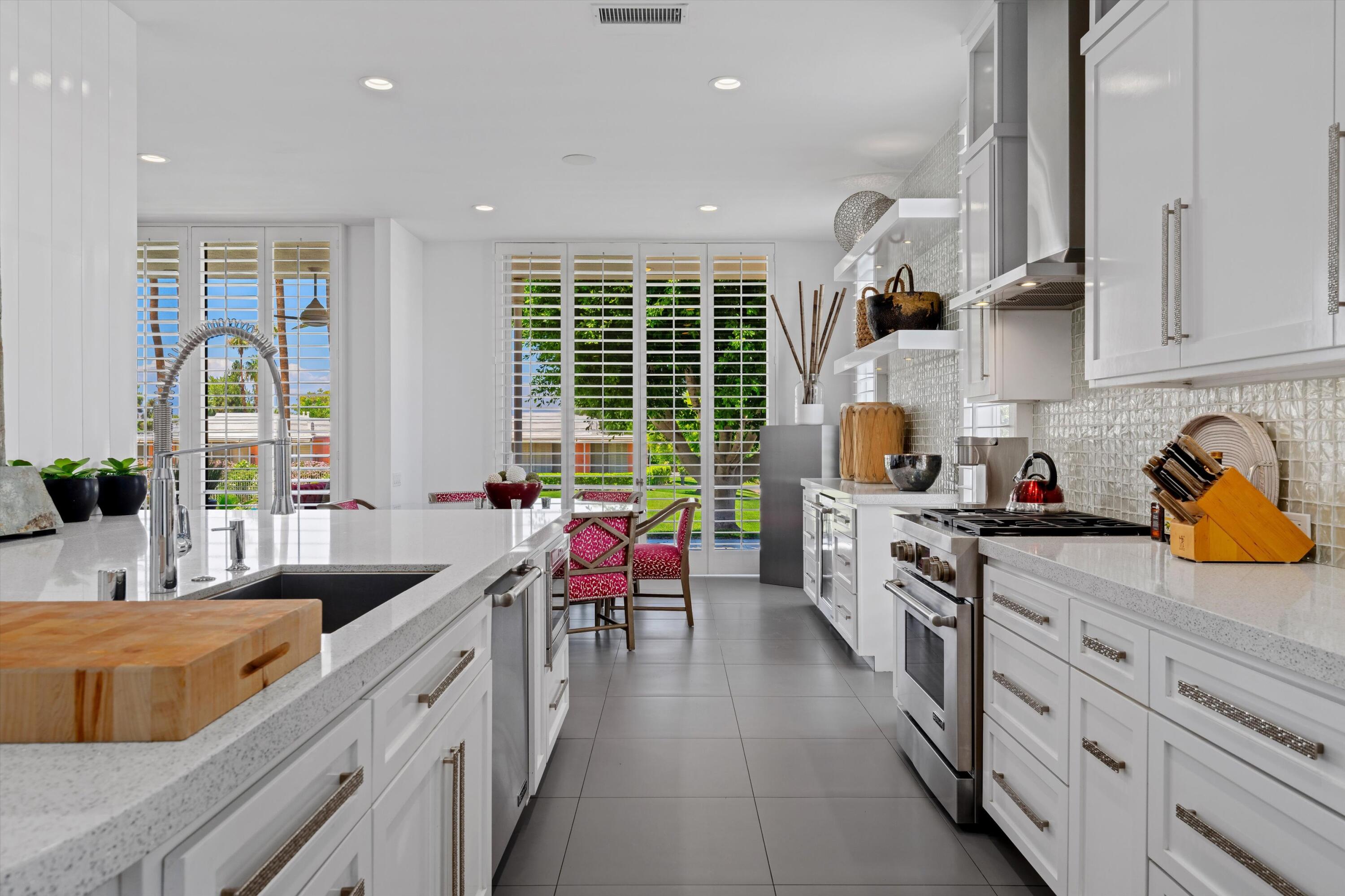 RENTED November, 2024 through April 2025. This gorgeous home on an elevated corner lot is now offered as a seasonal rental and has everything you've been looking for your luxurious desert vacation experience. Updated and upgraded to perfection, this home delivers all trends of the present. Modern living space features an open floor plan with towering ceilings and walls of glass opening onto the back terrace with a wonderful view of the mountains and a sparkling community pool. State-of-the-art open concept gourmet kitchen showcases custom stonework, an oversized island, breakfast bar, new cabinetry and a striking glass tile backsplash. All 3 bedrooms have direct patio access for an exceptional indoor-outdoor desert resort living experience. Completely reimagined primary suite includes a luxurious spa-style bathroom, dual vanity, oversized curbless shower, a separate soaking tub and not just one, but TWO walk-in closets with built-ins! Equally spacious guest bedroom with a well-appointed ensuite bathroom will delight your guests. 3rd bedroom is set up as an amazing office with a built-in desk and has a king-size Murphy bed to accommodate your extended family. Your lavish vacation continues as you relax in a very private front courtyard with a fire pit and a built-in gas BBQ. Nestled in the iconic Marrakesh Country Club, just minutes away from the famed El Paseo. Renter seasonal priviledges for use of the club facilities are available and may be added with additional cost.Interested in this Listing?
