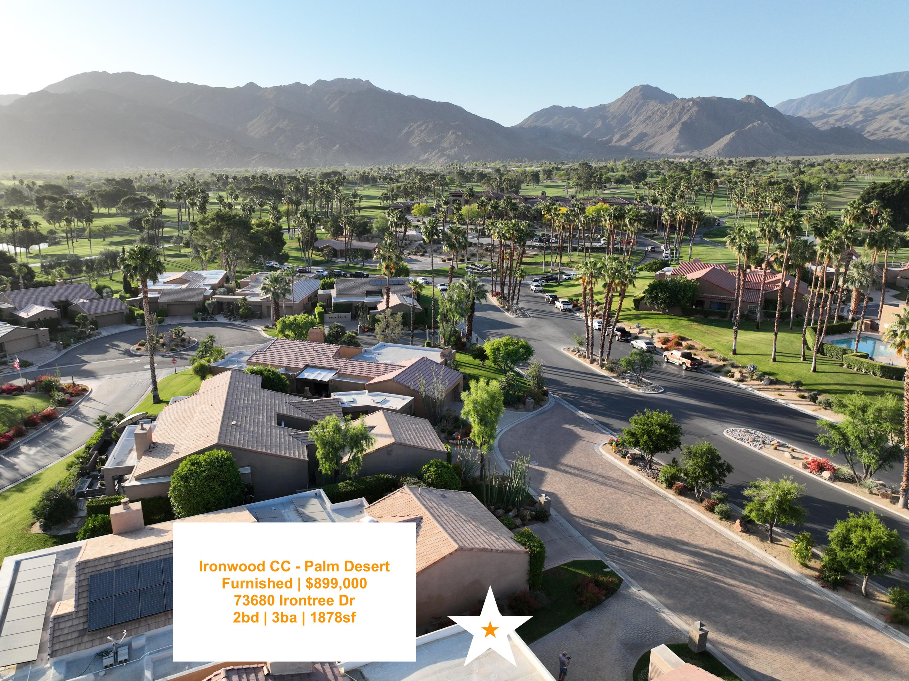 Don't miss this exceptional opportunity to spend the season in South Palm Desert Ironwood CC Community!Furnished and Move-in Ready, this Skyview Villa is the desert retreat you're looking for. Prime Location: Just minutes from El Paseo, renowned for its world-class shopping and dining, and surrounded by the beautiful Ironwood CommunityTravertine Floors and Soaring Ceilings: A sophisticated blend of elegance and modernity, perfect for entertaining or relaxingGourmet Kitchen: Equipped with top-of-the-line stainless Monogram appliances, a Viking range, warming drawer, breakfast bar, and wine refrigerator - a Chef's dream come true!Elegant Solid Core Interior Doors: 7.5ft doors add a touch of sophistication to this already impressive villaCozy Fireplaces: Unwind in front of the living room fireplace or in each of the en-suite bedroomsPrivate Patio: Enjoy the serene atmosphere on the north-facing patio, perfect for outdoor livingIronwood Country Club Amenities: 2 golf courses, fitness center, tennis and pickleball facilities, and an elegant Tuscan-style club - membership is separate and not included or required for rentalHOA IW#6: offers a community pool for enjoyment Rental rates vary as follows: $6500/mo - May through December and $7500/mo - January, February, March and April HOME IS NOT AVAILABLE January, February, March, April 2026Interested in this Listing?