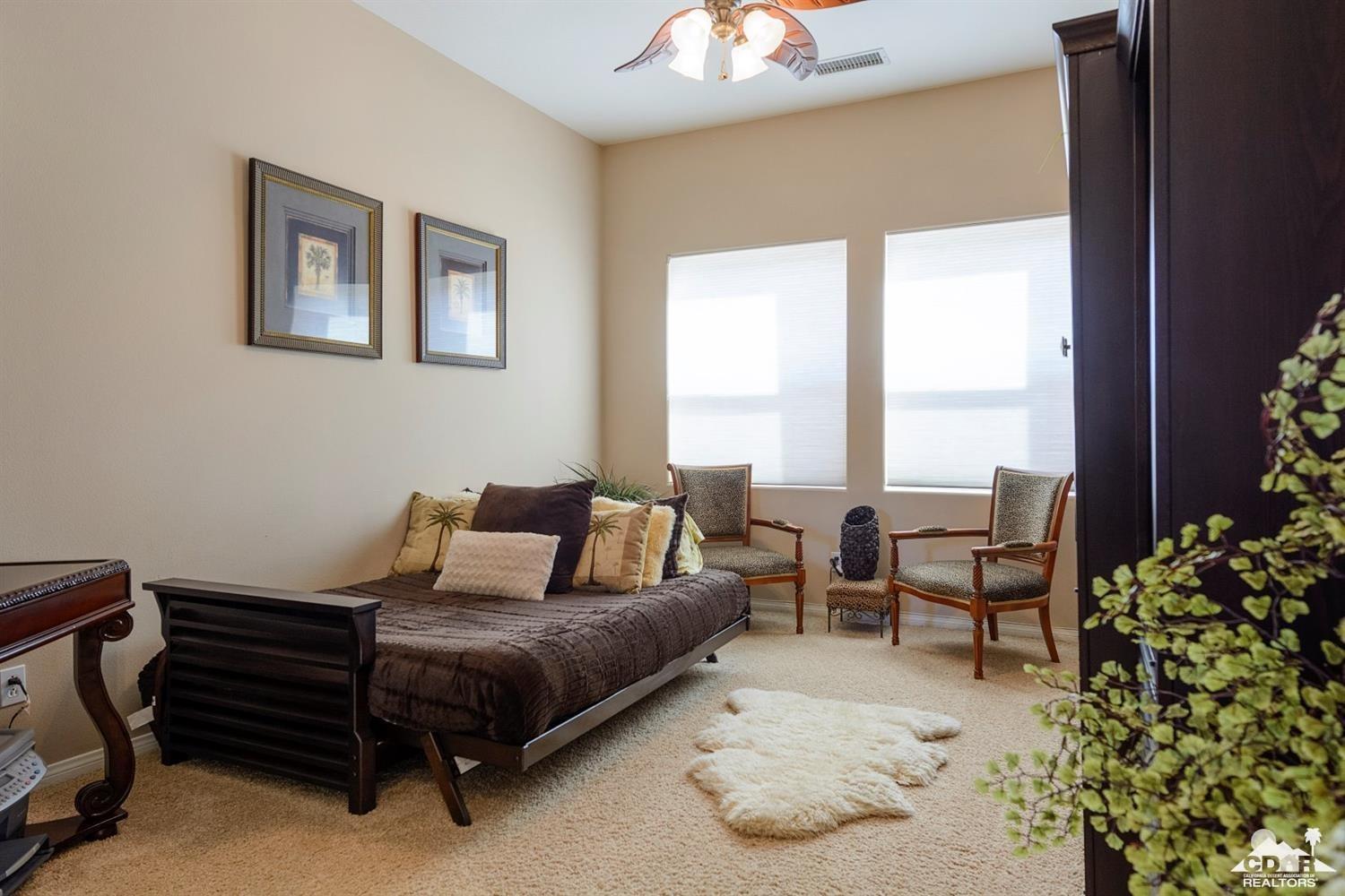 Furnished annual lease $5750mo tenant pays utilities. This a beautiful open floor plan. There 3 bedrooms + a den with futon which could easily be converted to a home office. 3 car garage. You will have a very private pool & spa. Granite island kitchen with stainless appliances, double ovens, gas cooktop, wine cooler. This open floor plan boasts two separate living areas and a formal entry. Fireplace. The primary bedroom has a Cal King bed, dual sinks, oval soaking tub, tile shower, huge walk-in closet and direct pool access. The guest bedrooms have queen beds. Interior laundry room. This home is located in a gated community minutes from world-class golf courses and the Indian Wells Tennis Gardens, and also boasts a very convenient location near shopping, grocery, fine dining on El Paseo, theatre and also minutes from the Empire Polo Grounds venue to the Coachella Music festivals.$5750-month ANNUAL LEASE TERMS - tenant pays utilities, Internet + screening fee.HOA fees, gardener & pool service are included. This home is not available unfurnished. Click all photos, then contact agent with any questions or to schedule your booking.Interested in this Listing?