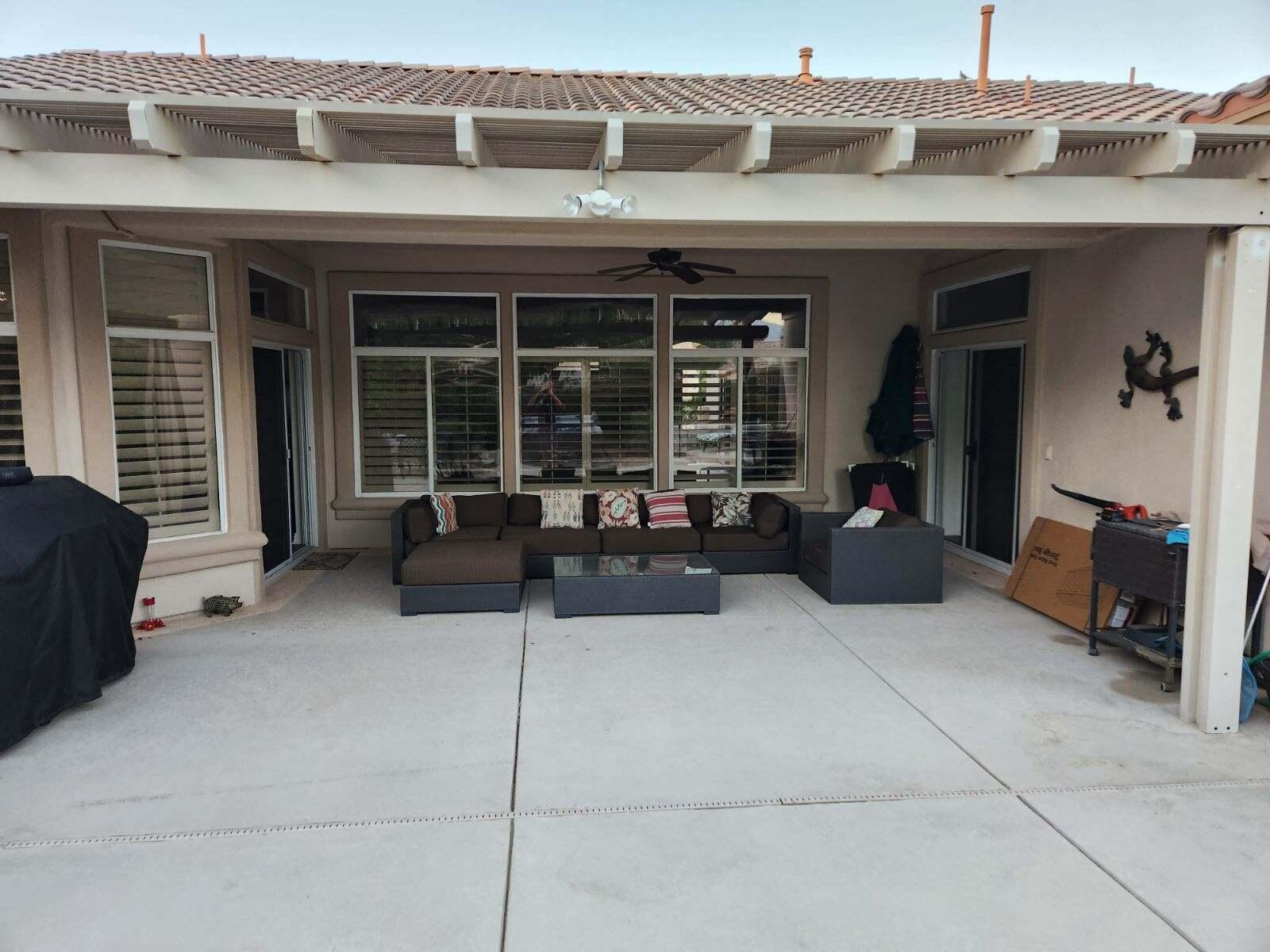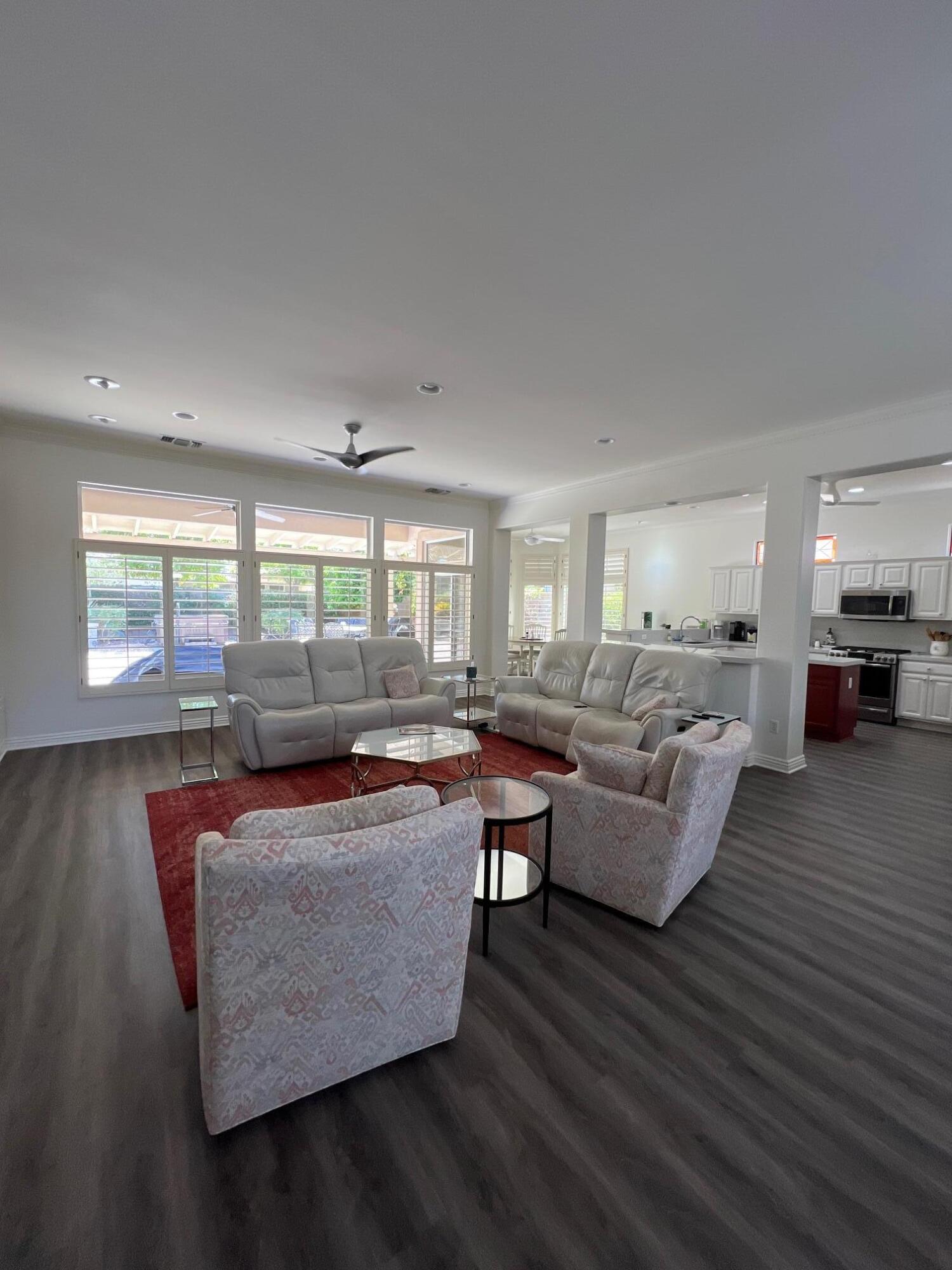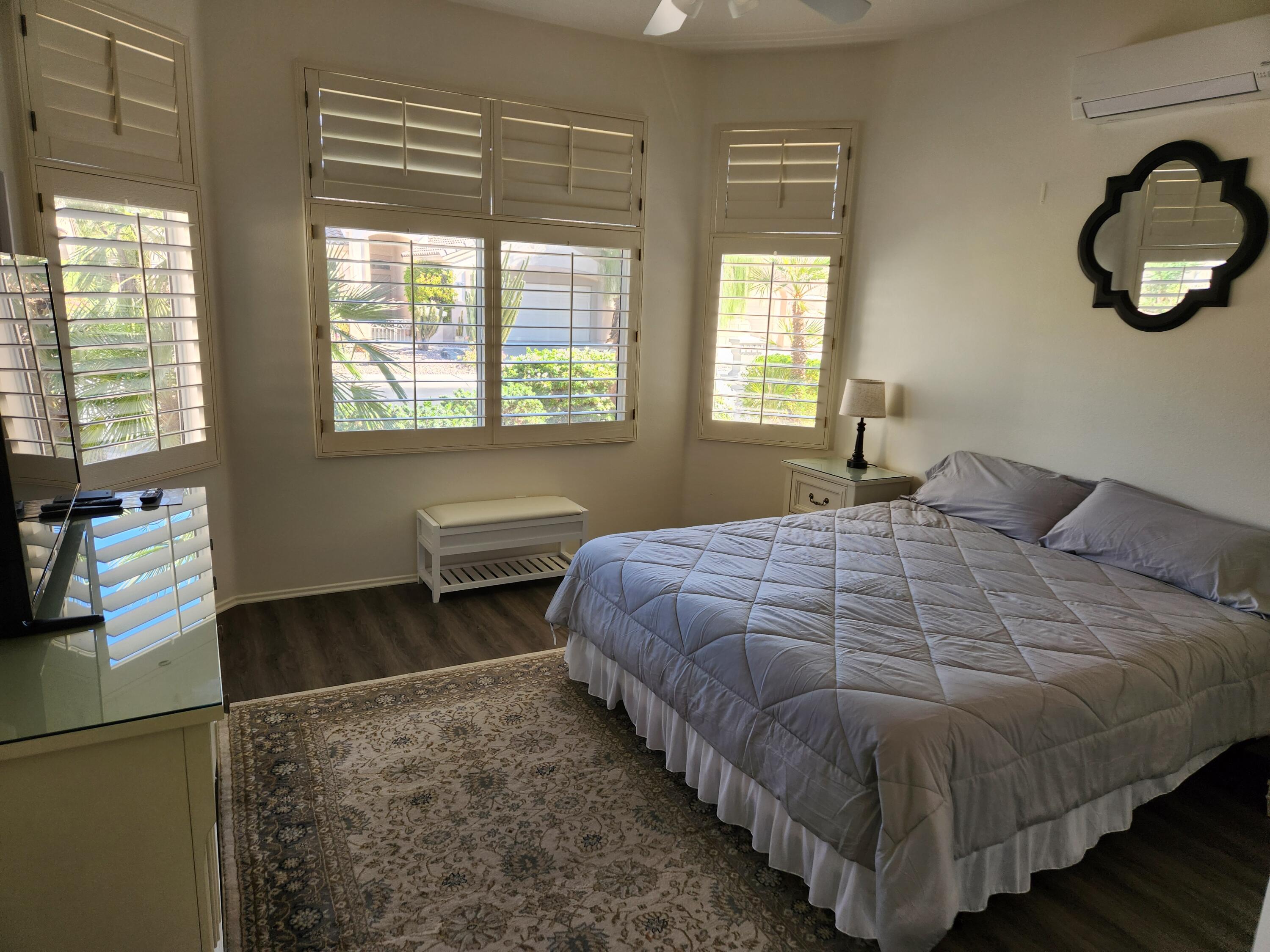 Currently rented from January-May 2025, and January-March 2026.Available for all other months, please call.Spacious, clean and set up for fun! This home is equipped with your favorite vintage board games and a stand up game console to entertain you and your family.This Monterey floor plan home in Sun City Palm Desert is a true standout! Perfectly positioned within a highly desirable 55+ community. This exceptional property offers 3 bedrooms, 3rd bedroom currently set up as office will include sofa-sleeper, 2.5 baths, a cozy great room with a fireplace. Gorgeous luxury vinyl flooring flows throughout, paired with elegant crown molding and 10-foot ceilings. Phantom screen doors, dual heat/AC units, and custom baseboards.The kitchen shines with stunning white countertops and stainless steel appliances. The two-car garage is upgraded with epoxy floors and plenty of storage, plus a golf cart garage for extra convenience. The expansive backyard is an oasis, featuring an above-ground spa, BBQ and personal putting green. Whether you're hosting gatherings or enjoying peaceful solitude.Don't miss this incredible opportunity--schedule your tour today and see for yourself why this Palm Desert home is perfect for your seasonal stay.Interested in this Listing?