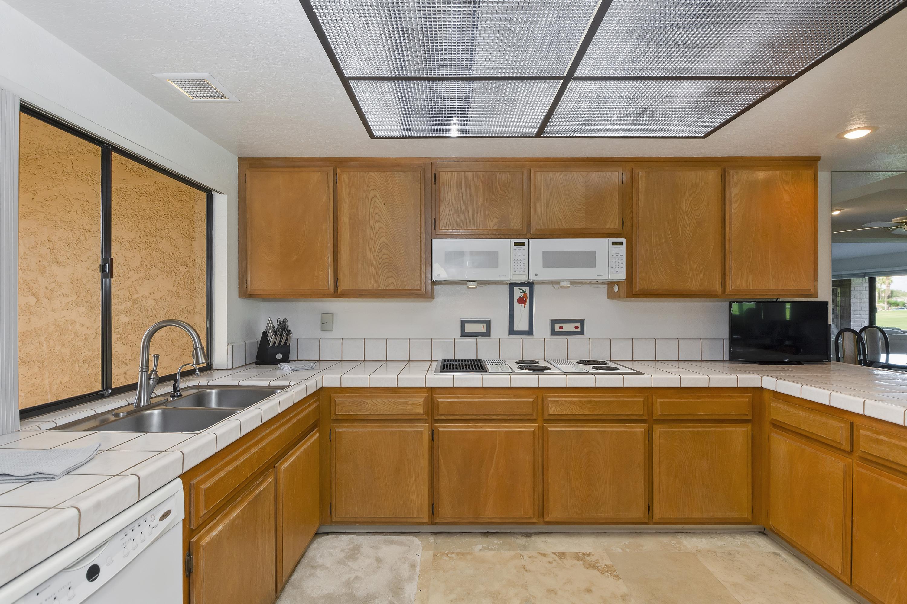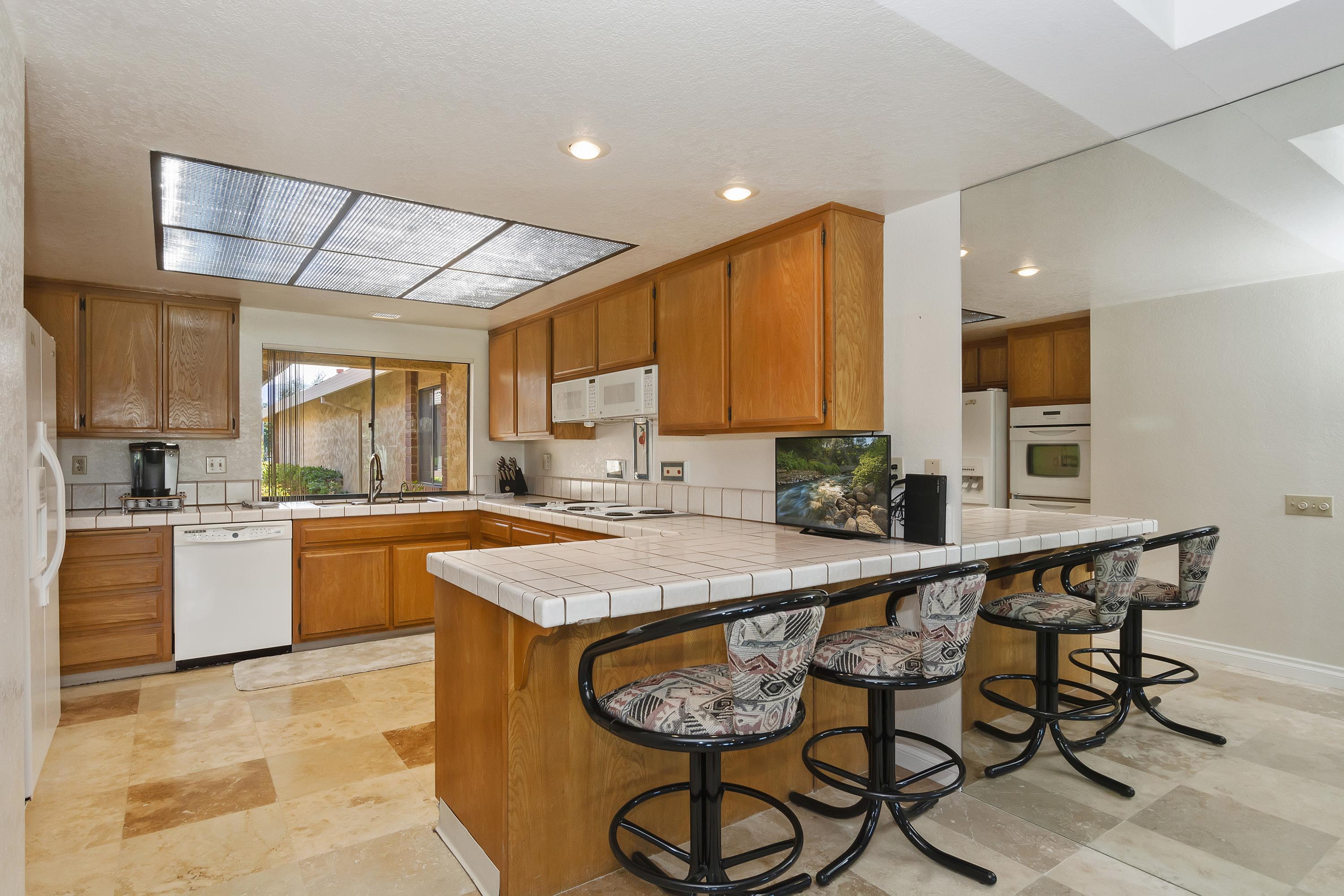 LOCATION, LOCATION! This home has a beautiful location on a quiet street in Chaparral Country Club with panoramic views of mountains and two fairways. Upon entering this 3 bedroom, 2 bath home you are captured by the upgraded travertine floors, beautiful plush carpeting and gorgeous golf course view. High end window treatments complement the vaulted ceilings, recessed lighting and crown molding in the bedrooms. The appliances are updated Jenn-Air units and include 2 built in microwaves, double ovens and a custom stove top. The extended travertine floor patio with privacy wall also has recessed lighting plus two plumbed gas lines and a natural gas BBQ. The atrium has flagstone flooring for low maintenance and new toilets throughout. Owner to pay first $75 of monthly gas and first $100 of monthly electricity, Tenant to pay any balance. UPDATE: The home is rented thru April 2025.Interested in this Listing?