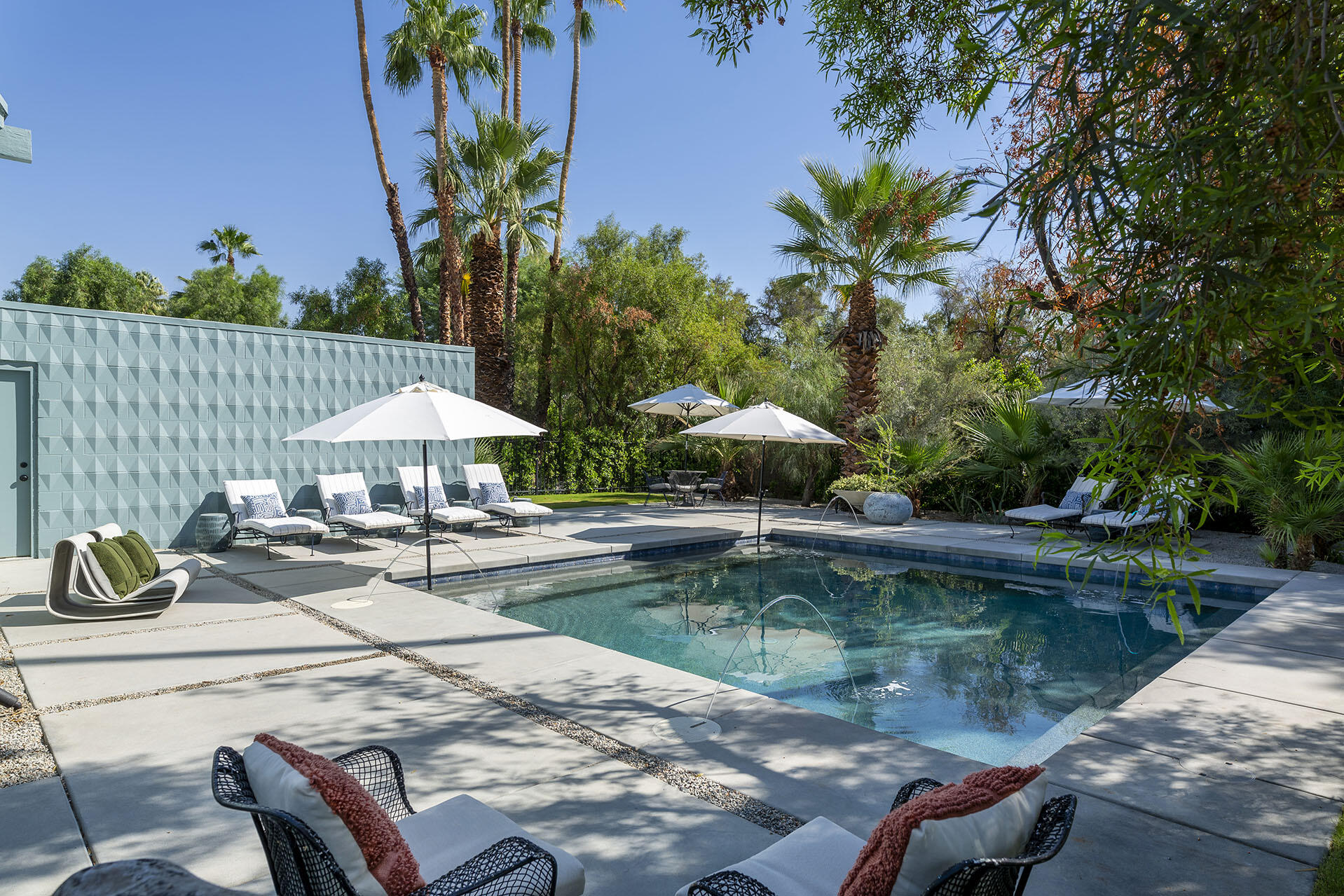 This is a stunning, architectural, one of a kind home in Movie Colony. The house was designed by noted mid century architect William Krisel and is similar to the Krisel designed condos in Canyon View Estates. However, this is single family home and is larger with a very generous lot with mountain views, lush (new) landscaping with lighting, and a new, heated pool with LED lighting and deck jets. The inside of the home is light and bright with a peaked clerestory roof line, new baths, and newer kitchen. With 3 BRs (one currently a den with closet), 2 BAs, a large kitchen with breakfast bar, and the perfect pool and patios, it is a dream for discerning buyers. The current owner has just added the pool, landscaping, outdoor irrigation, and new electric panel, as well as fully remodeling the baths.Furnishings are available outside of escrow.Buyers are to verify all information about the listing and refer to city short term rental guidelines for any questions on short term rental qualification.Interested in this Listing?