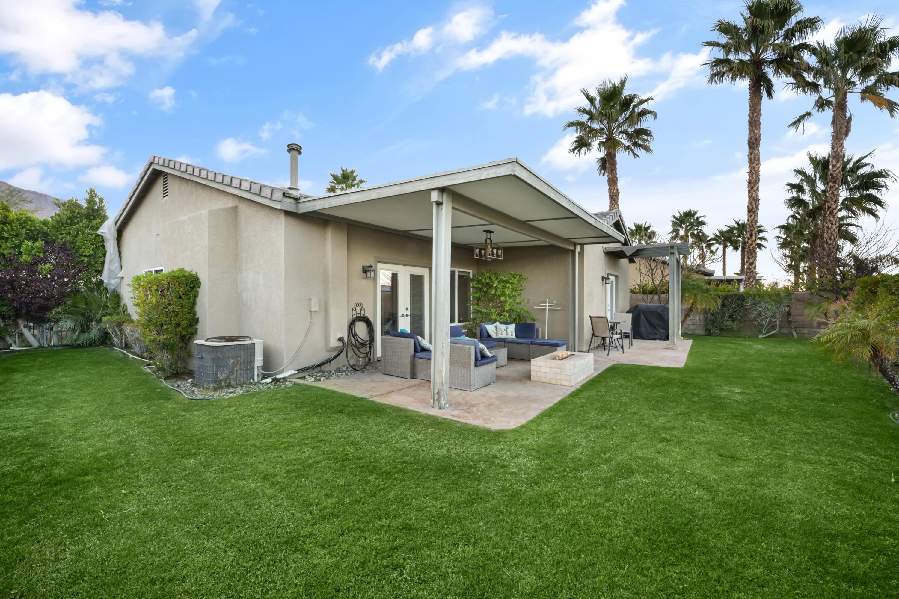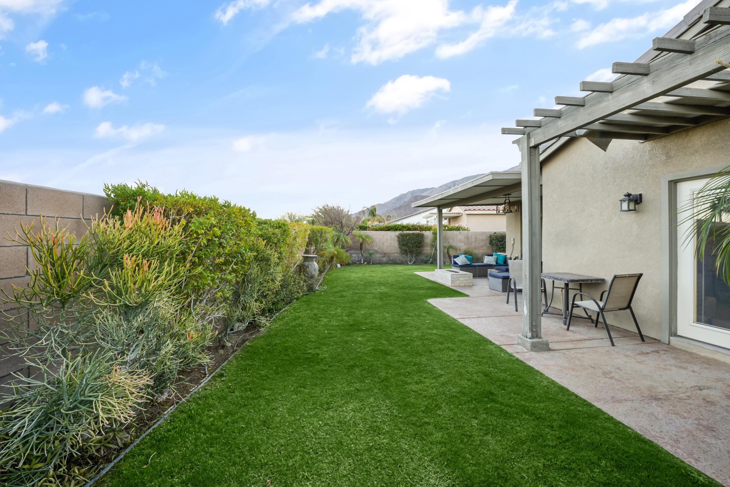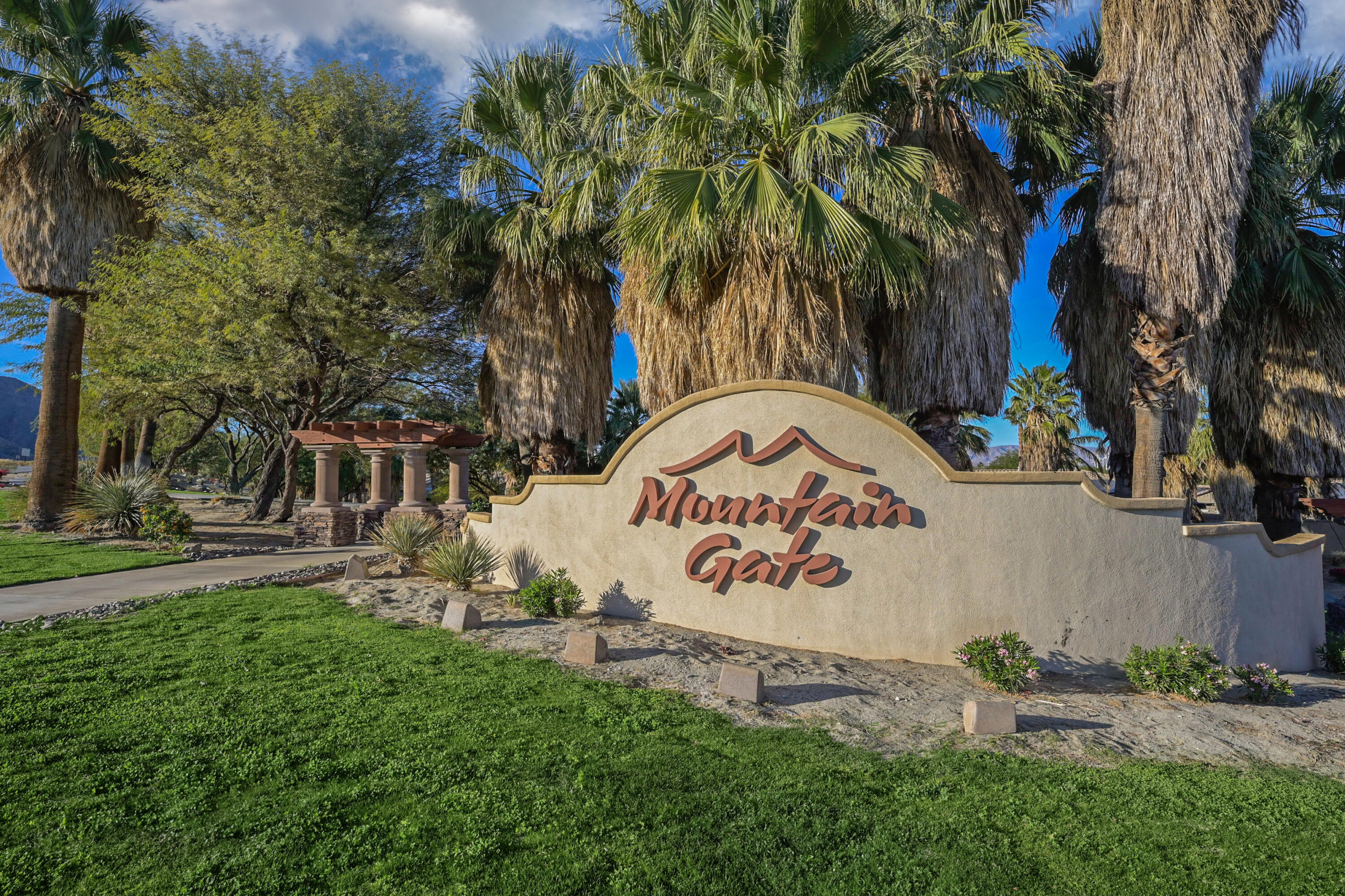 MOTIVATED SELLERS. Bring your best offer. Willing to Negotiate! Welcome to the Mountain Gate community, where breathtaking panoramic views and stunning sunsets over the San Jacinto mountains await you. Situated on a generous 6,098 SqFt lot, the 1,630 SqFt living space features 3 spacious bedrooms, 2 bathrooms, and boasts an easy-to-maintain desert landscaping while creating a tranquil oasis. The elegant stained glass front door and arched covered patio set the tone for the its beautifully open-concept design filled with natural light, creating a welcoming atmosphere perfect for relaxing or entertaining. The living room boasts a recessed entertainment system space and a large, tiled fireplace with full hearth, enhancing the modern appeal of the home. French doors lead to the backyard, where a covered patio with accent lighting and a built-in brick fire pit creates a perfect space for outdoor gatherings and star gazing. An elegant tile backsplash frames the kitchen complemented by stainless steel appliances and an expanded butcher's block island that offers ample storage and prep space as well as a perfect gathering spot for breakfasts or snacks. It seamlessly flows into the dining and living areas, making it ideal for hosting or enjoying relaxed meals. Throughout the common areas, sleek laminate flooring and upgraded ceiling fans in every room add a contemporary touch, while carpeted bedrooms provide warmth and comfort.The spacious primary suite serves as a private retreat, complete with a luxurious en-suite bathroom and a large walk-in closet with built-in organizers. Dual vanities, a privacy door, a sparkling hanging light fixture, and a beautifully tiled glass-enclosed shower enhance the spa-like ambiance. French doors from the suite lead to a covered patio, offering a peaceful spot to unwind.The 2-car garage is equipped with workbenches as well as 3 separate entry points from the driveway, to the sideyard from within the fence line, and access through the dedicInterested in this Listing?