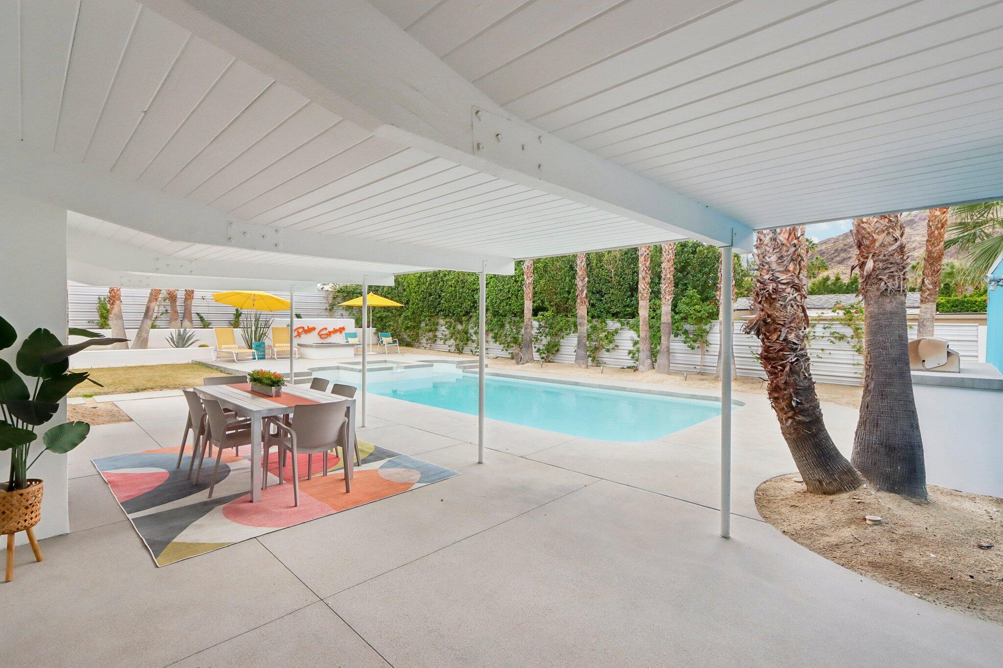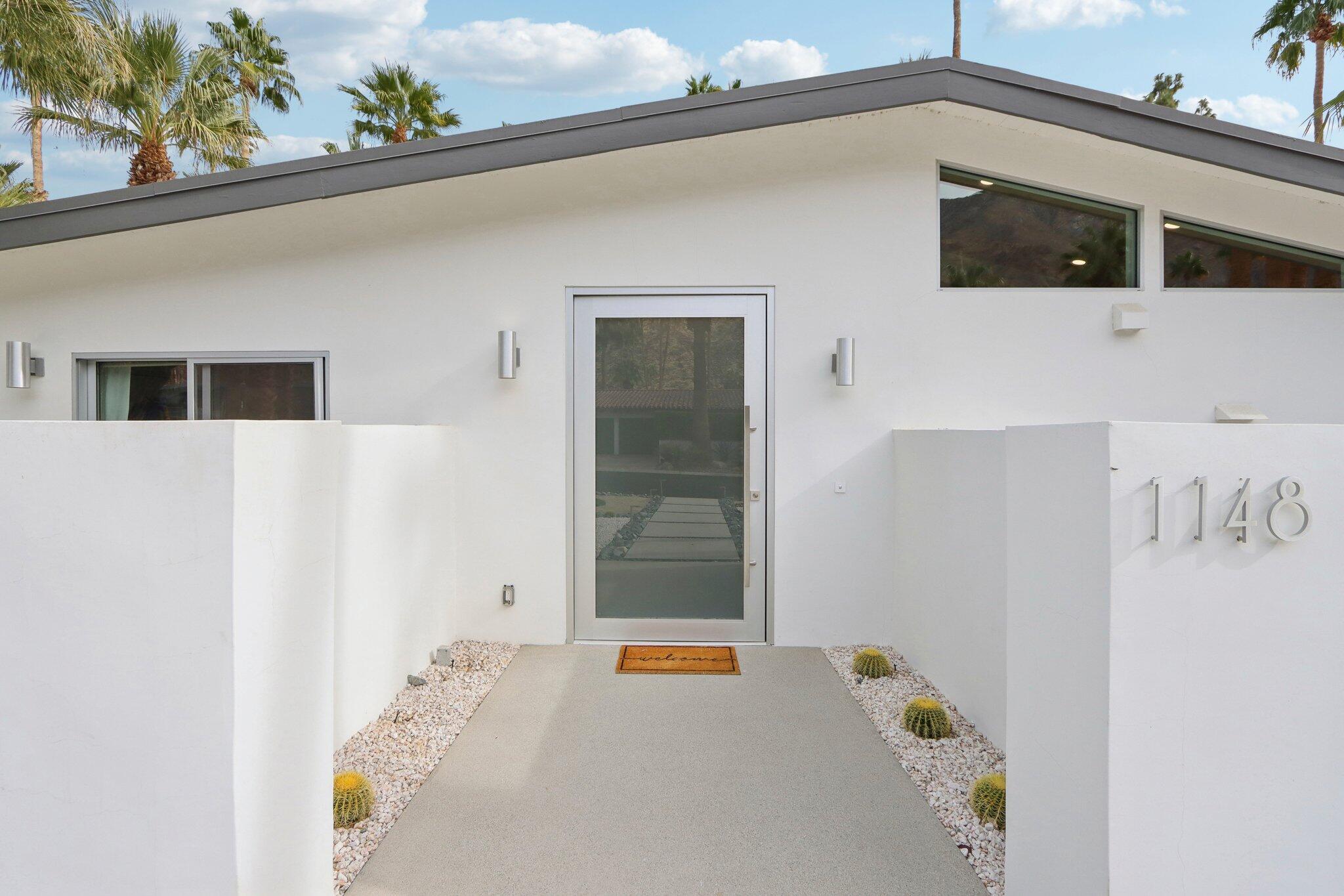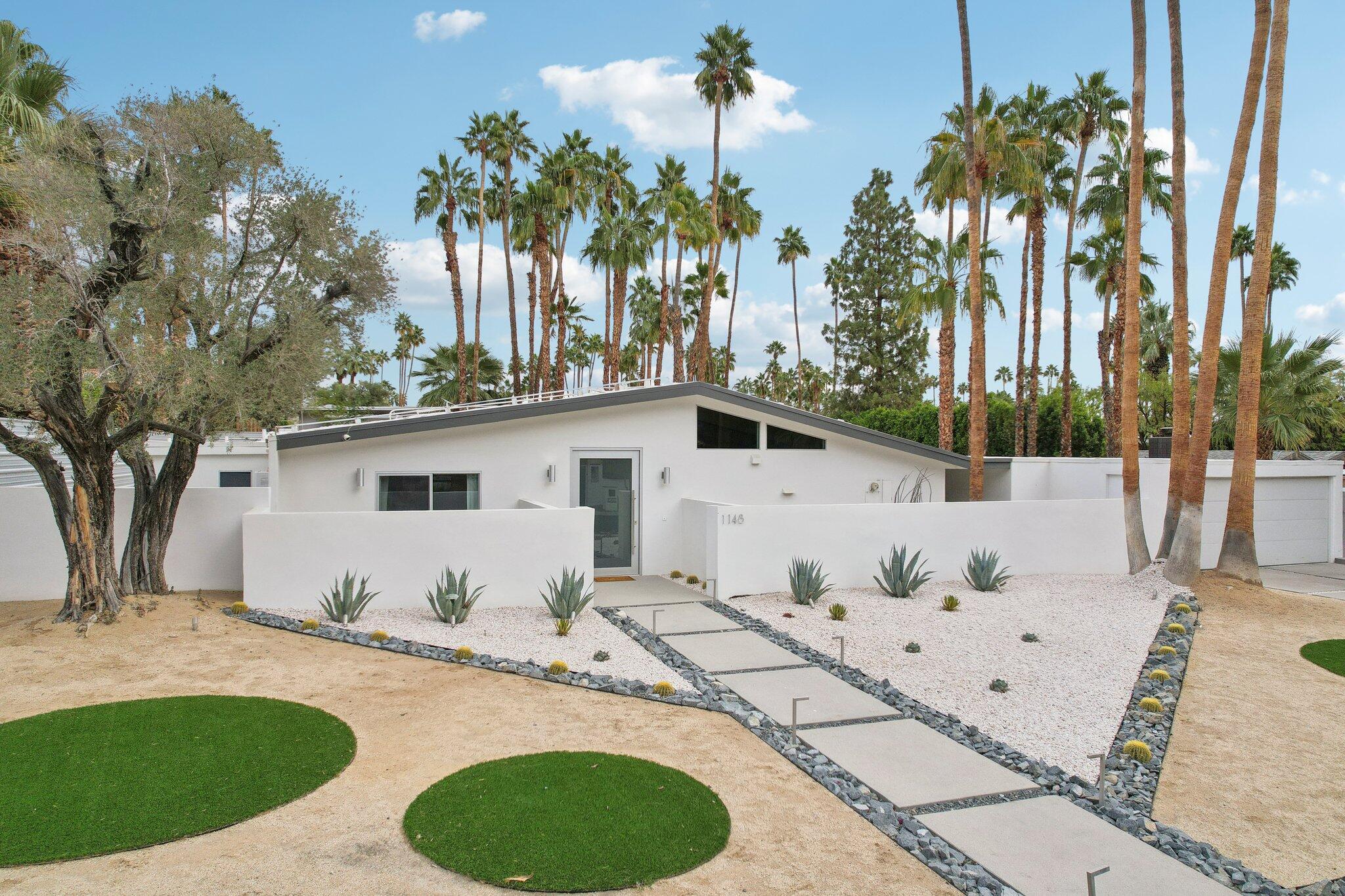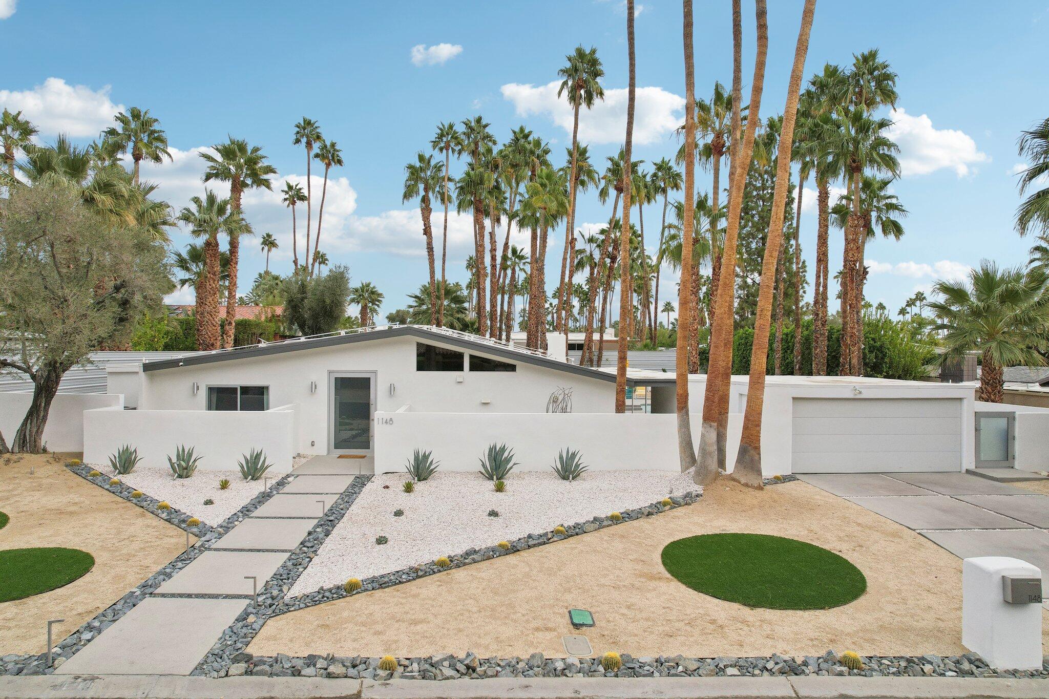 **Fully Furnished, Move in Ready** Mid-century stunner in Vista Las Palmas! Positioned for the greatest views in VLP on acclaimed Rose Avenue, this Alexander has it all. Situated for immediate enjoyment with designer furnishings and all the work is done so you can enjoy! All new finishes! tile flooring, walnut cabinetry, recessed lighting, tongue and groove ceilings, all windows and glass, bathrooms, doors, roof, smooth coat stucco, paint, A/C... everything is new! Enter through a custom pivot front door. Kitchen features professional Kitchen Aide appliances, and a paneled Dacor refrigerator, walnut cabinets and pantry, quartz counters, designer backsplash, and perfectly configured open, peninsula layout. Living room offers walls of glass, new sliding doors and tiled, original Alexander fireplace. All bedrooms are en suite with oversized, designer tiled, showers, floating vanities, and designer light fixtures. Primary suite offers and oversized bedrooms with pendant lights on either side of the bed, dual heads in the shower with shower wands, freestanding soaking tub, dual vanities, and access to the backyard. Resort style back yard offers newly designed, plastered, and tiled pool/spa with new acid washed concrete decking. Built in bbq with concrete countertops, covered patio, built in fire pit and huge mountain views in every direction. This VLP stunner is an excellent investment property, second home or primary. Renovation completed in 2023.Interested in this Listing?