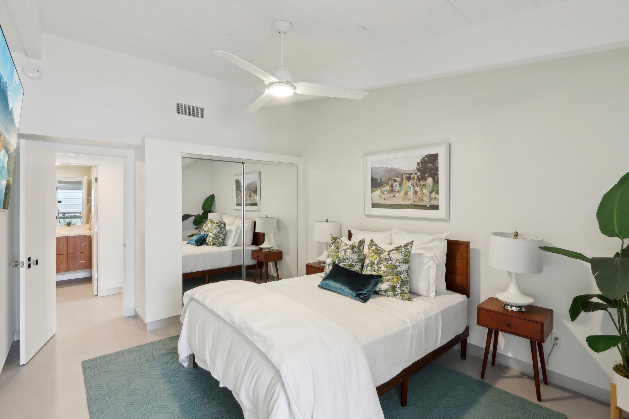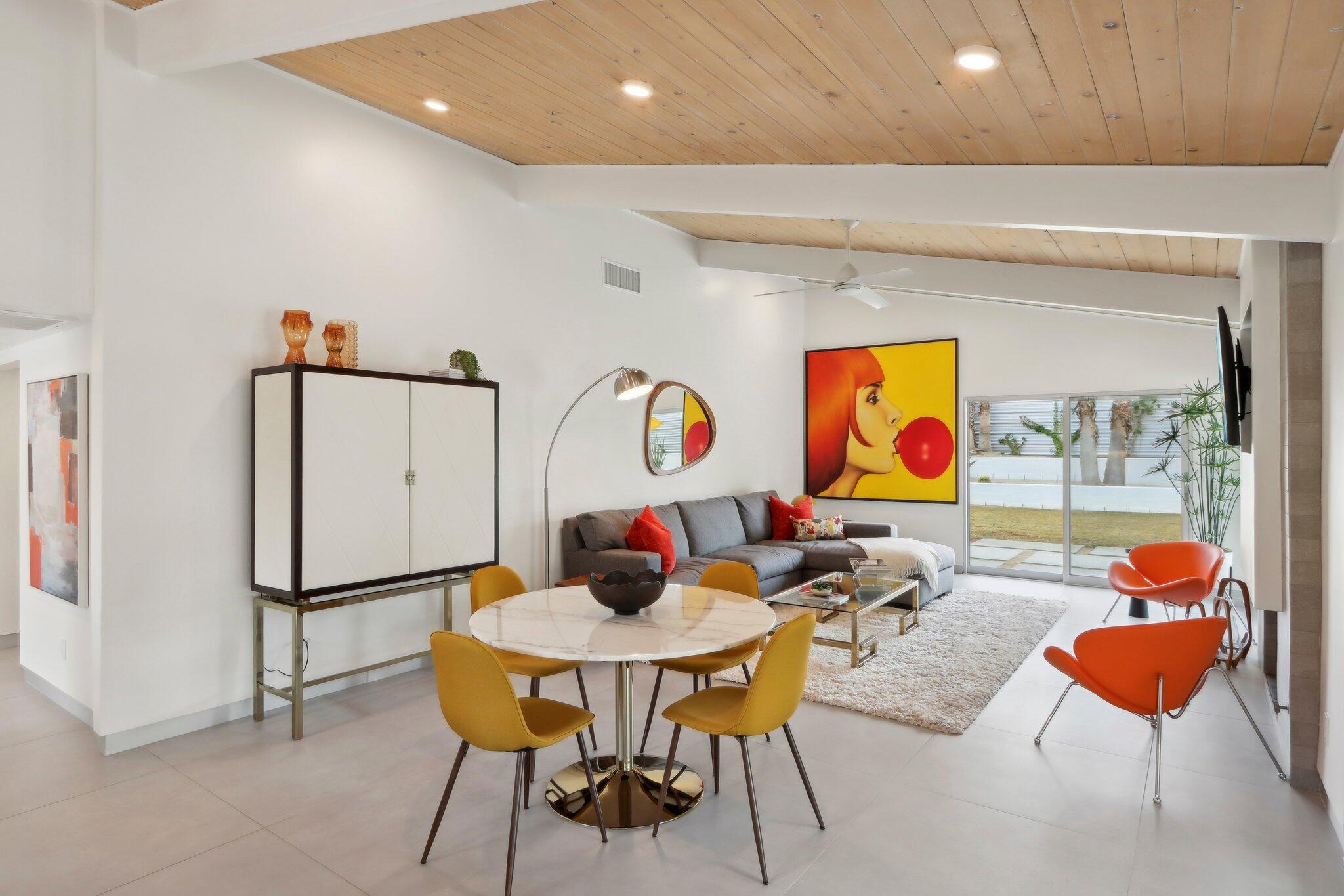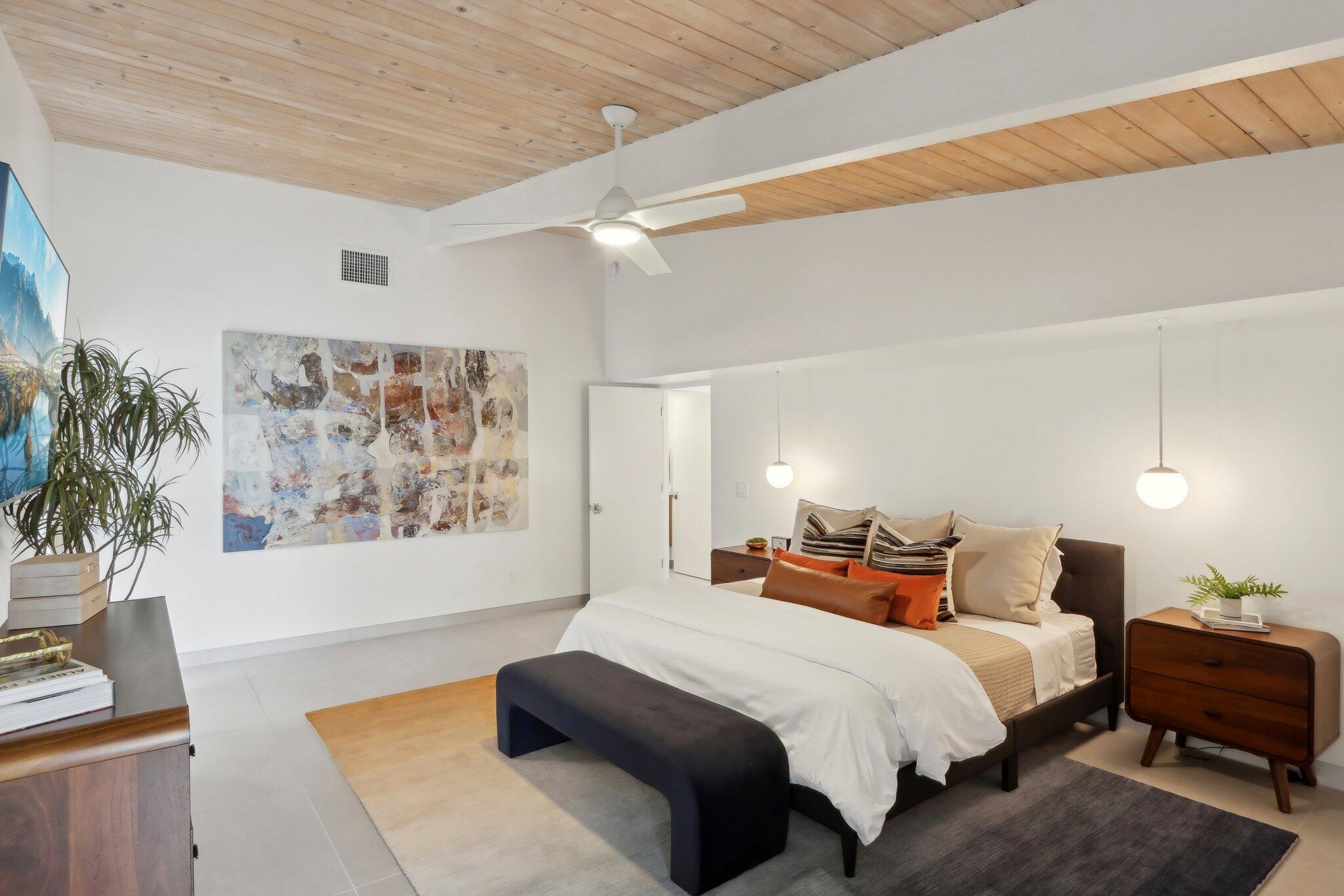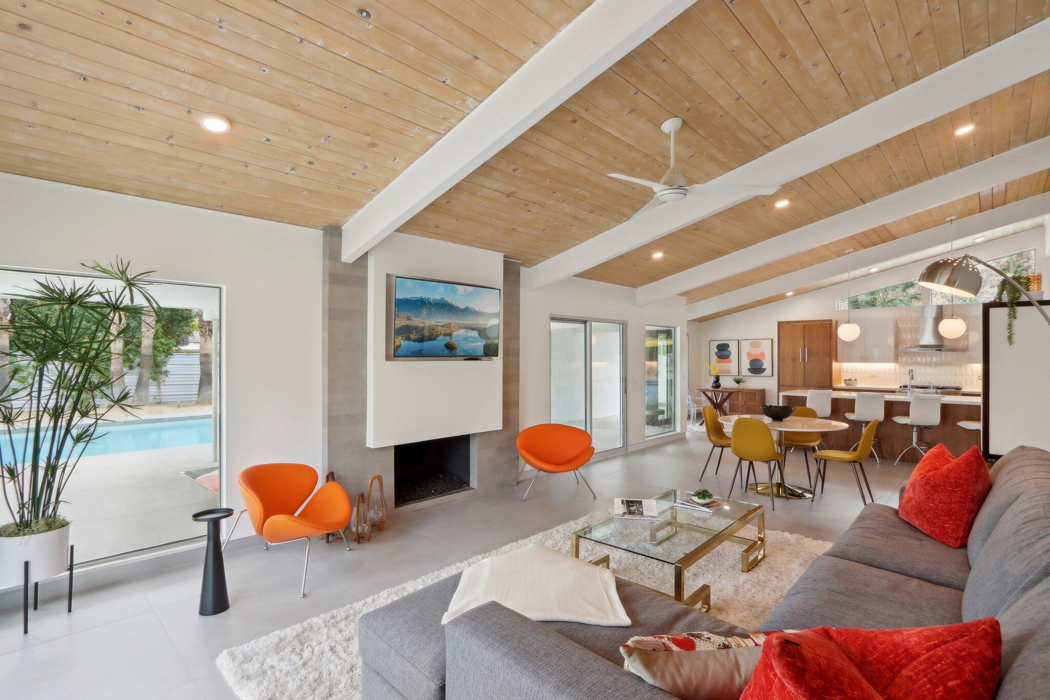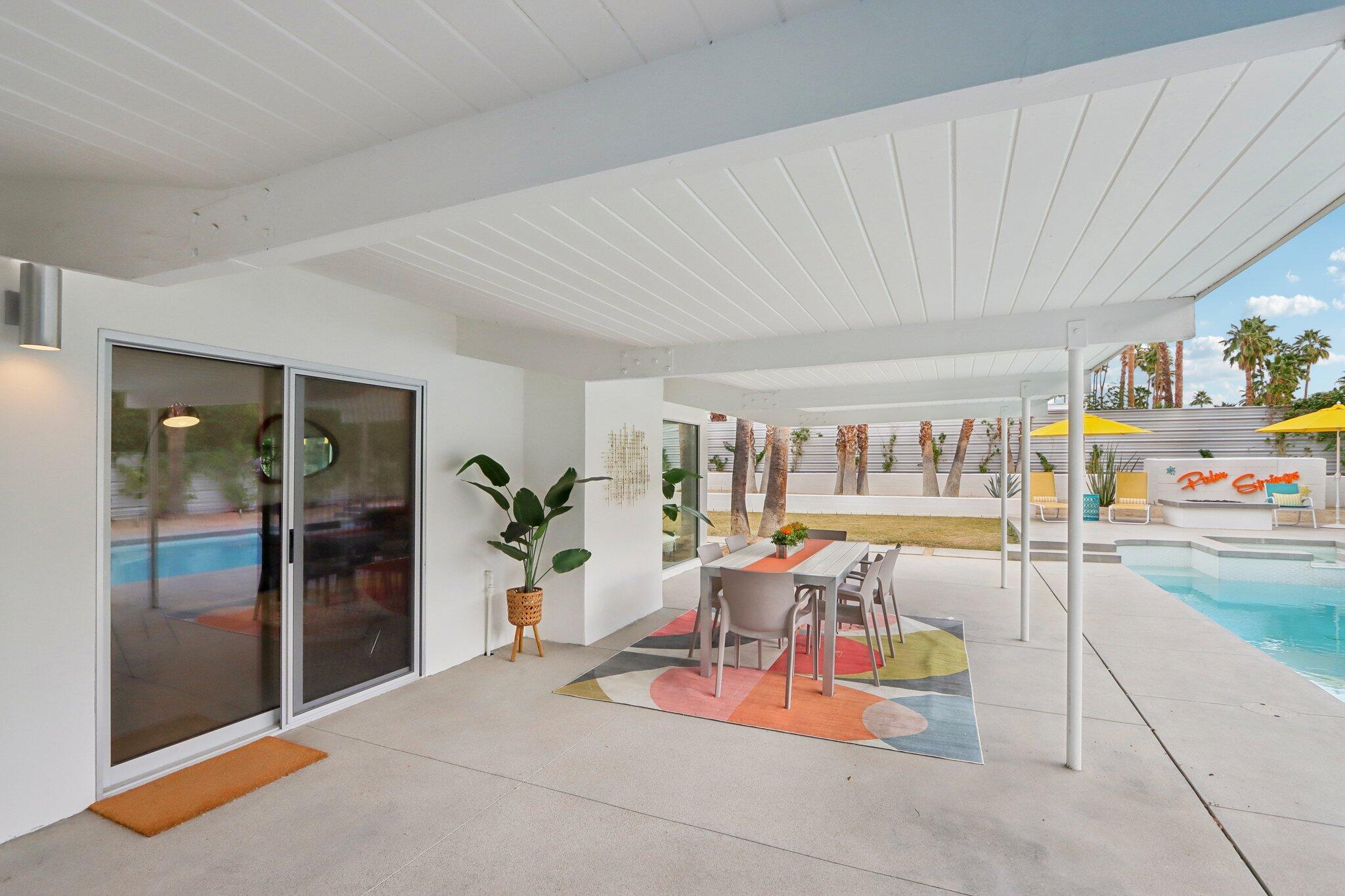**Fully Furnished, Move in Ready** Mid-century stunner in Vista Las Palmas! Positioned for the greatest views in VLP on acclaimed Rose Avenue, this Alexander has it all. Situated for immediate enjoyment with designer furnishings and all the work is done so you can enjoy! All new finishes! tile flooring, walnut cabinetry, recessed lighting, tongue and groove ceilings, all windows and glass, bathrooms, doors, roof, smooth coat stucco, paint, A/C... everything is new! Enter through a custom pivot front door. Kitchen features professional Kitchen Aide appliances, and a paneled Dacor refrigerator, walnut cabinets and pantry, quartz counters, designer backsplash, and perfectly configured open, peninsula layout. Living room offers walls of glass, new sliding doors and tiled, original Alexander fireplace. All bedrooms are en suite with oversized, designer tiled, showers, floating vanities, and designer light fixtures. Primary suite offers and oversized bedrooms with pendant lights on either side of the bed, dual heads in the shower with shower wands, freestanding soaking tub, dual vanities, and access to the backyard. Resort style back yard offers newly designed, plastered, and tiled pool/spa with new acid washed concrete decking. Built in bbq with concrete countertops, covered patio, built in fire pit and huge mountain views in every direction. This VLP stunner is an excellent investment property, second home or primary. Renovation completed in 2023.Interested in this Listing?