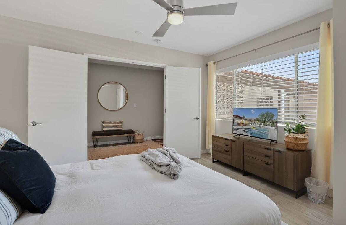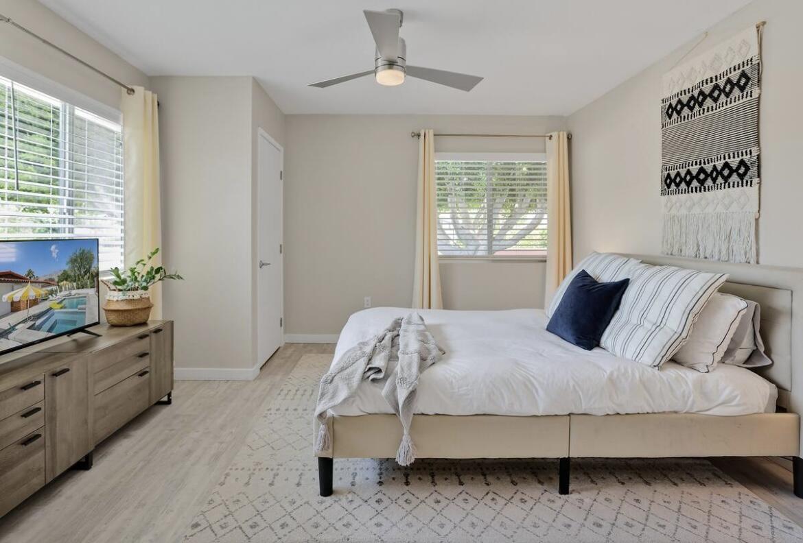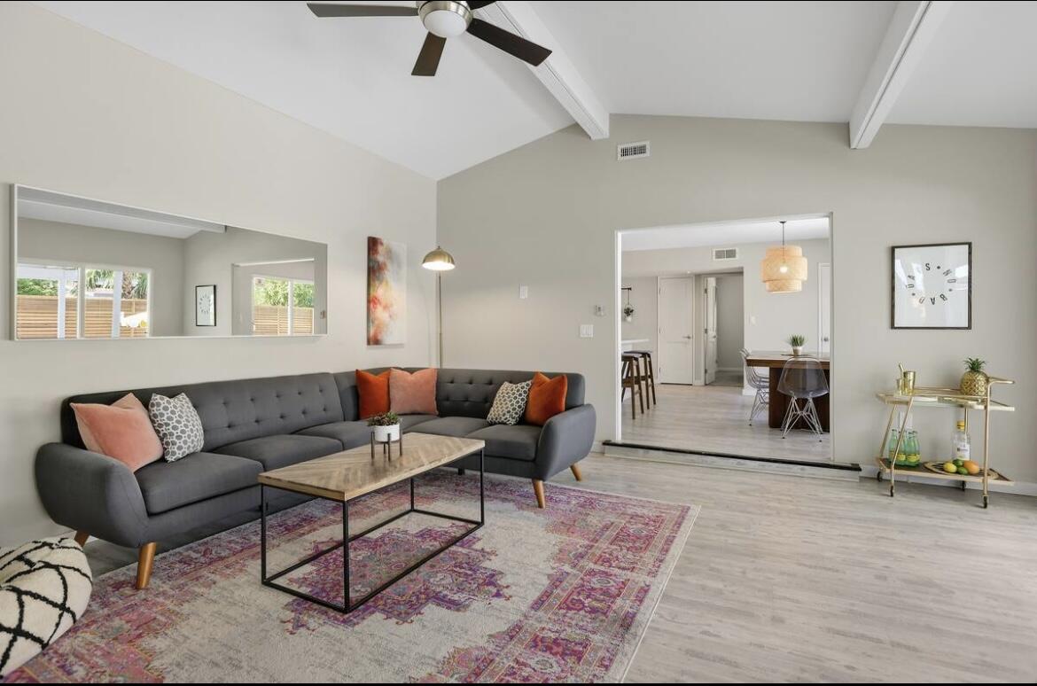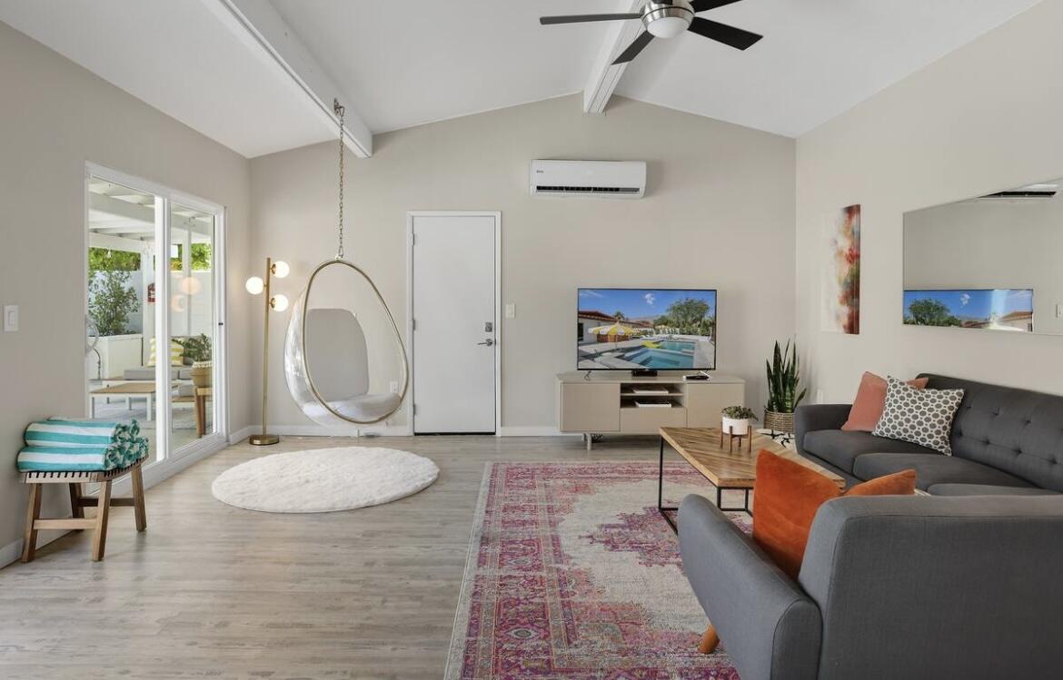 Beautifully remodeled 4-bedroom, 2-bath, 1,487 SF home offers the perfect blend of style, comfort, and investment potential in the heart of Palm Springs. Ideally located just minutes from downtown, golf courses, and top attractions - it's perfect for both relaxing getaways and exciting desert adventures.The open floorplan is designed for effortless indoor-outdoor living and entertaining. An oversized enclosed breezeway has been thoughtfully converted into a spacious living room with high ceilings, maximizing the home's interior and entertainment space.The fully upgraded kitchen features stainless steel appliances, updated cabinetry, quartz countertops, and a dedicated laundry area. Bedrooms vary in size with a centrally located primary suite in front corner of the house.Outside, the backyard has been transformed into a private, resort-like retreat with a covered dining and lounge area, a gorgeous pool and spa, fire pit, and side yard for cornhole or bocce ball --making it perfect for hosting family and friends.Other features include a leased solar system, 2 car garage and large driveway for additional parking. This property presents a fantastic opportunity for anyone looking to own a vacation rental or private getaway in one of Palm Springs' most desirable neighborhoods. Don't miss your chance to own a slice of paradise.Interested in this Listing?