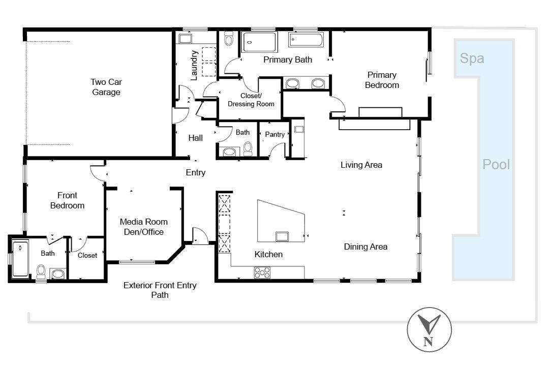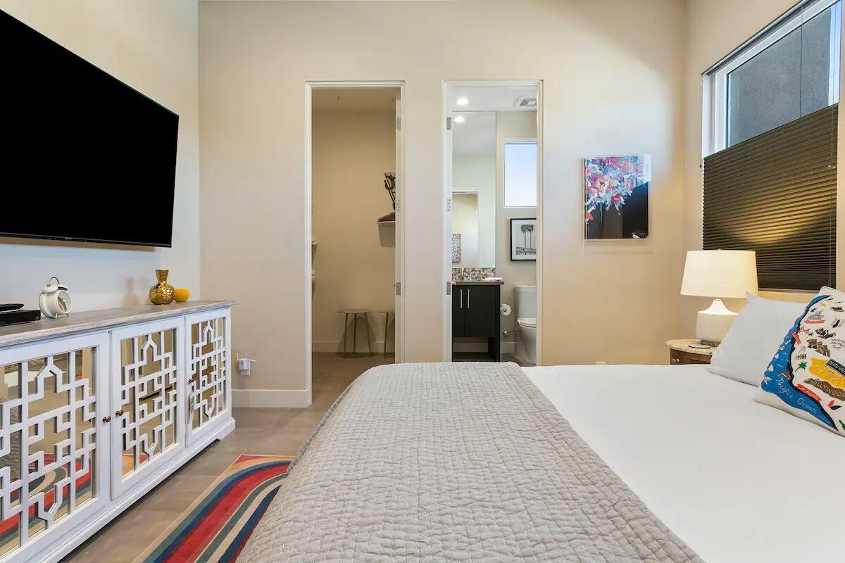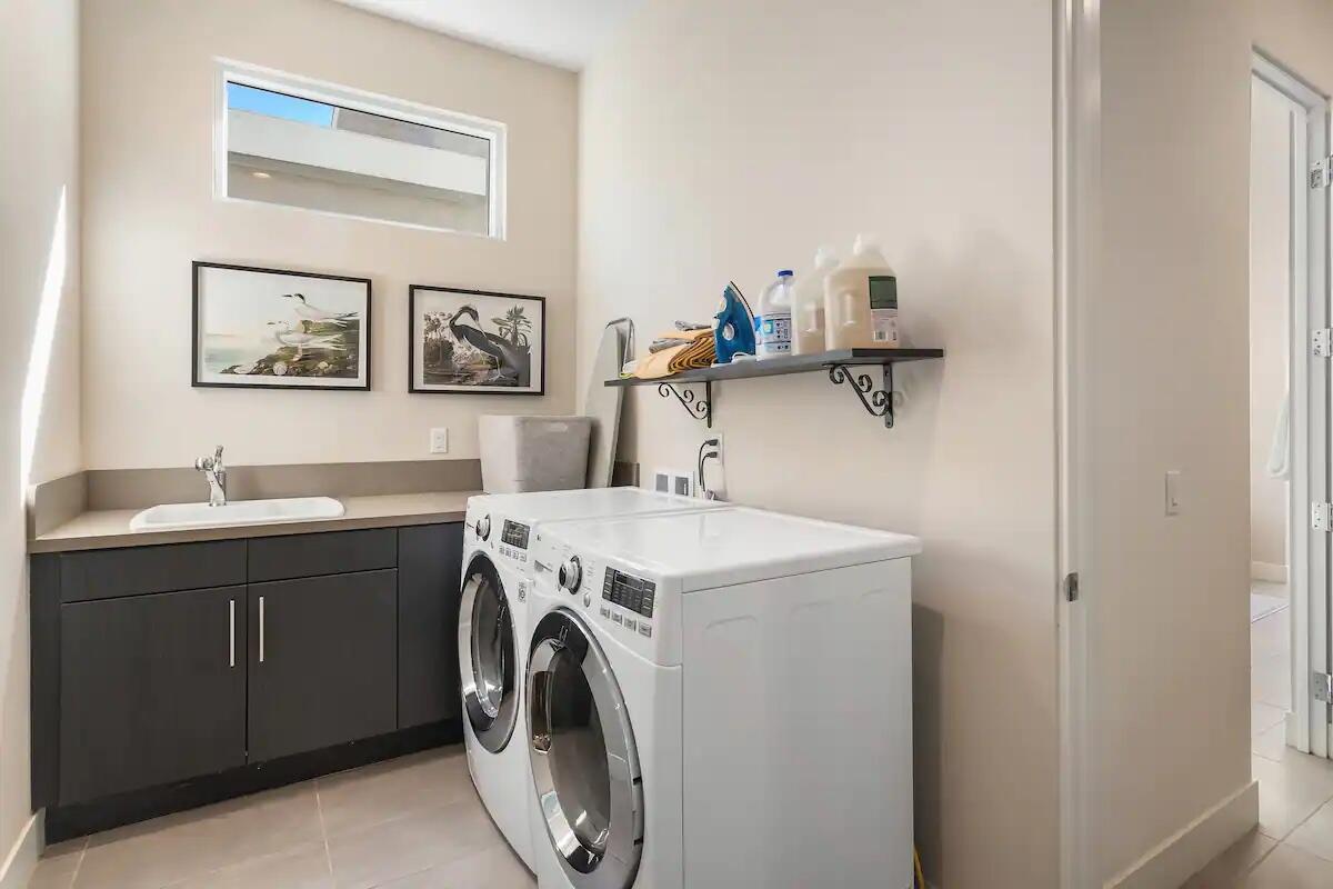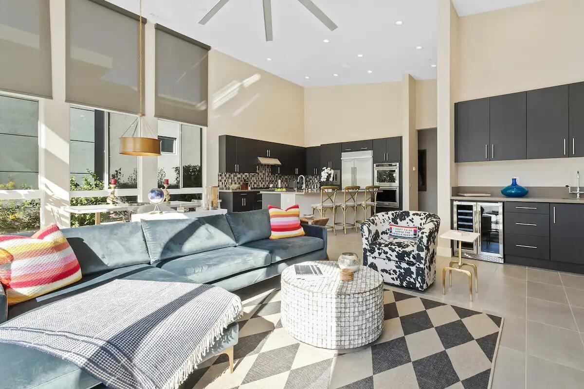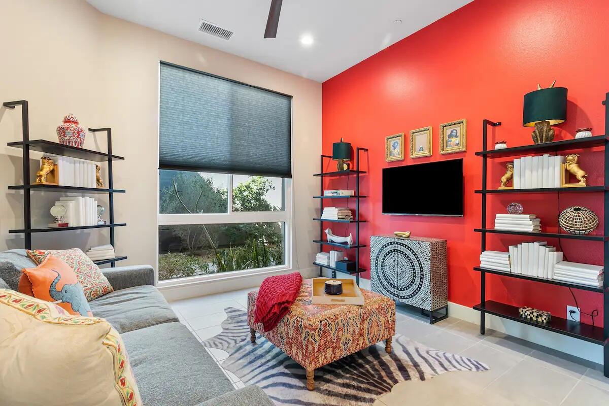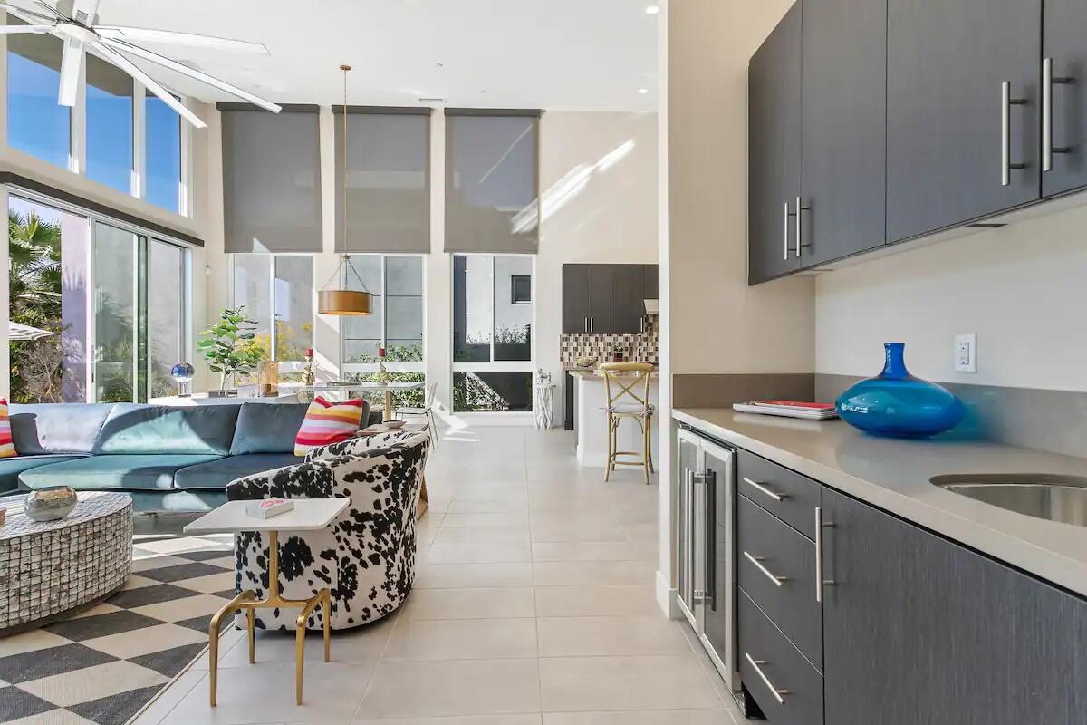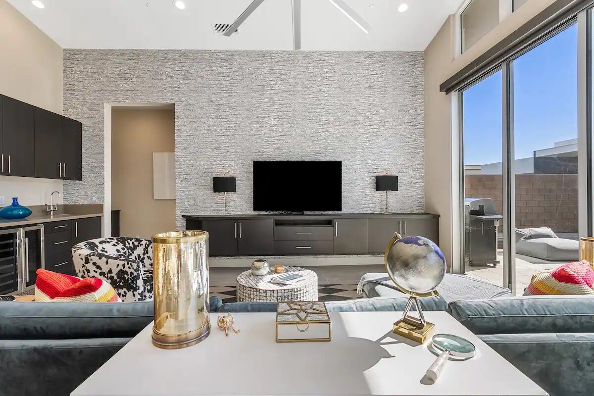 Enjoy the epitome of indoor/outdoor living in this stylish Brizo model home in Escena. With 2 bedrooms and an extra media/flex room, the focal point of this home is the spectacular great room which effortlessly connects the interior to the private backyard with generous lap pool and spa. Lined with sliding doors and soaring walls of windows, the volume and light in this space is astounding. Offered furnished, this magazine worthy home is yours to enjoy immediately. The living room has a built-in and floating media cabinet, wet bar, and is open to a generous dining area. The modern kitchen is the backstop to this space, with an amazing eat-in prep island, beautiful finishes, and full suite of handsome stainless steel appliances. The primary bedroom enjoys mountain views and sliding doors to access the back yard. Its spa like en-suite bath is exquisite, with free standing tub, walk-in shower, and clerestory windows which bathe the space with light. The media room off the entry hall is a flexible space that could be an office or extra sleeping area for guest. The 2nd bedroom with en-suite bath & walk-in closet will entice guests to stay too long. There is a half bath, laundry room, and other amenities: a fire pit adjacent to the pool, owned solar system, water filtration system, EV charger and more. Located in Escena, one of the few guard-gated communities in Palm Springs, you will enjoy a curated and beautiful neighborhood experience with waking trails and dog parks.Interested in this Listing?