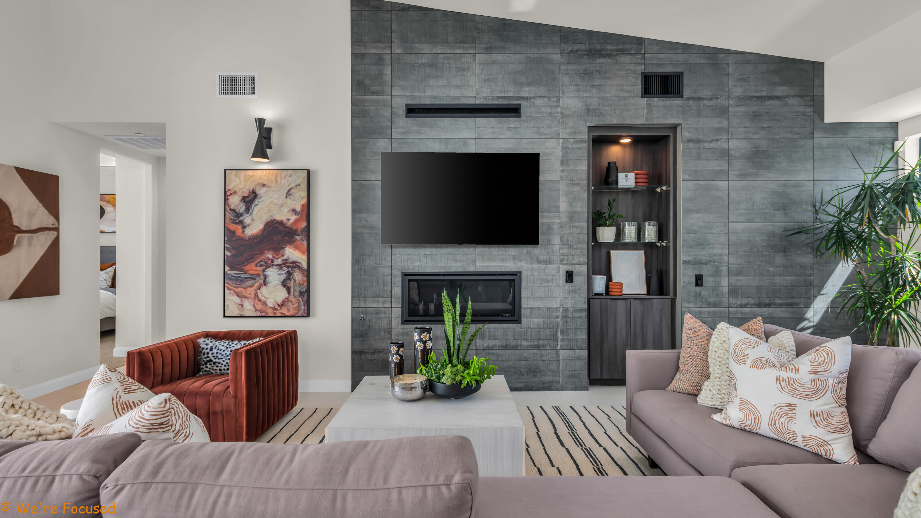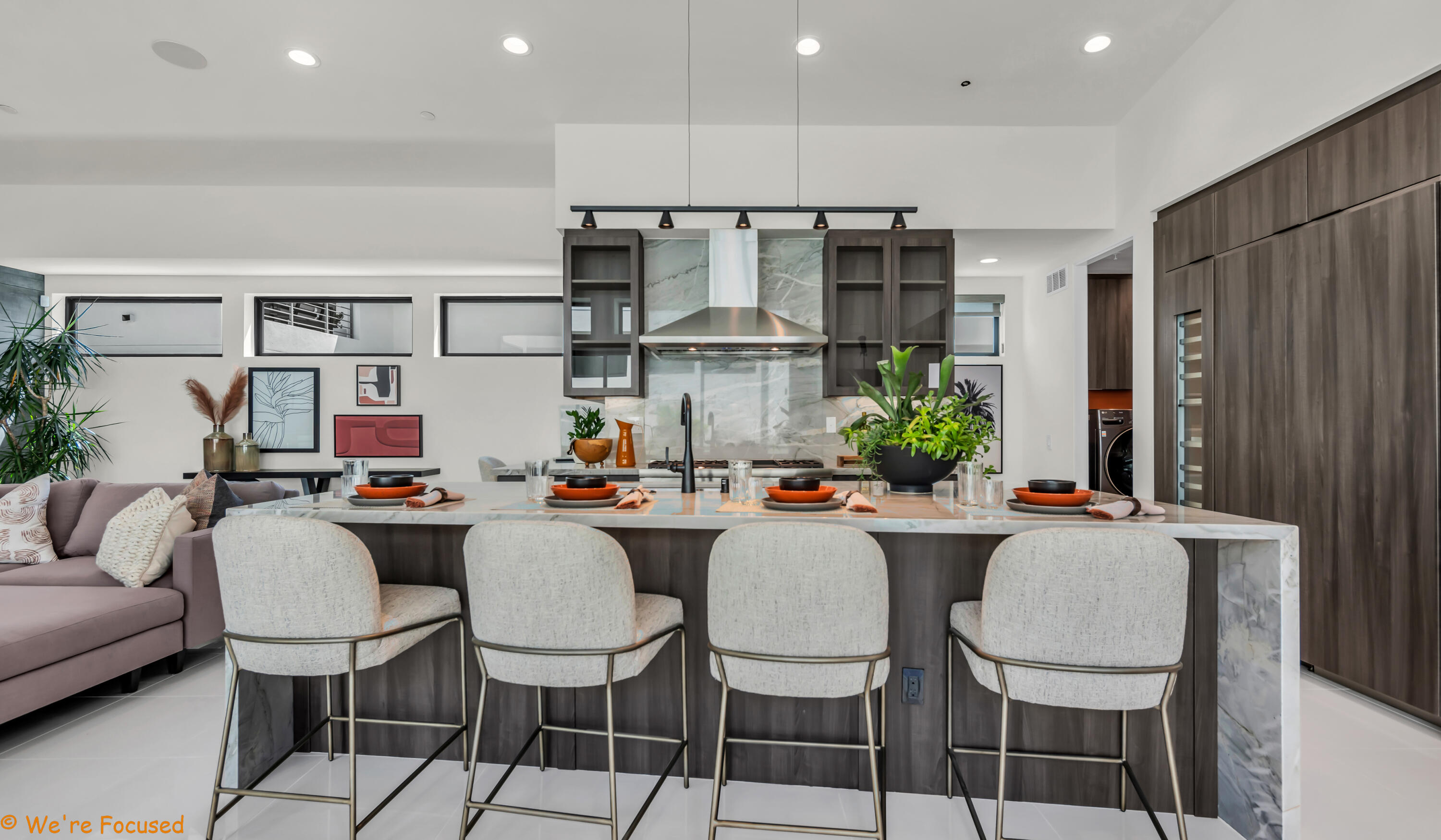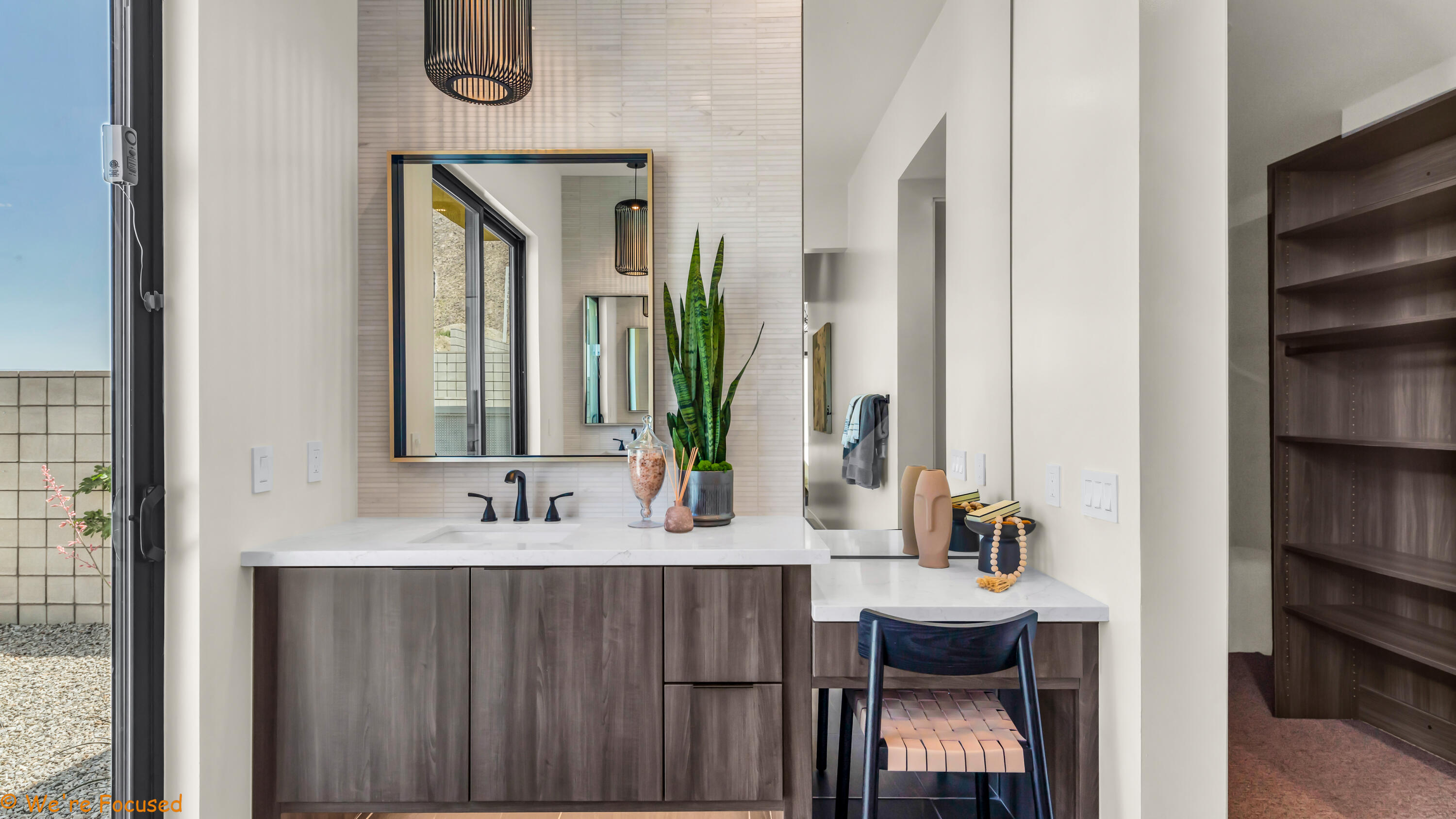 Model Home furnished! last of two homes at Elan. Resort style living at Elan in South Palm Springs. Only a few minutes walking distance from downtown! This 2,533 SF home features 2 Primary Suites, 3.5 baths, a Casita (bed 3), Thermador appliances, outdoor patio, deck with mountain views, waterfall quartzsite countertops, upgraded porcelain tile 24X24 flooring, Solar System 16 panels included no lease, large multi slide Western pocket sliders, outdoor shower, outdoor bar, cocktail pool and spa. Exterior picture of house is of a rendering. Built by Farwest Industries.Interested in this Listing?