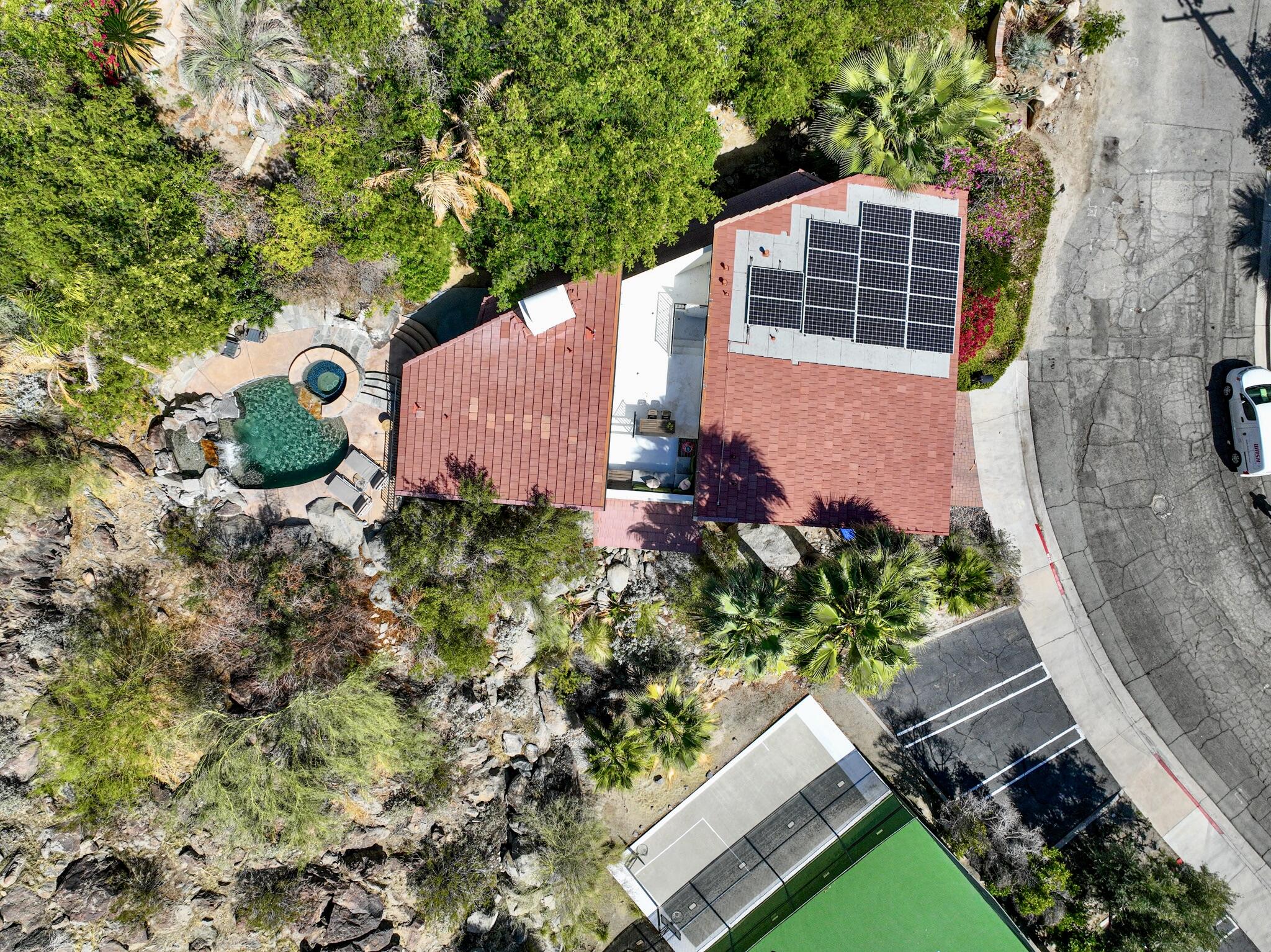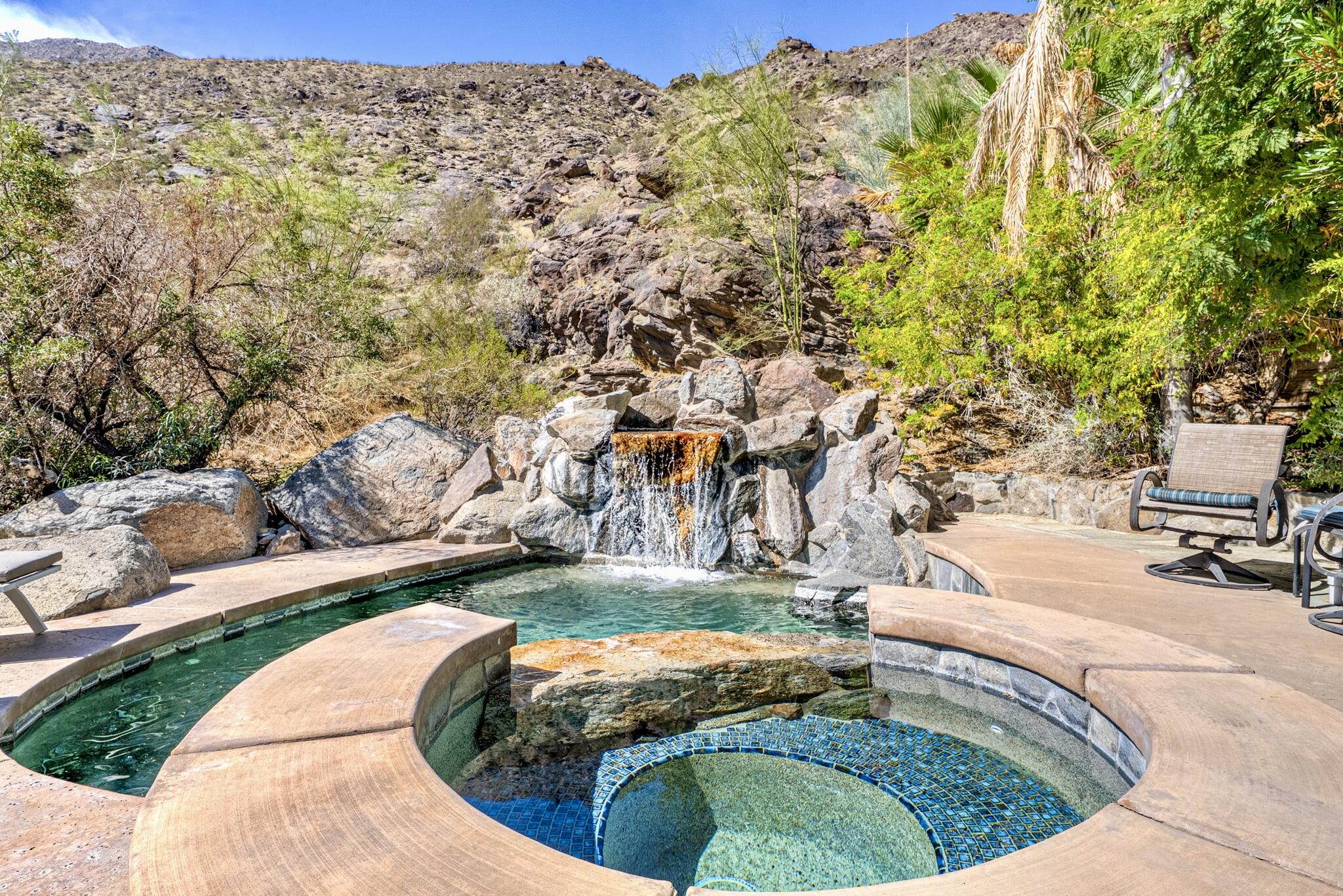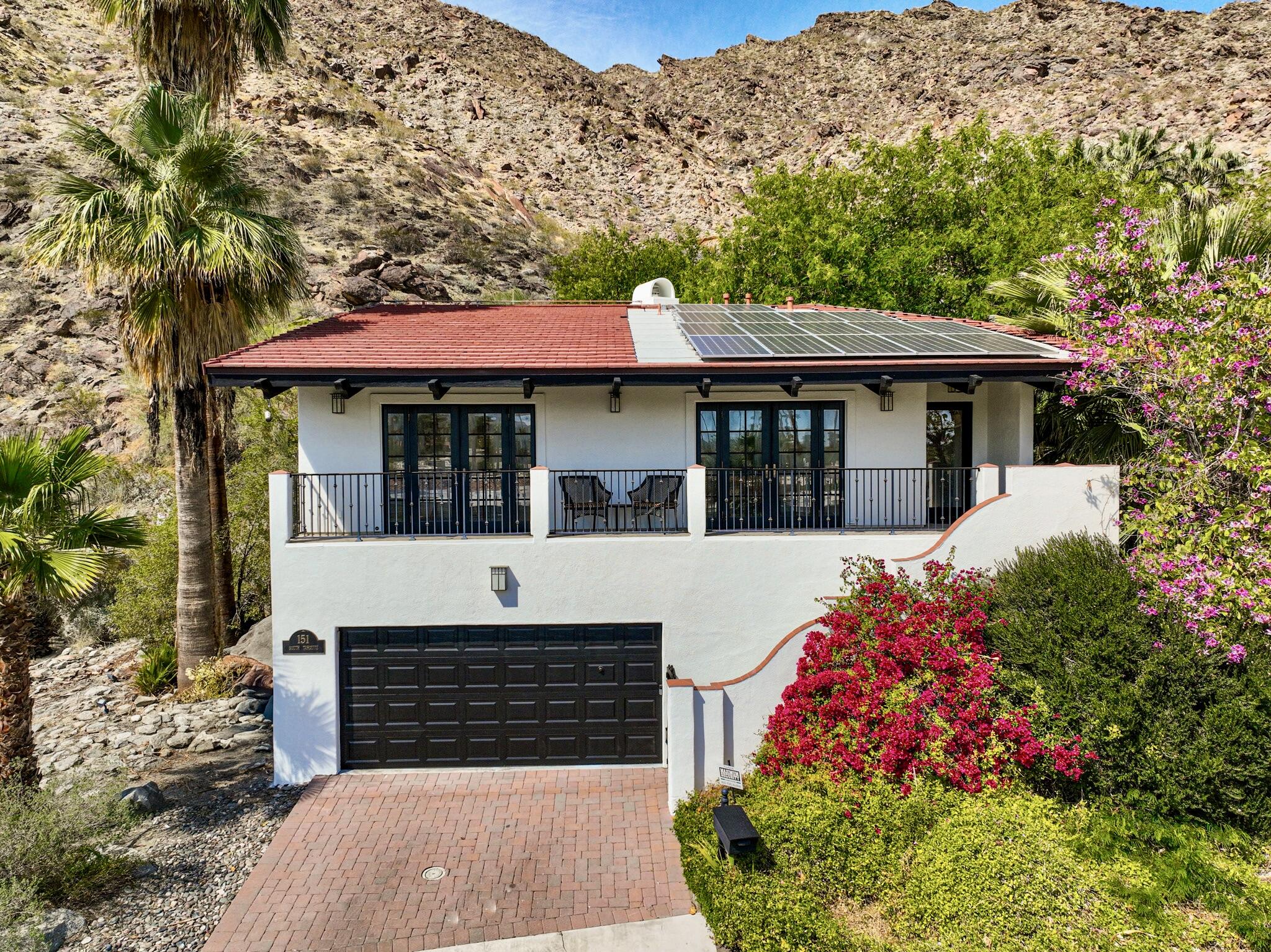Tucked away in one of the most desirable and highly sought-after enclave of the Historic Tennis Club neighborhood. Adjacent to the exclusive 29 Colony, this is where you can unwind and enjoy the true Palm Springs life-style, surrounded by the dramatic and calming San Jacinto mountains. Between the unique hillside location, the impressive grotto-like pool & spa carved in the rocks, and the magnificent back drop mountain views, this home is truly special. With picturesque landscape and Mediterranean modern design, this house sits in one of the best locations, ideal for long term residency, or vacation rental with incredible income producing potential. Originally designed with two bedrooms on the main level and two smaller rooms below, current layout has a total of 3BDR,3BA with the luxury master with fireplace and ensuite bath at main level, that can easily be converted into the original two bedrooms, if desired. Featuring soaring vaulted ceilings,exposed wood beams and open concept living space, this home offers an updated kitchen with breakfast bar, french doors and high clerestory windows to capture an abundance of natural light with views from each corner. Adding to the charm are the hardwood floors, the front & side porches, including a private inconspicuous roof-top deck, perfect for treating yourself with a book or simply absorb the sunset's energy.The 2Car garage has additional large space that could be connected to one of the bedroom to create a casita. No HOA, Owned solar system.Interested in this Listing?