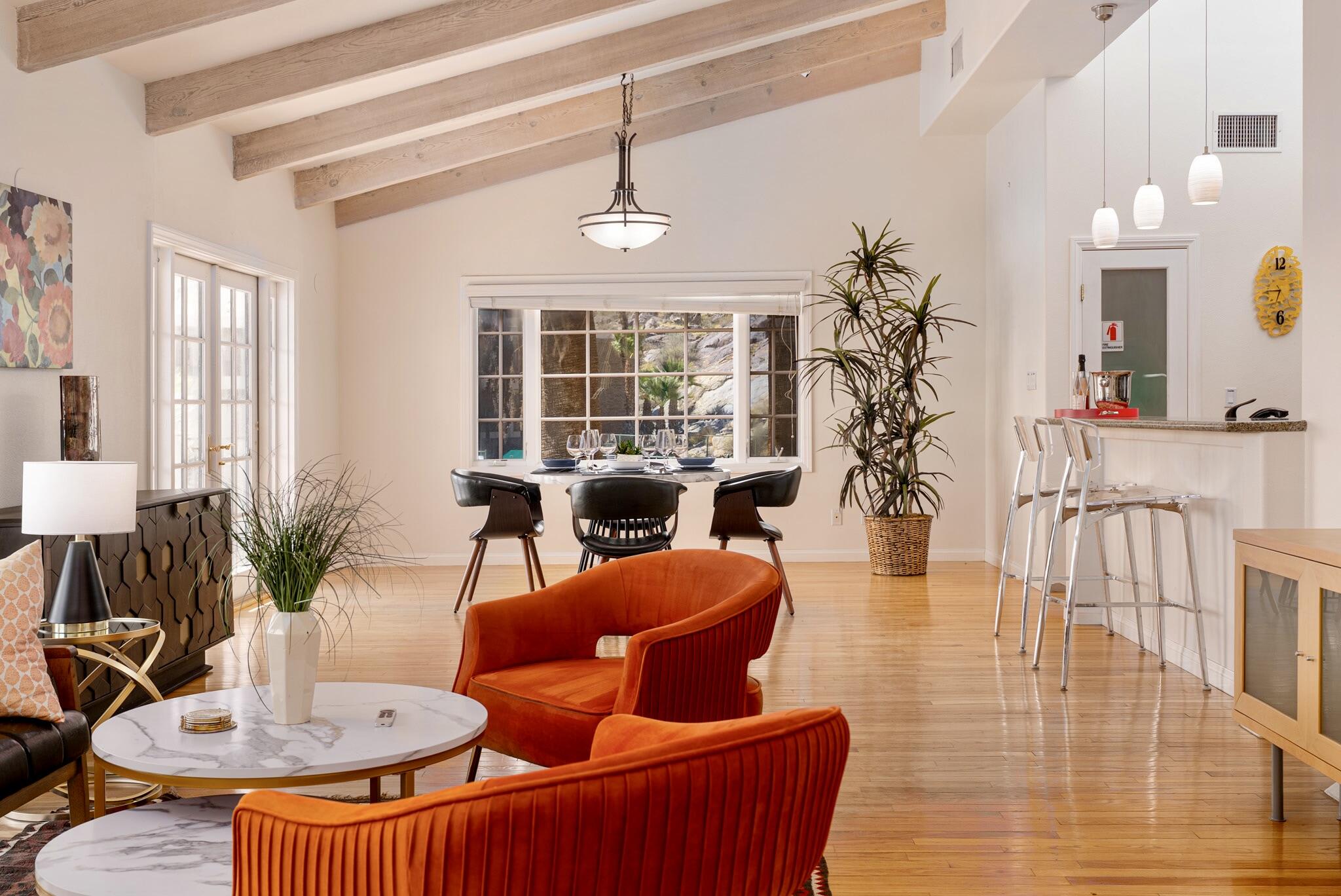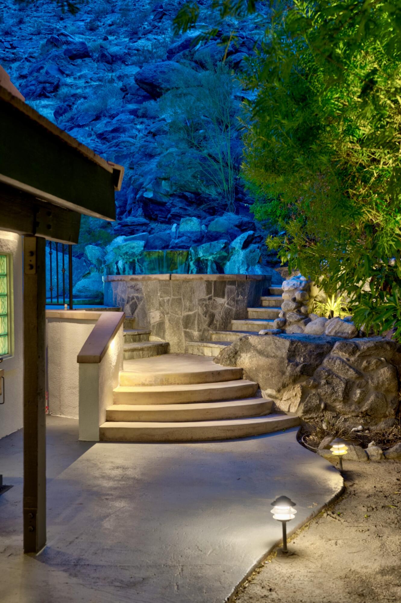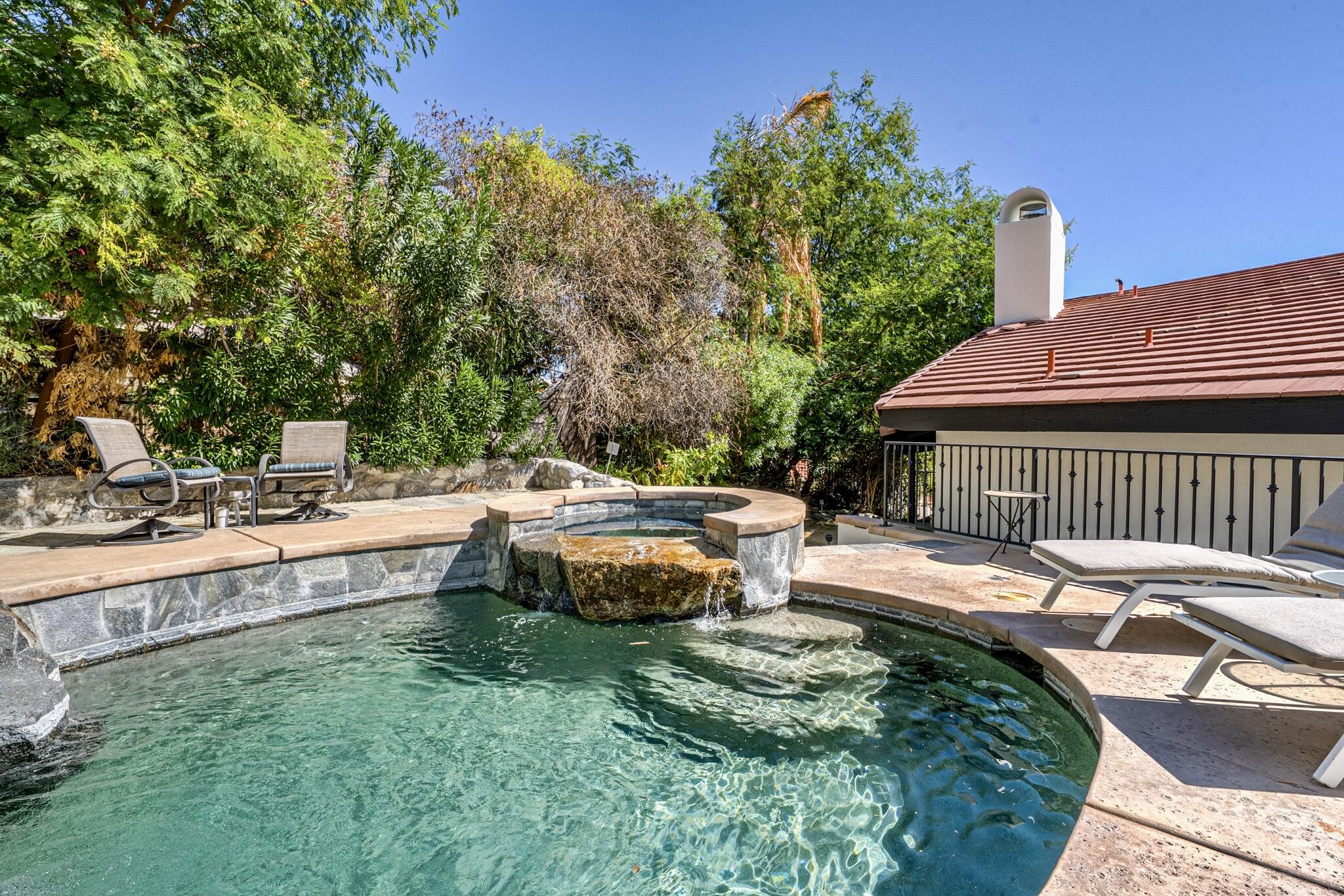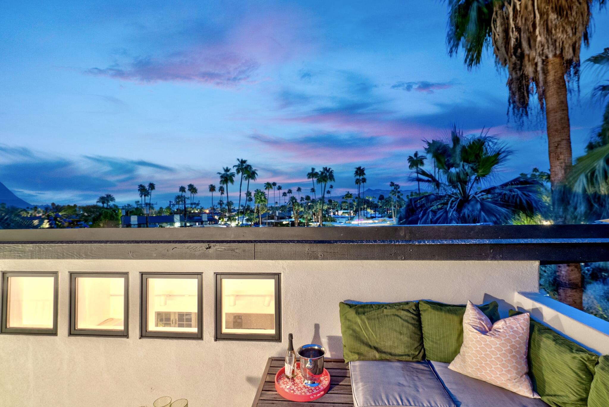 Tucked away in one of the most desirable and highly sought-after enclave of the Historic Tennis Club neighborhood. Adjacent to the exclusive 29 Colony, this is where you can unwind and enjoy the true Palm Springs life-style, surrounded by the dramatic and calming San Jacinto mountains. Between the unique hillside location, the impressive grotto-like pool & spa carved in the rocks, and the magnificent back drop mountain views, this home is truly special. With picturesque landscape and Mediterranean modern design, this house sits in one of the best locations, ideal for long term residency, or vacation rental with incredible income producing potential. Originally designed with two bedrooms on the main level and two smaller rooms below, current layout has a total of 3BDR,3BA with the luxury master with fireplace and ensuite bath at main level, that can easily be converted into the original two bedrooms, if desired. Featuring soaring vaulted ceilings,exposed wood beams and open concept living space, this home offers an updated kitchen with breakfast bar, french doors and high clerestory windows to capture an abundance of natural light with views from each corner. Adding to the charm are the hardwood floors, the front & side porches, including a private inconspicuous roof-top deck, perfect for treating yourself with a book or simply absorb the sunset's energy.The 2Car garage has additional large space that could be connected to one of the bedroom to create a casita. No HOA, Owned solar system.Interested in this Listing?
