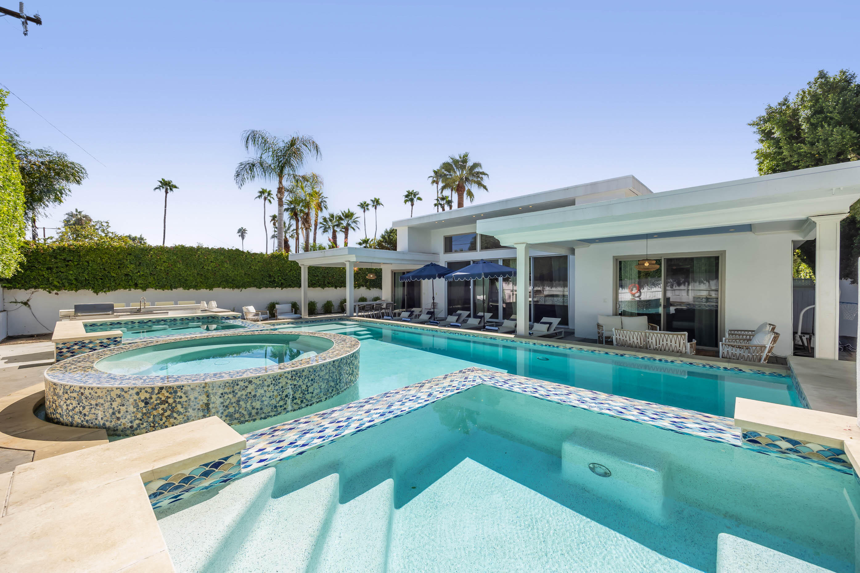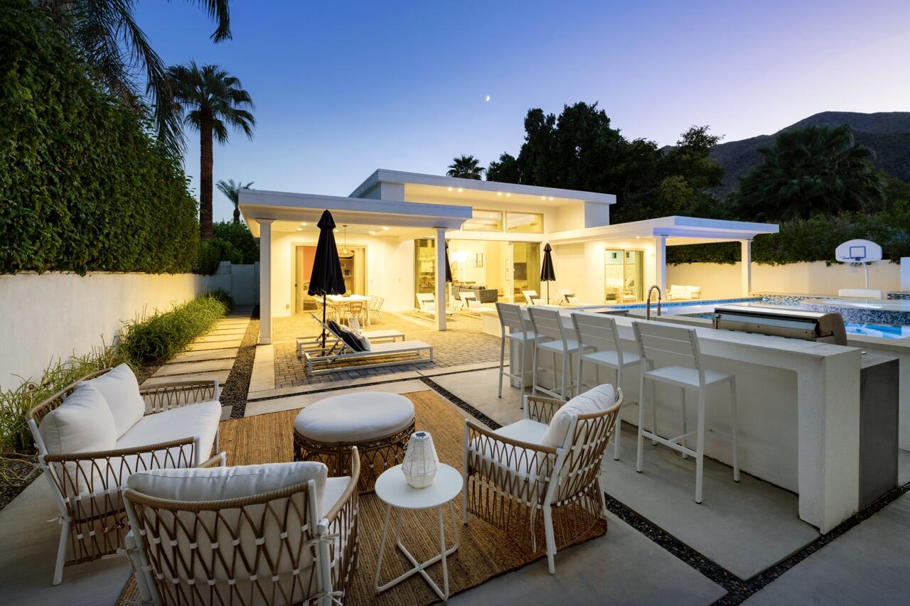 IMMEDIATELY AVAILABLE. READY TO GO. MOVE IN READY. FURNISHED. 5-Bedroom Oasis in Tahquitz River Estates - A True Entertainer's Dream!Discover your personal paradise in this modern 5-bedroom, 4-bathroom home, perfectly situated in the highly sought-after Tahquitz River Estates neighborhood. Built in 2018, this nearly 2,800 square-foot home combines contemporary design with a playful, luxurious lifestyle.Key Features include: Spacious open-concept living area with soaring high ceilings and clerestory windows, bathing the home in natural light. Chef's dream kitchen with custom cabinetry, upgraded appliances, and ample counter space--perfect for entertaining or gourmet cooking at home. 5 bedrooms including 3 en-suite bedrooms provide privacy and comfort for family or guests.Gorgeous backyard retreat with a sparkling custom pool, spa, built-in barbecue, and multiple shaded patio areas--ideal for hosting gatherings or enjoying peaceful evenings. Located on a large 9,583 square-foot lot with breathtaking mountain views, offering the quintessential Palm Springs experience.**Location**: Just minutes from downtown Palm Springs, you'll enjoy quick access to top-rated restaurants, upscale shopping, art galleries, and scenic hiking trails. Whether you're looking for a permanent residence, vacation home, or short-term rental investment, this property offers a unique blend of luxury, fun, and convenience. An Iconic Palm Springs Getaway.Interested in this Listing?