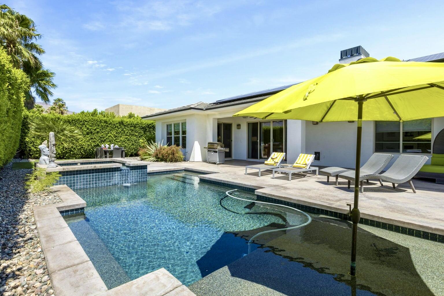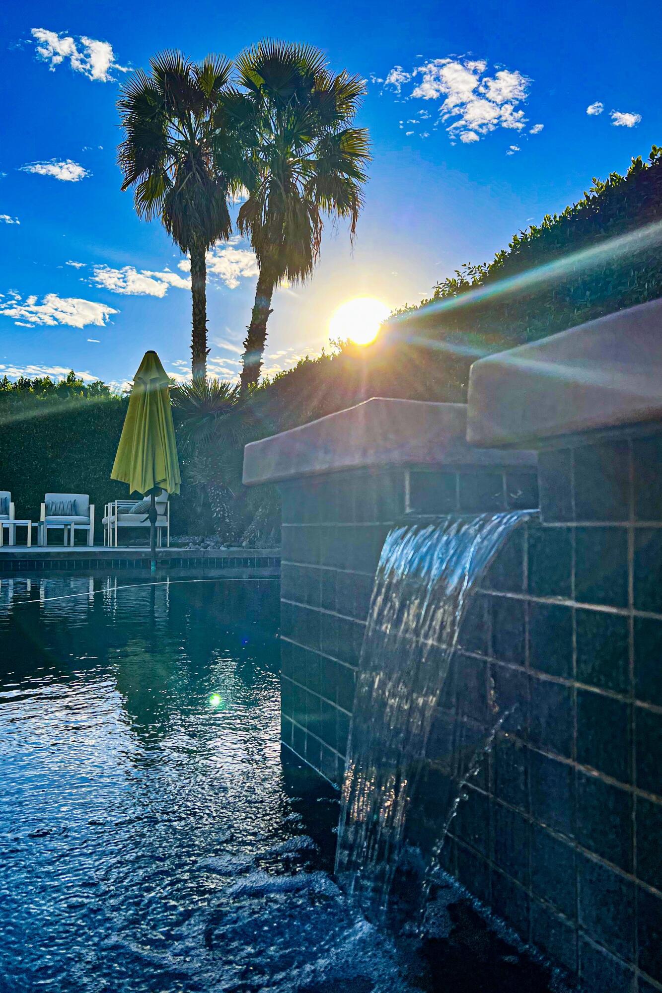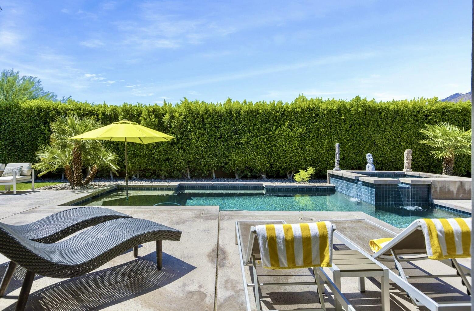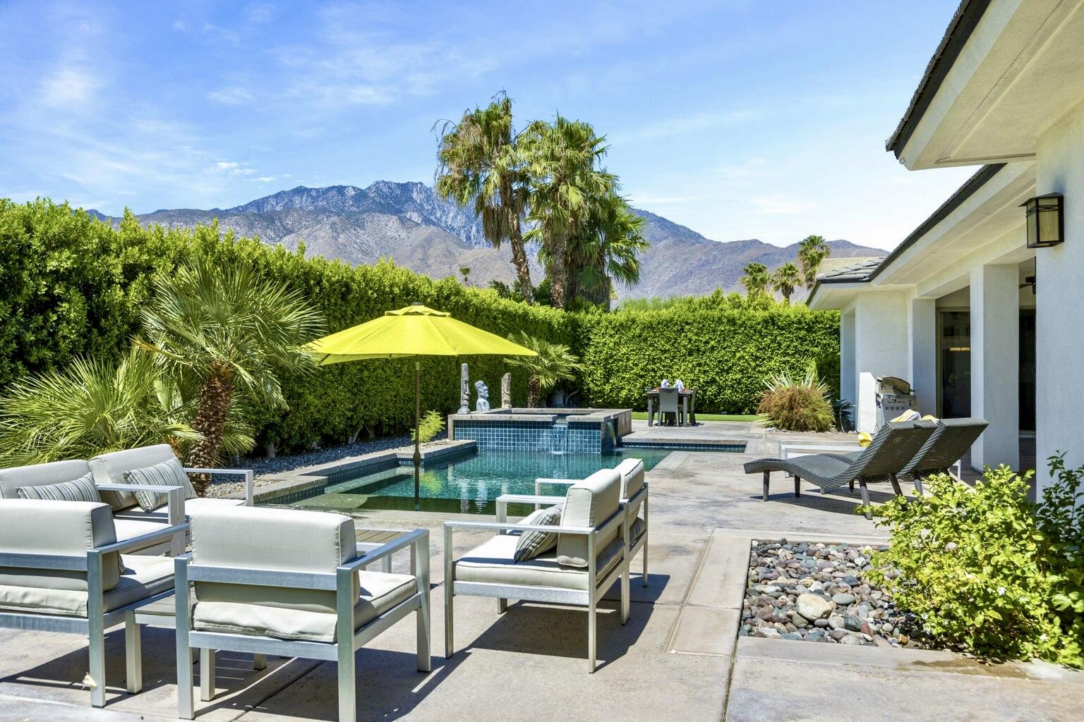 Discover breathtaking west mountain views from the serene backyard paradise of this exquisite home in Enclave at Sunrise! Dive into the beautifully designed Pebble-Tec saline pool and unwind in the inviting spa, all set against a backdrop of stunning sunsets. The meticulously maintained entertaining areas make it ideal for gatherings, while the charming front entry courtyard warmly welcomes you to this remarkable retreat. Step into this inviting home featuring vibrant sandstone-concrete tiles! The gourmet kitchen boasts an expansive island, double ovens, stainless-steel appliances, and stunning slab granite counters. It seamlessly connects to the great room, perfect for hosting. Enjoy meals in the charming dining area or relax by the fireplace in the cozy living space--ideal for unforgettable moments! Imagine stepping into a home where each of the three inviting bedrooms boasts its own pristine ensuite bathroom, offering the perfect blend of comfort and privacy. The thoughtful design continues with a stylish powder room and a flexible den that can easily serve as a sitting area or office, providing endless possibilities to suit your lifestyle. Plus, a dedicated laundry room and a spacious double garage. This home truly has it all, combining functionality with a welcoming atmosphere. Embrace the vibrant Palm Springs lifestyle with this stunning property featuring owned solar! This is your chance to own not just a home, but the LAND itself!Interested in this Listing?
