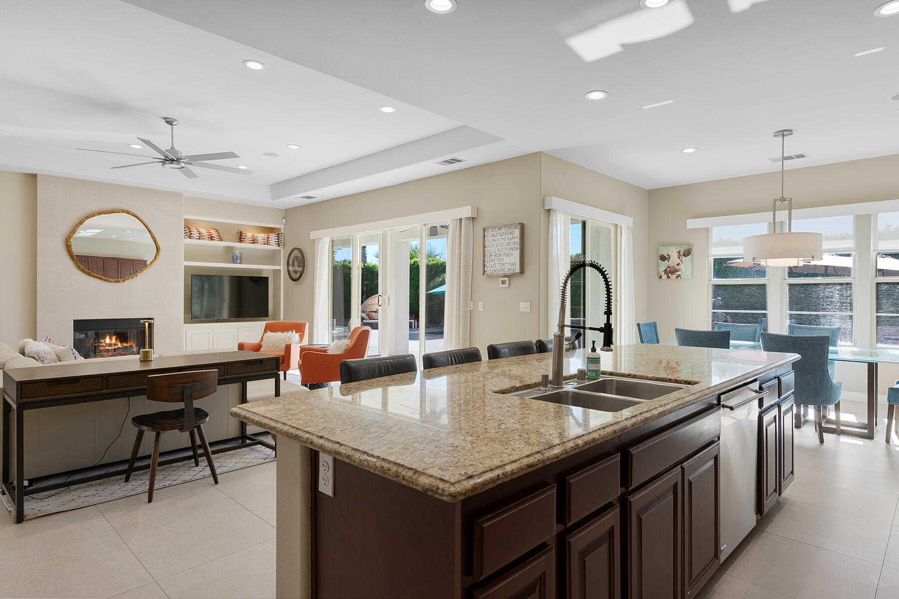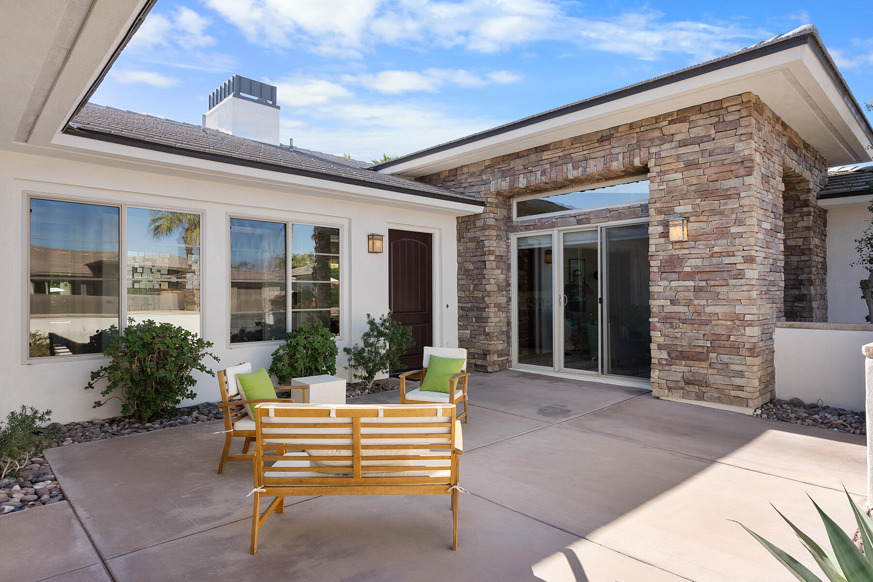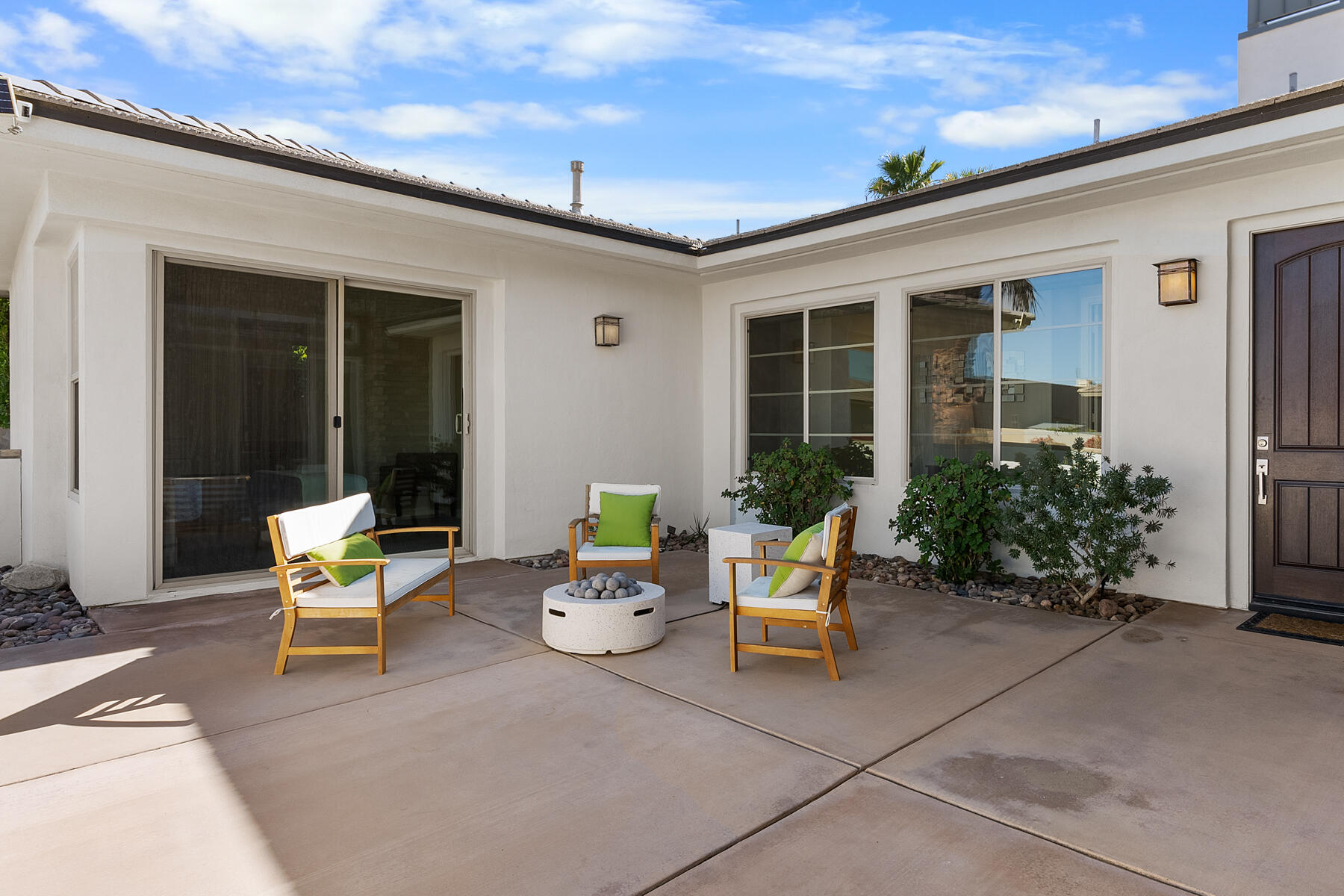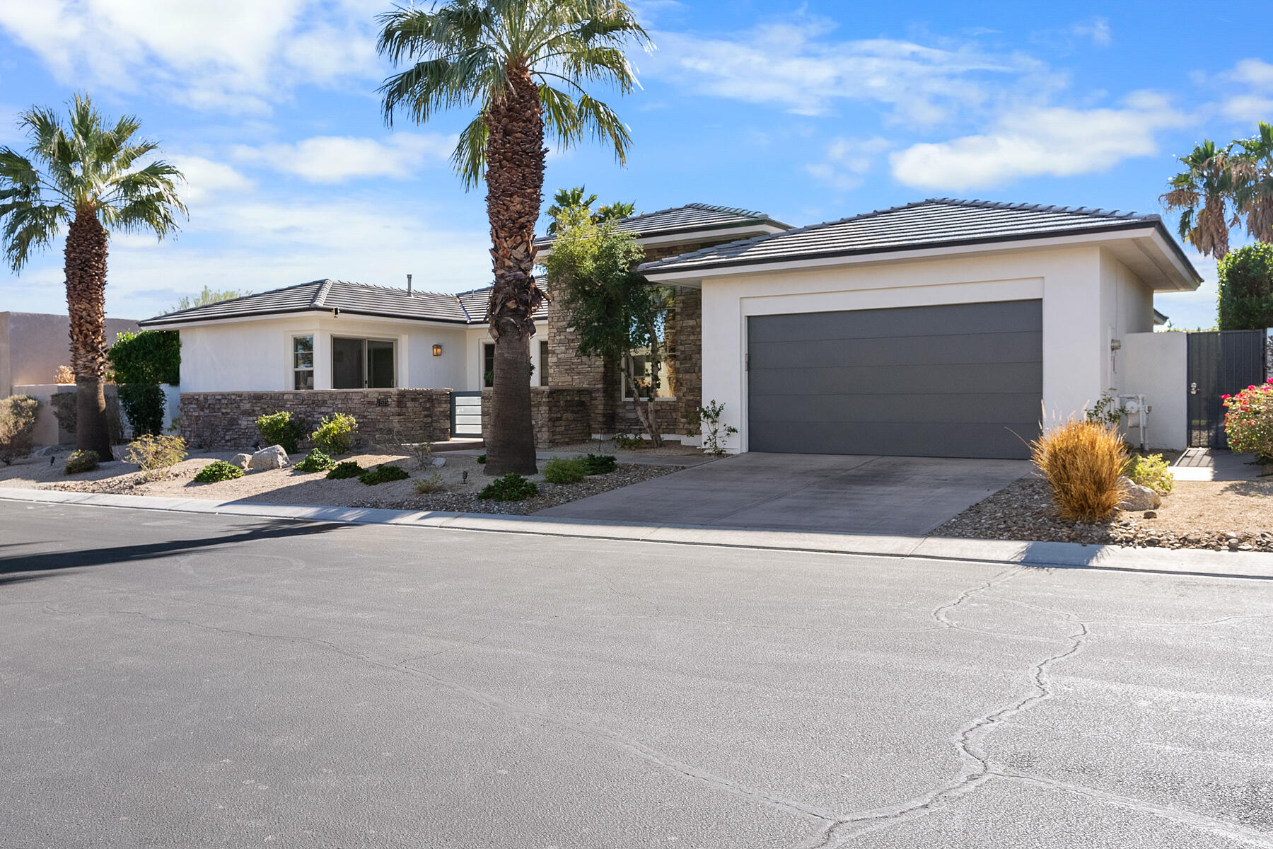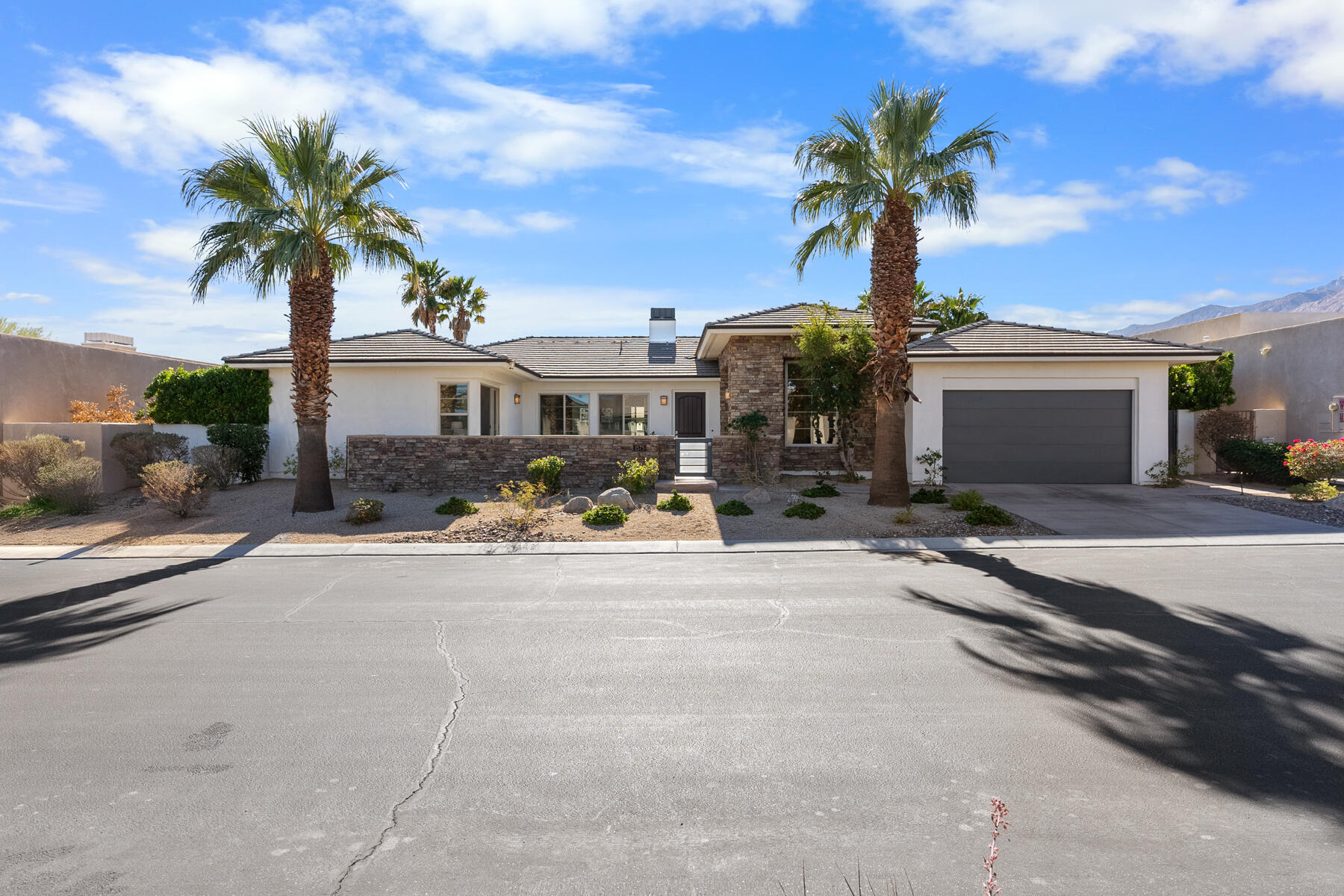 Discover breathtaking west mountain views from the serene backyard paradise of this exquisite home in Enclave at Sunrise! Dive into the beautifully designed Pebble-Tec saline pool and unwind in the inviting spa, all set against a backdrop of stunning sunsets. The meticulously maintained entertaining areas make it ideal for gatherings, while the charming front entry courtyard warmly welcomes you to this remarkable retreat. Step into this inviting home featuring vibrant sandstone-concrete tiles! The gourmet kitchen boasts an expansive island, double ovens, stainless-steel appliances, and stunning slab granite counters. It seamlessly connects to the great room, perfect for hosting. Enjoy meals in the charming dining area or relax by the fireplace in the cozy living space--ideal for unforgettable moments! Imagine stepping into a home where each of the three inviting bedrooms boasts its own pristine ensuite bathroom, offering the perfect blend of comfort and privacy. The thoughtful design continues with a stylish powder room and a flexible den that can easily serve as a sitting area or office, providing endless possibilities to suit your lifestyle. Plus, a dedicated laundry room and a spacious double garage. This home truly has it all, combining functionality with a welcoming atmosphere. Embrace the vibrant Palm Springs lifestyle with this stunning property featuring owned solar! This is your chance to own not just a home, but the LAND itself!Interested in this Listing?