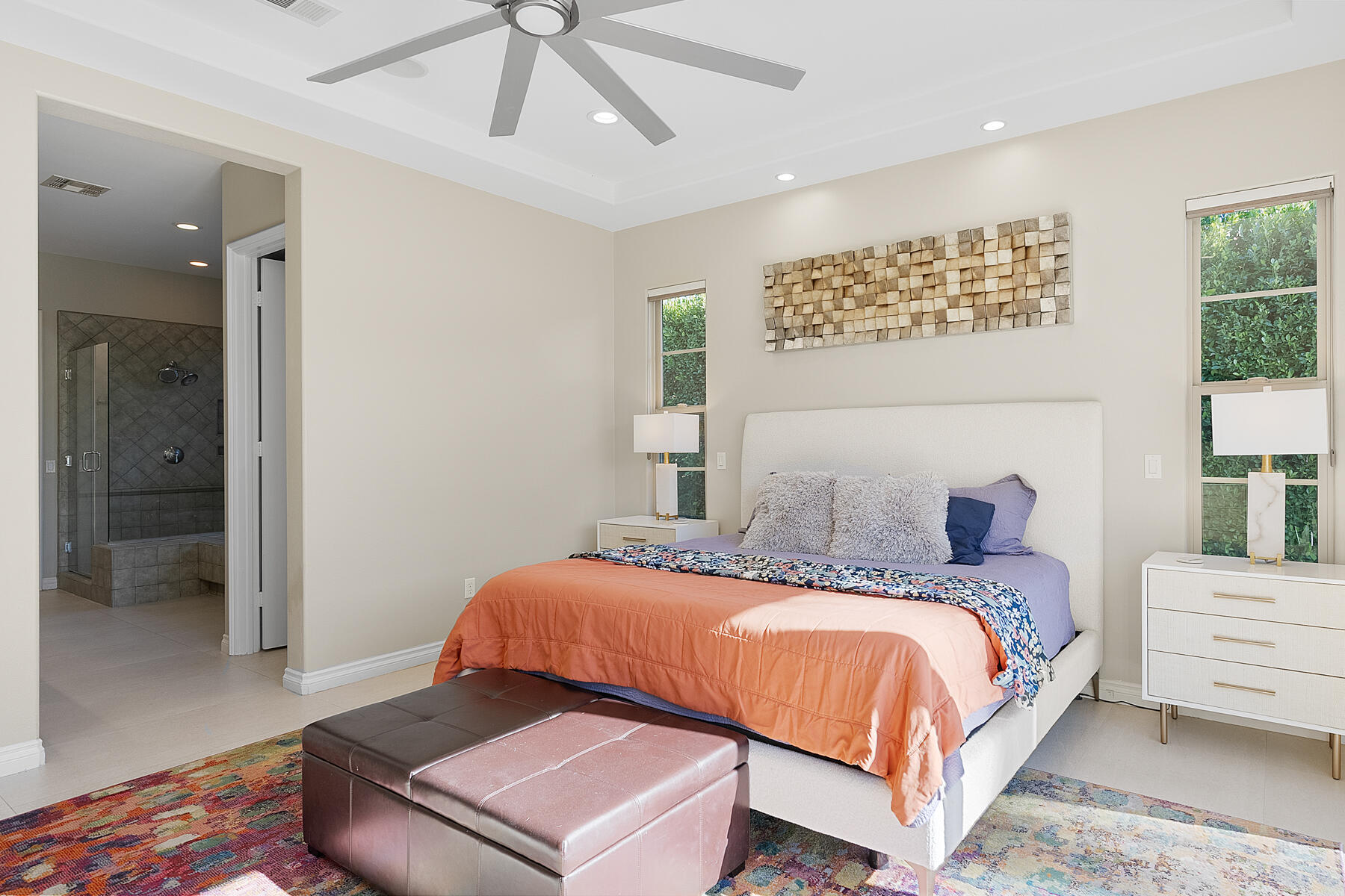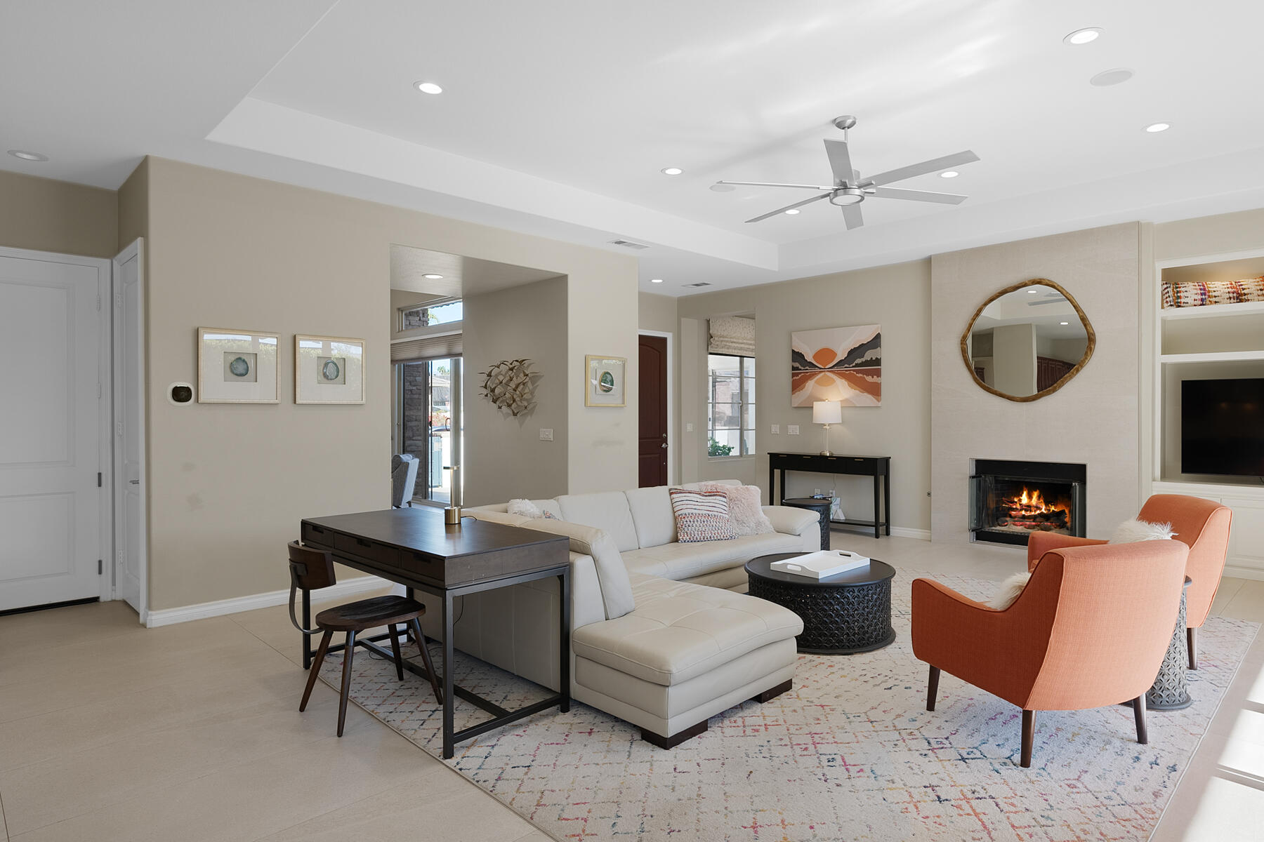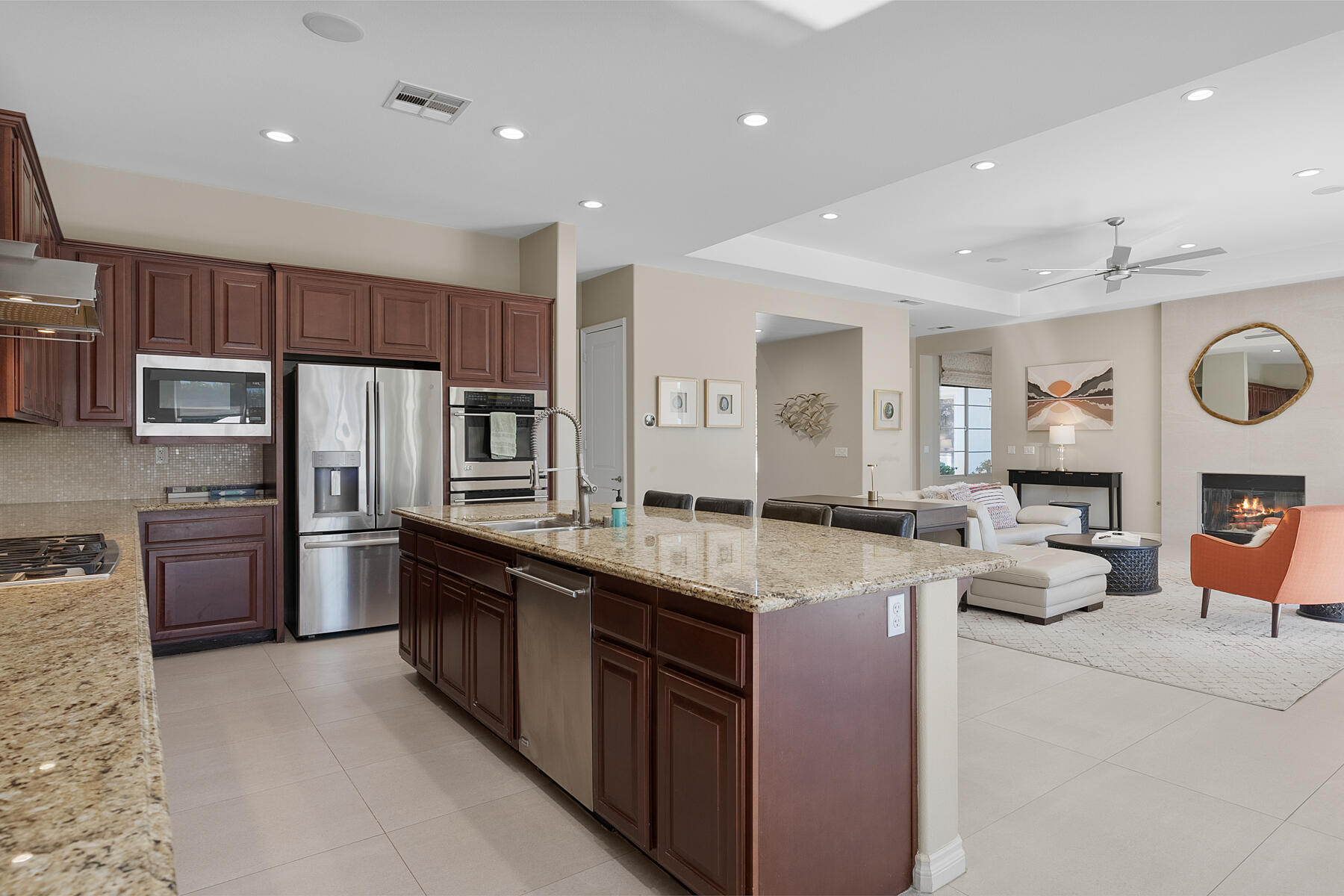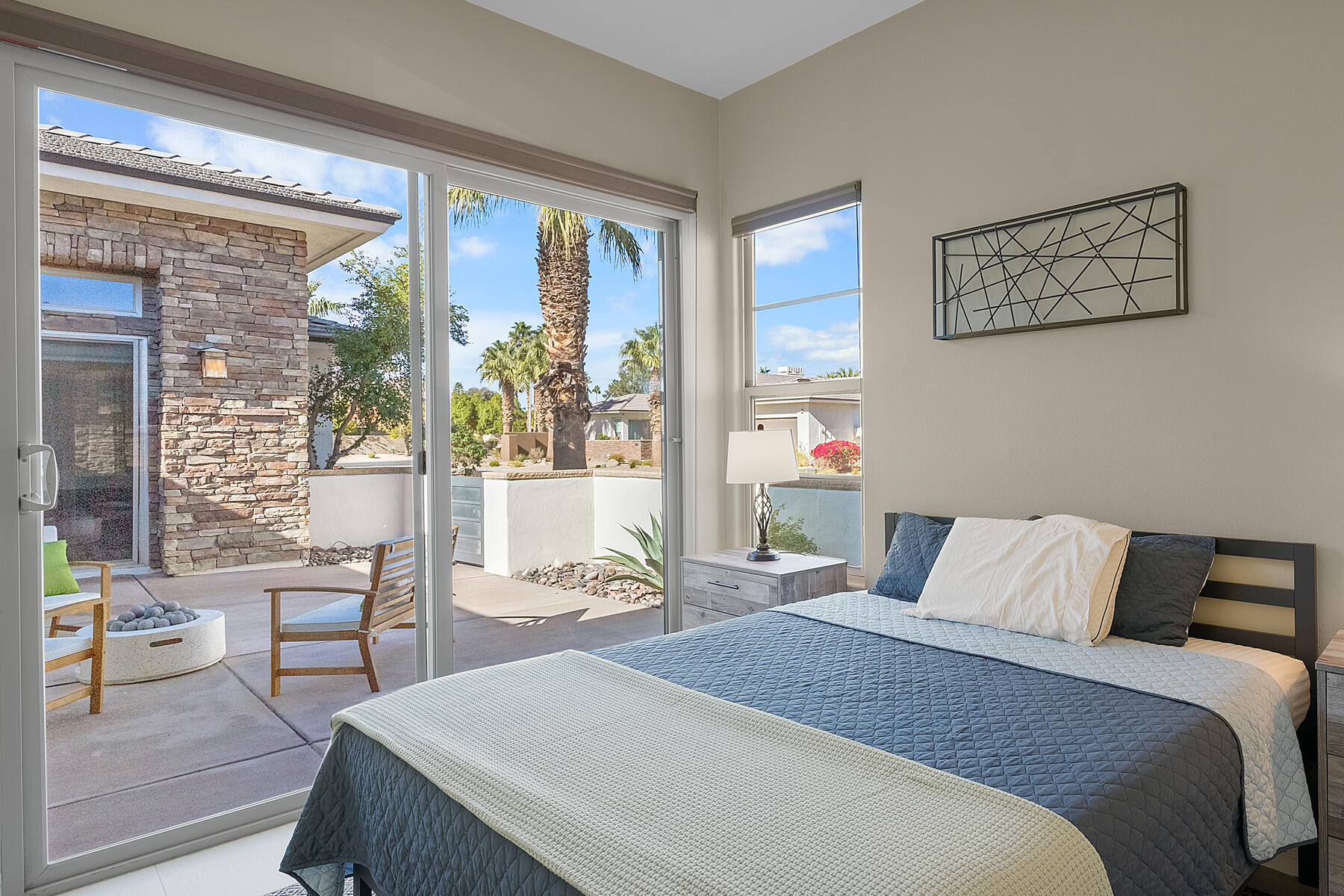 Discover breathtaking west mountain views from the serene backyard paradise of this exquisite home in Enclave at Sunrise! Dive into the beautifully designed Pebble-Tec saline pool and unwind in the inviting spa, all set against a backdrop of stunning sunsets. The meticulously maintained entertaining areas make it ideal for gatherings, while the charming front entry courtyard warmly welcomes you to this remarkable retreat. Step into this inviting home featuring vibrant sandstone-concrete tiles! The gourmet kitchen boasts an expansive island, double ovens, stainless-steel appliances, and stunning slab granite counters. It seamlessly connects to the great room, perfect for hosting. Enjoy meals in the charming dining area or relax by the fireplace in the cozy living space--ideal for unforgettable moments! Imagine stepping into a home where each of the three inviting bedrooms boasts its own pristine ensuite bathroom, offering the perfect blend of comfort and privacy. The thoughtful design continues with a stylish powder room and a flexible den that can easily serve as a sitting area or office, providing endless possibilities to suit your lifestyle. Plus, a dedicated laundry room and a spacious double garage. This home truly has it all, combining functionality with a welcoming atmosphere. Embrace the vibrant Palm Springs lifestyle with this stunning property featuring owned solar! This is your chance to own not just a home, but the LAND itself!Interested in this Listing?