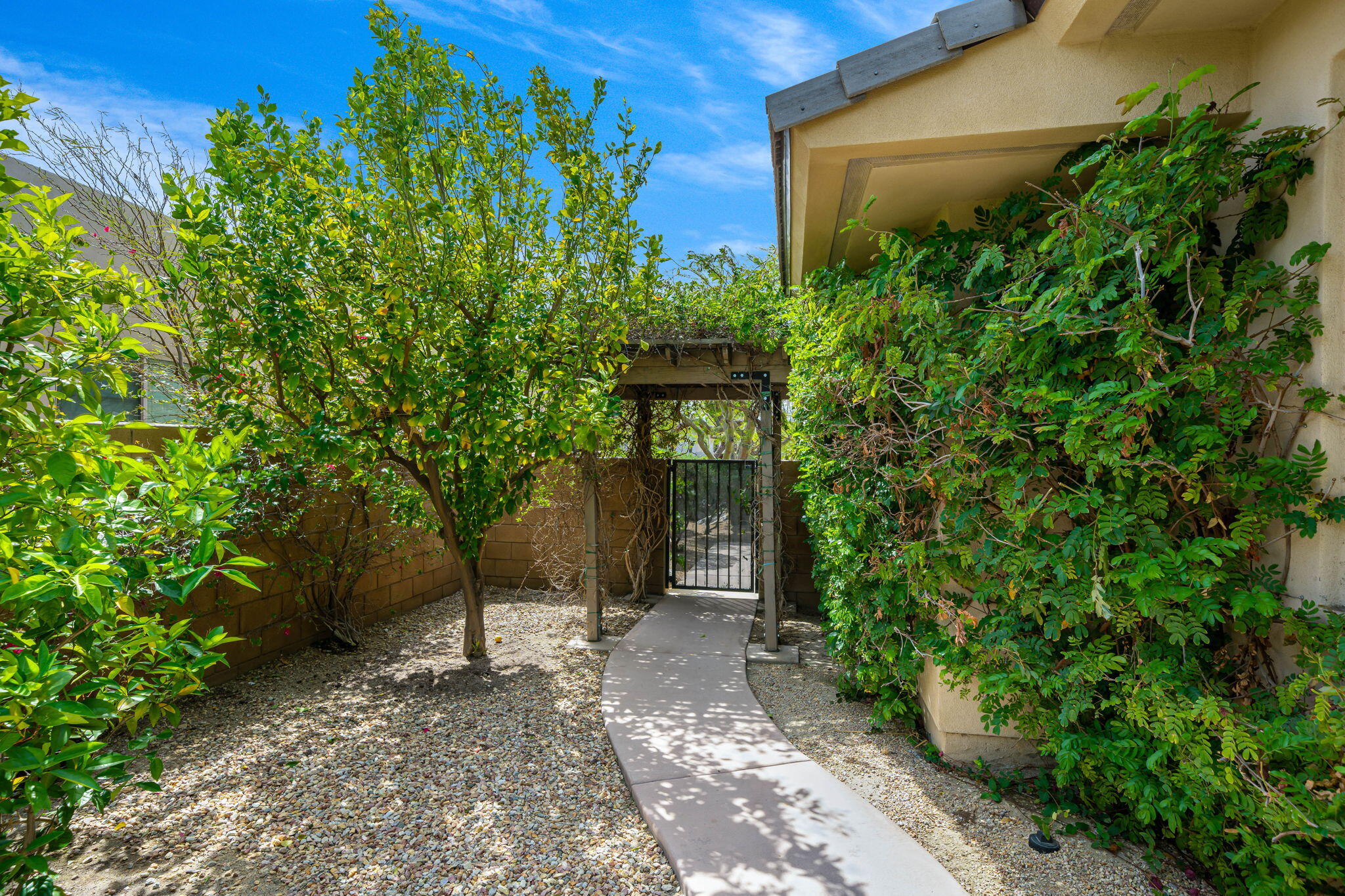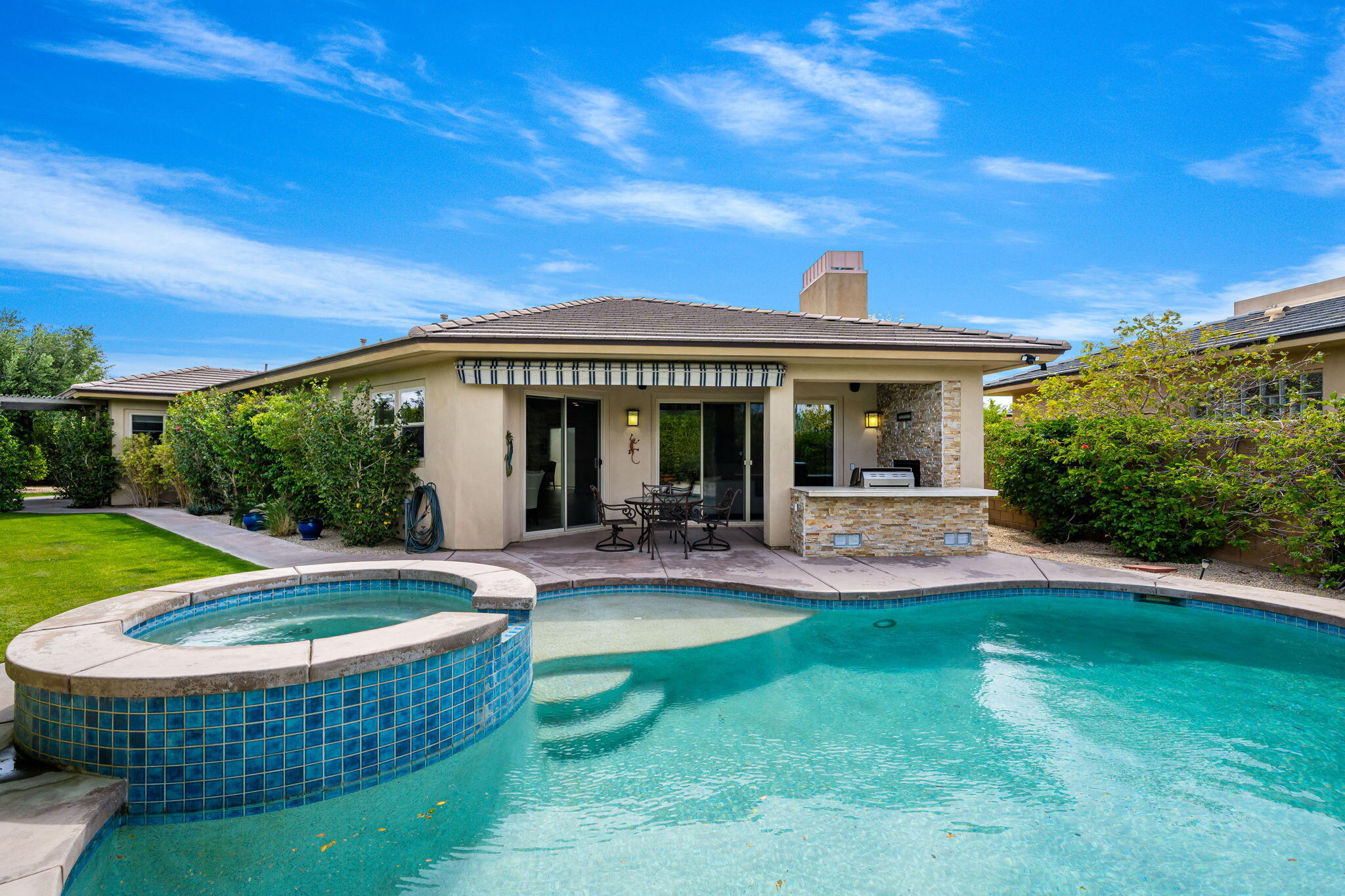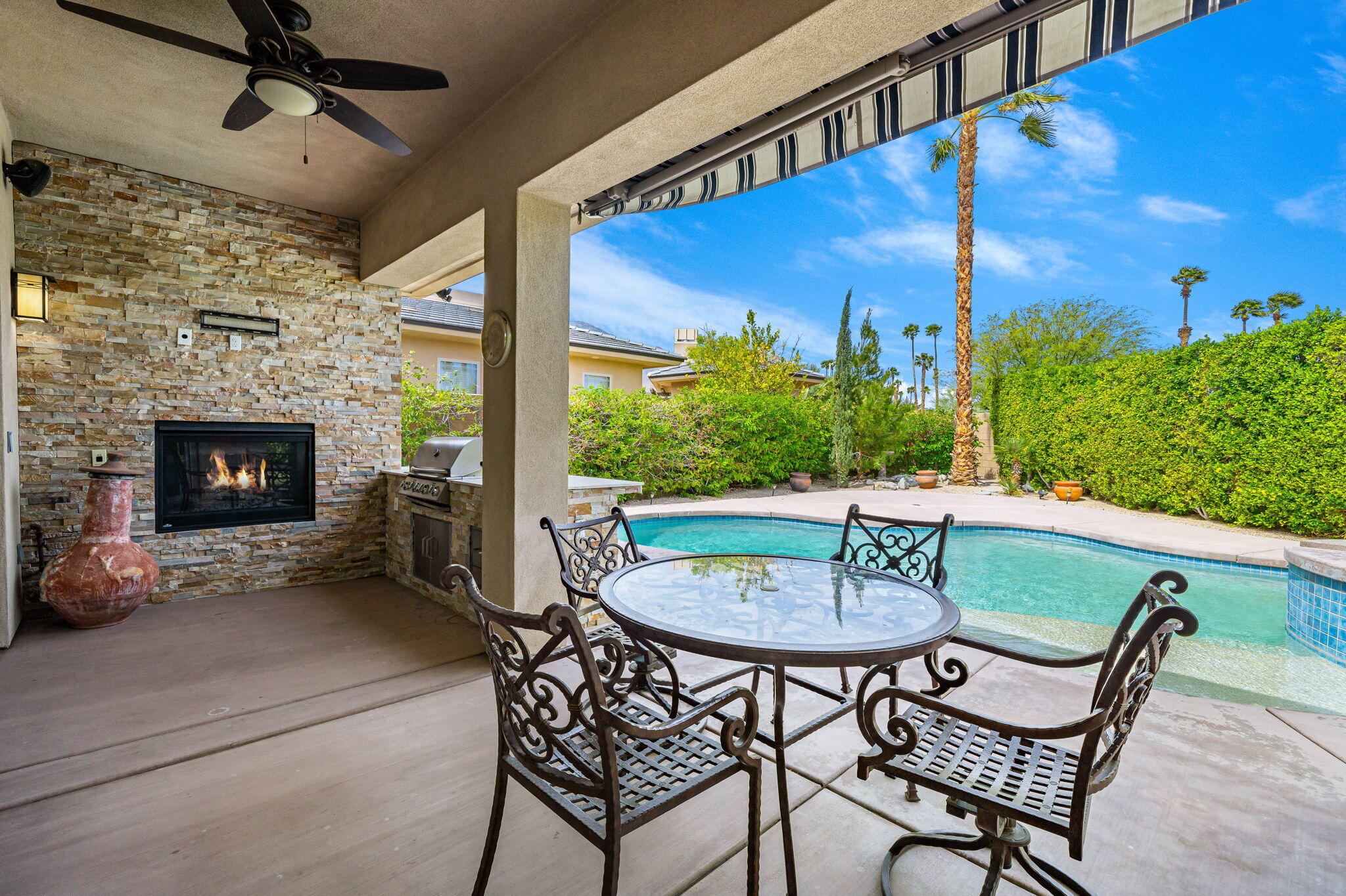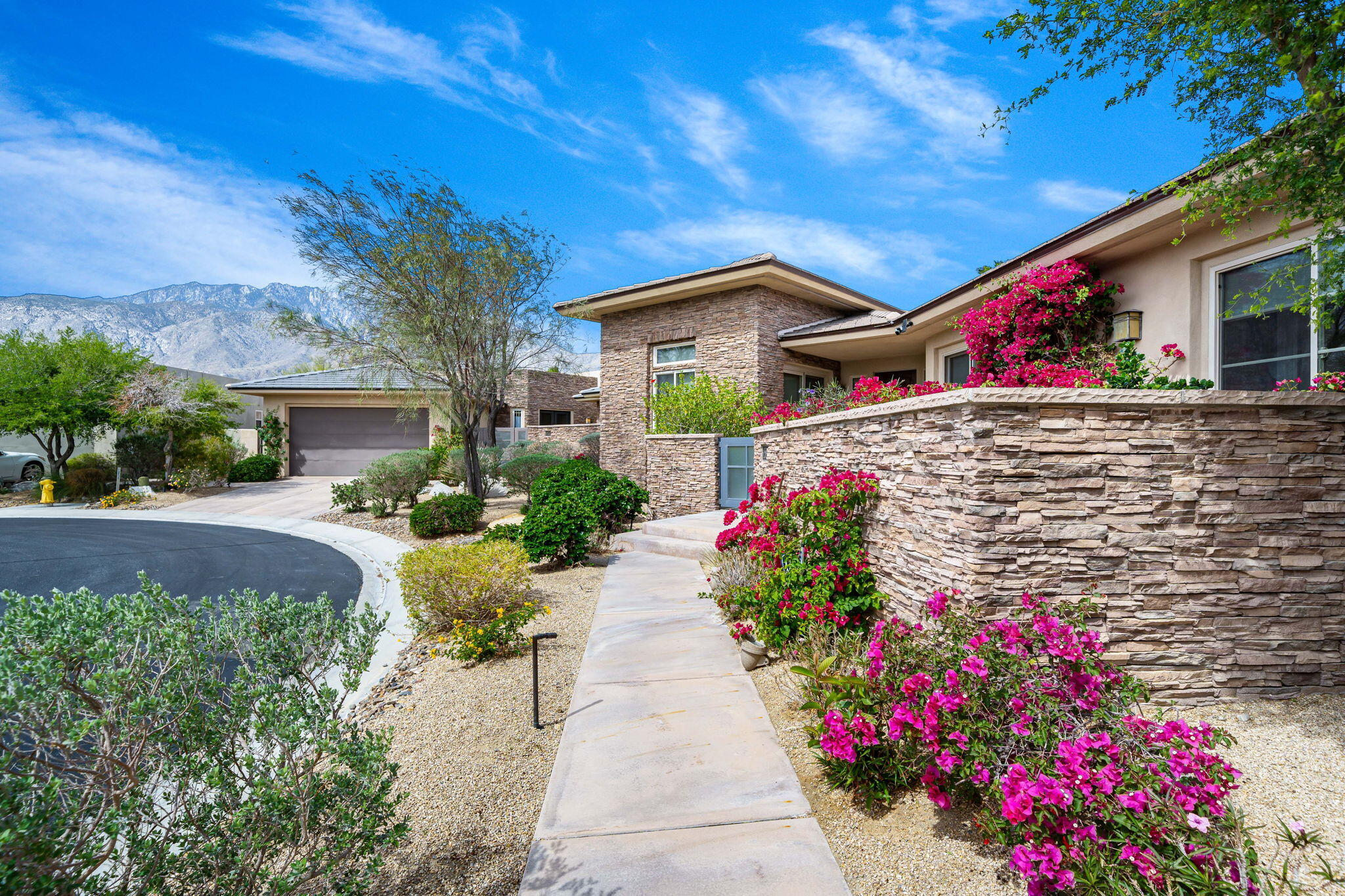 Welcome to The Enclave at Sunrise! An exquisite serene upscale cul-de-sac community of just 52 homes where timeless elegance meets modern comfort. As you approach, this home's captivating curb appeal immediately enchants with vibrant bougainvillea cascading alongside stacked stone veneer, leading you through a gated front courtyard--where the private casita entrance awaits to the left. Step inside to a light-filled interior adorned with ceiling fans, window shades, an elegant formal dining room, perfect for hosting gatherings and a seamless flow between indoor and outdoor spaces. The gourmet kitchen is a culinary dream, featuring rich wood veneer cabinetry, granite counter tops, a sleek range hood, stainless appliances including a side-by-side refrigerator, double oven, dishwasher and a large island with a divided sink for effortless meal prep. The gourmet kitchen leads into a bright dining area and spacious great room with a cozy fireplace. The sanctuary-like primary bedroom features a spacious retreat area with the primary bathroom boasting marble countertops, dual sinks, a separate shower and tub, and a spacious walk-in closet. And, the spacious ensuite guest bedroom is comfortable and perfect for guests. Outside, your personal oasis unfolds with a covered patio featuring a gas fireplace and built-in BBQ grilling station, enhanced by a retractable awning for seamless indoor-outdoor living. The sparkling pool includes a tanning shelf, surrounded by ample decking and a spa, while the lush backyard--framed by a tall Ficus hedge--offers privacy, verdant grass, and mature landscaping. A gated side yard with a charming trellis adds elegance and charm. Completed in 2013, this spectacular home blends contemporary design with resort-like amenities, from tall ceilings with beams and tile floors throughout to breathtaking San Jacinto Mountain views. Your dream home awaits. Perfect for relaxation and entertaining, this exquisite home embodies the ultimate Palm Springs lifestInterested in this Listing?