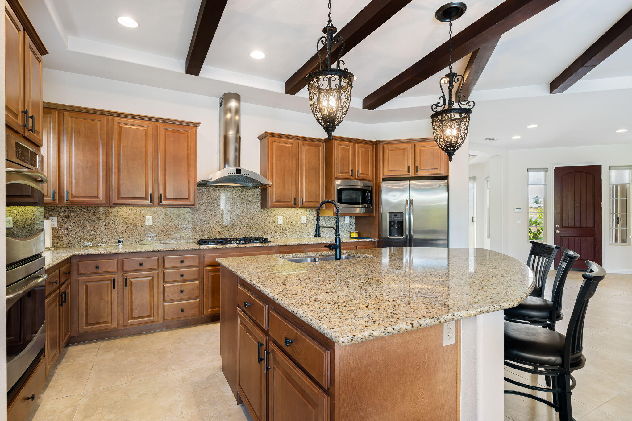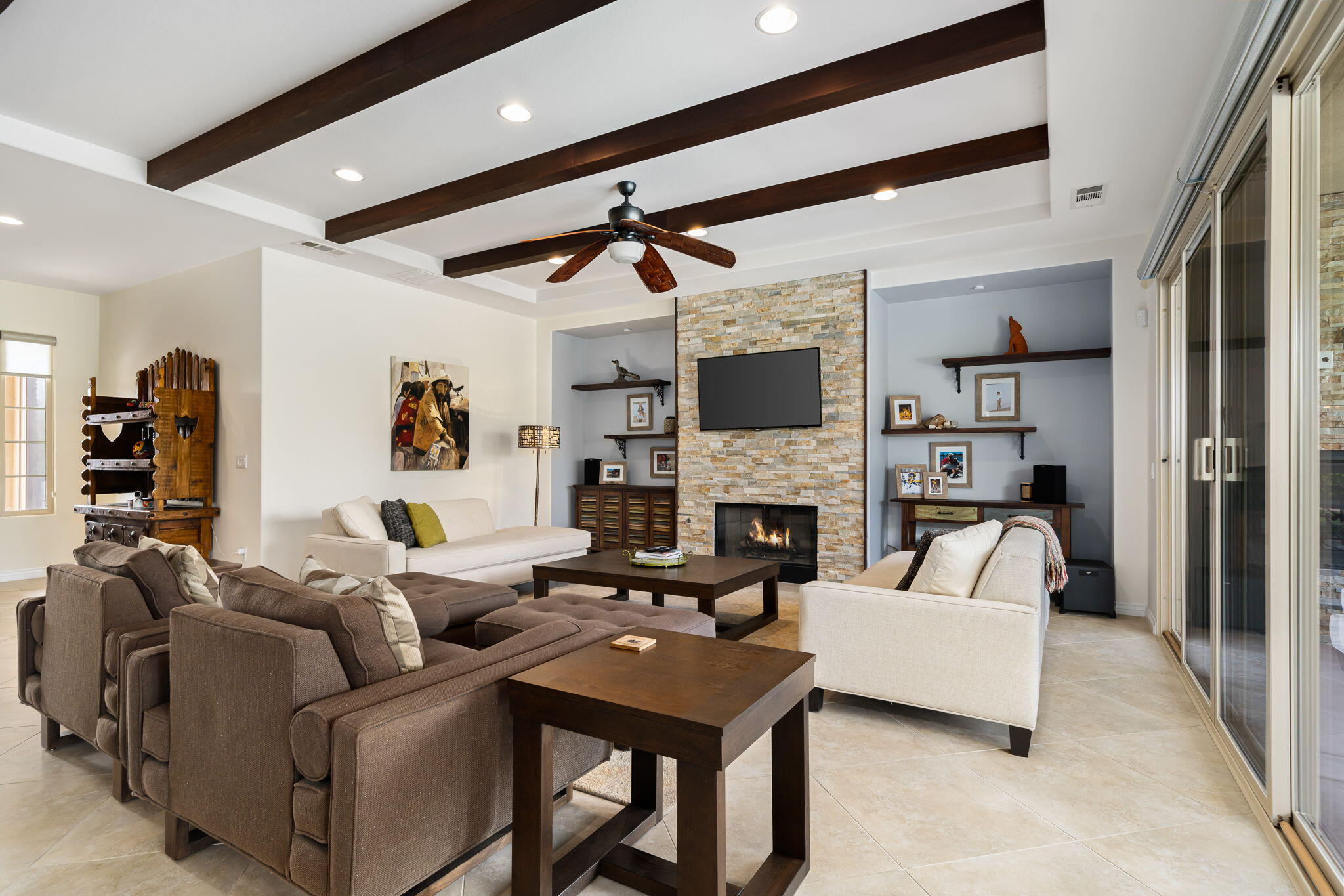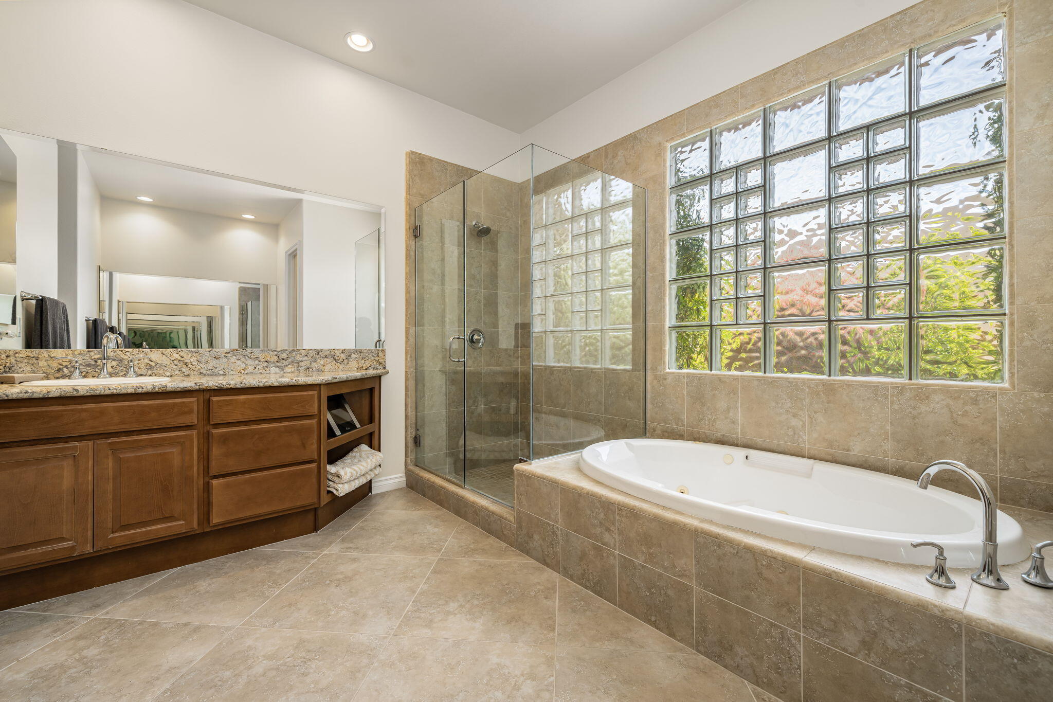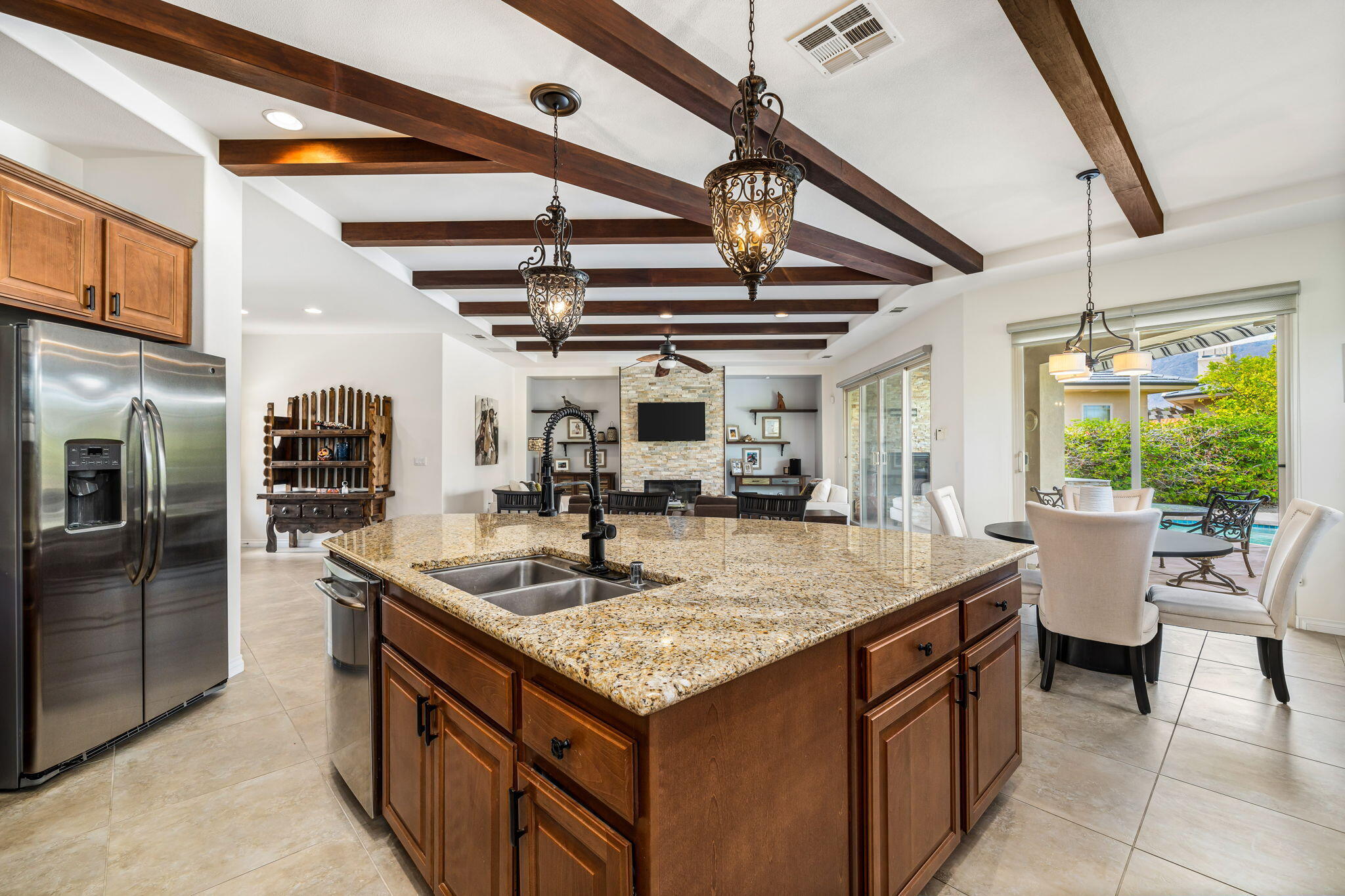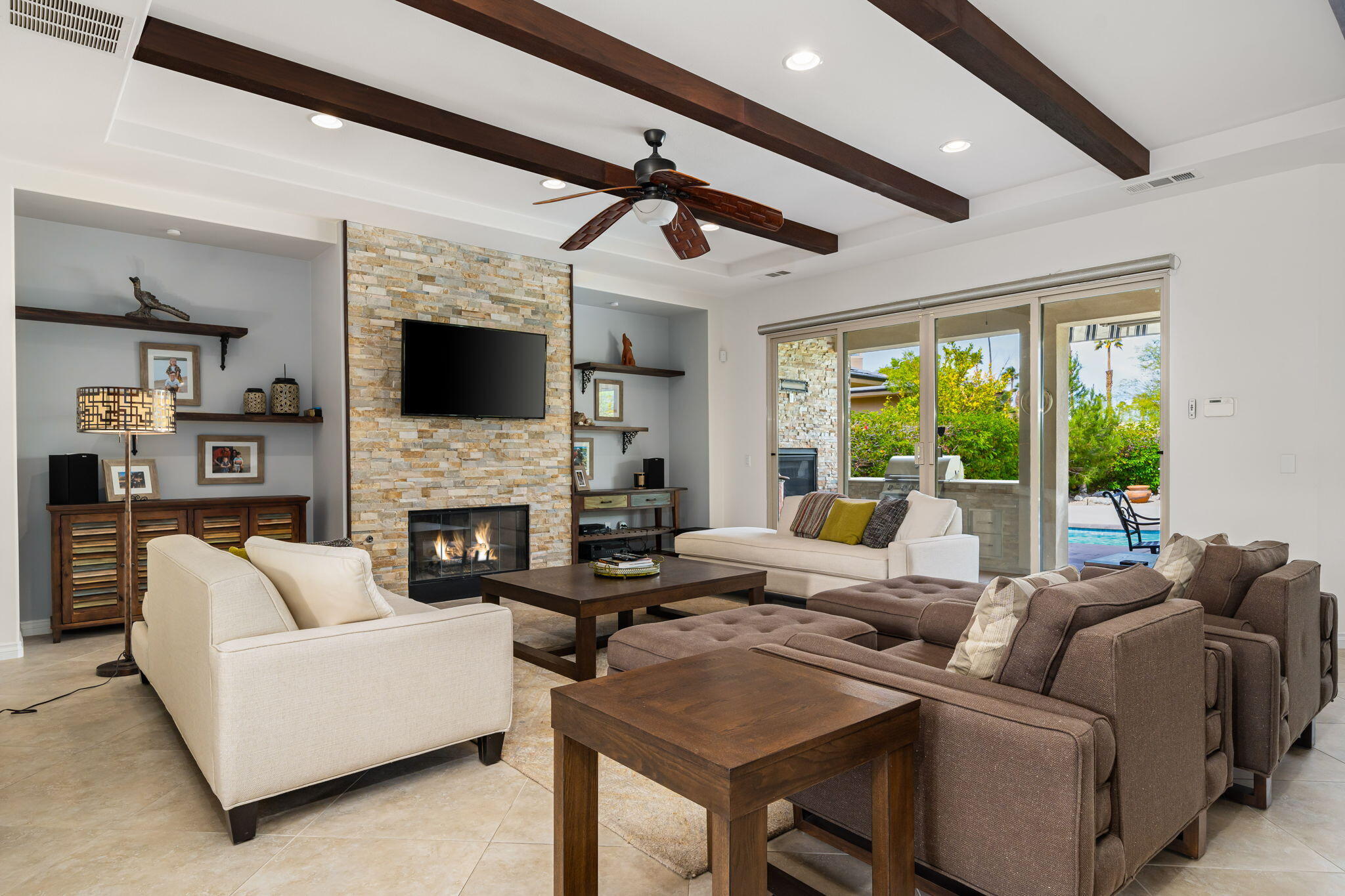 Welcome to The Enclave at Sunrise! An exquisite serene upscale cul-de-sac community of just 52 homes where timeless elegance meets modern comfort. As you approach, this home's captivating curb appeal immediately enchants with vibrant bougainvillea cascading alongside stacked stone veneer, leading you through a gated front courtyard--where the private casita entrance awaits to the left. Step inside to a light-filled interior adorned with ceiling fans, window shades, an elegant formal dining room, perfect for hosting gatherings and a seamless flow between indoor and outdoor spaces. The gourmet kitchen is a culinary dream, featuring rich wood veneer cabinetry, granite counter tops, a sleek range hood, stainless appliances including a side-by-side refrigerator, double oven, dishwasher and a large island with a divided sink for effortless meal prep. The gourmet kitchen leads into a bright dining area and spacious great room with a cozy fireplace. The sanctuary-like primary bedroom features a spacious retreat area with the primary bathroom boasting marble countertops, dual sinks, a separate shower and tub, and a spacious walk-in closet. And, the spacious ensuite guest bedroom is comfortable and perfect for guests. Outside, your personal oasis unfolds with a covered patio featuring a gas fireplace and built-in BBQ grilling station, enhanced by a retractable awning for seamless indoor-outdoor living. The sparkling pool includes a tanning shelf, surrounded by ample decking and a spa, while the lush backyard--framed by a tall Ficus hedge--offers privacy, verdant grass, and mature landscaping. A gated side yard with a charming trellis adds elegance and charm. Completed in 2013, this spectacular home blends contemporary design with resort-like amenities, from tall ceilings with beams and tile floors throughout to breathtaking San Jacinto Mountain views. Your dream home awaits. Perfect for relaxation and entertaining, this exquisite home embodies the ultimate Palm Springs lifestInterested in this Listing?