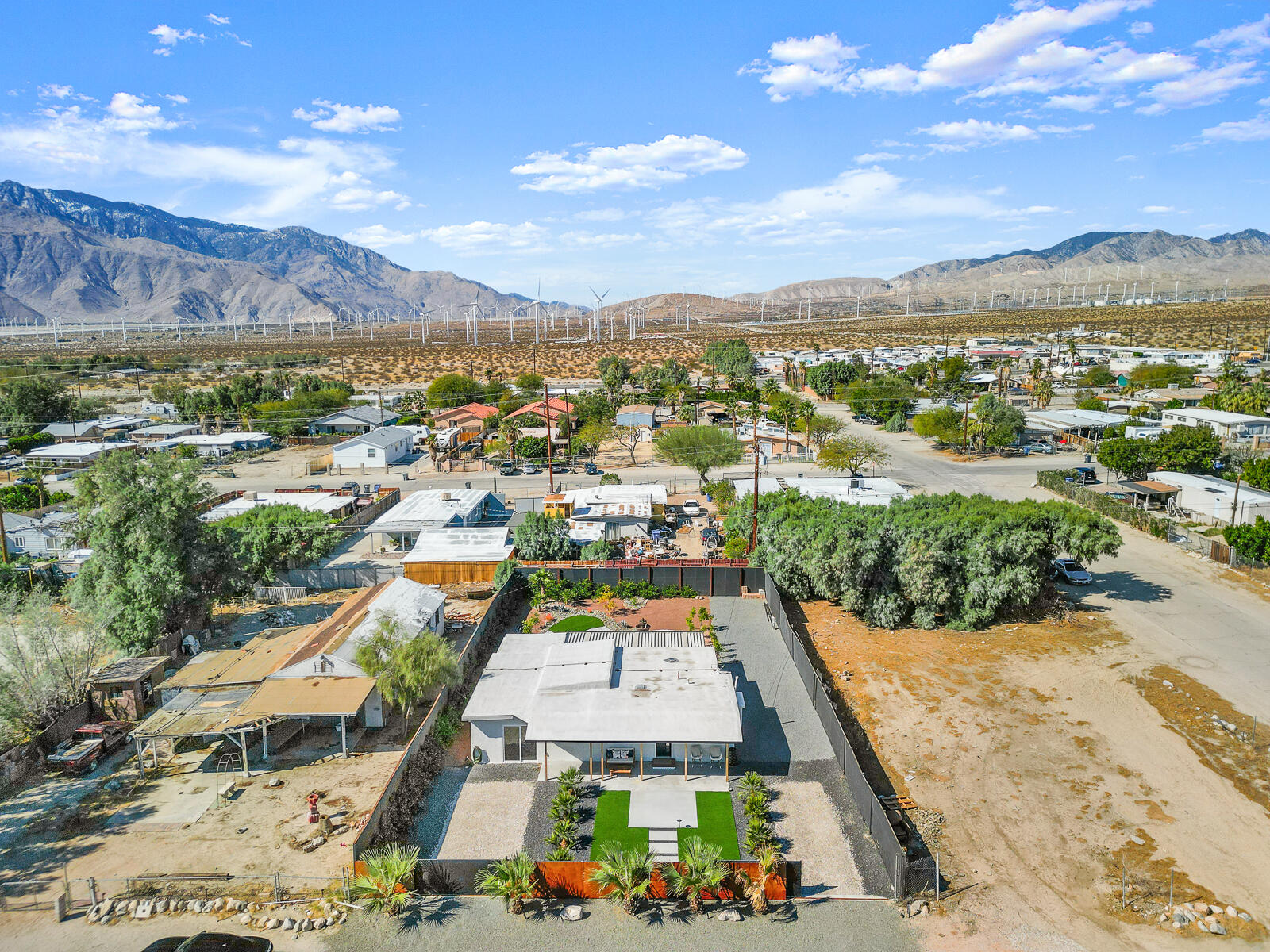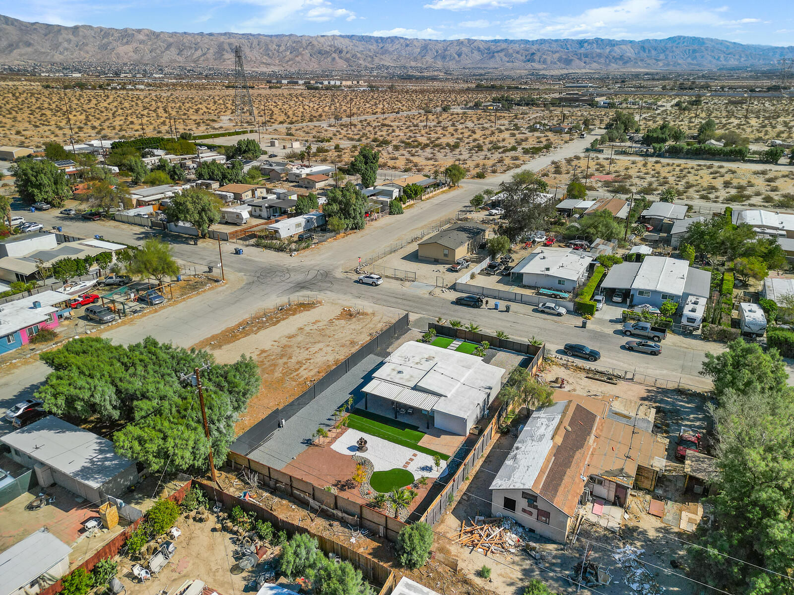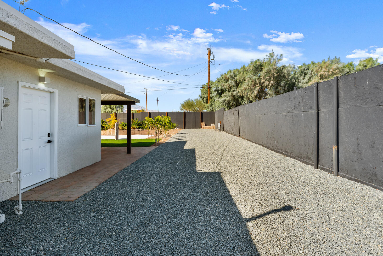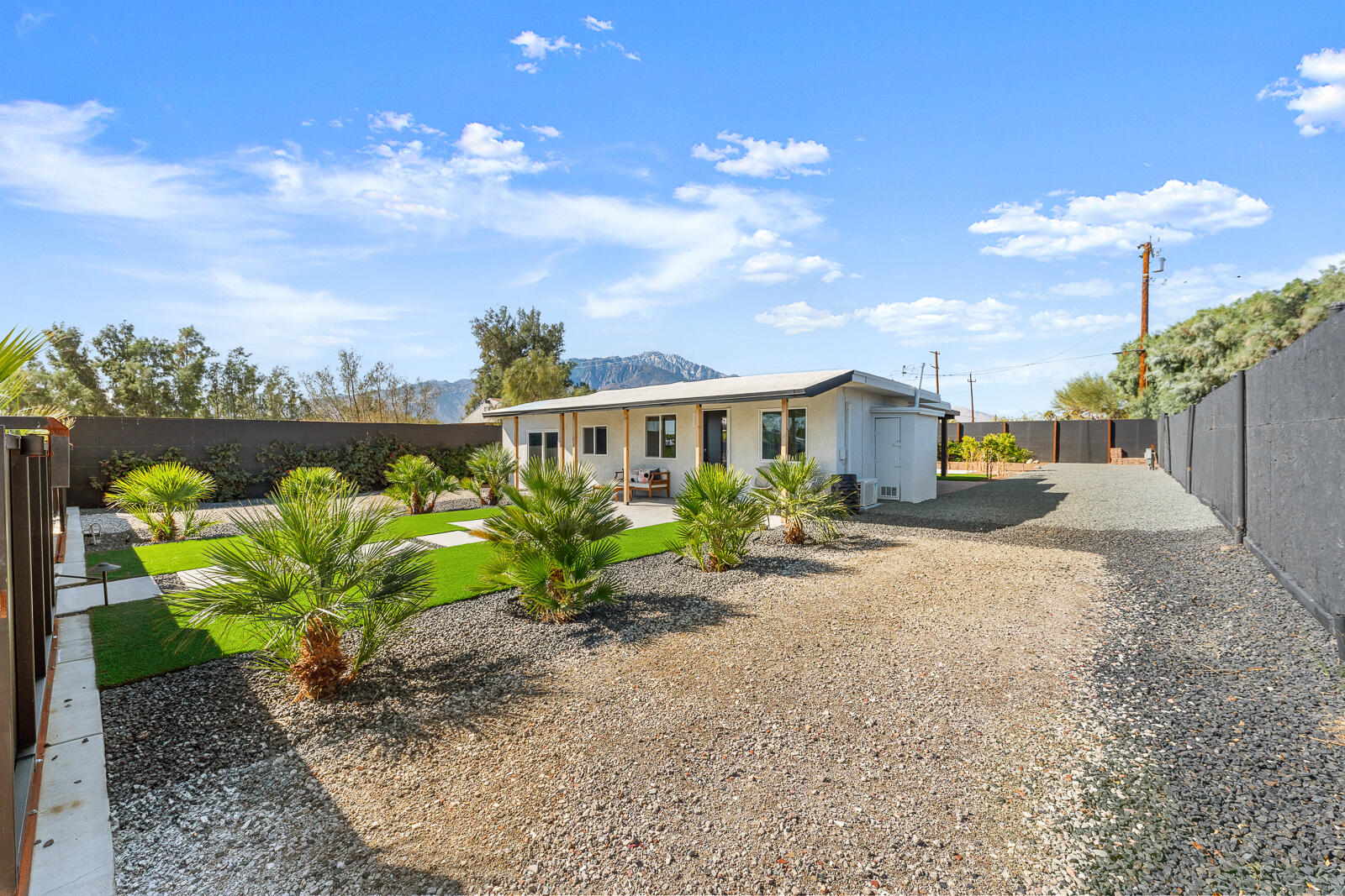 Completely Renovated Desert Oasis with Modern Finishes Discover this exceptional home, where thoughtful renovations meet sleek contemporary design. Recently remodeled for a total investment of $200,000 a remarkable achievement, thanks to the owner's hands-on approach this property has been fully transformed both inside and out. Upon entering, you'll appreciate the brand-new systems throughout, including updated plumbing, electrical work, irrigation, gas lines, and sewer lines, all designed for efficiency and peace of mind. New mini-split air conditioning units have been installed, ensuring climate control year-round. The addition of brand-new windows floods the home with natural light, enhancing the open layout. Both bathrooms and the kitchen have been stylishly remodeled with modern finishes that elevate everyday living. The interior boasts striking micro-topped concrete flooring that delivers a sophisticated and trendy aesthetic, while the master bath offers a stunning polished concrete countertop both practical and chic. Welcoming enhancements extend to the exterior, where the house has undergone a complete re-stucco, removing old wood eaves for a sleek, cohesive look, and has been freshly primed and painted both inside and out. The outdoor space is just as impressive, featuring a beautiful paver patio with a brand-new alumawood cover, complete with lighting and electrical outlets, perfect for outdoor entertaining. A tranquil water feature adds to the serene backyard environment, which is also equipped with RV hookups (20/30/50 amp). Additionally, provisions have been made for future expansion, with lines already run for a potential casita or added living space. This home perfectly blends modern convenience and stylish living, making it an unparalleled gem in the desert. Don't miss your chance to own this masterpiece.Interested in this Listing?