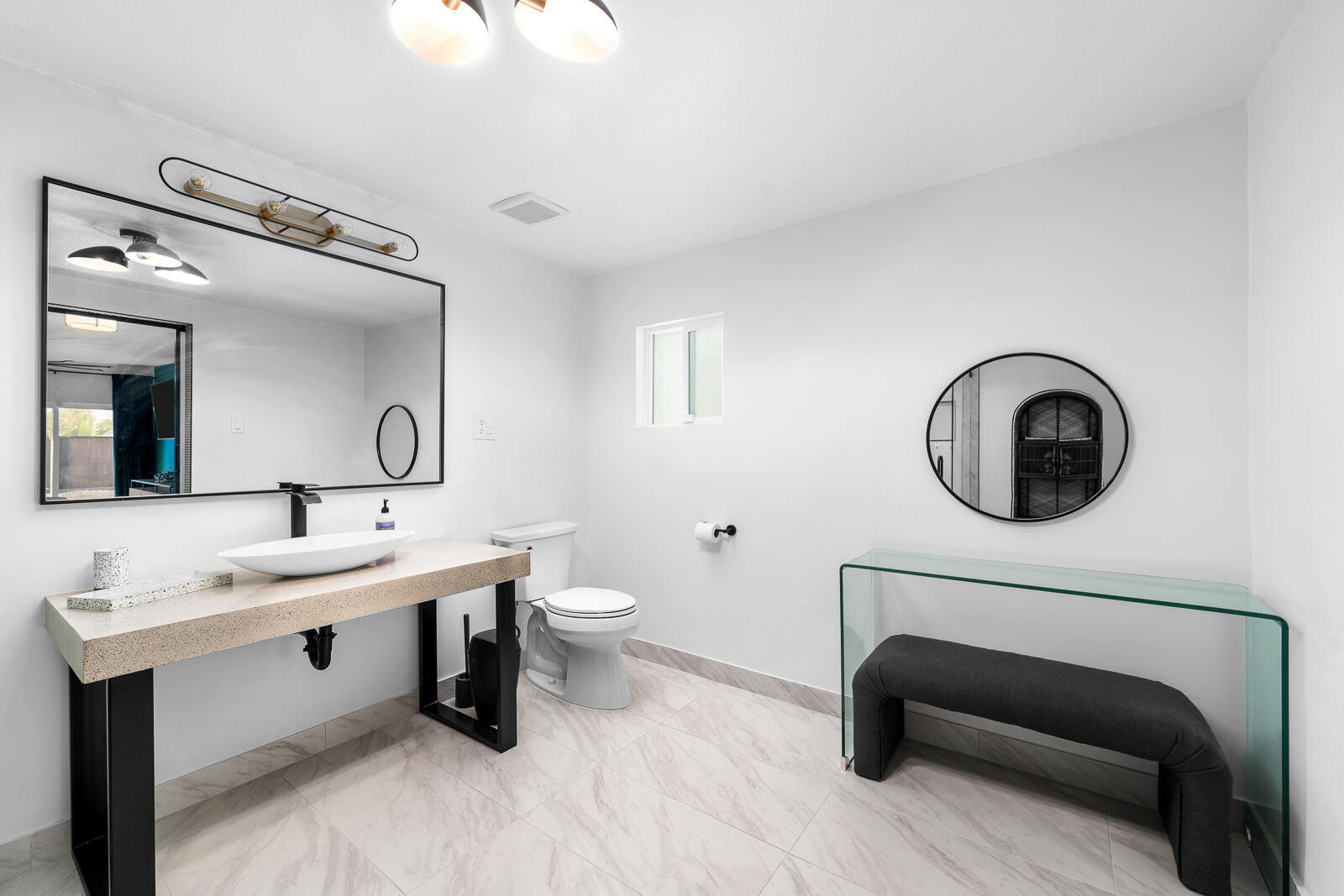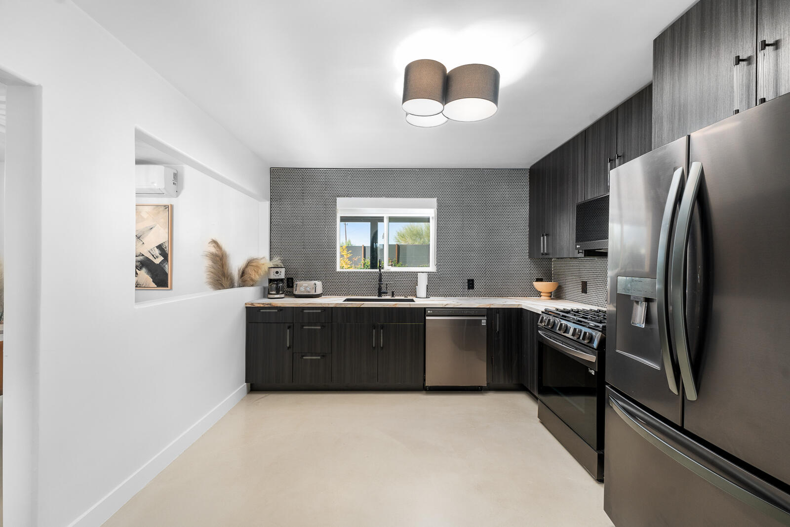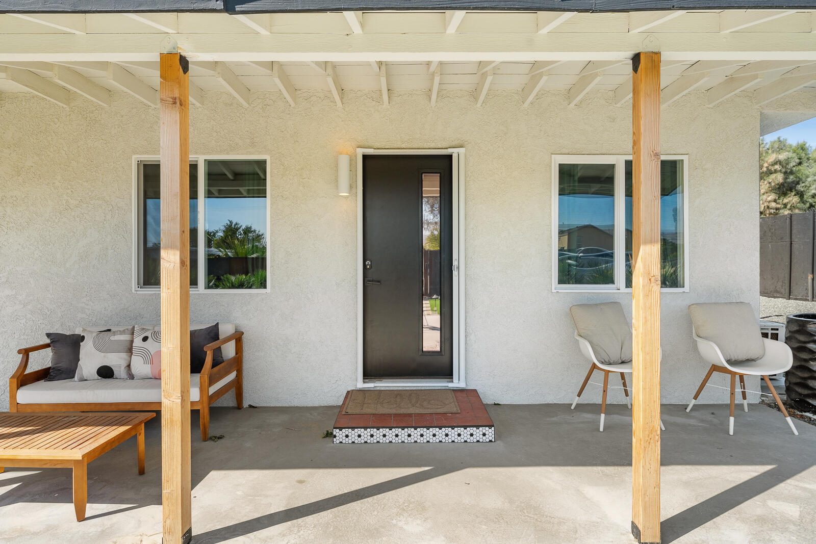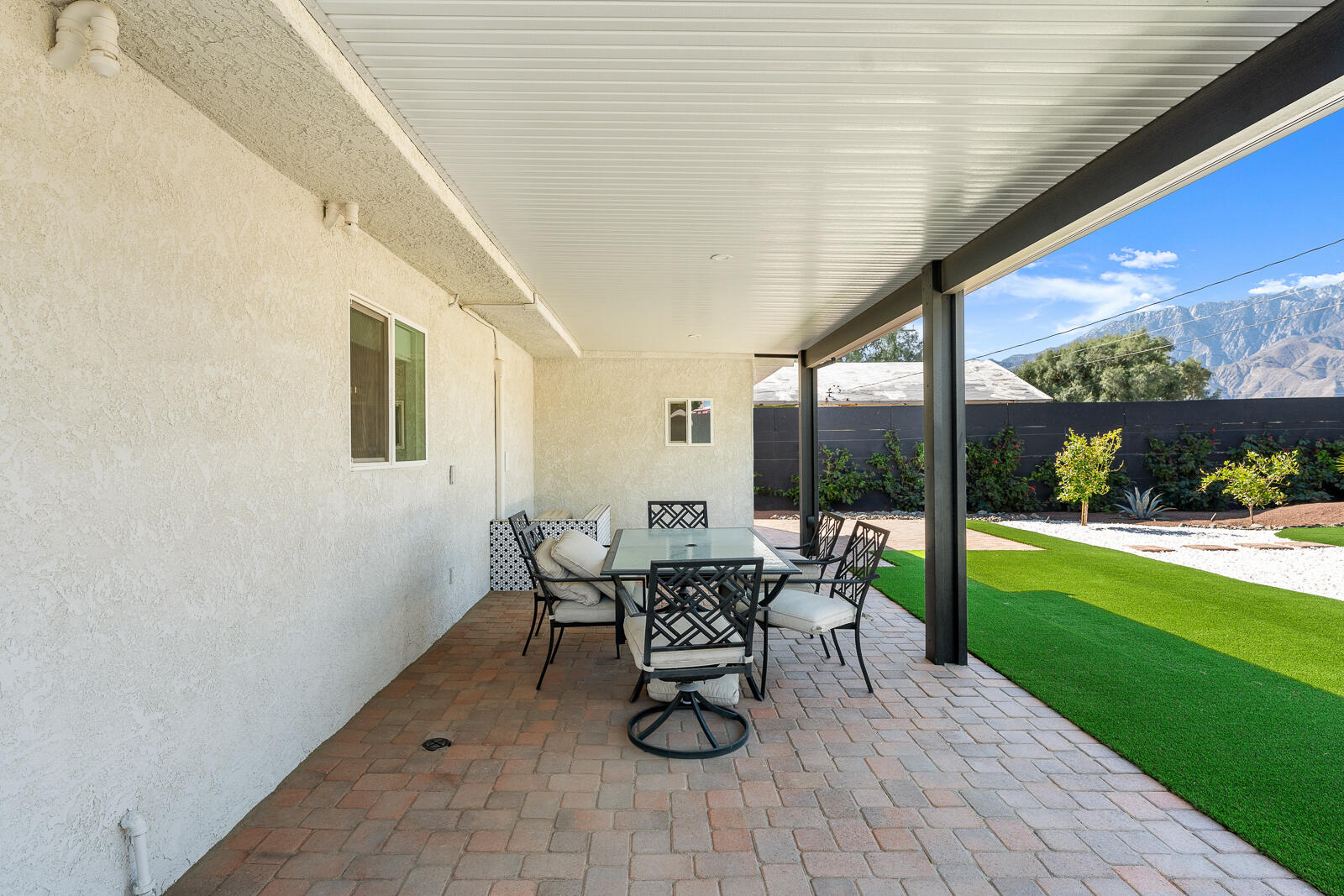 Completely Renovated Desert Oasis with Modern Finishes Discover this exceptional home, where thoughtful renovations meet sleek contemporary design. Recently remodeled for a total investment of $200,000 a remarkable achievement, thanks to the owner's hands-on approach this property has been fully transformed both inside and out. Upon entering, you'll appreciate the brand-new systems throughout, including updated plumbing, electrical work, irrigation, gas lines, and sewer lines, all designed for efficiency and peace of mind. New mini-split air conditioning units have been installed, ensuring climate control year-round. The addition of brand-new windows floods the home with natural light, enhancing the open layout. Both bathrooms and the kitchen have been stylishly remodeled with modern finishes that elevate everyday living. The interior boasts striking micro-topped concrete flooring that delivers a sophisticated and trendy aesthetic, while the master bath offers a stunning polished concrete countertop both practical and chic. Welcoming enhancements extend to the exterior, where the house has undergone a complete re-stucco, removing old wood eaves for a sleek, cohesive look, and has been freshly primed and painted both inside and out. The outdoor space is just as impressive, featuring a beautiful paver patio with a brand-new alumawood cover, complete with lighting and electrical outlets, perfect for outdoor entertaining. A tranquil water feature adds to the serene backyard environment, which is also equipped with RV hookups (20/30/50 amp). Additionally, provisions have been made for future expansion, with lines already run for a potential casita or added living space. This home perfectly blends modern convenience and stylish living, making it an unparalleled gem in the desert. Don't miss your chance to own this masterpiece.Interested in this Listing?