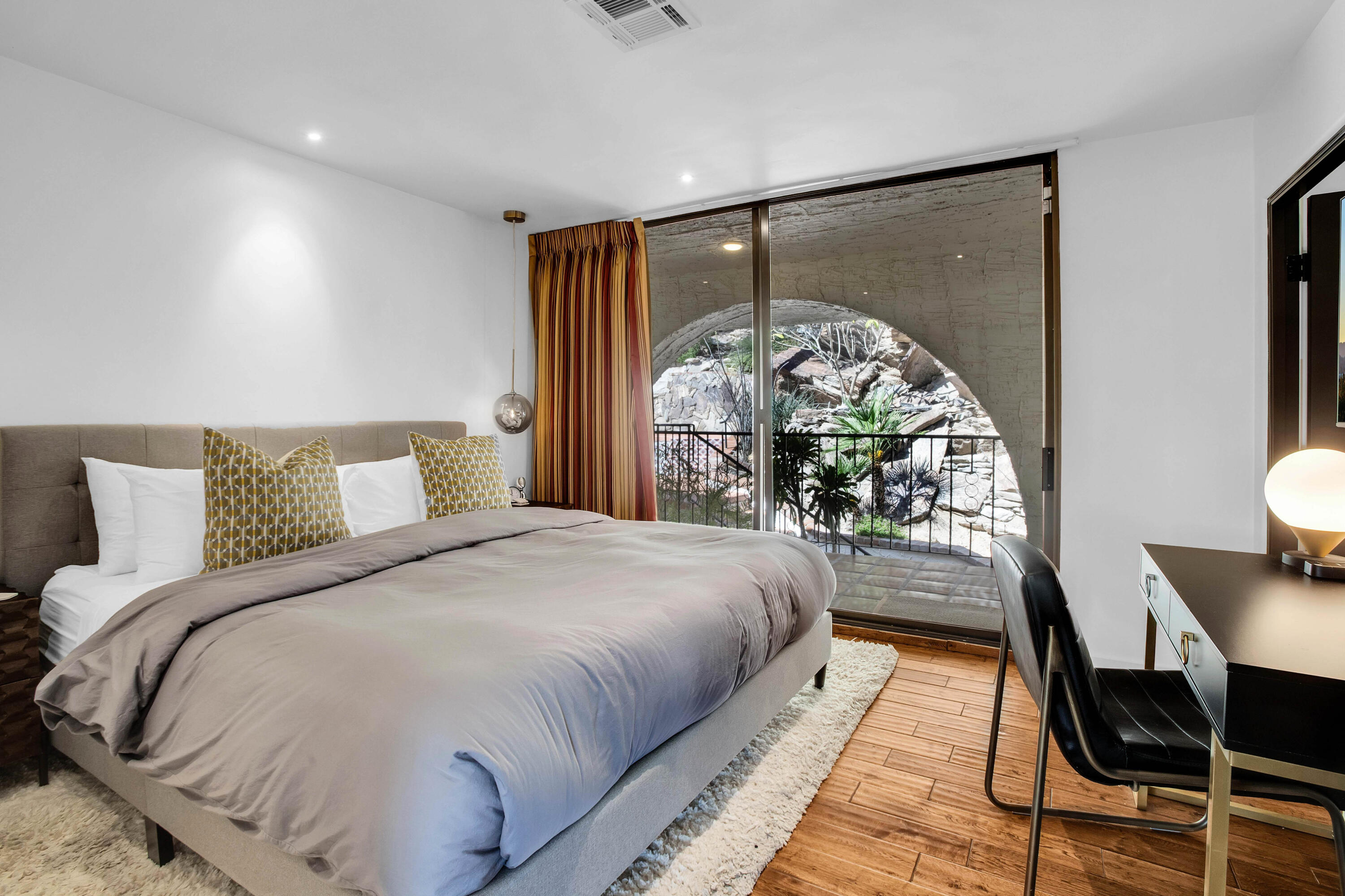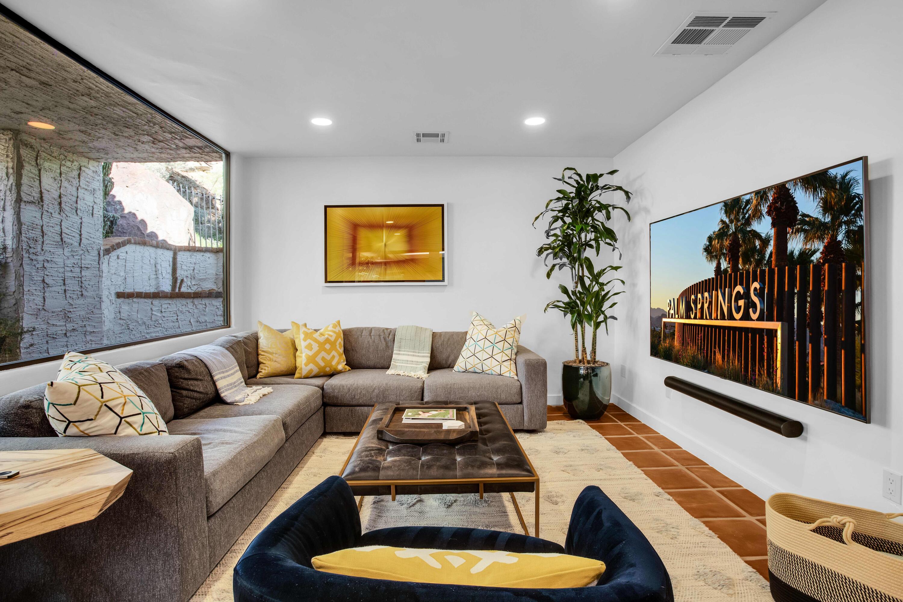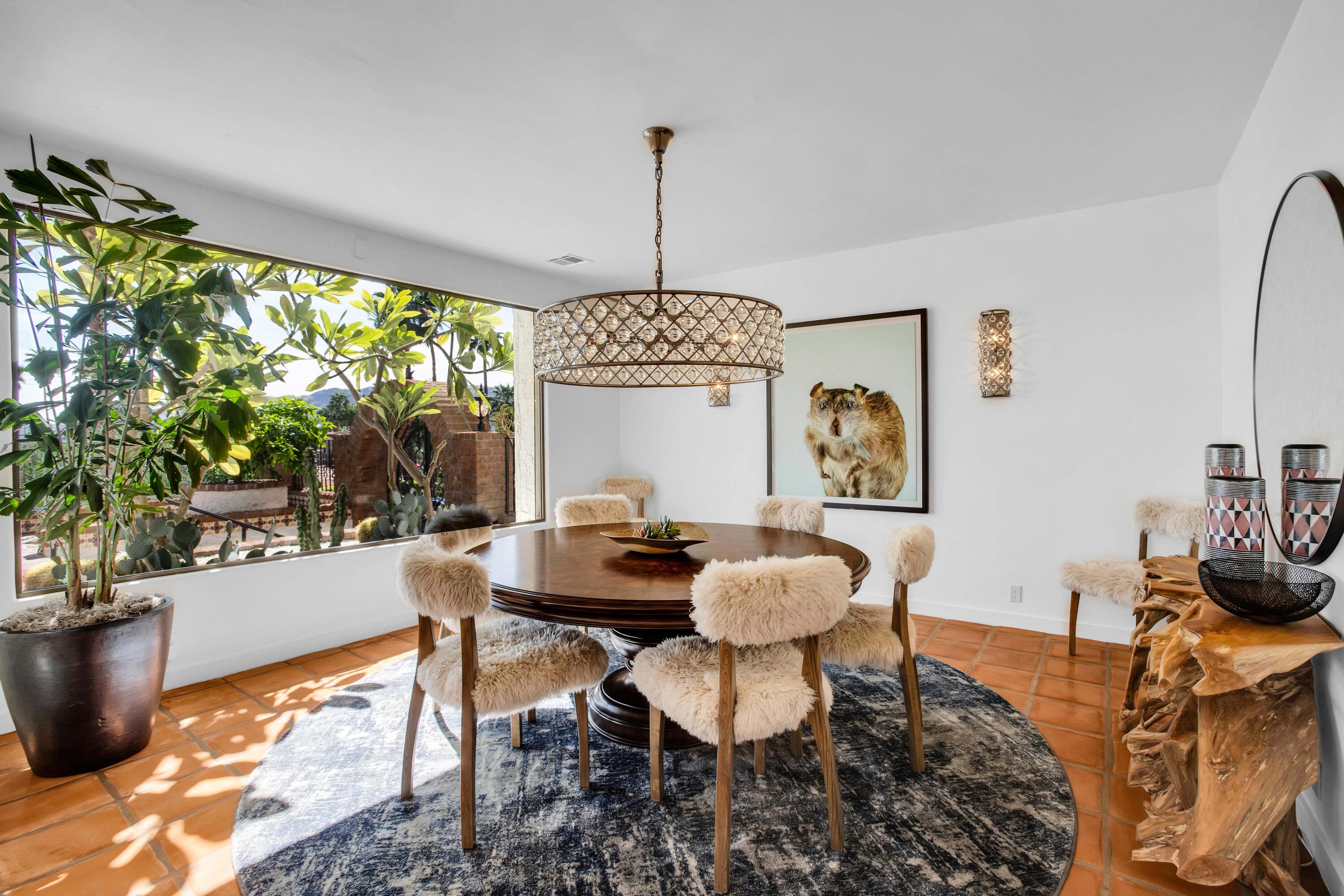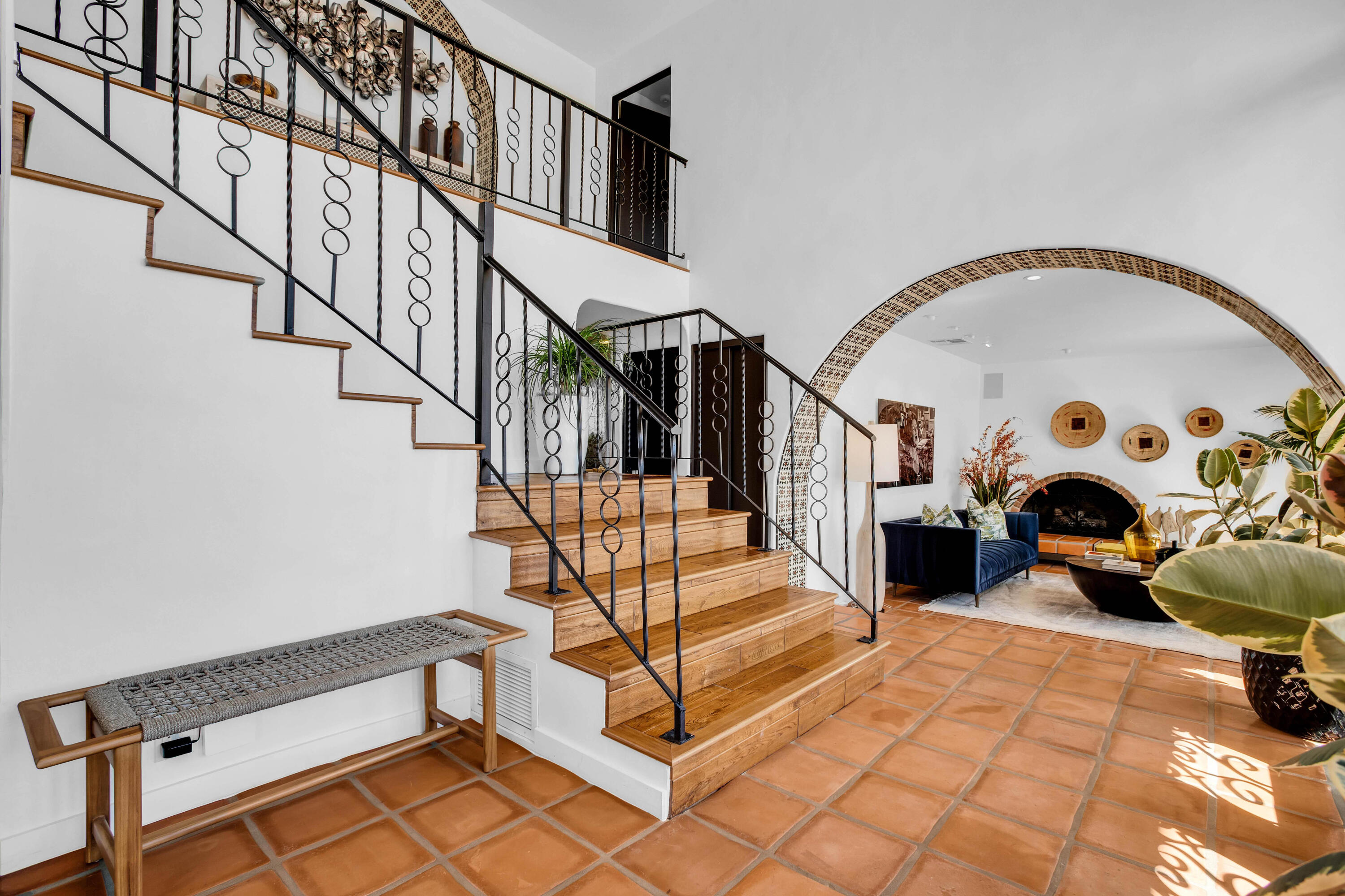 Just Reduce 200,000 A Spanish gem. Discover the epitome of luxury and privacy at Ridge House, a stunning 4,000 sq ft, 0.62 acre estate perched in the tranquil hills of Palm Springs' Mesa neighborhood. This beautifully renovated property combines California's nuevo-Spanish architecture with modern comforts, offering panoramic views and lush tropical landscaping. Highlights: three bedrooms, four and a half bathrooms, walk-in closets, formal living and dining, billiards/game room and bar, saltwater pool and spa, 5-car garage, workshop, fitness center, expansive balconies, and solar with car connection.The custom iron doors open to reveal the grand foyer with Spanish tiled archways, which lead to a formal living room with a gas fireplace and a dining area illuminated by designer lighting and featuring climatized wine storage. Both the living and dining rooms enjoy panoramic views of the valley. The central open kitchen has ample space to work and socialize and is adjacent to an informal living room. It has a double-size Sub-zero refrigerator-freezer, dual ovens, warming drawer, gas cooktop, and island hood with exterior venting. Outside, you will find a kitchen-side grill and a mountain-top grill.The upper floor features three luxurious bedrooms with king-sized beds, all with direct balcony access. The primary bedroom features commanding views of the valley, a gas fireplace, a walk-in closet, an en-suite bathroom with dual sinks, a spa shower, and a jetted tub.Interested in this Listing?