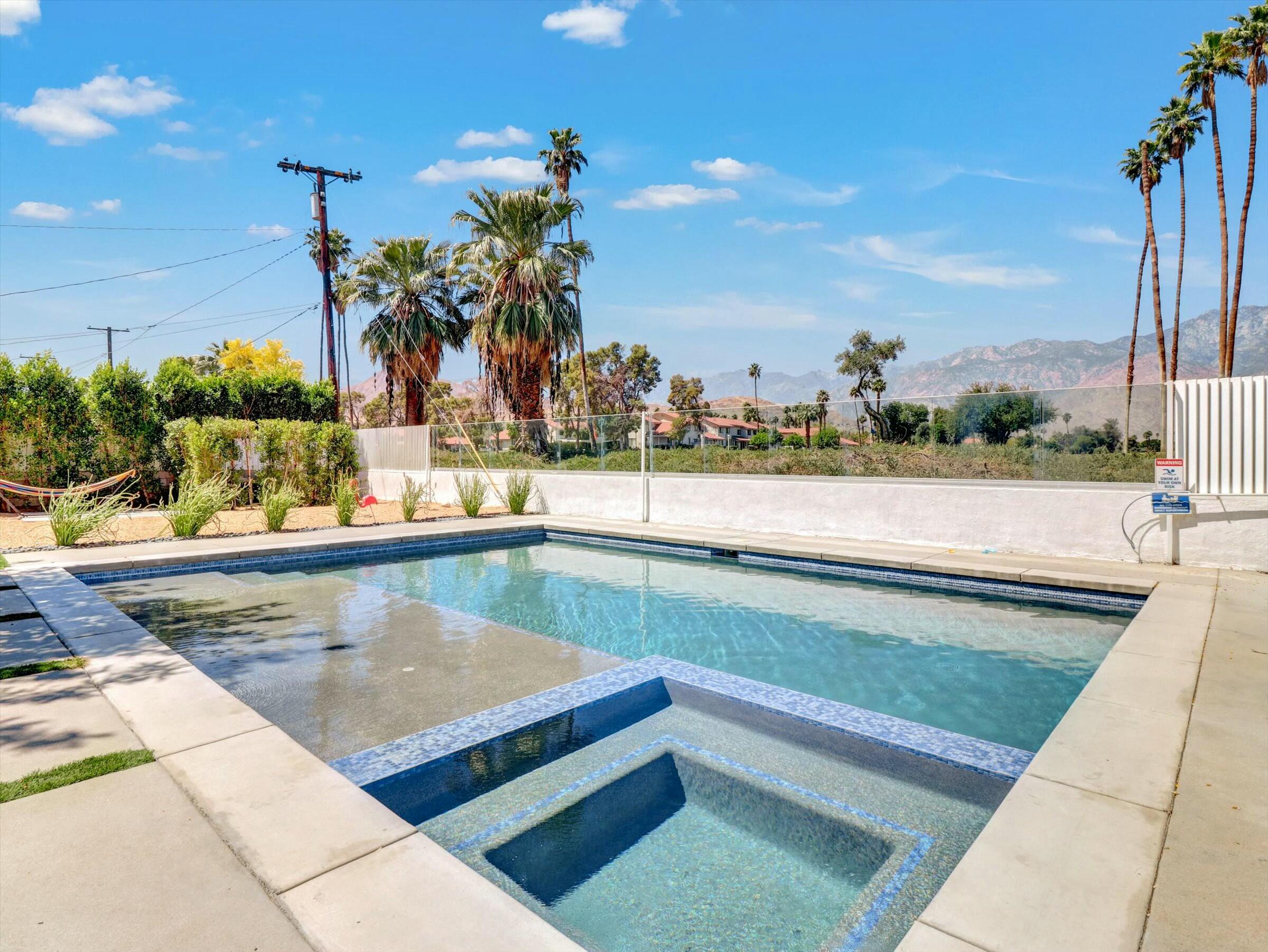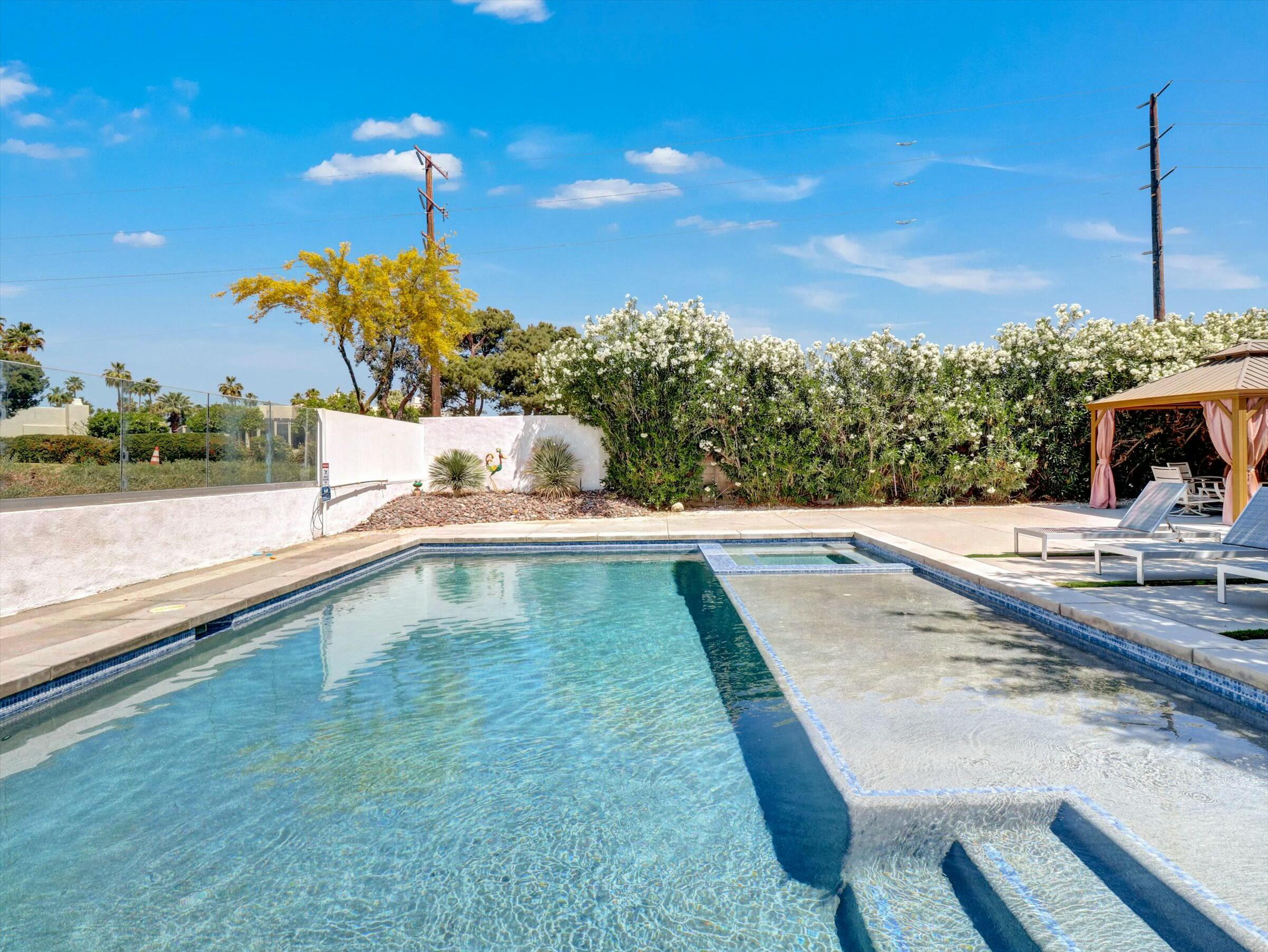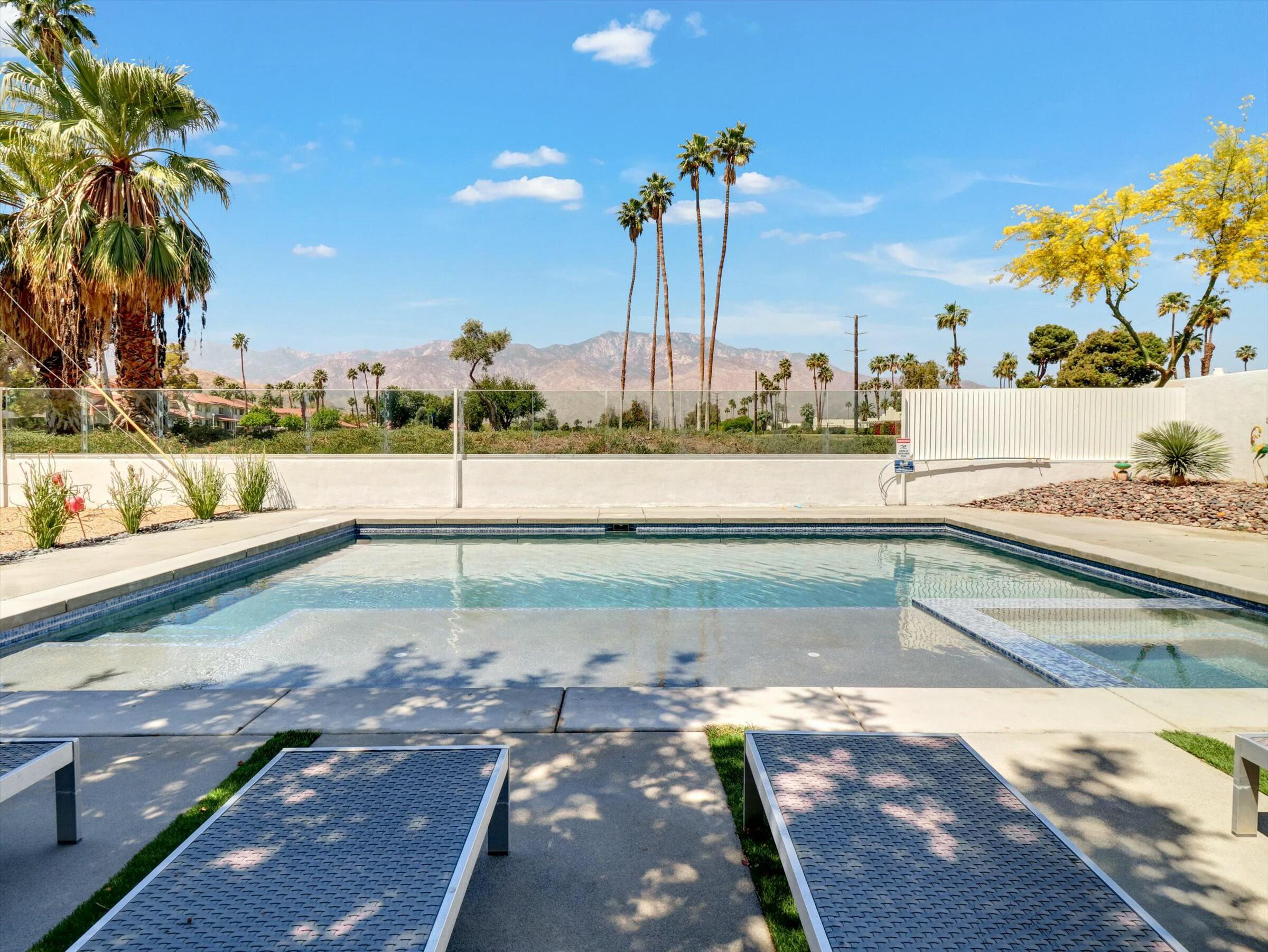 The complete Resort Property Completely Renovated and ready to move in or rent out. Spectacular Resort back yard, New Hotel size pool & spa with tanning island and a view of the Golf course and panoramic mountain views. Outside cooking and dining under the gazebo while you enjoy the palm springs life. inside the property is like NewInterested in this Listing?