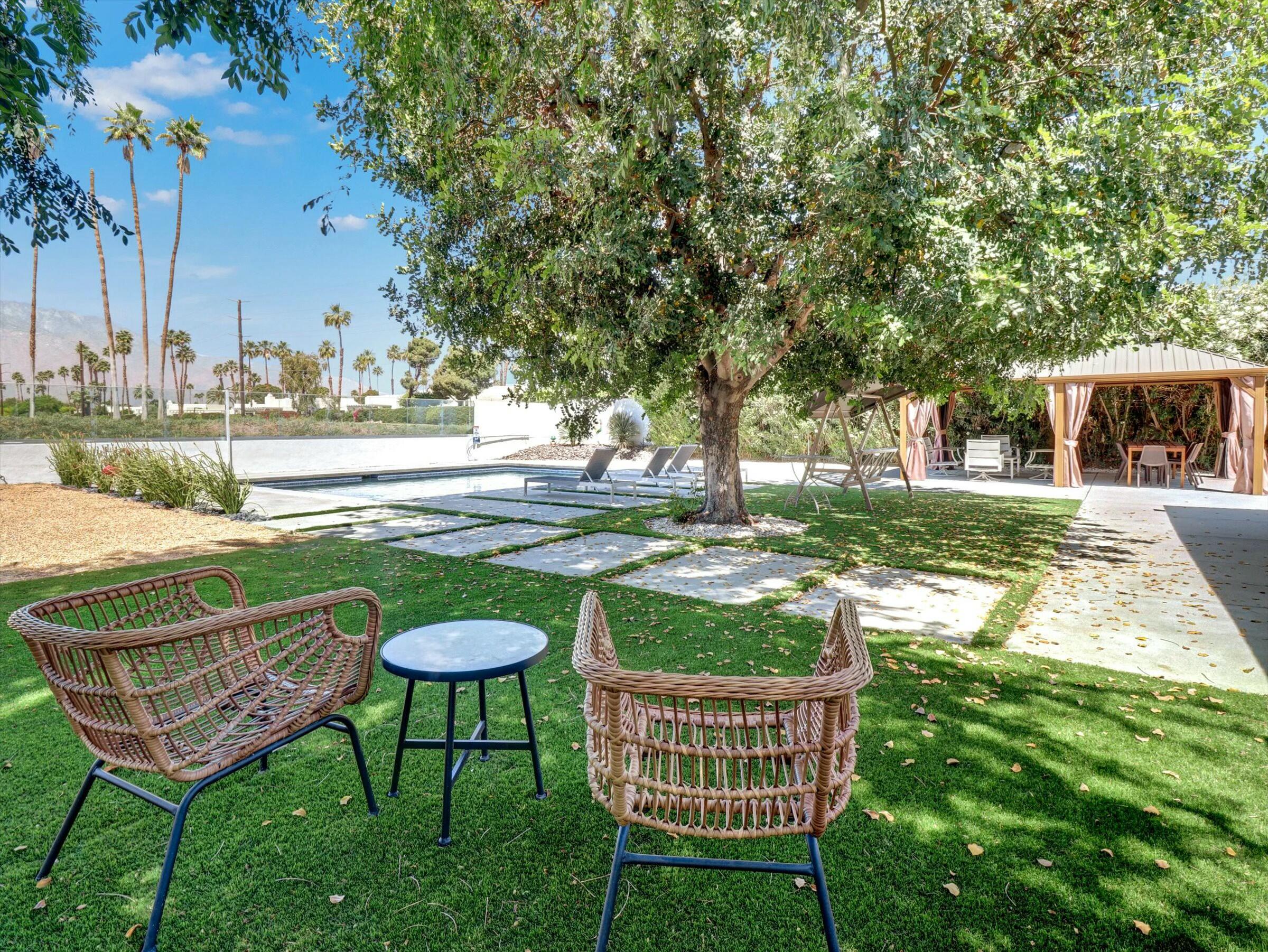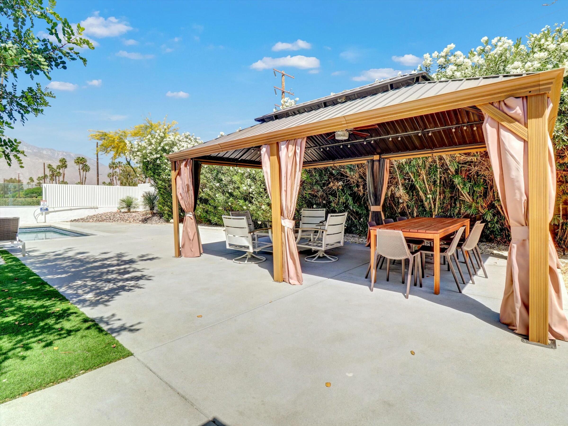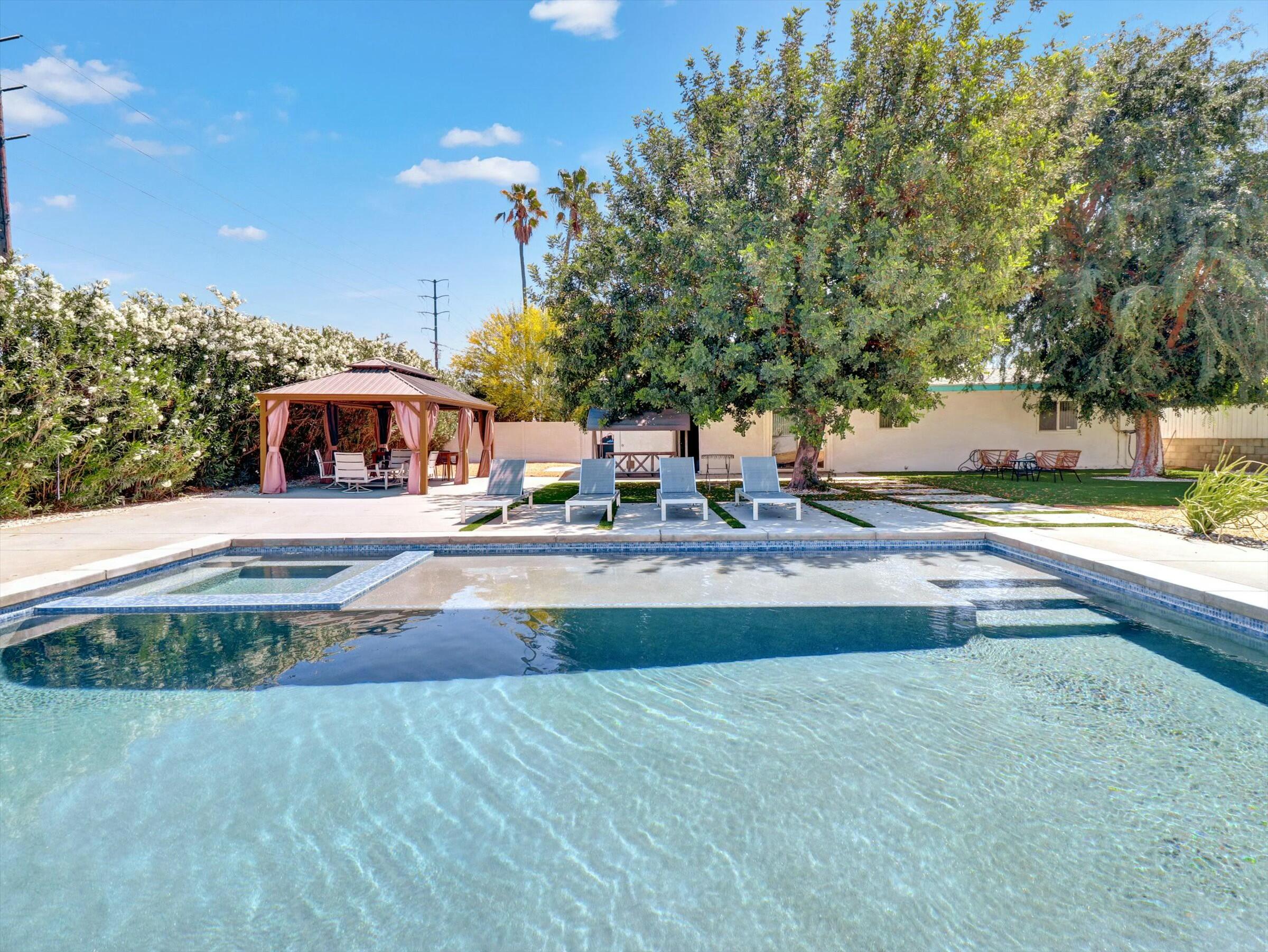 The complete Resort Property Completely Renovated and ready to move in or rent out. Spectacular Resort back yard, New Hotel size pool & spa with tanning island and a view of the Golf course and panoramic mountain views. Outside cooking and dining under the gazebo while you enjoy the palm springs life. inside the property is like NewInterested in this Listing?