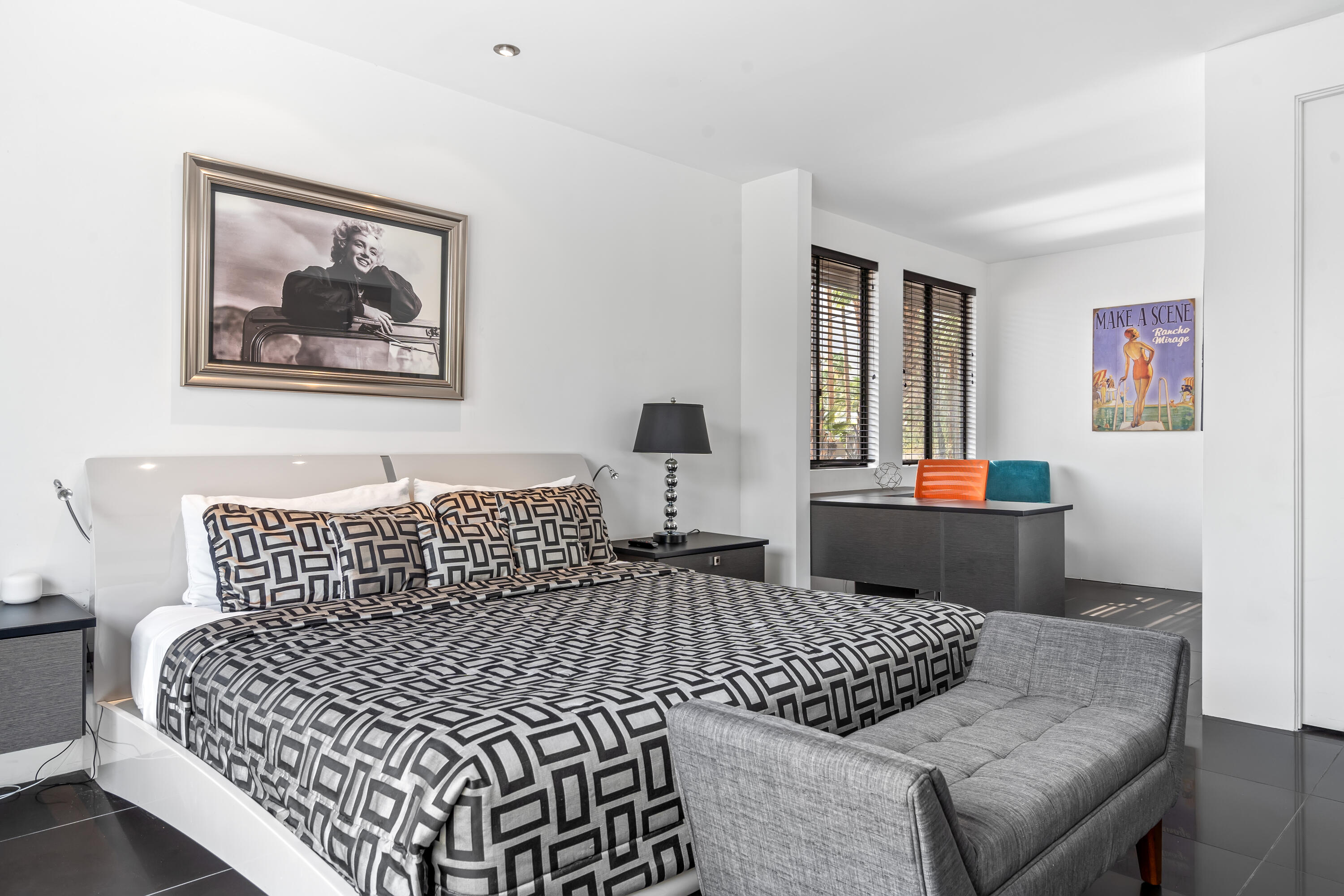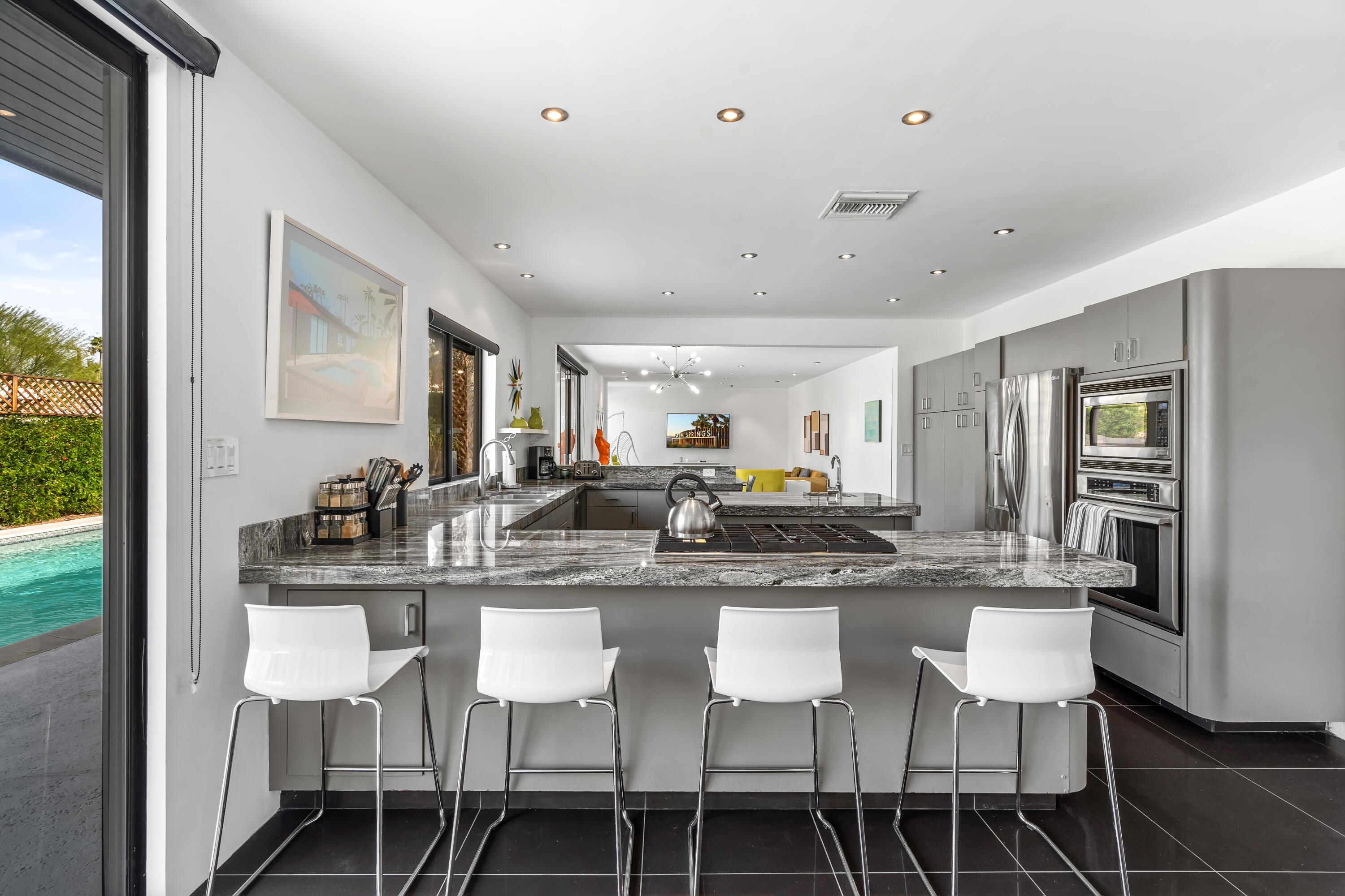 Own a Slice of Palm Springs History: Iconic Alexander Mid-Century in Twin Palms. Step into a light-filled haven crafted by the legendary Alexander Construction Company. This 2,534 sq ft gem, nestled on a sprawling 10,890 sq ft corner lot in the heart of Twin Palms, embodies the quintessential Palm Springs lifestyle. Revel in the expansive open layout, soaring ceilings, and walls of glass that seamlessly blend indoor and outdoor living. Three luxurious ensuite bedrooms, plus a versatile den, offer ample space for family and guests. The heart of the home is a stunning kitchen with a bar, perfect for entertaining. Outside, a private oasis awaits: a heated pool and spa, built-in BBQ, outdoor shower, and a fire pit, all framed by lush landscaping and a fully fenced, hedge-lined yard. The primary suite is a true retreat, boasting a walk-in closet, oversized bath, and a private lanai. This is more than a home; it's a lifestyle. Fee simple land and a proven vacation rental history with permit available make this an exceptional investment.Interested in this Listing?