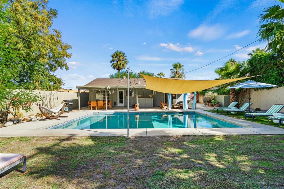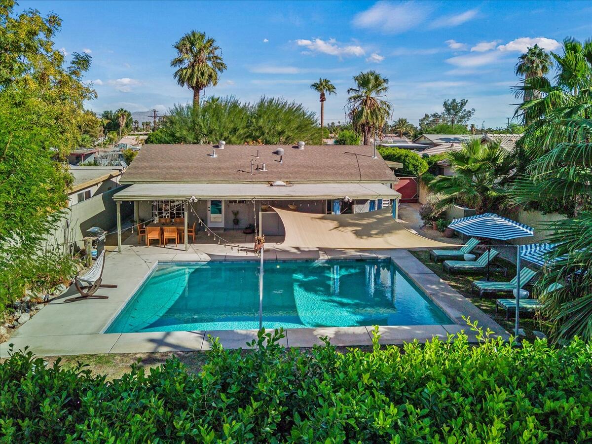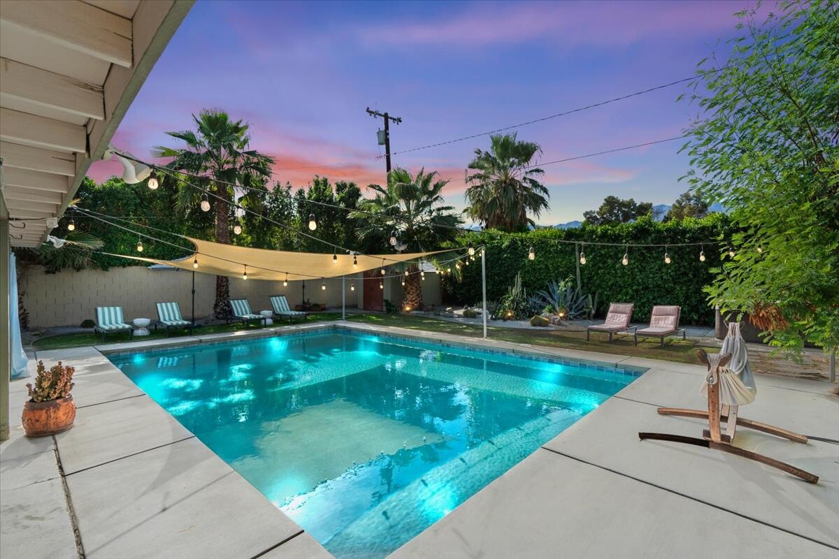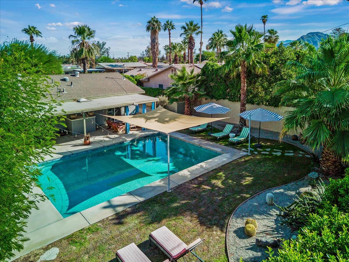 Price reduced! Located in South Palm Springs, this three bedroom, two bath Midcentury Modern bungalow offers the perfect blend of style, comfort, and tranquility. Situated on FEE LAND (you own it) with no HOA, this home boasts magnificent west mountain views, and is ideally situated on the Tahquitz Creek Golf Course. The remodeled kitchen is a chef's dream, featuring stainless steel appliances and modern finishes, while the updated bathrooms maintain a sleek, contemporary design. Glass sliders and skylights bathe the home in natural light . Step outside and you'll be greeted by a breathtaking backyard, complete with an beautiful heated pool, hot tub, hammock, fire pit, and covered outdoor dining area, perfect for watching the sun set over the mountains. The backyard is an oasis of privacy, providing the ideal setting for relaxation and entertainment. Just minutes from Trader Joe's and Target, and only a short drive to downtown Palm Springs, this home offers both convenience and serenity. Whether you're seeking a successful vacation rental (you can obtain a junior vacation rental permit here which allows for six rentals per year under thirty days), second home, or primary residence, this home is sure to impress. Schedule a private showing today!Interested in this Listing?