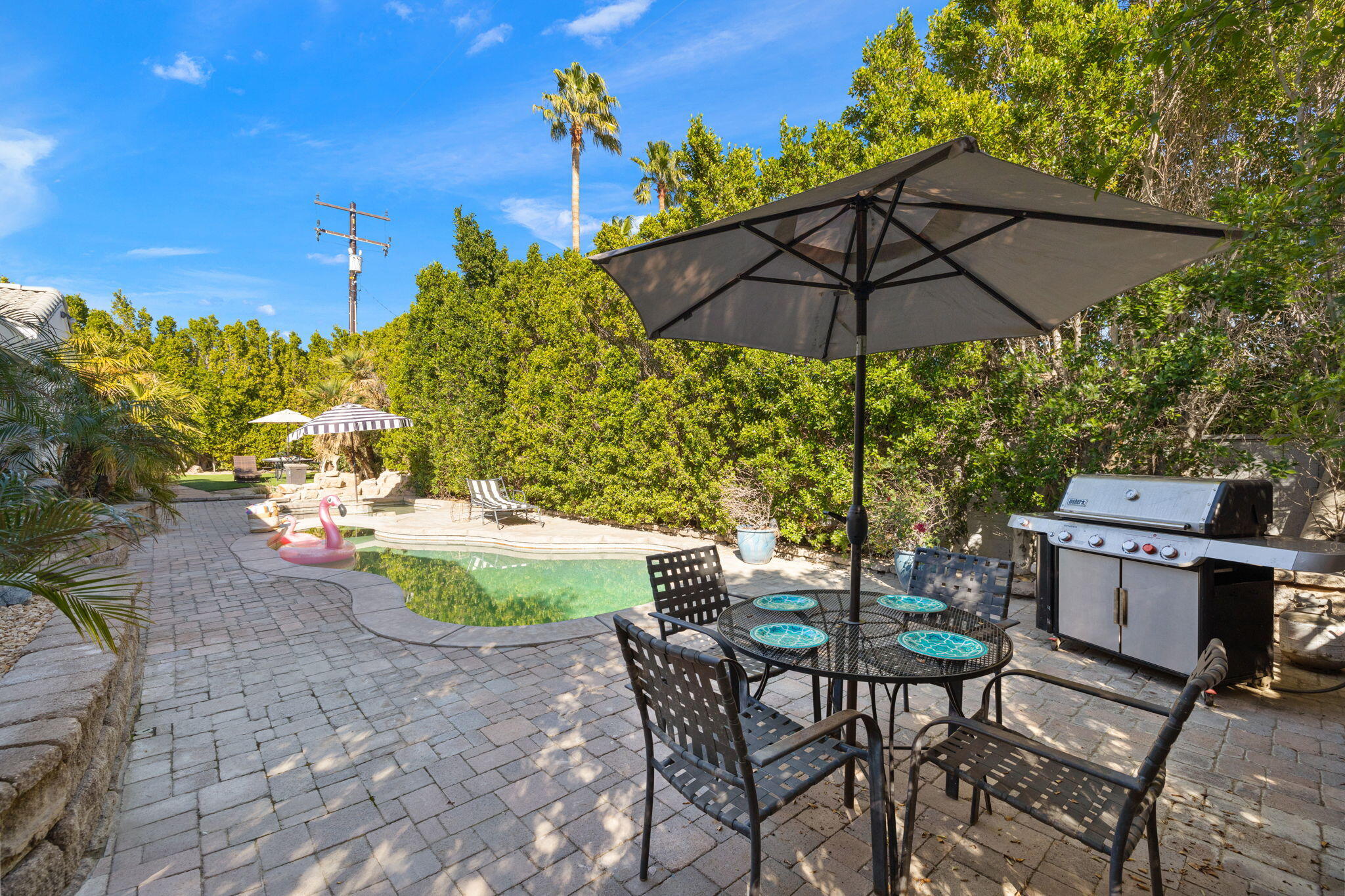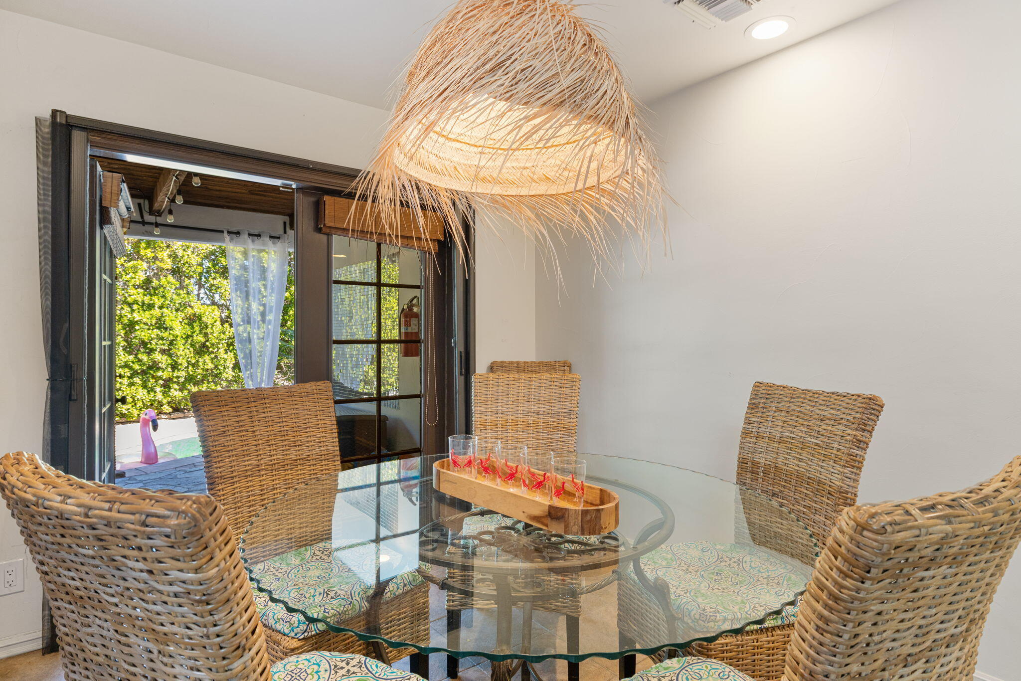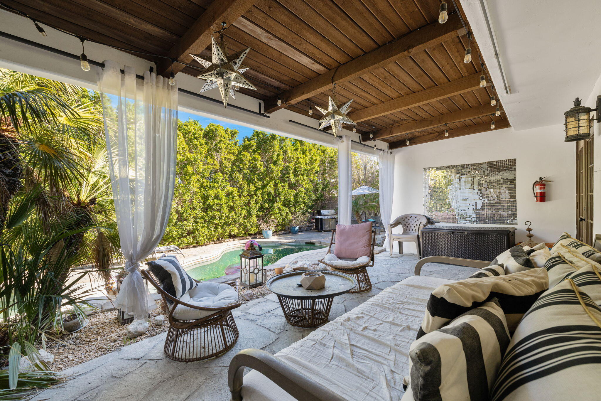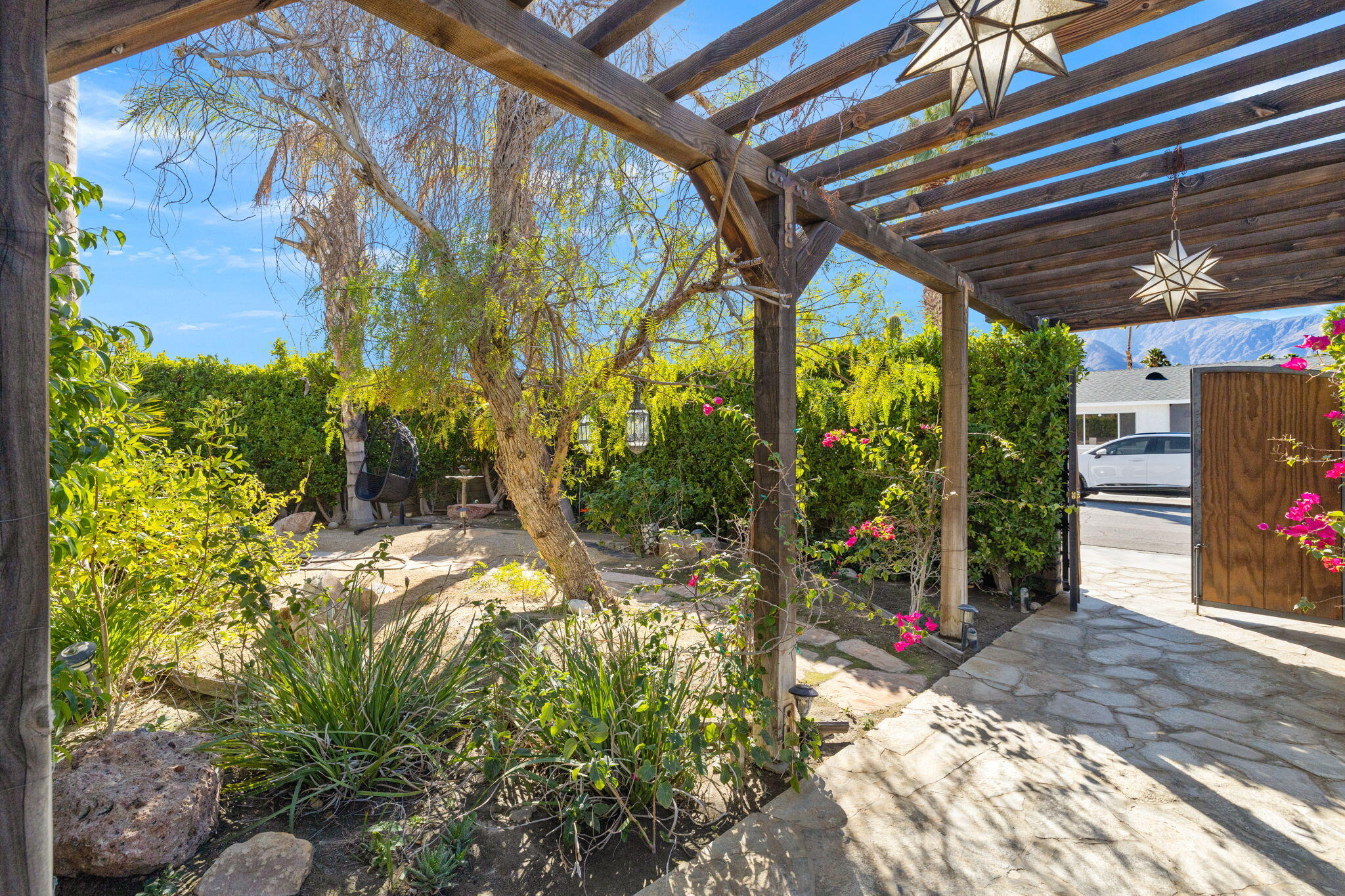 Organic Chic Inspired Villa - a calm Oasis in Palm Springs- 4 CAR GarageStep into a world of timeless elegance and serene luxury with this breathtaking relaxing inspired villa--a sanctuary where artistry and comfort intertwine beneath the golden glow of the desert sun. Tucked away on nearly a quarter-acre lot, with an amazing pool and spa this retreat whispers of distant lands and mystical evenings, where the breeze carries the scent of citrus blossoms and the soft glow of lanterns dances across intricate tilework.Beyond the ornate entryway, a sense of enchantment unfolds within nearly 2,000 square feet of thoughtfully curated living space. Vaulted ceilings, adorned with rich wooden beams, stretch toward the heavens, creating an ethereal openness that feels both intimate and expansive. Delicately placed skylights invite cascades of natural light to illuminate the interiors, casting a warm embrace upon hand-selected textures and finishes that weave a tapestry of refinement.At the heart of this retreat, the living area beckons with a custom-engraved fireplace--a masterpiece of intricate design that radiates warmth and invites long, lingering conversations under its mesmerizing glow. The gourmet kitchen, a dream for culinary enthusiasts, is equipped with double ovens, a double-door refrigerator, wine refrigerator.The oversized 3 bedrooms including 2 master suites and the 4 car garage make this the prefect compound for anyone.A lush front patio welcomes you like a hidden courtyard from a storybook, where the gentle murmur of a fountain mingles with the rustling of leaves. For a private showing call the listing agentInterested in this Listing?