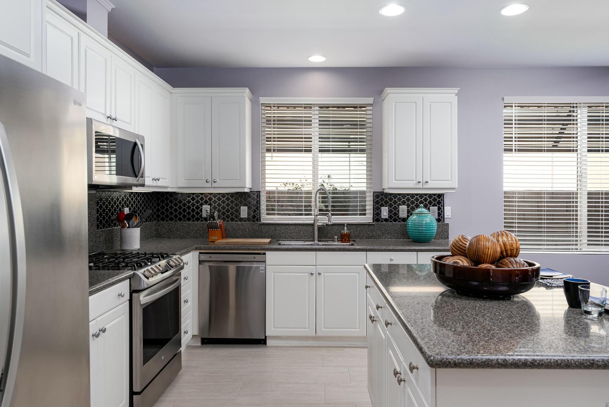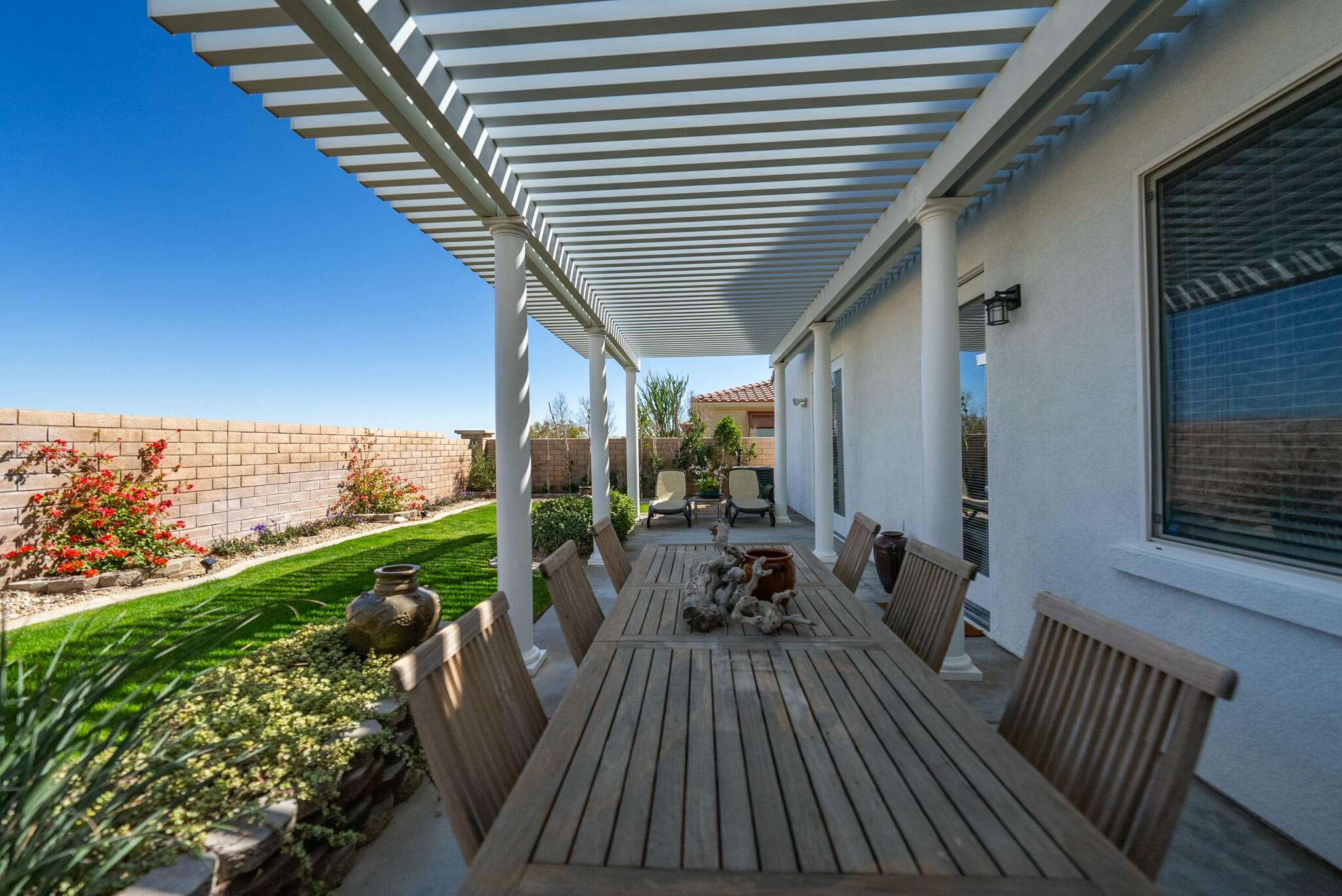 Come and experience true resort living in the gated community of Four Seasons. This impressive home is move in ready at just under 2000 sq. Ft. and is available fully furnished or unfurnished with a wonderful open floor plan. There are new floors throughout, custom painting, new fixtures, landscaping, and fans.The kitchen which has ample counter space, a large island, and a huge pantry is open to the family room that has a media niche and fireplace which overlooks the back yard that boarders the desert and has completeprivacy. There is a covered patio and grassy areas and even room for a pool if you would like. This flow makes entertaining simple and easy. There are 2 bedrooms and 2 baths in this split plan, both with new countertops & fixtures. The primary bedroom is generous in size with an oversized walk in closet and large private bathroom. The guest room is completely separate and also has an oversized closet. There is also a large laundry room with new countertop & sink, and easy access to the garage. Four Seasons is a vibrant 55+ social community with something for everyone. The HOA membership includes high-speed fiber optic internet and access to all the community heated pools and spas; as well as full access to the Lodge with an extensive list of amenities that includes a fitness center.Interested in this Listing?