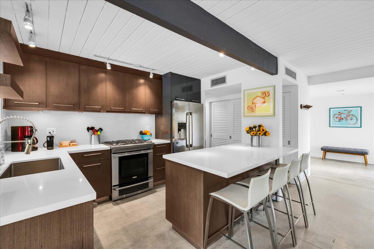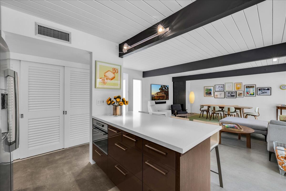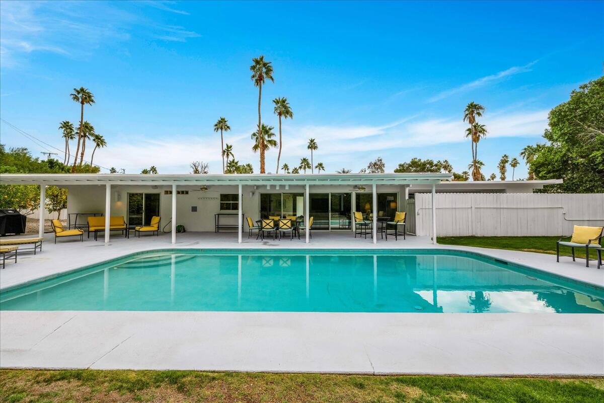 Palm Springs Perfection! Get ready to fall in love with this stunning Mid-Century Modern gem, lovingly renovated to blend retro charm with modern comforts. This 1958 classic has been thoughtfully updated to maintain its original architectural integrity, while boasting a plethora of upgrades to make your life easier and more enjoyable. As you step inside, you'll be greeted by the warm, inviting atmosphere of the open floor plan, featuring three spacious bedrooms and two bathrooms. The wood beams and white wood ceilings add a touch of sophistication, while the beautiful concrete floors provide a sleek, modern finish. But the real piece de resistance is the outdoor space. The large covered patio offers a cooling retreat from the desert sun, while the expansive backyard is the perfect spot for entertaining. Take in the breathtaking views of the surrounding mountains and enjoy a refreshing dip in the pool, perfect for laps or simply lounging in the sun. And don't worry about maintenance - the new desert landscaping and citrus garden are designed to be low-maintenance, yet still exude a luxurious feel. Some of the impressive upgrades include:* Double-paned windows for energy efficiency* A dishwasher for easy cleaning* A new pool pump for smooth operation* Copper plumbing for durability and style* A high-efficiency A/C unit and heater for comfortable living* A tankless water heater for endless hot water* Insulated pipes on the roof for added protection.Interested in this Listing?
