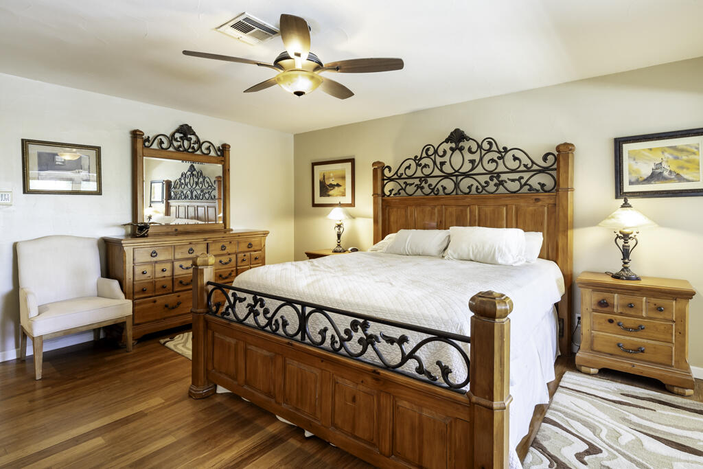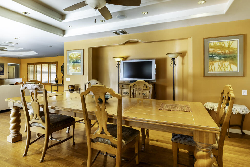 Welcome to this picturesque Palm Springs Oasis in the heart of Desert Park Estates. Investment Opportunity--Possible Vacation Rental or Your Own Private Retreat on Fee Land (you own the land).Open, flowing floor plan awaits w/ bamboo floors & California shutters with vistas to the back patio, pool, & spa.The island kitchen nicely updated w/ slab granite counters, newer cabinetry, stainless steel appliances, pull-out shelving, & a corner sink overlooking the pool, spa, & backyard.Spacious dining room easily accommodates up to 12 - 14 guests for dinner parties or festive holidays.Large living room which embraces sofas, arm chairs, armoire, a Birdseye Maple Baby Grand Piano, & corner fireplace.The media room/den is spacious w/ sofa, wing back chairs, & entertainment center.Primary bedroom accommodates king-size bed, 2 night stands, & a large spa leading to patio & pool.Primary bath features travertine floors, wainscoting,& large shower stall w/bench, double vanity, & travertine counters.Two spacious guest rooms with slider door closets.Third guest room/office is minus a closet, so an armoire would fill that need.Guest bath is adorned in travertine floors, counters, & shower stall.Laundry room has deep soaking sink & accommodates side-by-side washer/dryer.Attached 2 car garage w/ loads of storage & circle driveway.Large pool & spa have recently been replastered, set in a private, serene setting, amidst lush foliage & trees. Simply Enchanting.Interested in this Listing?