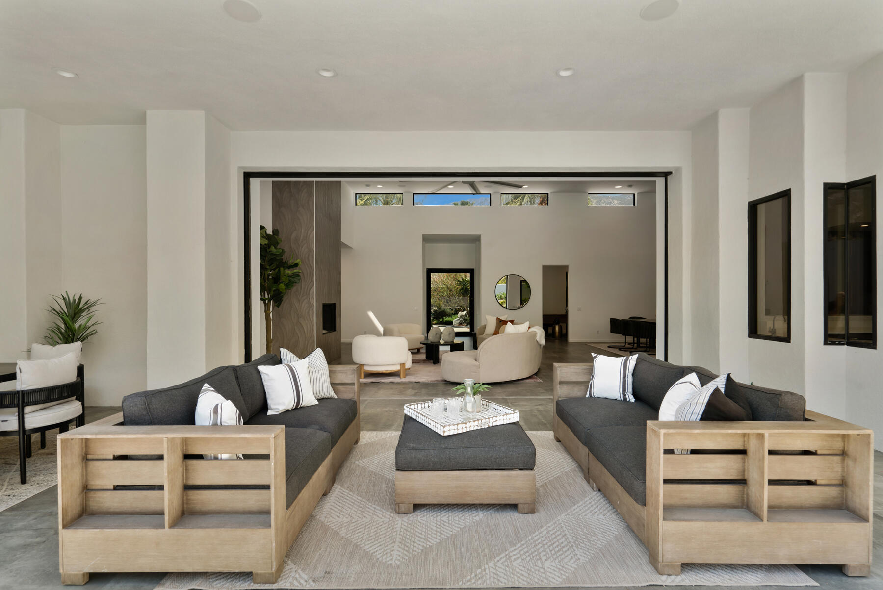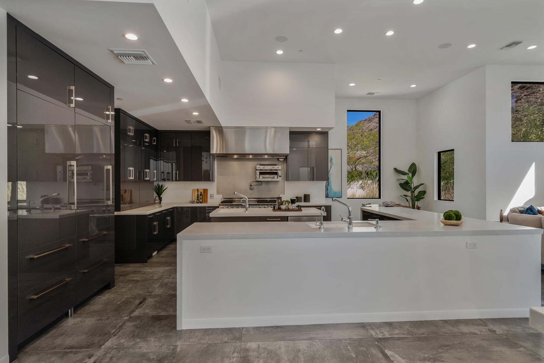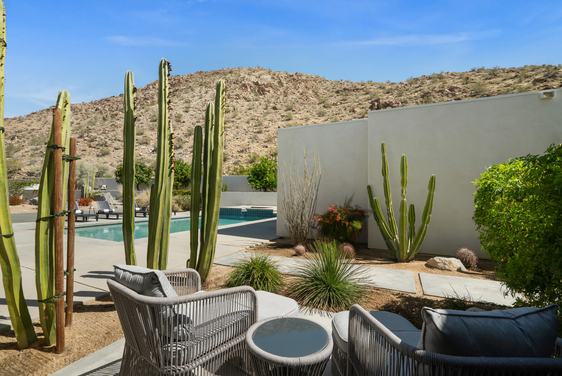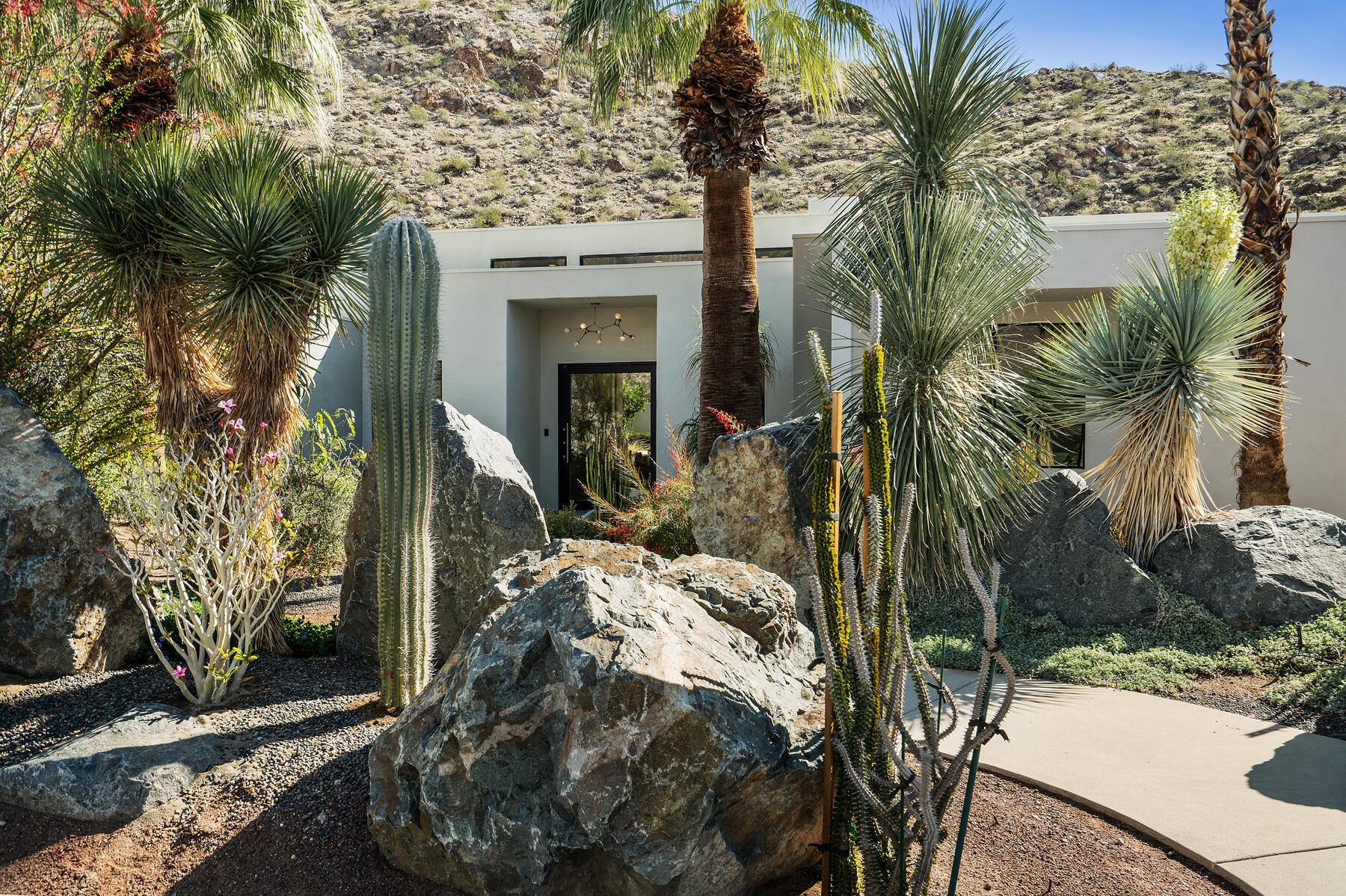 Modern, sophisticated and extensively upgraded, this bright and open custom estate redefines luxury livingin Palm Springs' preferred Andreas Hills enclave. Virtually stripped to the studs and reimagined, the contemporary residence generously accommodates both stylish daily living and grand-scale entertaining in a sprawling single-level floor plan that measures approx. 5,715 s.f. A large pivoting glass entry door introduces main living areas that include a great room with clerestory windows, a sleek fireplace, glass pocket doors to the backyard, and a walk-in wet bar with pass-thru to the outdoor kitchen. Five ensuite bedrooms and 6.5 baths--including a detached casita--ensure comfort for everyone. Open to living areas, a newer chef-caliber kitchen is appointed with high-gloss custom cabinetry and custom-designed countertop, two islands, stone countertops, two sinks, and top-tier appliances including a built-in cabinet-matched refrigerator and a 60 inch commercial-grade stainless steel American Range. Additionally, there are 2 30 inch gas ovens and a Commercial-grade fire suppressant system installed by Desert Fire. Powered by a rooftop net-zero solar array, and, this expertly crafted home hosts newer electrical and plumbing systems, oversized ceiling fans throughout, whole-house audio, and a three-car garage with EV charger. Homeowners will luxuriate in a primary suite with sitting area, fireplace, patio, a freestanding tub, oversized shower and a walk-in closet. Located on fee land (no lease), the expansive homesite backs to a hill and is distinguished by a pool and spa with solar heat, a spacious loggia, outdoor shower and a built-in BBQ.Interested in this Listing?