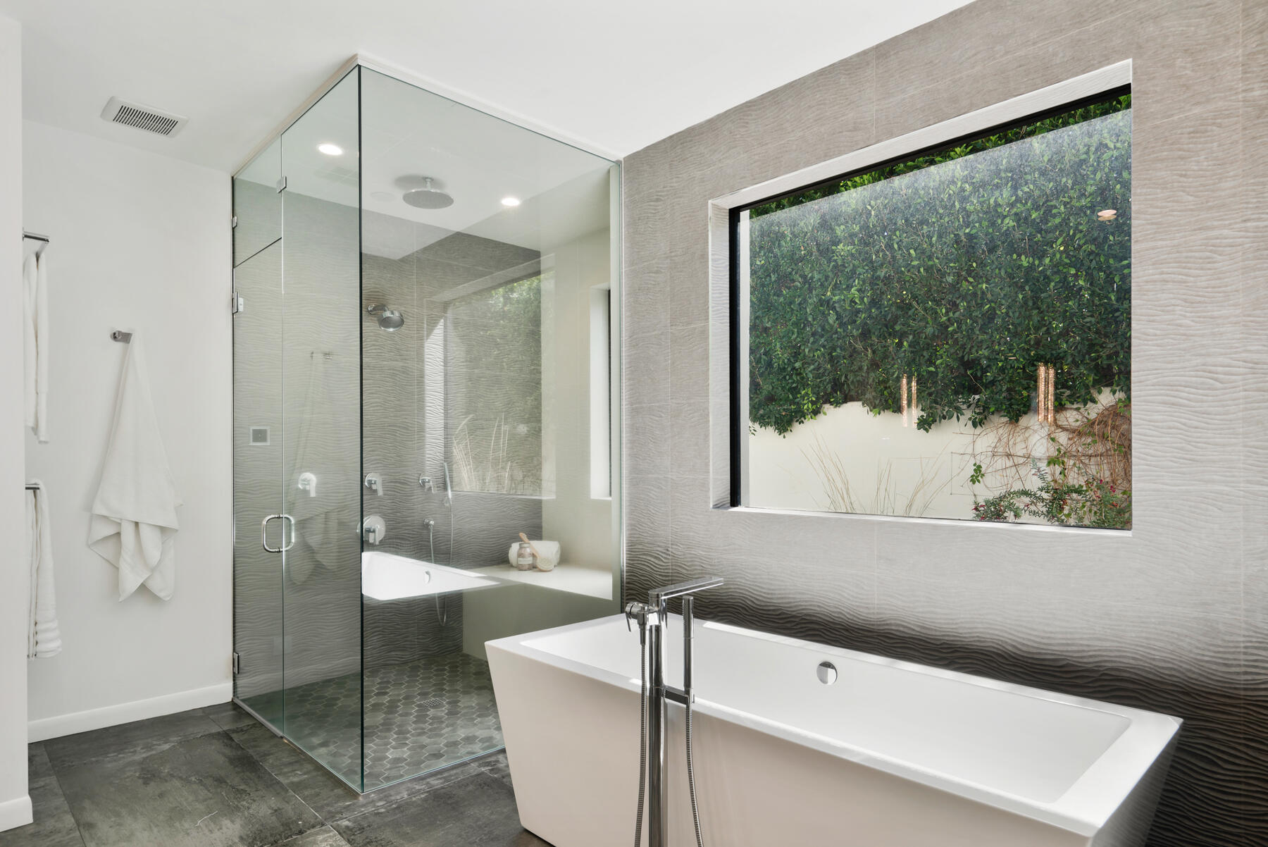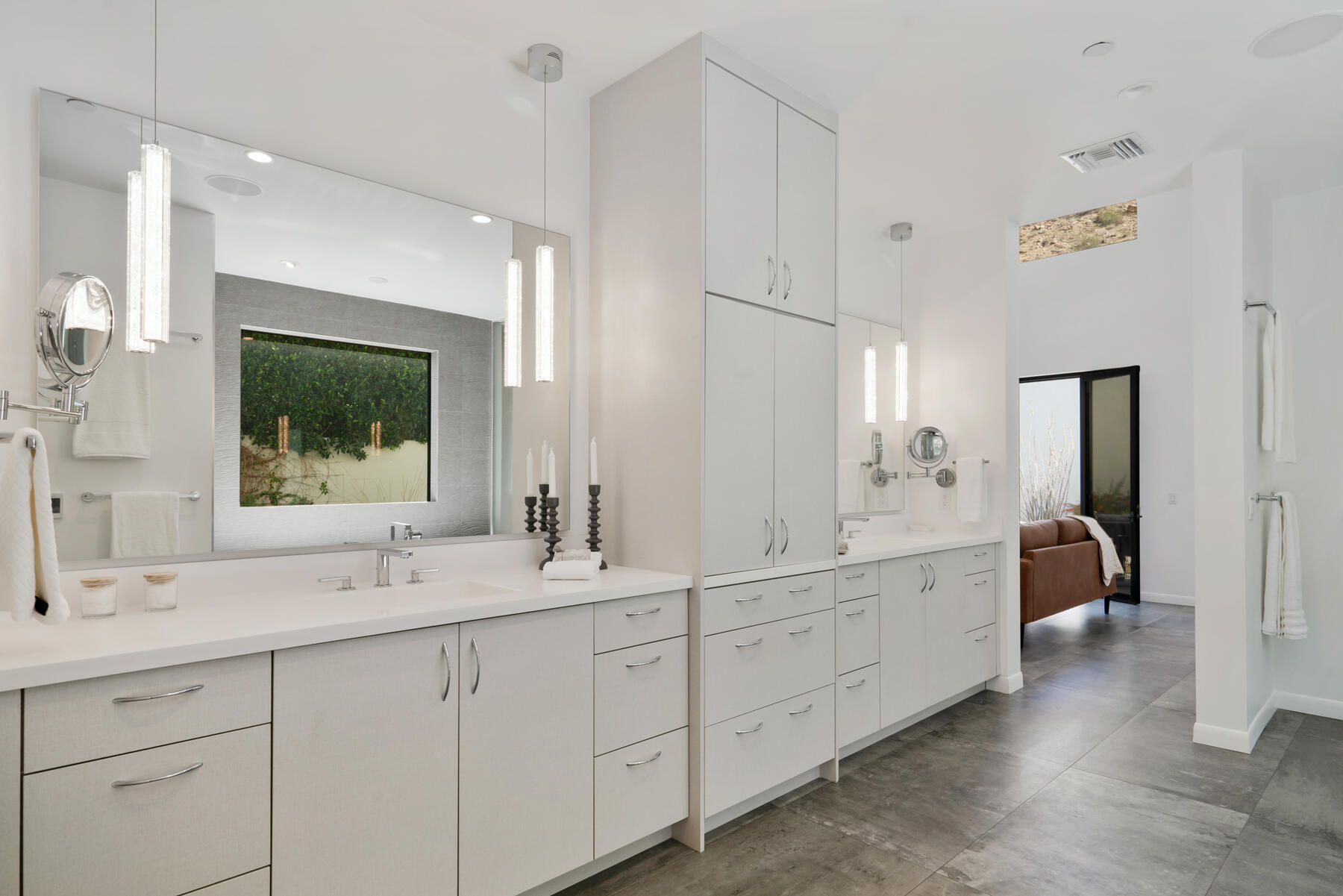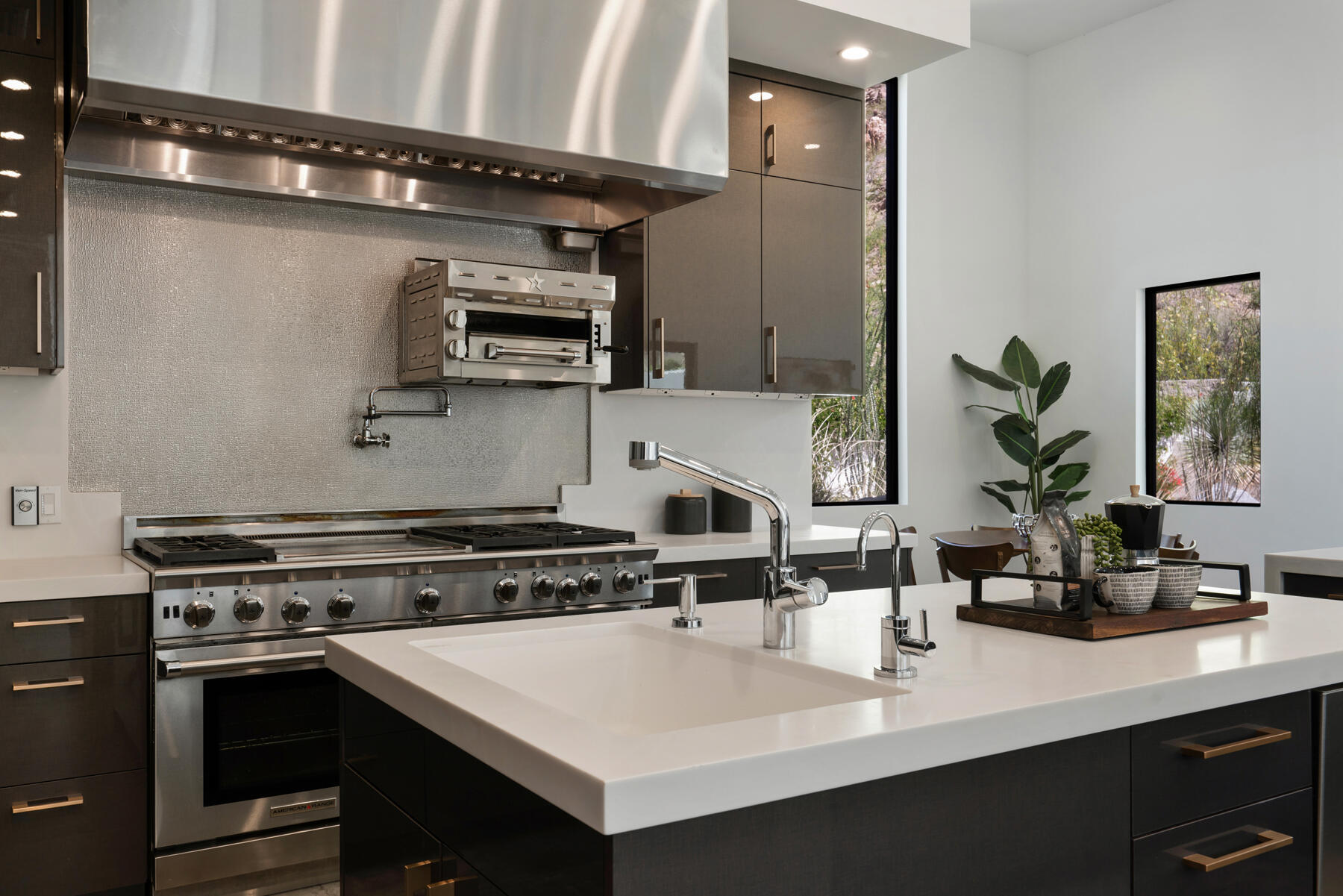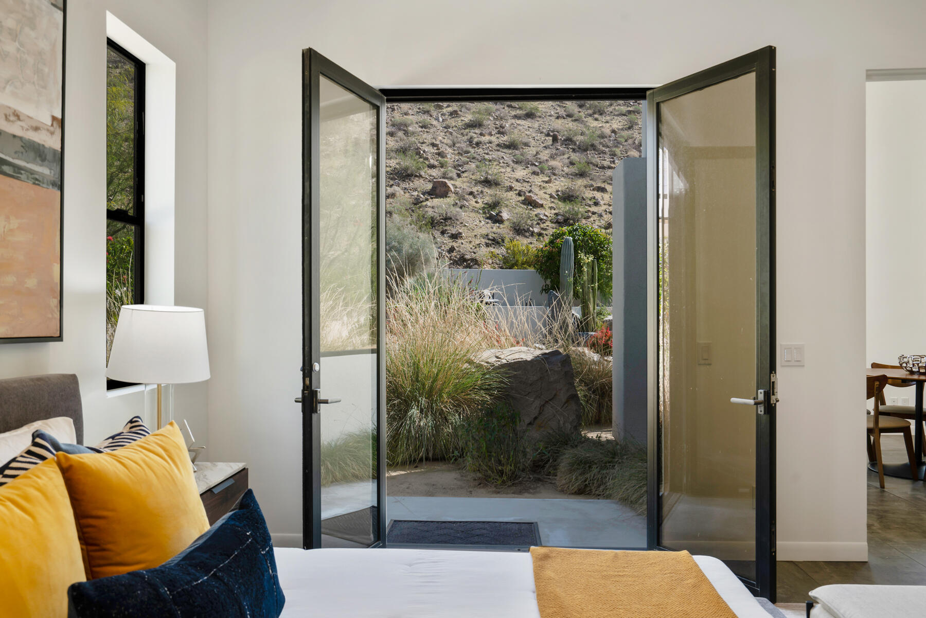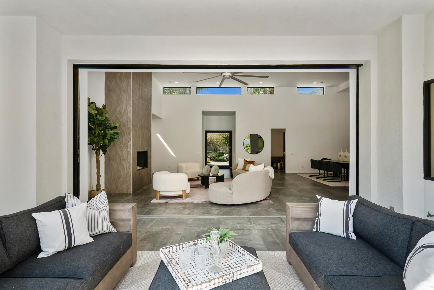 Modern, sophisticated and extensively upgraded, this bright and open custom estate redefines luxury livingin Palm Springs' preferred Andreas Hills enclave. Virtually stripped to the studs and reimagined, the contemporary residence generously accommodates both stylish daily living and grand-scale entertaining in a sprawling single-level floor plan that measures approx. 5,715 s.f. A large pivoting glass entry door introduces main living areas that include a great room with clerestory windows, a sleek fireplace, glass pocket doors to the backyard, and a walk-in wet bar with pass-thru to the outdoor kitchen. Five ensuite bedrooms and 6.5 baths--including a detached casita--ensure comfort for everyone. Open to living areas, a newer chef-caliber kitchen is appointed with high-gloss custom cabinetry and custom-designed countertop, two islands, stone countertops, two sinks, and top-tier appliances including a built-in cabinet-matched refrigerator and a 60 inch commercial-grade stainless steel American Range. Additionally, there are 2 30 inch gas ovens and a Commercial-grade fire suppressant system installed by Desert Fire. Powered by a rooftop net-zero solar array, and, this expertly crafted home hosts newer electrical and plumbing systems, oversized ceiling fans throughout, whole-house audio, and a three-car garage with EV charger. Homeowners will luxuriate in a primary suite with sitting area, fireplace, patio, a freestanding tub, oversized shower and a walk-in closet. Located on fee land (no lease), the expansive homesite backs to a hill and is distinguished by a pool and spa with solar heat, a spacious loggia, outdoor shower and a built-in BBQ.Interested in this Listing?