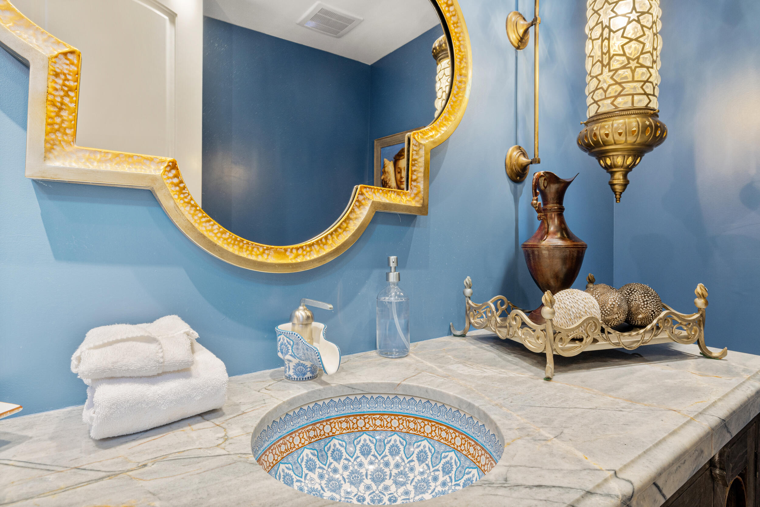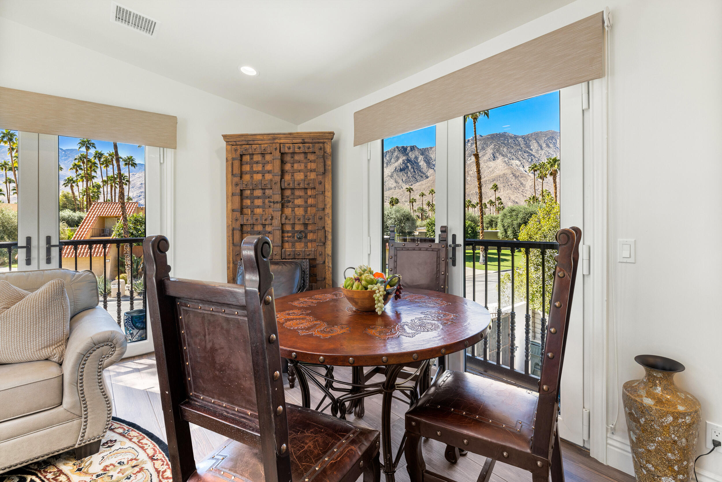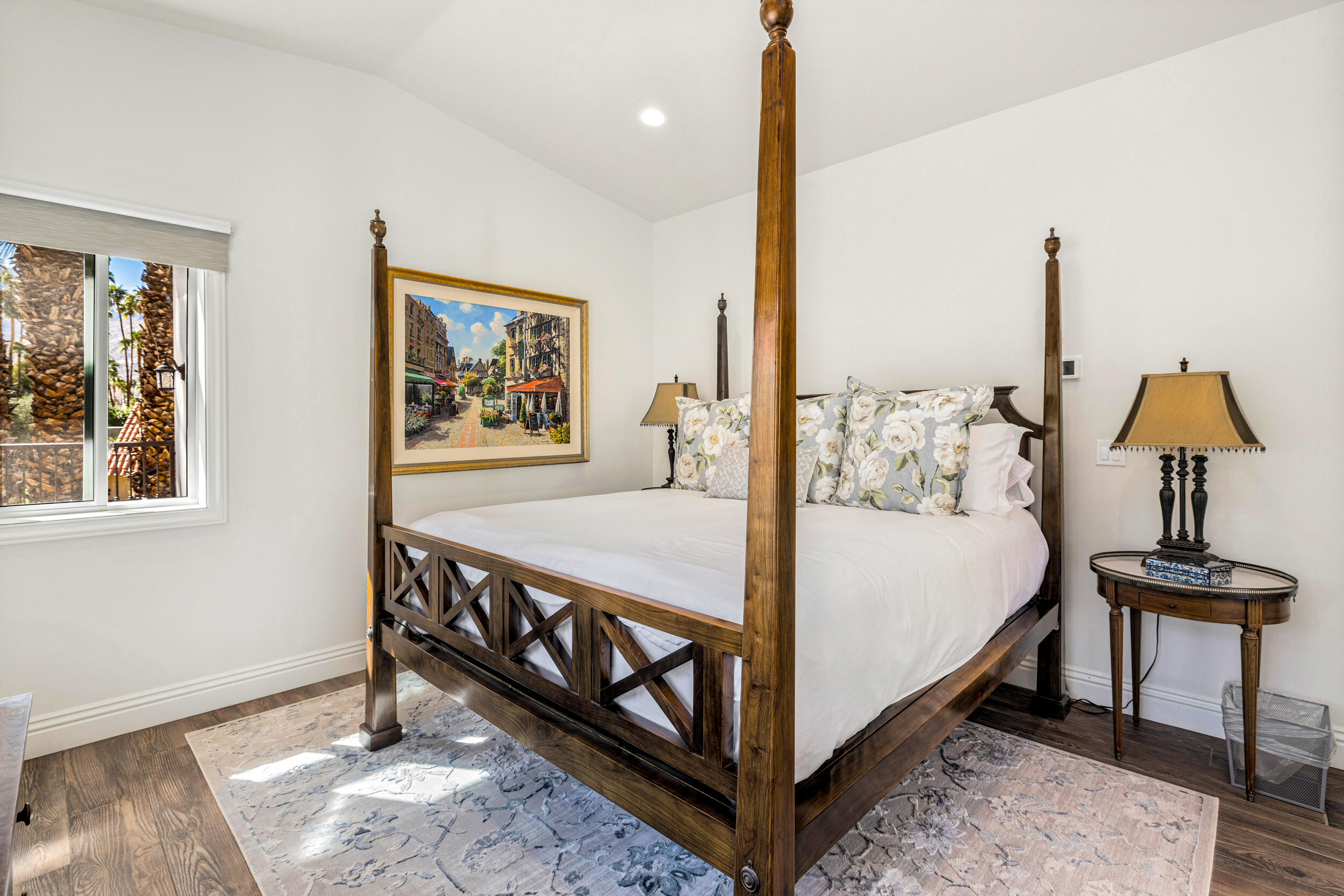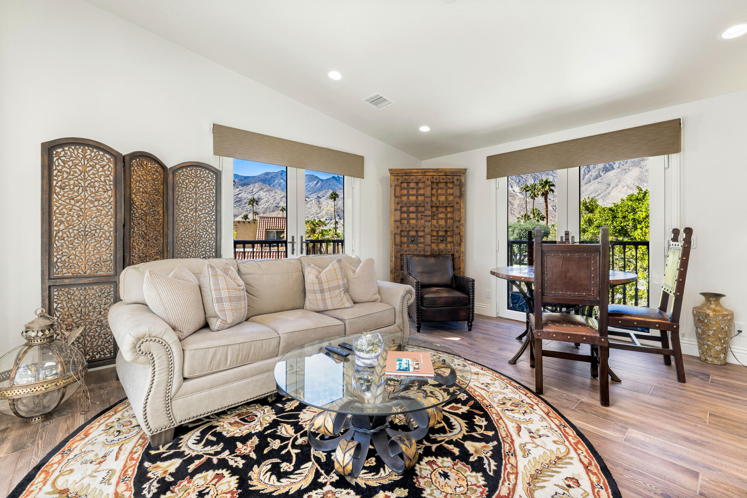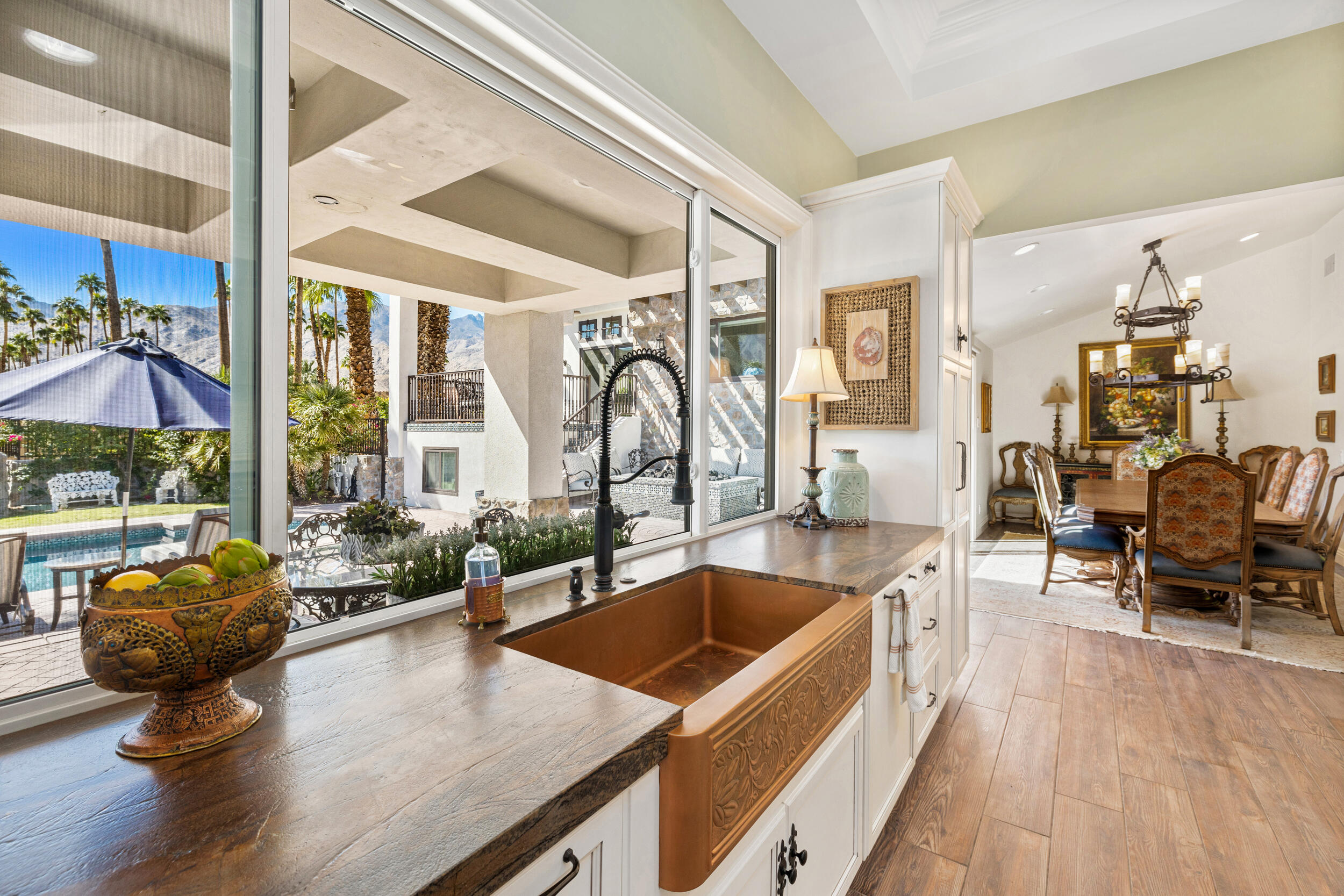 Welcome to Casa Suenos - an architectural masterpiece in the heart of South Palm Springs. Tucked away in the exclusive enclave of Andreas Hills, this private sanctuary blends timeless elegance with elevated design. Surrounded by awe-inspiring 360-degree mountain views, the estate offers a truly unrivaled setting--sheltered by the mountains, bathed in sunlight, & undisturbed by wind--where luxury & tranquility exist in perfect harmony. Set in one of South Palm Springs' most exclusive & tranquil neighborhoods, this residence is just moments from world-class hiking, premier golf, & all the best that Palm Springs has to offer. This 5,417 square foot custom estate is a true architectural jewel-- reimagined & completely rebuilt just three years ago. The result is a meticulously curated Spanish Colonial masterpiece, infused with romantic Moroccan & French architectural influences, seamlessly blended into an elegant & cohesive vision. Every detail, every finish, every texture has been intentionally selected to evoke a sense of escape, romance, & refined beauty. Designed as a private resort, the home includes 4 luxurious en suite bedrooms, a fully-appointed detached casita/guest house with its own kitchen, living room, and laundry, 7 baths, and a 4-car garage. The grand living spaces are anchored by soaring vaulted wood-beamed ceilings, a handcrafted dark wood tequila bar, bespoke custom tilework, and artisan cabinetry that reflect true craftsmanship. Indoor and outdoor living flow effortlessly with sliding pocket doors that open to a spectacular front-loaded resort-style pool & spa, framed by lush landscaping, a Spanish-tiled outdoor fireplace, a fully equipped al fresco kitchen, multiple lounge areas, & a raised patio offering what may be the most breathtaking mountain views in the entire Coachella Valley.The primary suite is the epitome of luxury--expansive, romantic, and indulgent. It features a spa-like bath, dual walk-in closets, and a private attached office for quietInterested in this Listing?