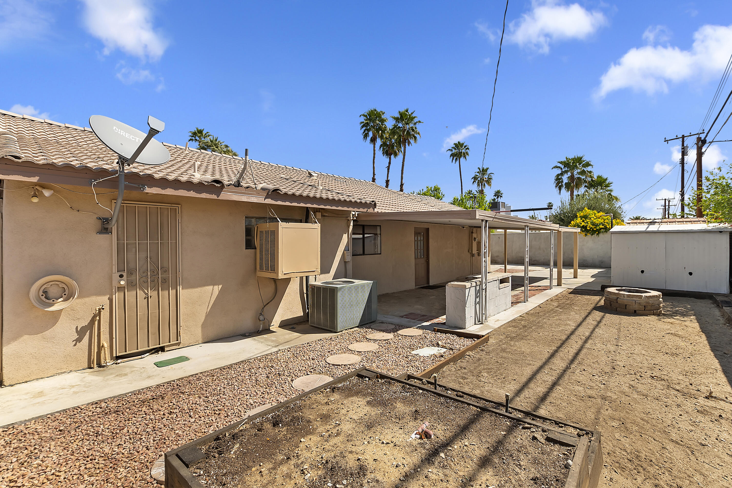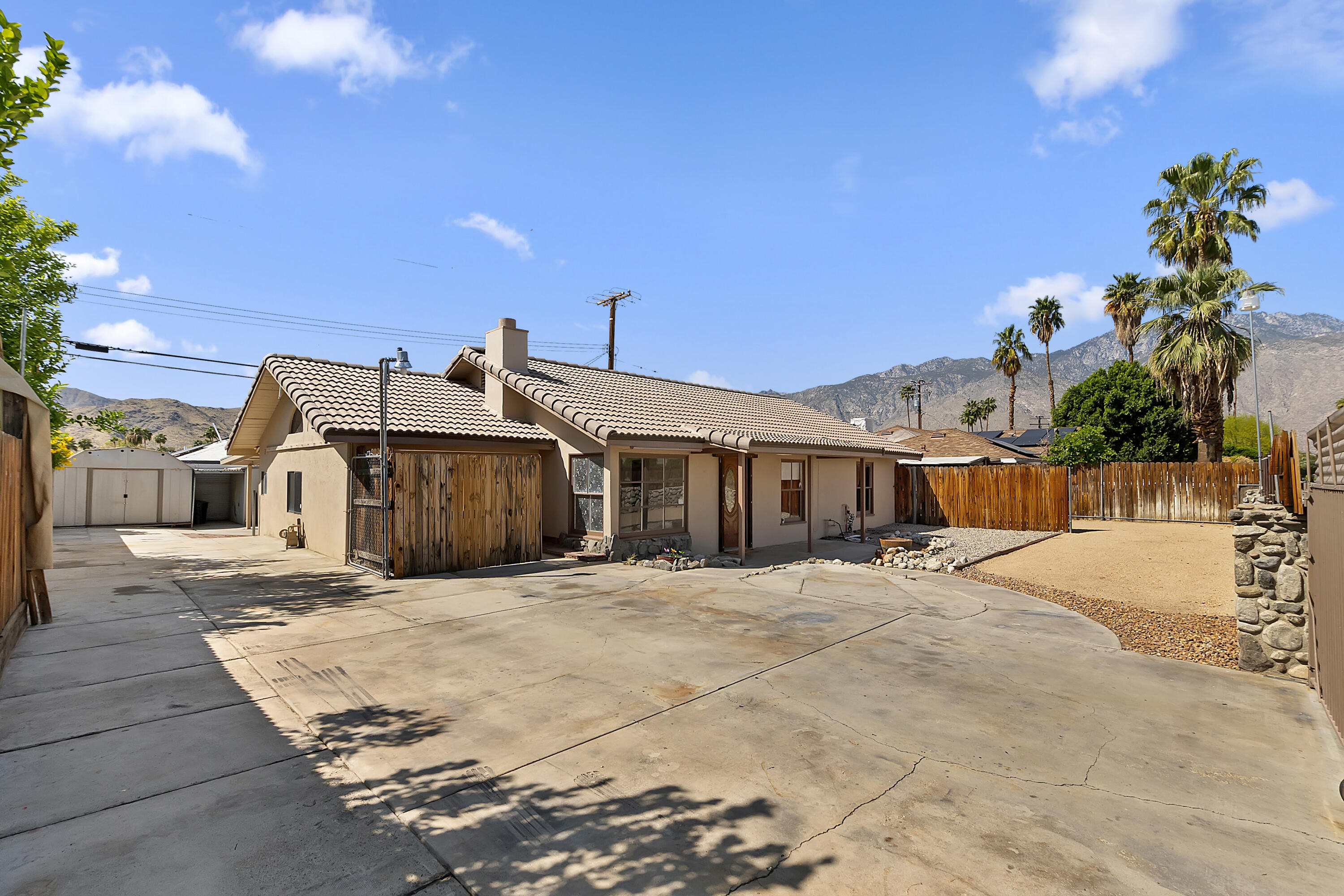South Palm Springs, You Own The Land! This 4 bedroom, 1.5 bathroom with RV parking, 1433 sq ft home and stunning mountain views is located in the highly sought after Demuth Park area. Looking to add to your rental portfolio? Or make this your very own year round destination? This property is completely gated to achieve a very private oasis ideal for a pool so bring your designers and create your 'fun-in-the-sun' retreat. Enter into the quaint bungalow style home and enjoy your evenings next to the charming, natural stone, wood burning fireplace. The kitchen offers granite countertops, beautiful wood cabinets, natural stone flooring and picturesque views of the mountains. The bedrooms are spacious with the primary located towards the rear of the home. Attic access is in the primary bedroom with attic lighted and flooring sheeted for additional storage space, lots of room for all your holiday decorations. Primary bathroom is extra spacious with ceramic tile flooring, dual vanities, shower over tub and laundry room. The 4th bedroom offers upper and lower level sleeping areas. There is an additional room off the living room for extra storage space. Property includes RV parking with sewer access and room for additional parking. Newer electrical panel and space for 220 volt outlet, to be installed, near the RV storage. Just a short walk to the beautiful Prescott Preserve and minutes from the Palm Springs Airport, Downtown Palm Springs, Demuth Park with Pickle Ball courts, and Smoke Tree Commons with great shopping and award winning restaurants. City website says Demuth Park neighborhood has not reached limit for Short Term Rentals so this property may qualify. Buyer to verify all details.Interested in this Listing?