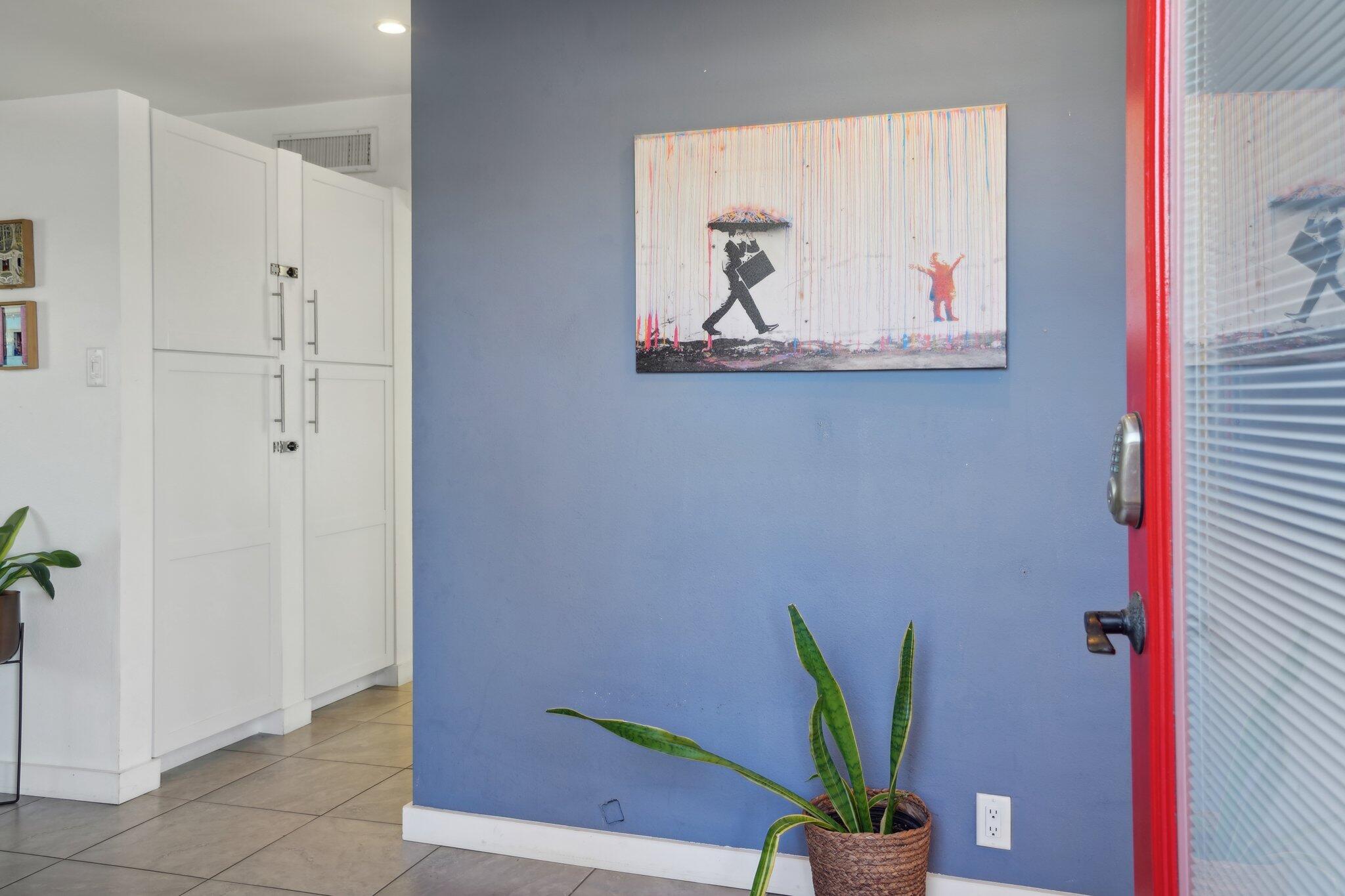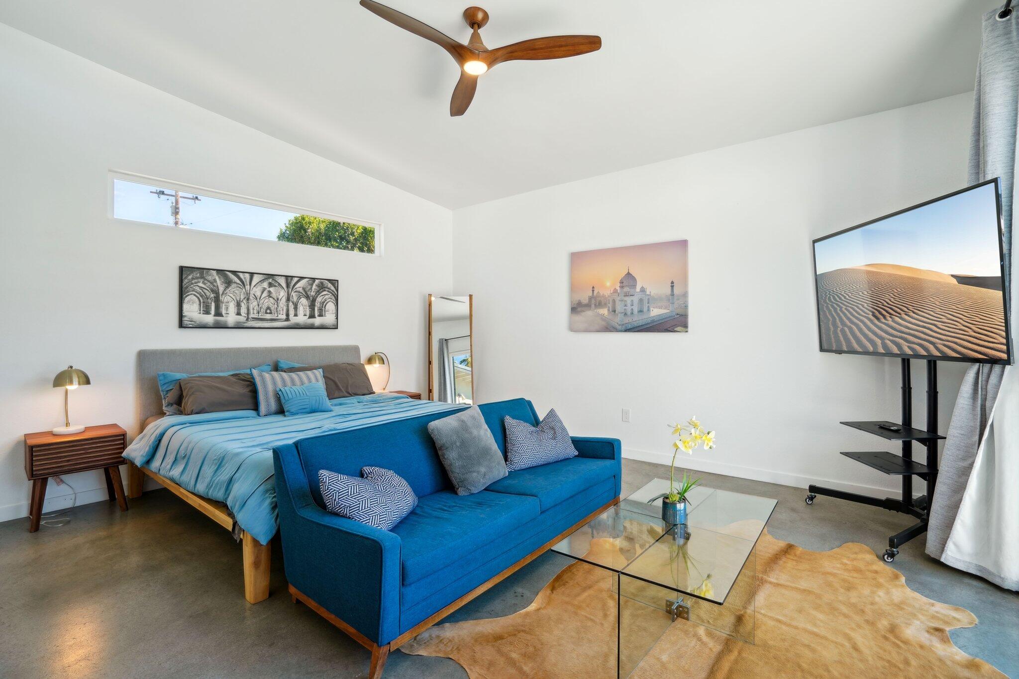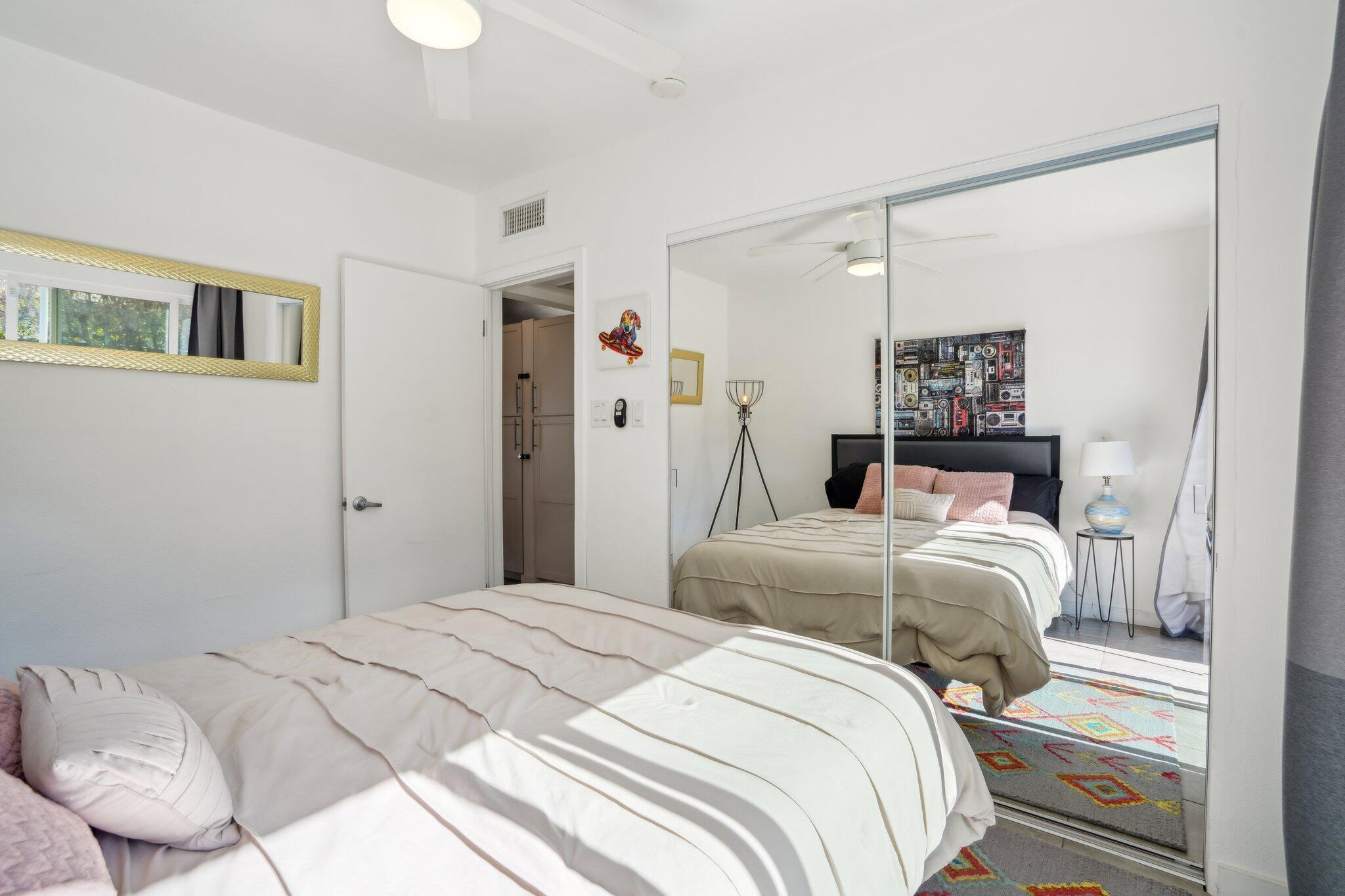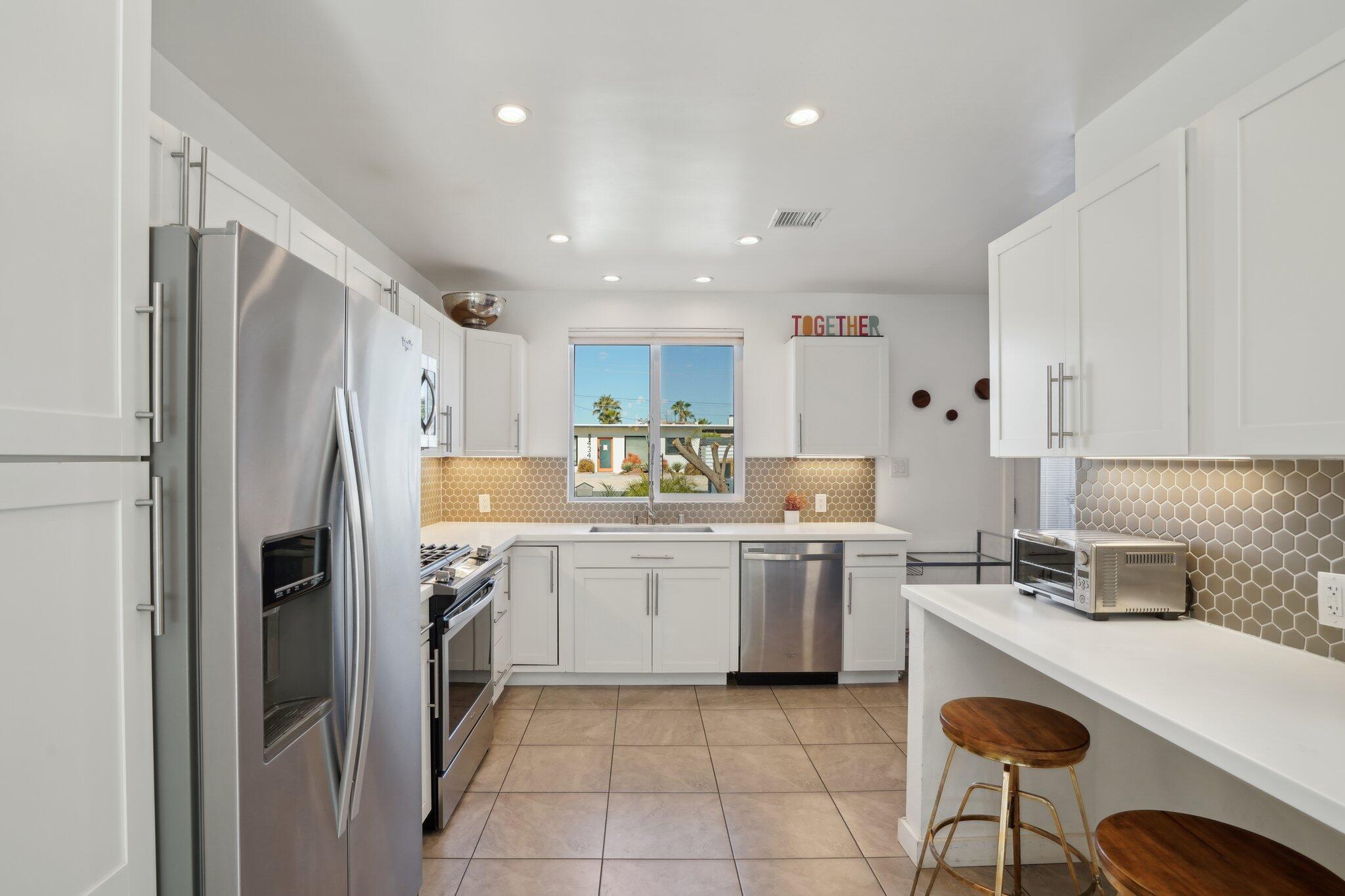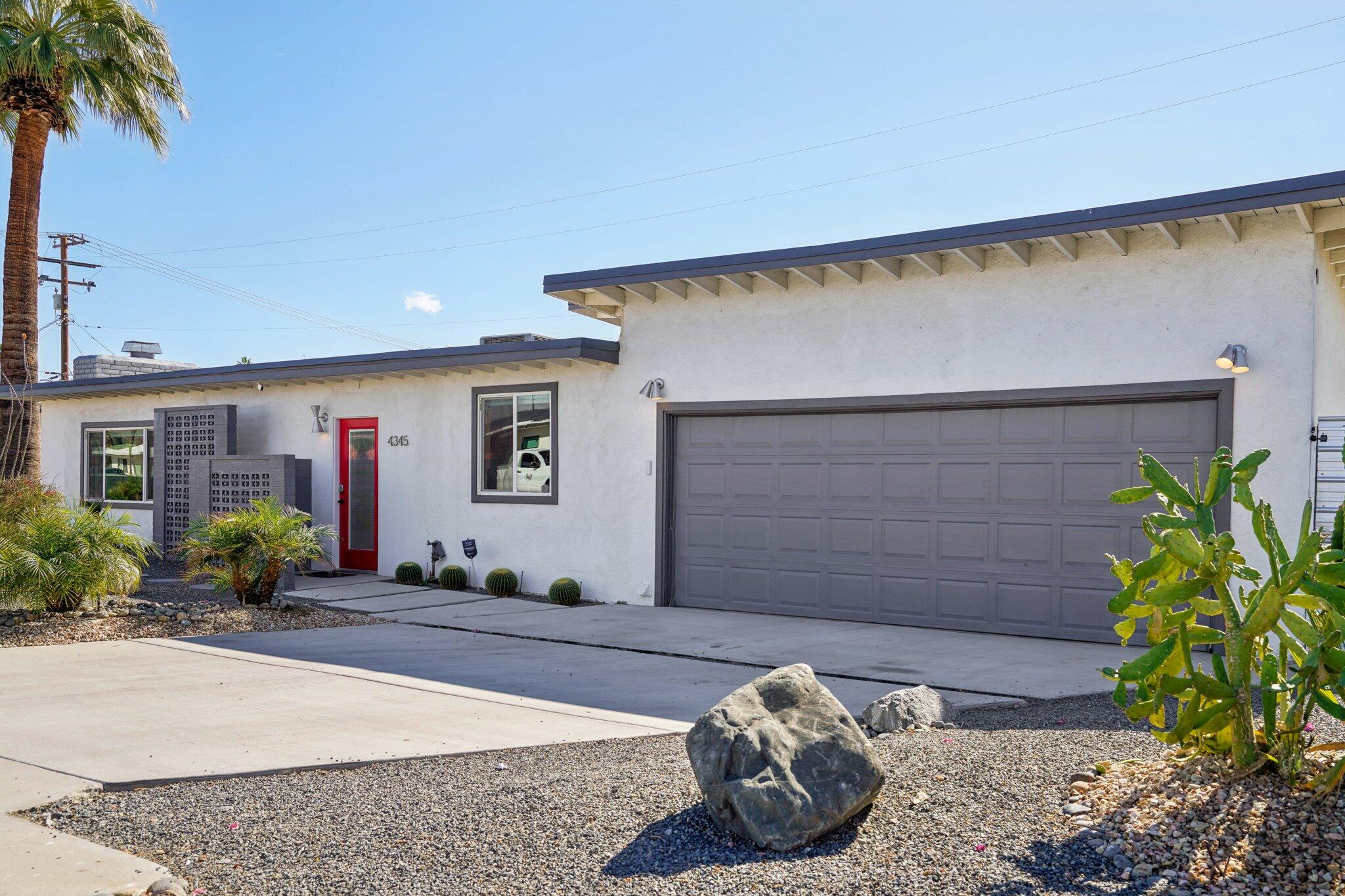 Discover this stunning AIRB&B READY 3-bedroom, 2-bathroom mid-century modern home, perfectly situated in the vibrant heart of Palm Springs. This property seamlessly blends classic Palm Springs charm with contemporary amenities, offering an exceptional living experience while also offering low utility bills ( you gotta love owned solar! ). The outdoor area features a recently updated PebbleTec pool and spa, complete with a relaxing Baja shelf, ideal for sunbathing and leisure. The expansive space is perfect for hosting gatherings, featuring a cozy firepit for cooler evenings. Encased by a substantial privacy hedge and adorned with fruit trees, the backyard offers a serene retreat. Inside, the gourmet chef's kitchen boasts quartz countertops, sleek white cabinetry, a stylish hexagon backsplash, and top-of-the-line stainless steel appliances. The luxurious primary suite features vaulted ceilings, clerestory windows, and sliding glass doors that provide direct access to the pool and showcase breathtaking mountain views. The en-suite bathroom includes a walk-in shower with chic tile, a seamless glass enclosure, a floating vanity, and a spacious walk-in closet. Both additional bedrooms are generously sized and offer direct access to the pool area, ensuring comfort and convenience for guests. Located in a neighborhood where less than 20% of properties are designated for short-term rentals, this home presents a prime opportunity for Airbnb hosting, a vacation getaway, or a primary residence. The combination of luxury amenities and favorable rental policies enhances its appeal in the Palm Springs market. Embrace the quintessential Palm Springs lifestyle with this exquisite property. Don't miss the chance to make this mid-century modern masterpiece your own!Interested in this Listing?