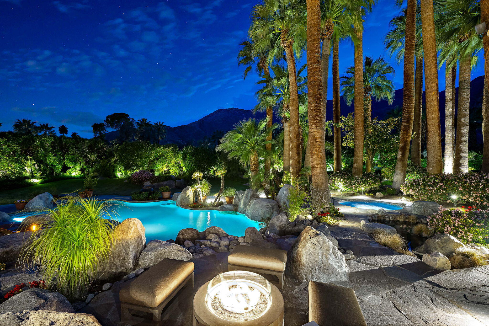 Nestled in the heart of the historic Old Las Palmas enclave of Palm Springs, this one of a kind estate perfectly captures the essence of desert luxury. Designed by legendary interior designer Steve Chase, the residence sits on nearly two acres of lush, private grounds.The property features a palm tree grove, orchard, tennis court, pavilion, and a resort-style pool with dramatic water features. Inside the main residence, you'll find five bedrooms, four and a half bathrooms, a media lounge, atrium and a breakfast room with panoramic views. The kitchen is outfitted with Wolf, Miele, and SubZero appliances. Stone flooring flows seamlessly from indoors to out, highlighting the impeccable attention to detail found throughout.Recent upgrades include a reimagined kitchen, media lounge, attached casita, system enhancements, and the installation of a substantial solar array--offering modern convenience while preserving the estate's timeless elegance.A two-bedroom, two-bathroom guest house sits across the motor court, complete with its own living room, kitchen, dining area and private patios.Outdoors, the estate is embraced by the majestic San Jacinto Mountains, creating a backdrop that feels like it is part of the property. Massive boulders meticulously integrated throughout the grounds enhance the sense of place, offering an unparalleled connection to the natural landscape.This estate stands as a lasting testament to Steve Chase's visionary design.Interested in this Listing?