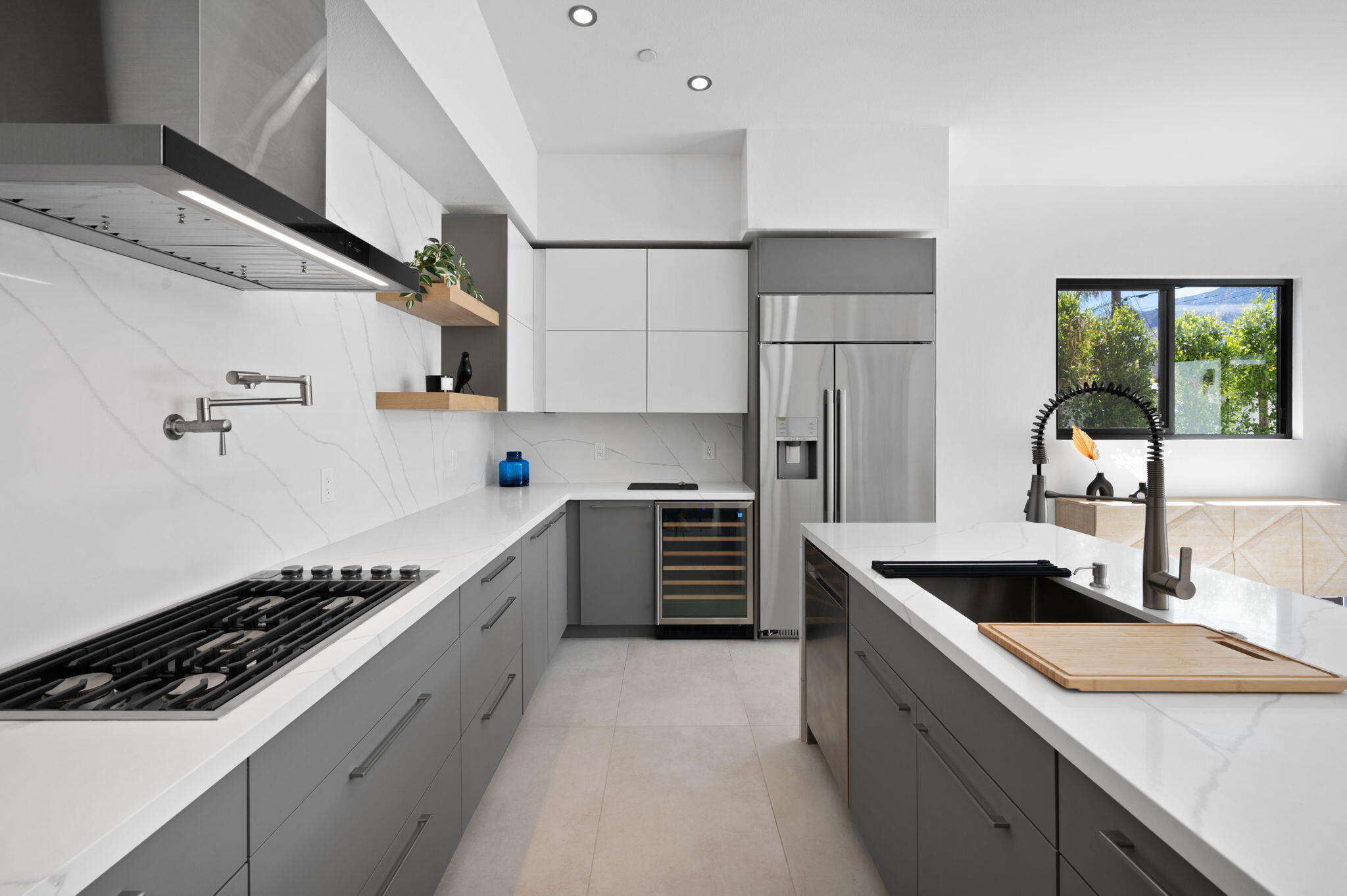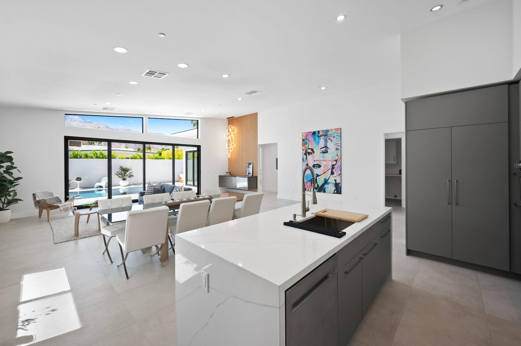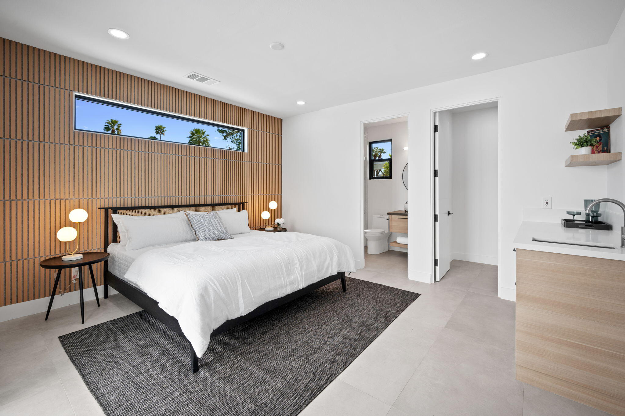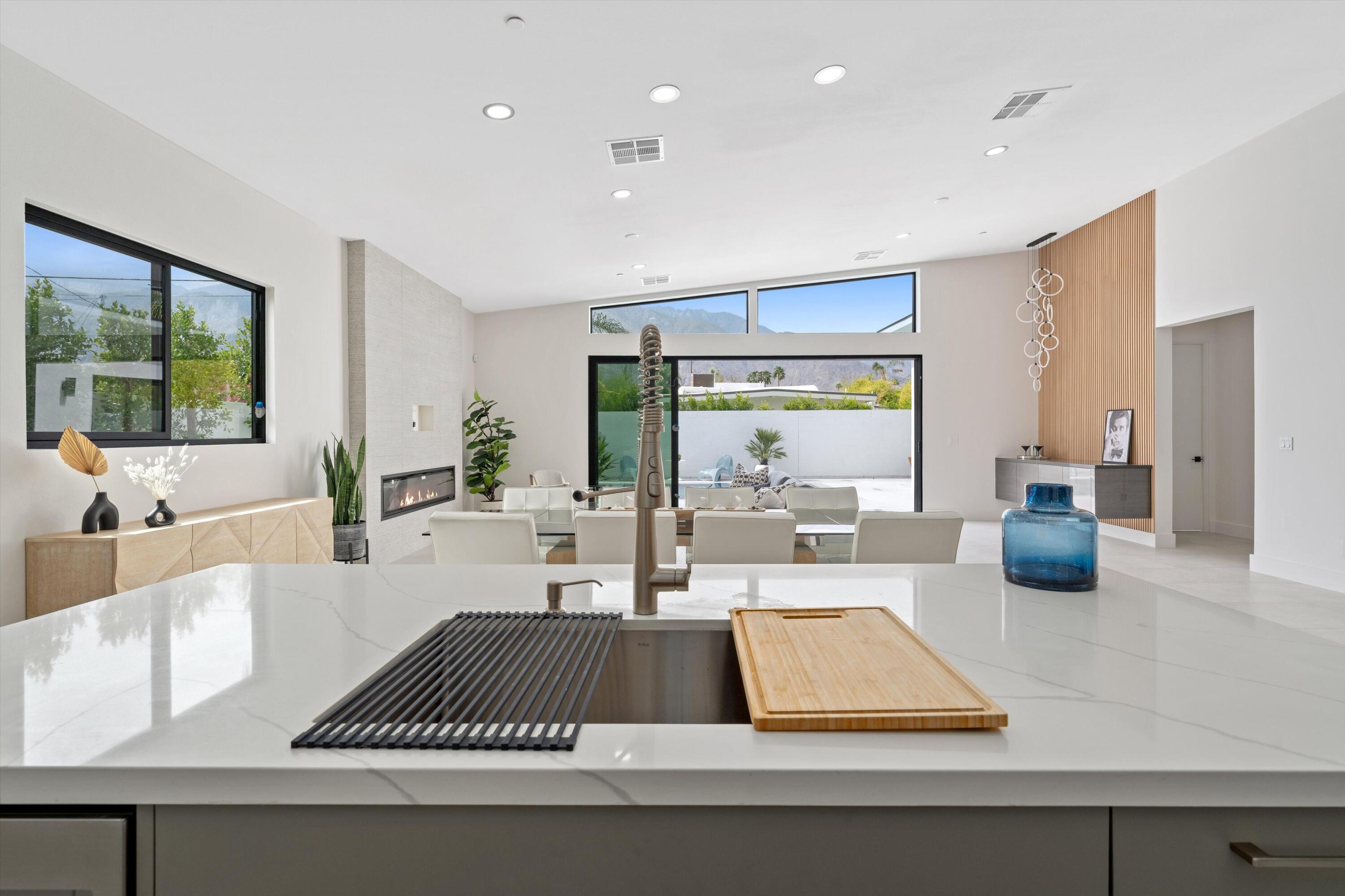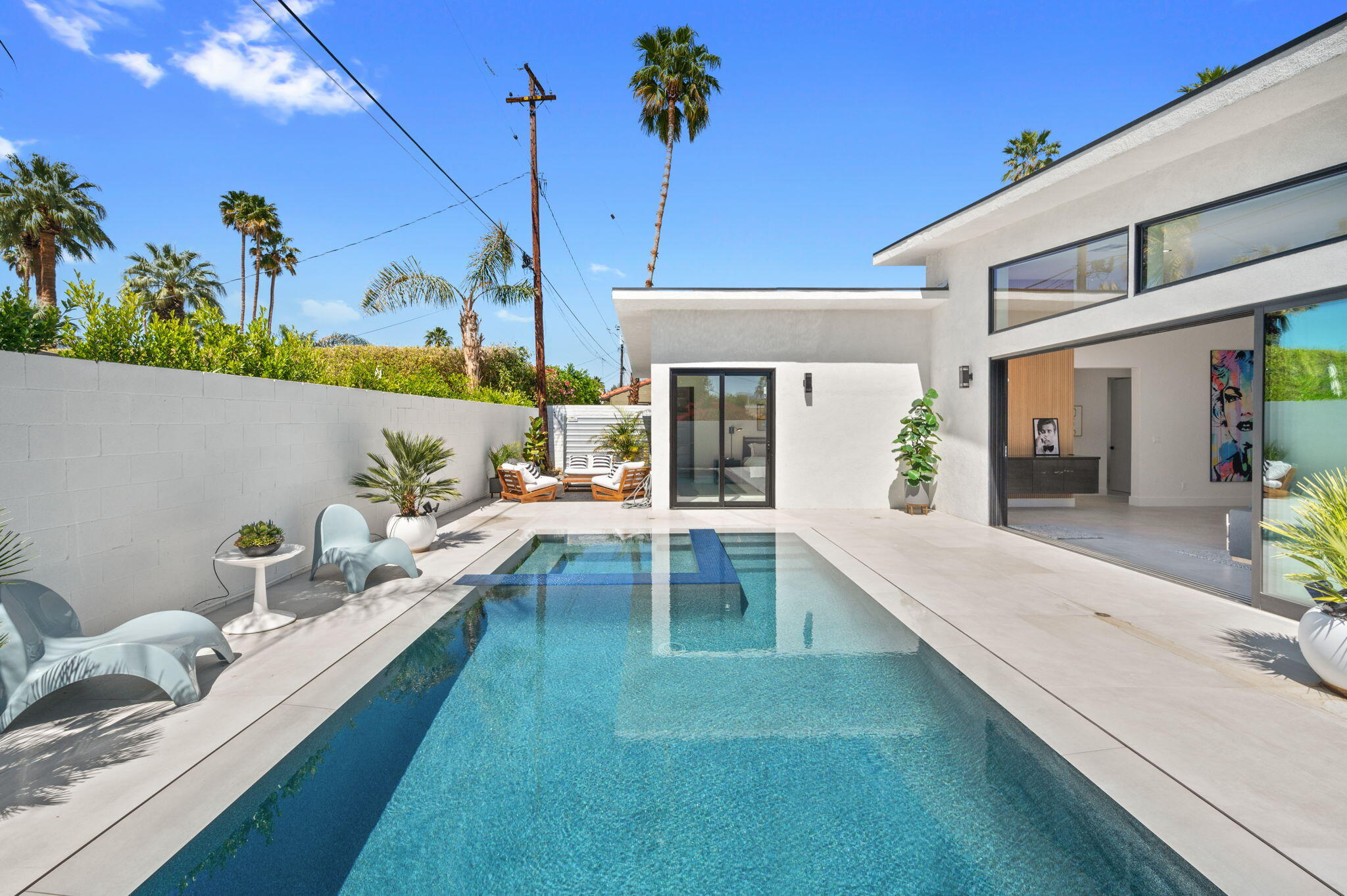 Open House. Sat. 5/17, 11-2. Stunning New Construction & Never Lived In! A custom-designed pool home with a private casita, set against the breathtaking backdrop of Palm Springs glamorous mountain views. top dollar spent on higher end, quality finishes. Located in the prestigious Ruth Hardy Park/ Movie Colony & just minutes from downtown's finest restaurants, shopping, and entertainment, this architectural masterpiece offers the ultimate in modern luxury.Expansive sliding glass doors open to a seamless indoor-outdoor experience, showcasing a tucked away and sheltered from the street, zero-edge pool perfect for relaxation. The true custom kitchen is a showstopper, featuring Dacor appliances, sleek cabinetry, & a spacious waterfall island--a striking centerpiece for this contemporary home.Designed for effortless elegance, the open floor plan boasts high ceilings, a linear fireplace, & an abundance of natural light. Large-format block-like porcelain tile flooring enhances the home's clean, modern aesthetic.Each bedroom is a private ensuite with custom-designed walk-in closets, ensuring both style and functionality.Additional Highlights: Fee Simple Land & No HOA! Fully Owned Tesla Solar System for energy efficiency. Private Backyard with stunning unobstructed mountain views. Furniture Negotiable.Don't miss this rare opportunity to own a sleek, modern oasis in one of Palm Springs' most sought-after neighborhoods!Interested in this Listing?