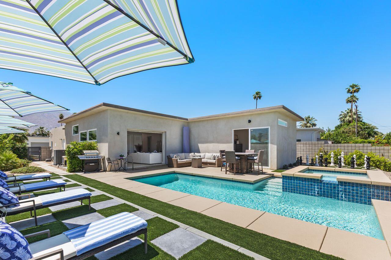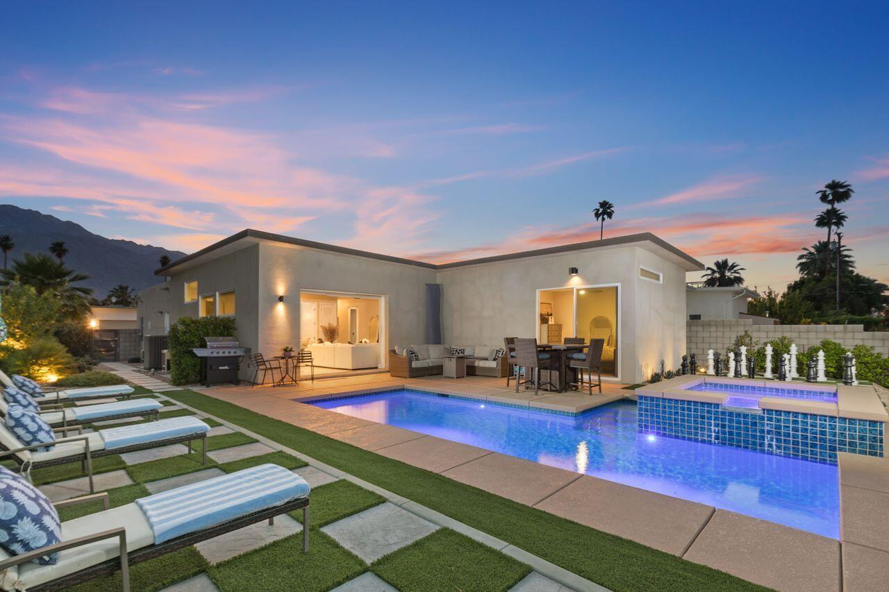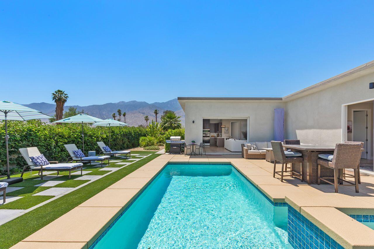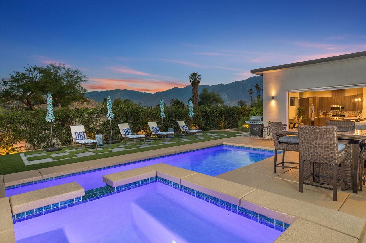 Discover unparalleled luxury at 760 S Palm Ave, a fully furnished, turnkey masterpiece that invites you to experience the best of Palm Springs living. With breathtaking 180-degree views of the San Jacinto Mountains, this home features a stunning blend of natural beauty and modern convenience. Step outside to your private oasis, where drought-resistant desert landscaping and lush artificial turf create a serene, low-maintenance environment. Enjoy endless entertainment options with a life-size chess board, an LED color-changing pool, and a hot tub that transforms your backyard into a vibrant evening retreat. Inside, you'll find an open-concept living area that seamlessly merges with the outdoors through a disappearing retractable glass wall, perfect for hosting gatherings or simply relaxing in style. No expense was spared in the design, boasting sleek quartz countertops and premium stainless-steel appliances that define the modern kitchen. Located just an 8-minute drive from downtown Palm Springs, this home is adjacent to Palm Springs' largest public park and the Tahquitz Creek Golf Resort, offering unparalleled access to resort-style amenities. Plus, this property is on Fee Land, one of the few remaining areas that allows short-term rentals, making it an exceptional investment opportunity. Don't miss your chance to own this exquisite property. Embrace the Palm Springs lifestyle at 760 S Palm Ave- your perfect personal retreat or lucrative investment awaits. Schedule your viewing today!Interested in this Listing?