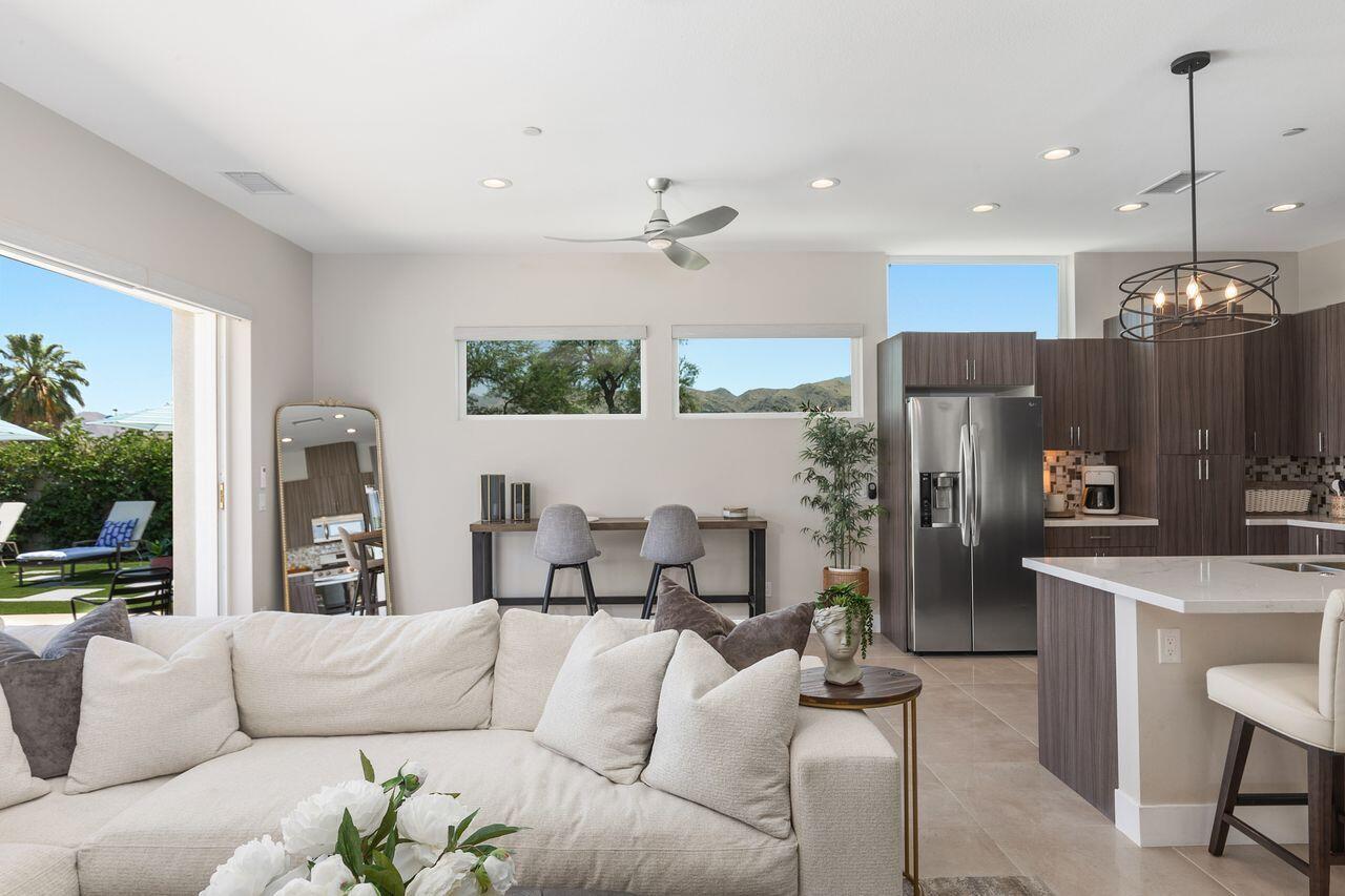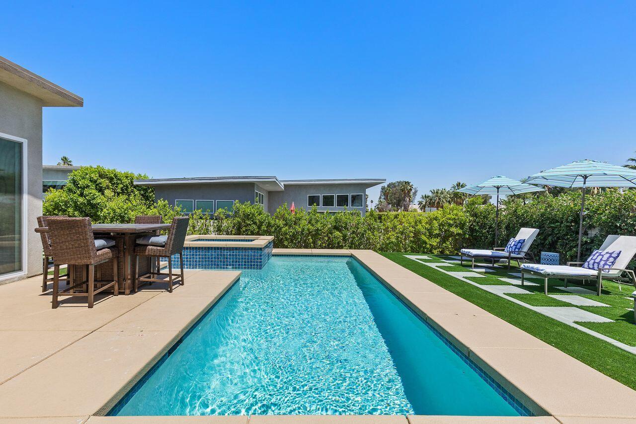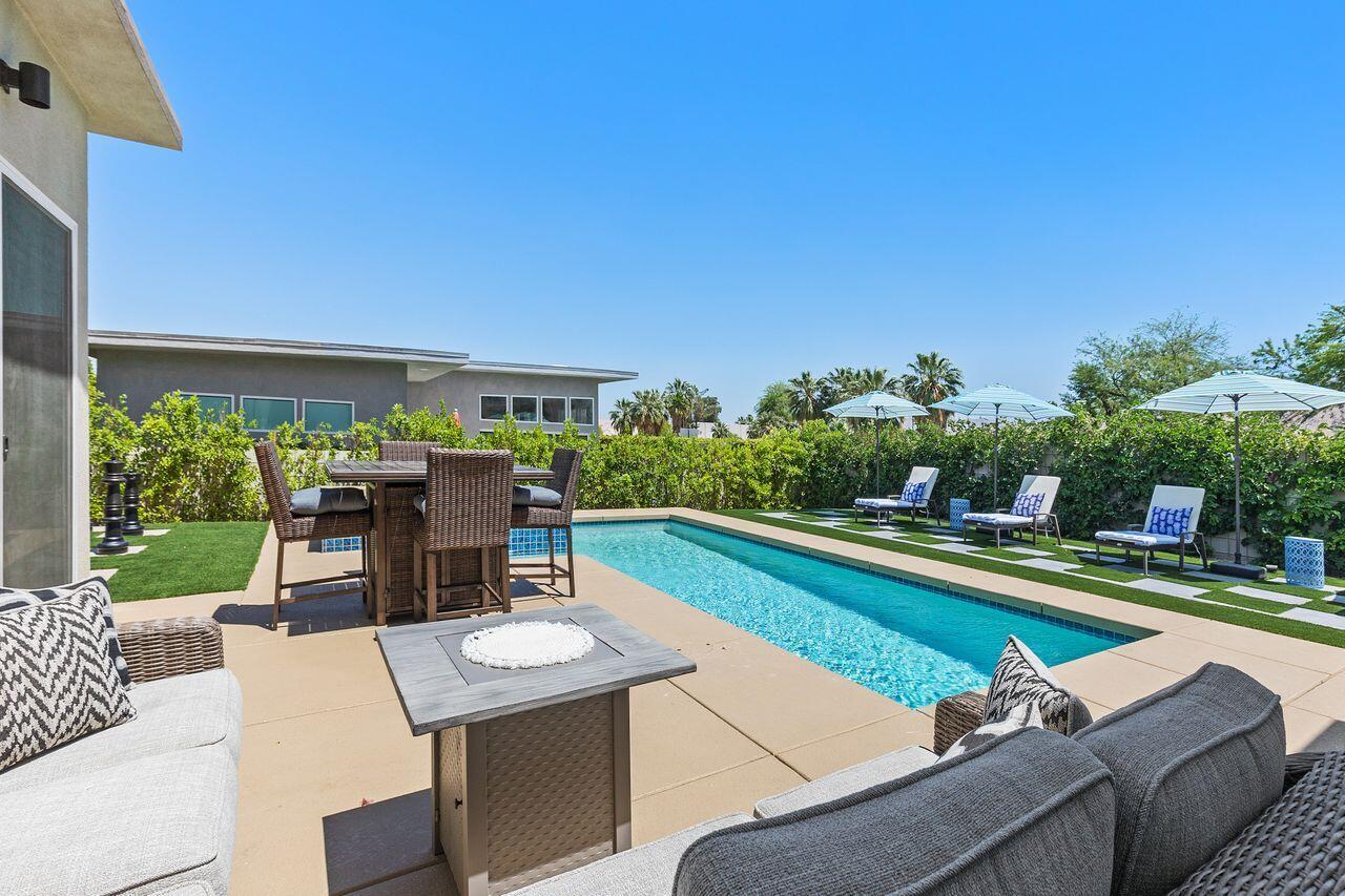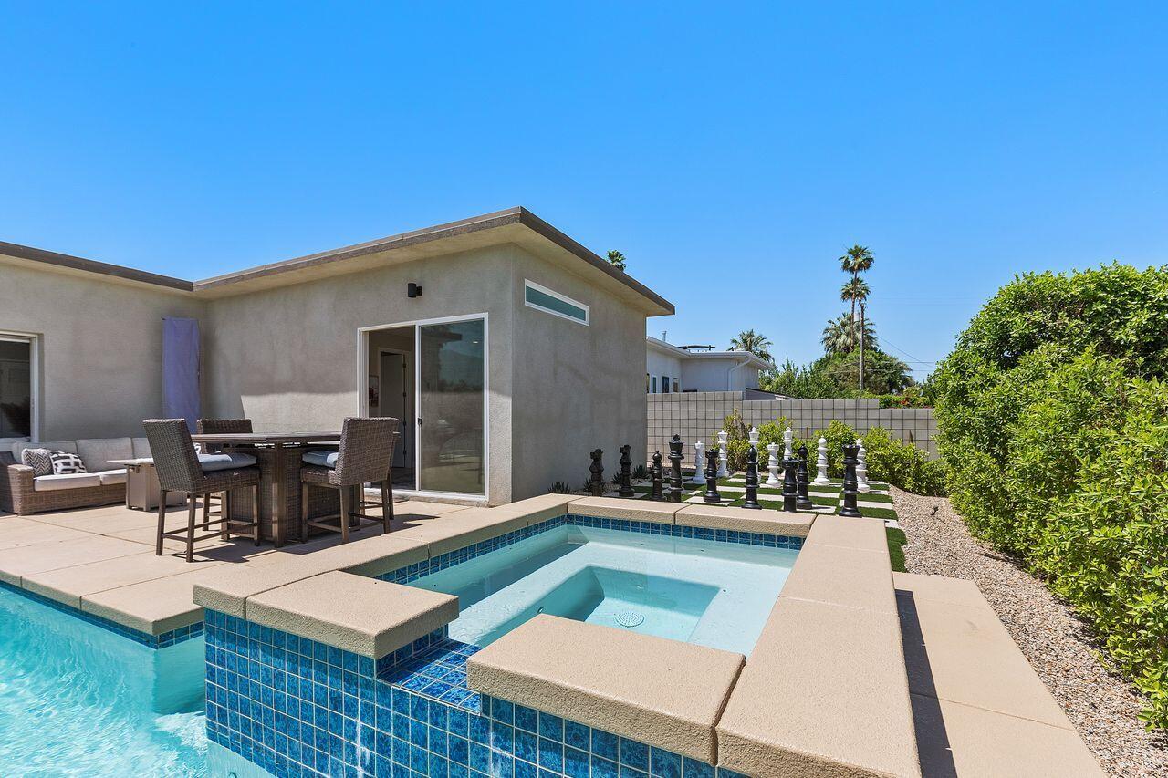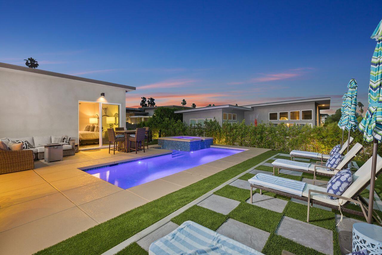 Discover unparalleled luxury at 760 S Palm Ave, a fully furnished, turnkey masterpiece that invites you to experience the best of Palm Springs living. With breathtaking 180-degree views of the San Jacinto Mountains, this home features a stunning blend of natural beauty and modern convenience. Step outside to your private oasis, where drought-resistant desert landscaping and lush artificial turf create a serene, low-maintenance environment. Enjoy endless entertainment options with a life-size chess board, an LED color-changing pool, and a hot tub that transforms your backyard into a vibrant evening retreat. Inside, you'll find an open-concept living area that seamlessly merges with the outdoors through a disappearing retractable glass wall, perfect for hosting gatherings or simply relaxing in style. No expense was spared in the design, boasting sleek quartz countertops and premium stainless-steel appliances that define the modern kitchen. Located just an 8-minute drive from downtown Palm Springs, this home is adjacent to Palm Springs' largest public park and the Tahquitz Creek Golf Resort, offering unparalleled access to resort-style amenities. Plus, this property is on Fee Land, one of the few remaining areas that allows short-term rentals, making it an exceptional investment opportunity. Don't miss your chance to own this exquisite property. Embrace the Palm Springs lifestyle at 760 S Palm Ave- your perfect personal retreat or lucrative investment awaits. Schedule your viewing today!Interested in this Listing?