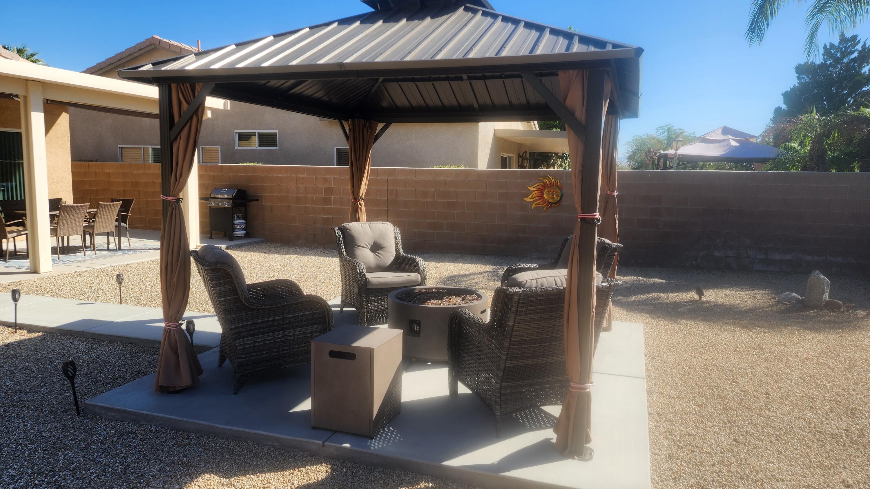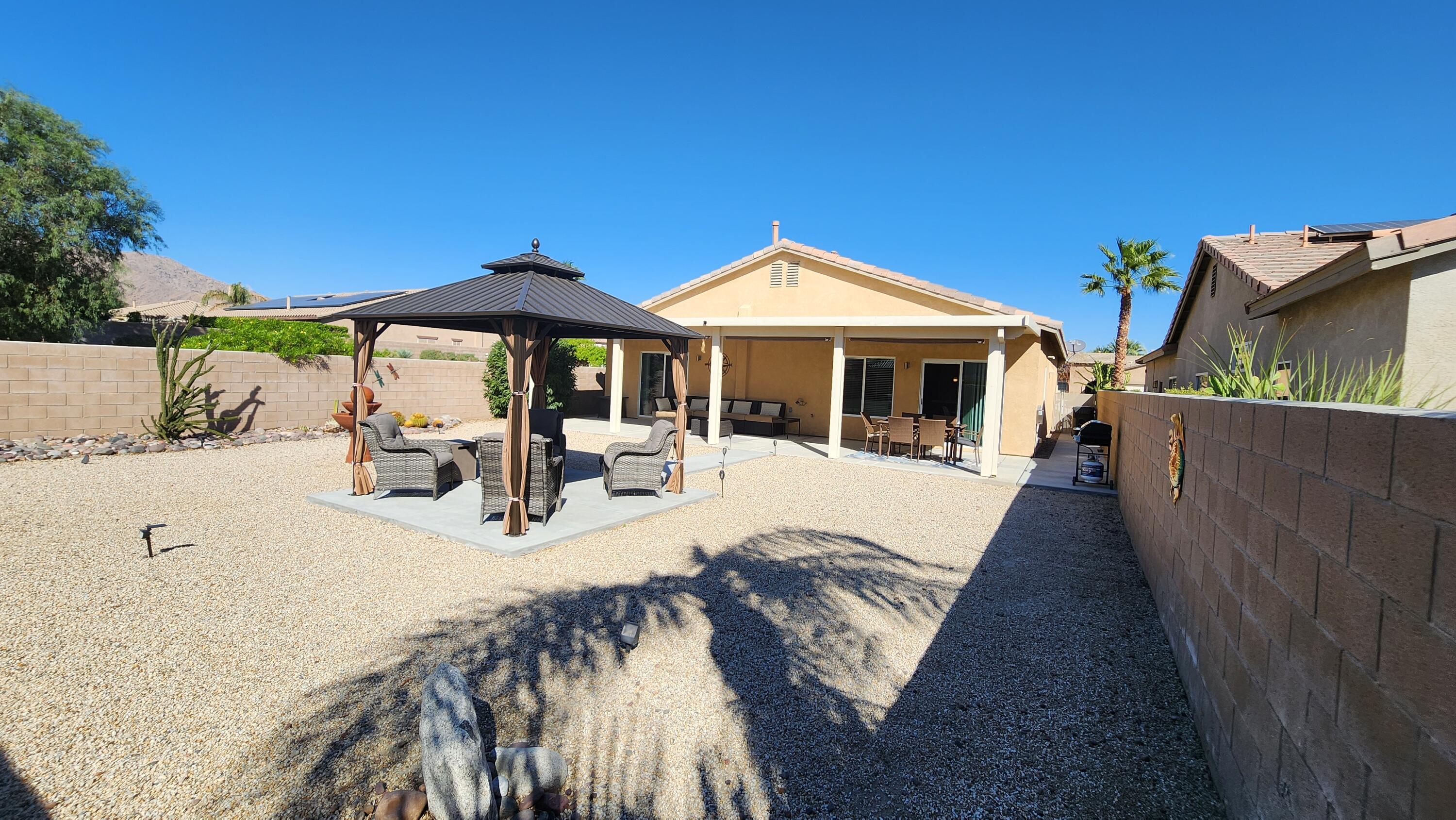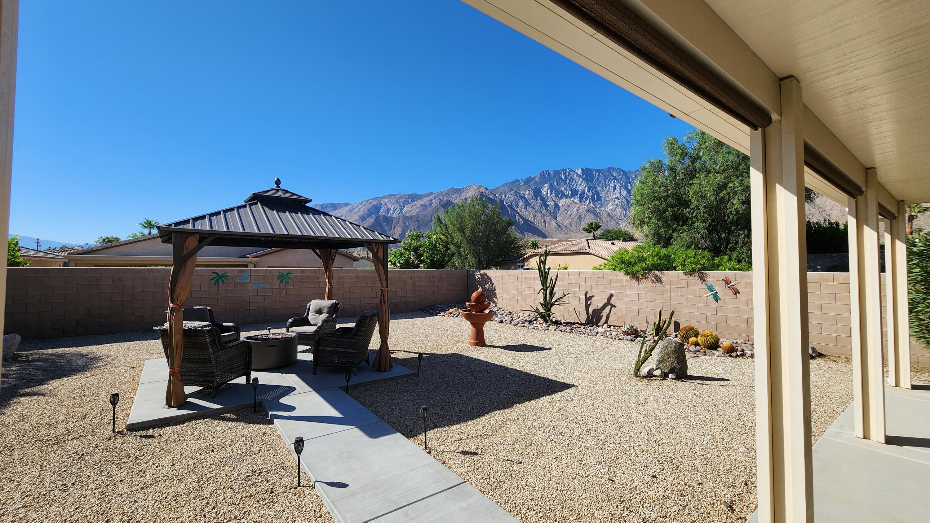 Wow, grab a cup of coffee and enjoy these spectacular views of the San Jacinto Mtns. from your backyard in this oversized corner lot. Home is beautifully decorated, upgraded and ready to move in and start enjoying. Seller will include furnishings in the house minus some artwork. A/C unit is newer. Water softener is owned. Tile throughout. Kitchen has large island, pantry, and stainless appliances. Great room has gas log fireplace and media niche. Inside laundry room leads to 2 car attached and finished garage. New Gazebo and alumawood patio cover provide plenty of shade. The yard is big enough for the largest of pools however the Gated community has 3 pools, spas, tennis courts, basketball court, covered BBQ area, childrens' playground, walking paths, and roving patrol. Super low HOA dues. Located just off Palm Canyon and a short drive to Dining, shops, entertainment and one light away from the famous Palm Springs Aerial Tramway. Don't wait on this one, Very well priced!Interested in this Listing?