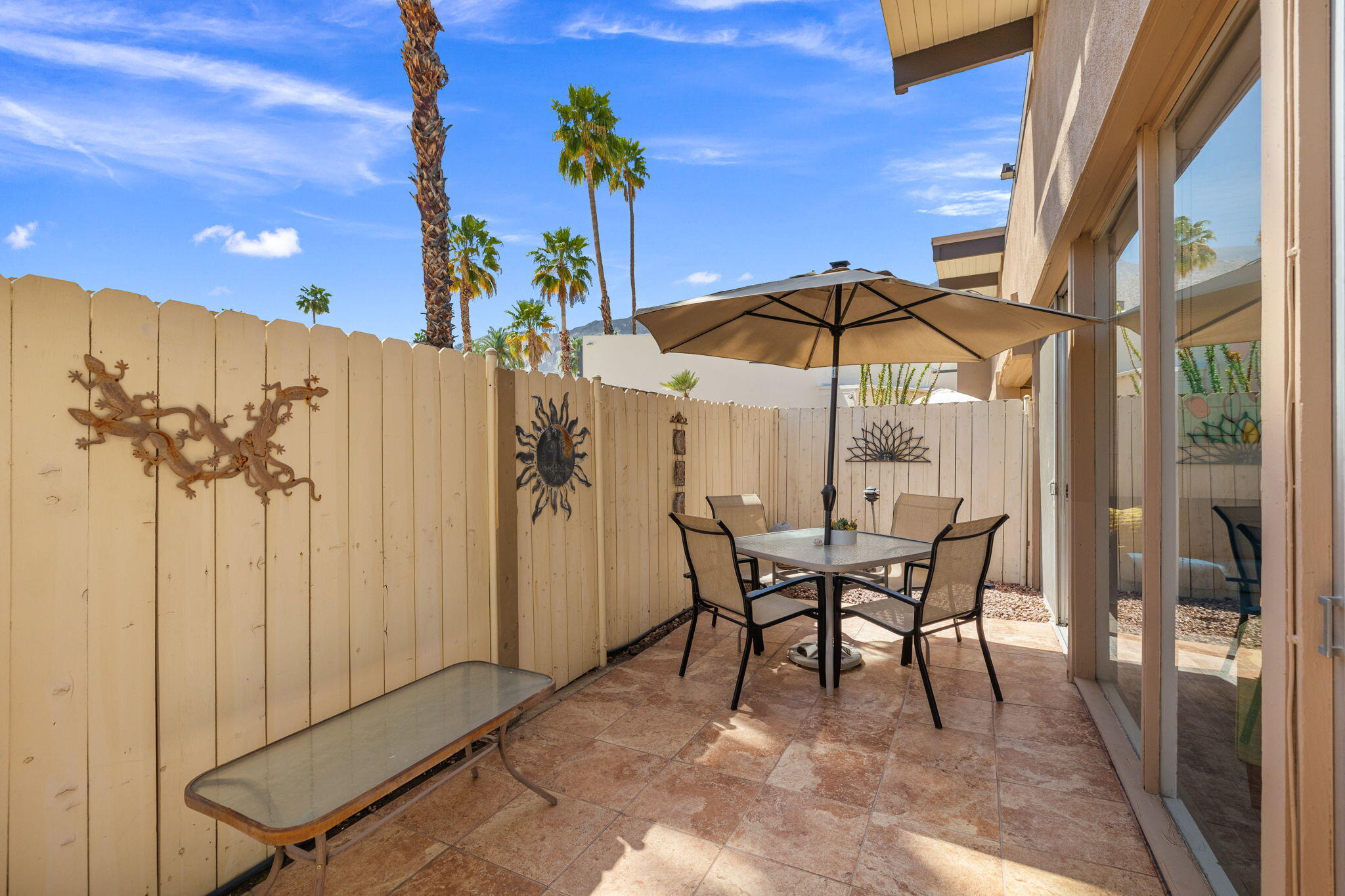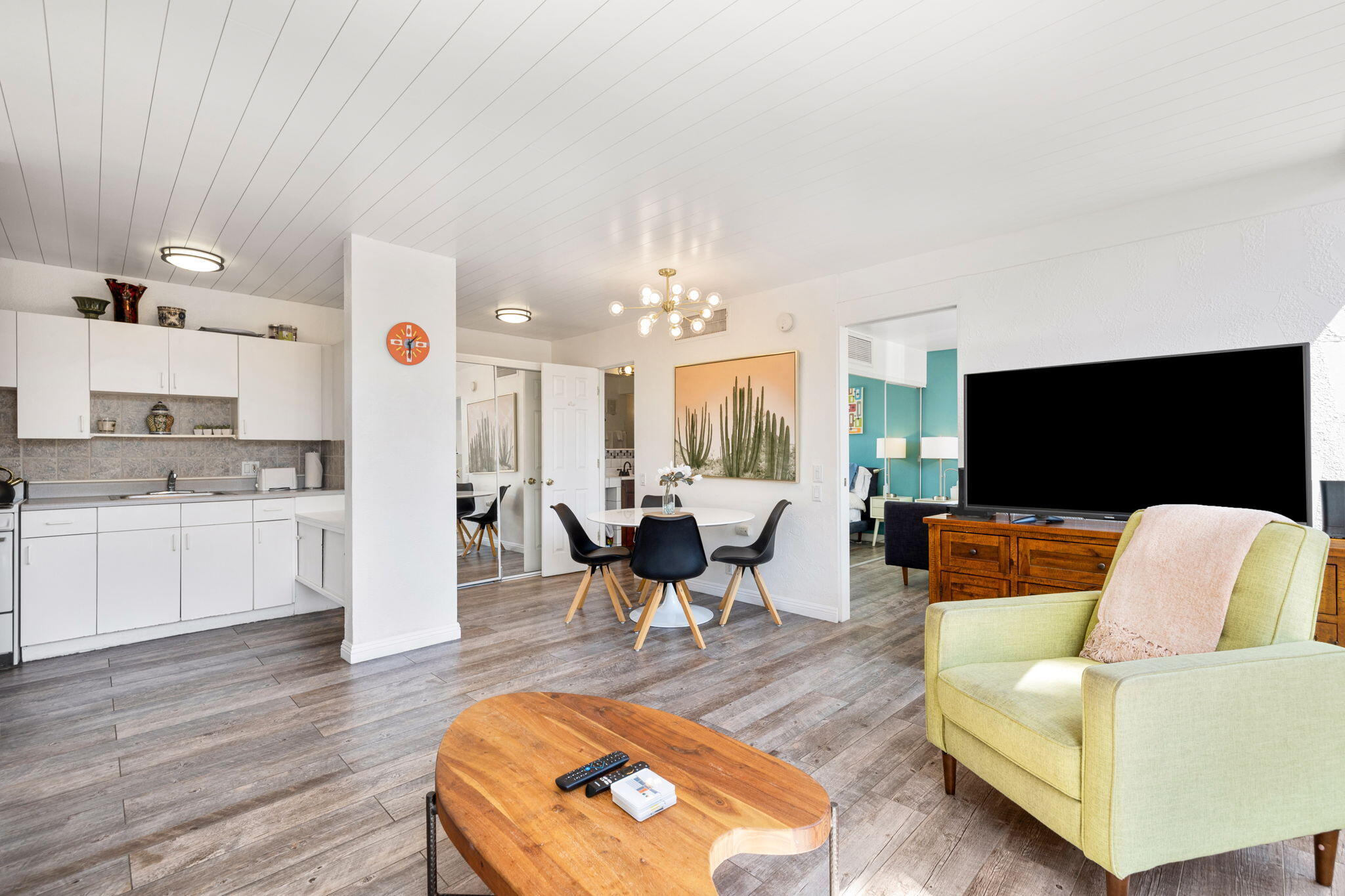 Welcome to the famous Ocotillo Lodge in sunny Palm Springs! Designed by renowned architects William Krisel and Dan Palmer, built by the Alexander Company, this once hotel and playground to the stars including the Rat Pack is now a mid-century complex that has been converted to condos. Fabulous amenities include a champagne cork-shaped pool, two hot tubs, a clubhouse with pool tables and piano, community gym, and an outdoor Sunshine bar with a built-in grill - an entertainer's dream! Live every day like you're on vacation in this lower level desert-styled bungalow featuring large sliders that open to a private patio with views of the majestic San Jacinto Mountains. This charming unit is sure to impress - complete with sputnik chandelier, tiled shower, beamed ceilings, fully equipped kitchen and.... is being sold turn-key furnished! Monthly HOA dues cover ALL utilities: electricity, water, trash, cable TV, and internet. Close to dining, shopping, and entertainment too. Whether you are looking to pick up a full time pad, dreamy weekend getaway, or a fantastic income property that allows short-term rentals, Ocotillo Lodge is where it's at! Own a piece of history in the heart of Palm Springs today!Interested in this Listing?