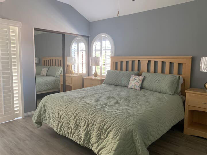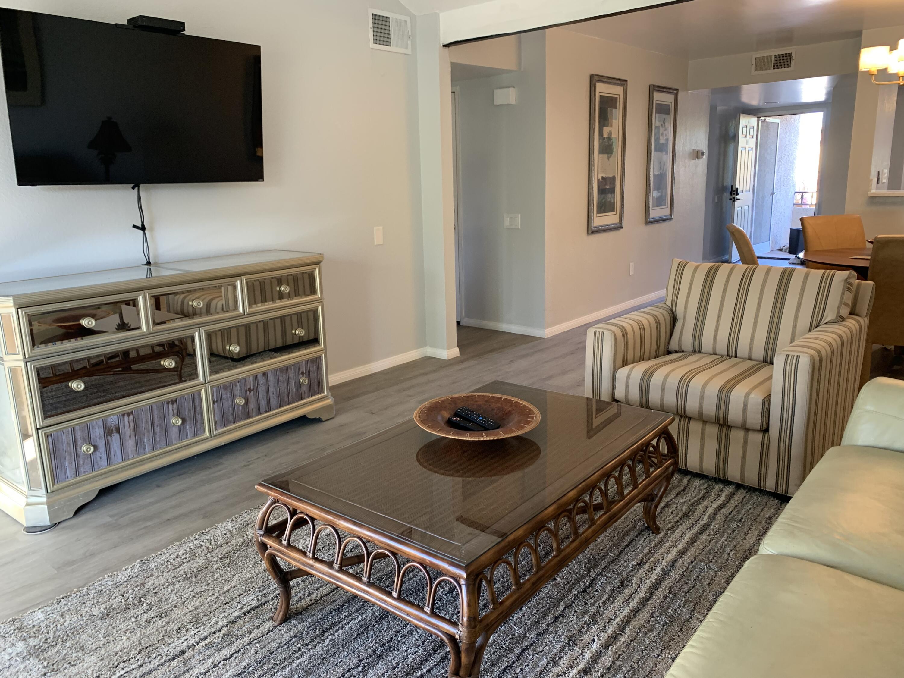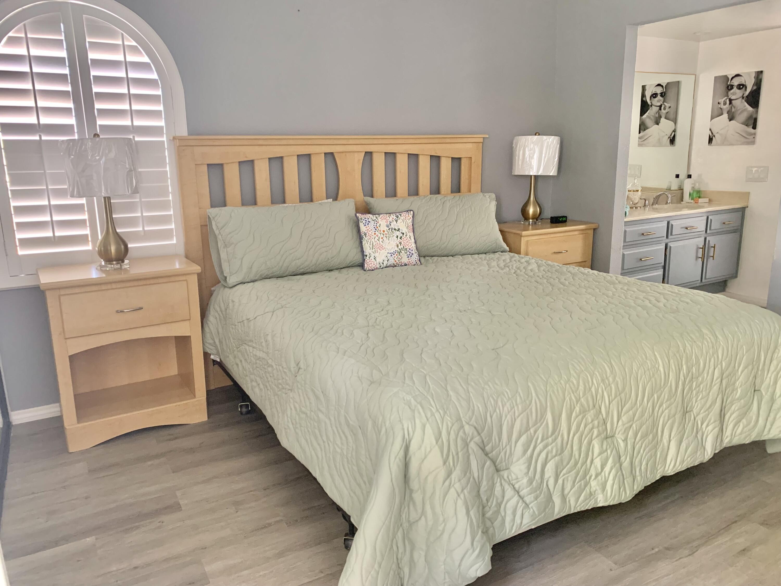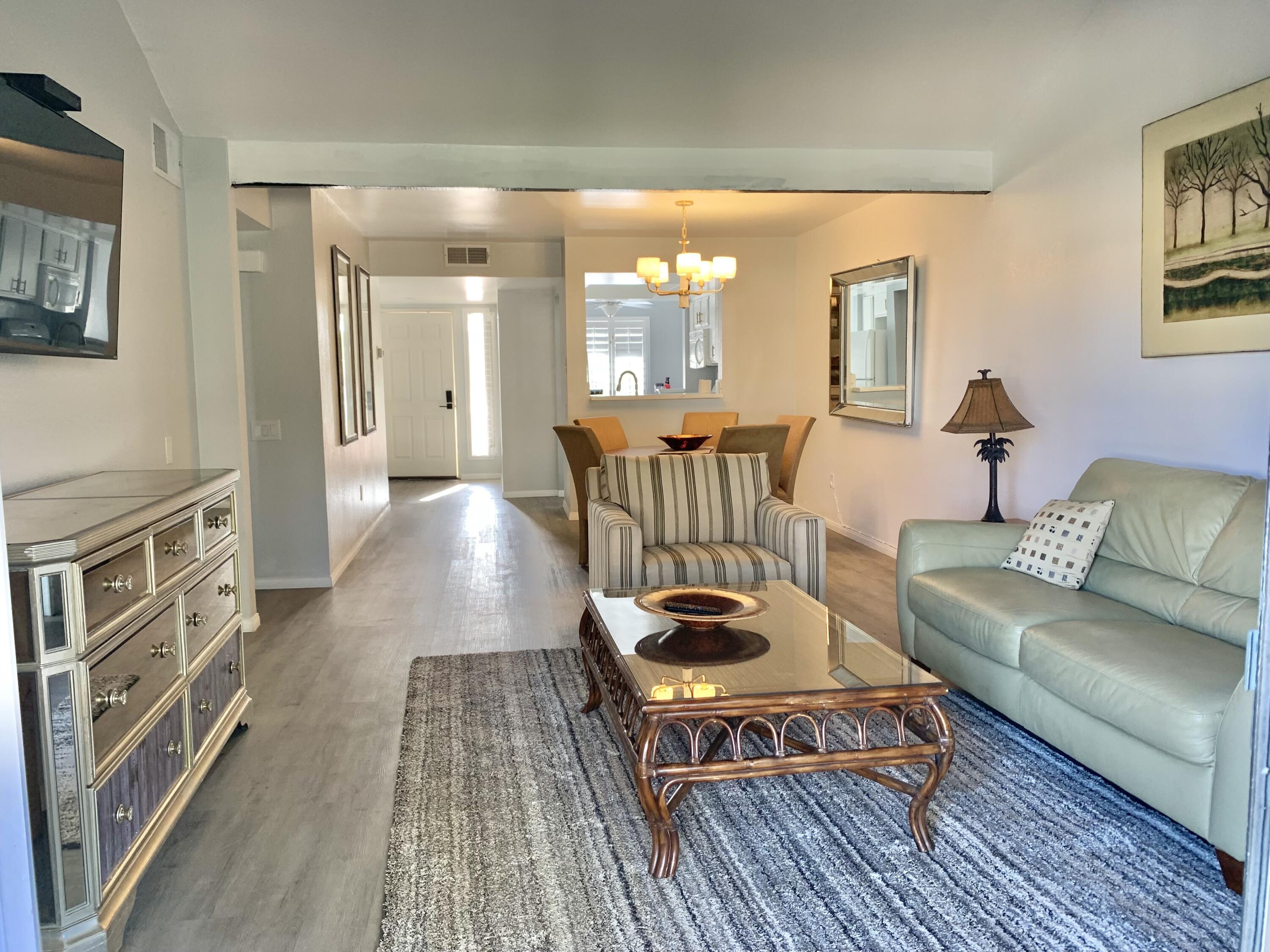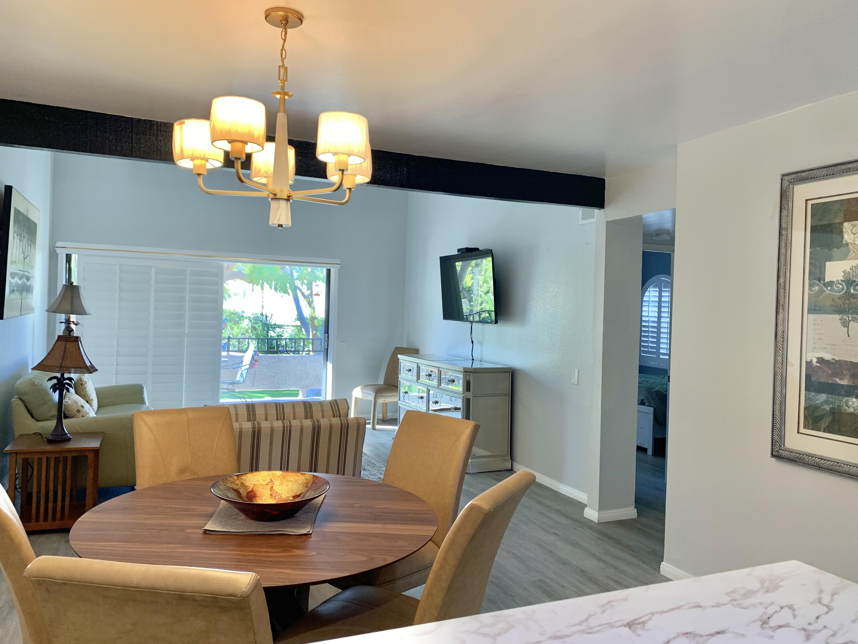 This condo is great for a second home to get away from the cold in the winter, a new full-time residence or a vacation rental to generate some income while using it as an occasional get-away. This Modern, newly renovated, upstairs, 2 br2bh 1 car garage condo is 1225 Square feet with a beautifully lush mountain View. The unit has 2 Master Suites featuring newly remodeled private bathrooms. The condo includes high vaulted ceilings, a large private balcony to enjoy the gorgeous view of the mountains and the property, and new quartz countertops in the large kitchen with a breakfast nook. Our Spanish-style villas spread across 27 acres of lush desert landscaping, located in a gated community across the street from the chic Parker Hotel. Enjoy easy access to 8 heated swimming pools, 9 hot tubs, 5 tennis courts, bocce ball courts, pickle ball, basketball hoop, a fitness center, clubhouse, and free ample parking. The Oasis Resort lives up to it's name with a gorgeous garden setting throughout the property. We have onsite property management, landscaping and maintenance. The exterior was just painted this month and the roof were done over the last 5 years. HOA dues cover most everything except gas, electric and WIFI. Water, trash, sewer, landscaping, maintenance on the pools, spas, sports courts and all amenities, exterior maintenance & insurance, earthquake insurance on the structure all covered by the HOAInterested in this Listing?