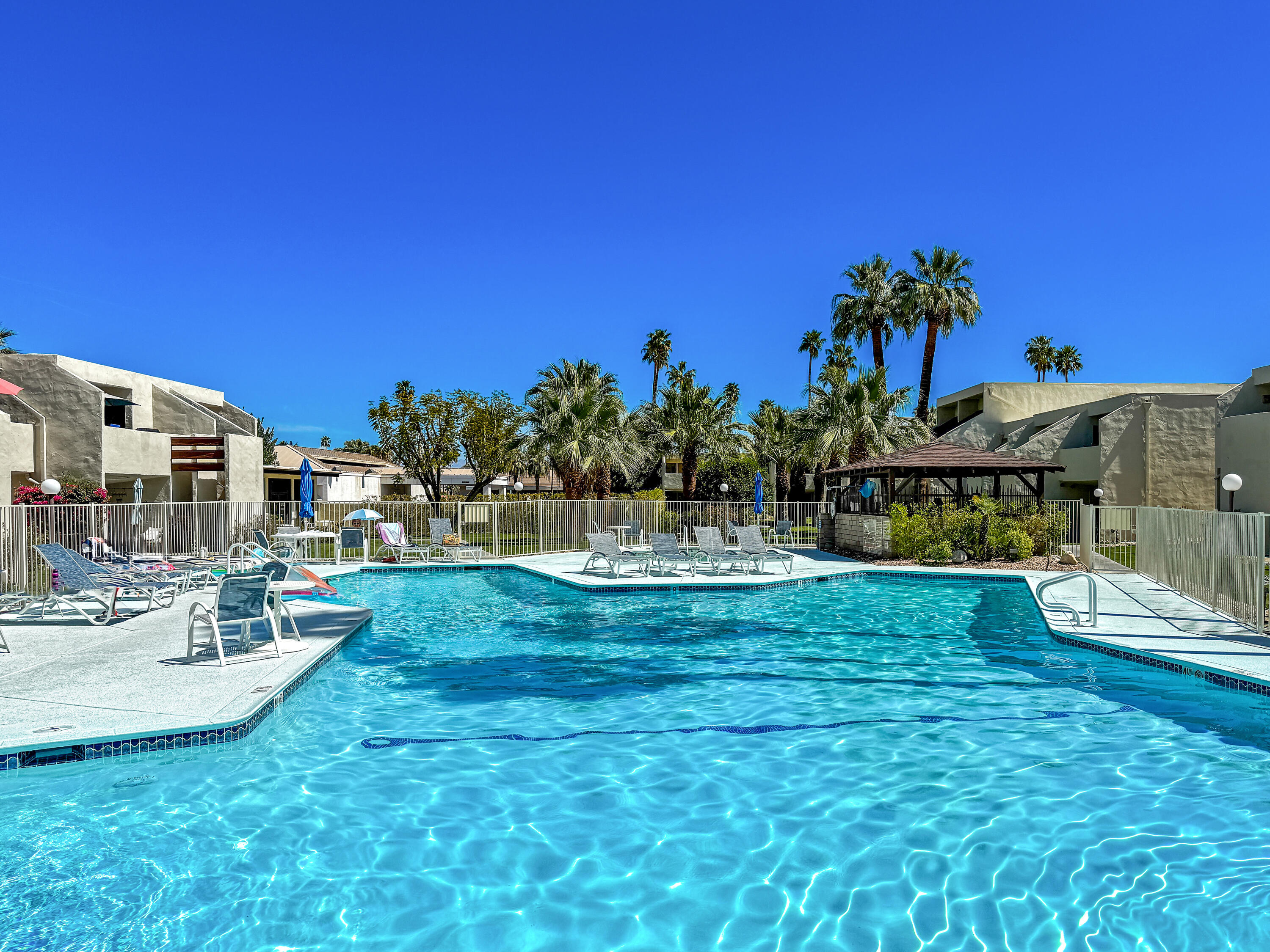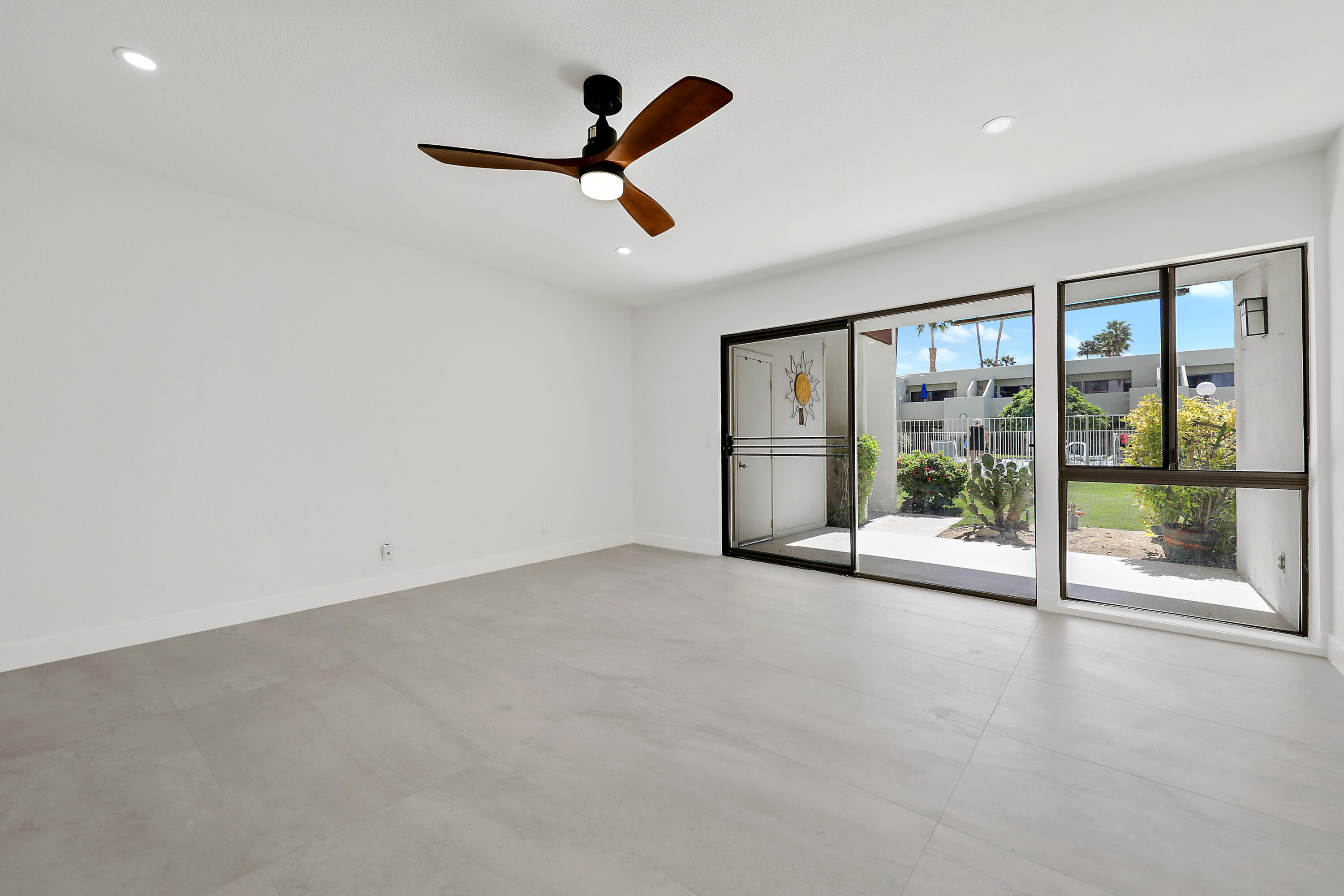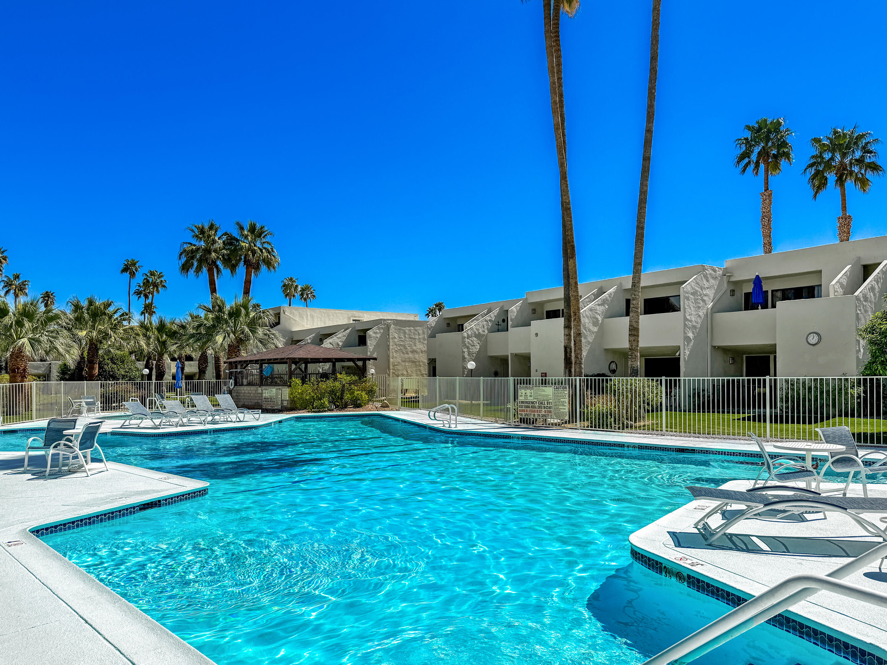 Fully Remodeled Modern 1-Bed/1-Bath Condo in South Palm Springs. This ground-level corner unit at SmokeTree Racquet Club features a sleek open floor plan with 24x48' porcelain tile throughout. The brand-new chef's kitchen includes custom European cabinets, white quartz counters, a waterfall island, and Maytag stainless steel appliances--perfect for cooking and entertaining.The spacious bedroom offers an in-closet washer/dryer hookup and a ceiling fan. The updated bathroom includes a porcelain and marble tiled shower, European vanity, and modern fixtures. New recessed lighting and fresh paint add to the clean, contemporary look. Enjoy stunning sunset views from your private patio. The community offers resort-style amenities including a pool, spa, and 4 tennis/pickleball courts with mountain views. Conveniently located across from the SmokeTree shopping center (Ralph's, Starbucks, Native Foods, more) and just minutes from downtown Palm Springs. With a low HOA and reasonable land lease, this turnkey condo is ideal as a first home, second home, or investment property. Schedule your showing today!Interested in this Listing?