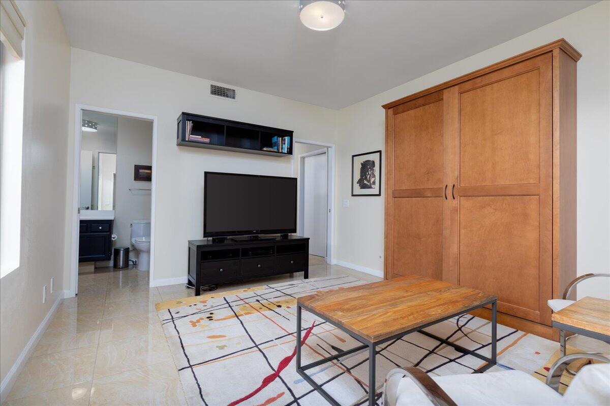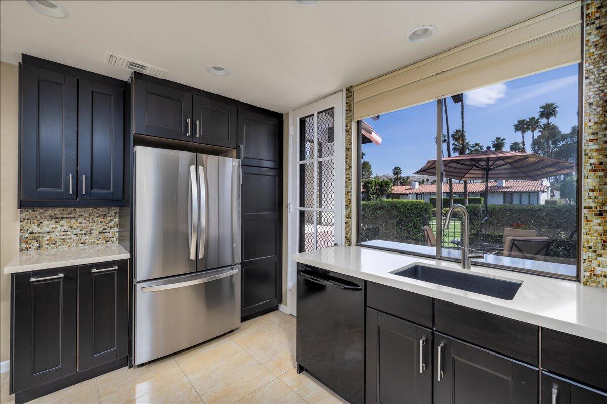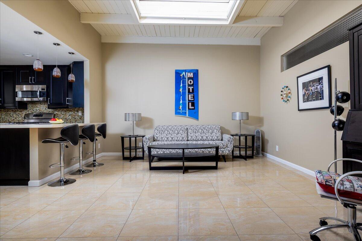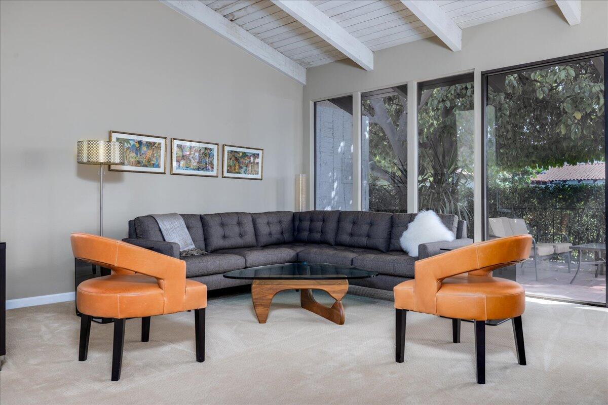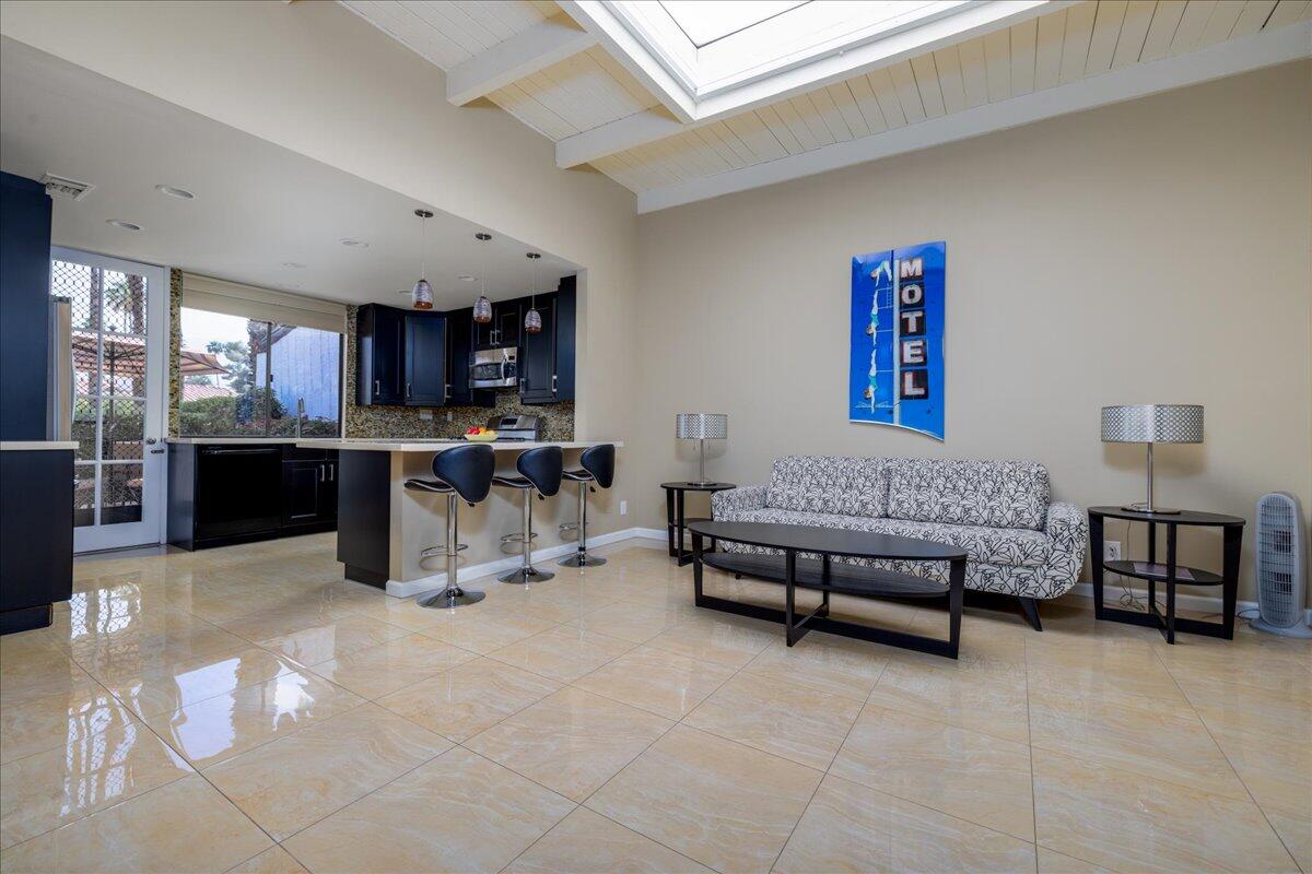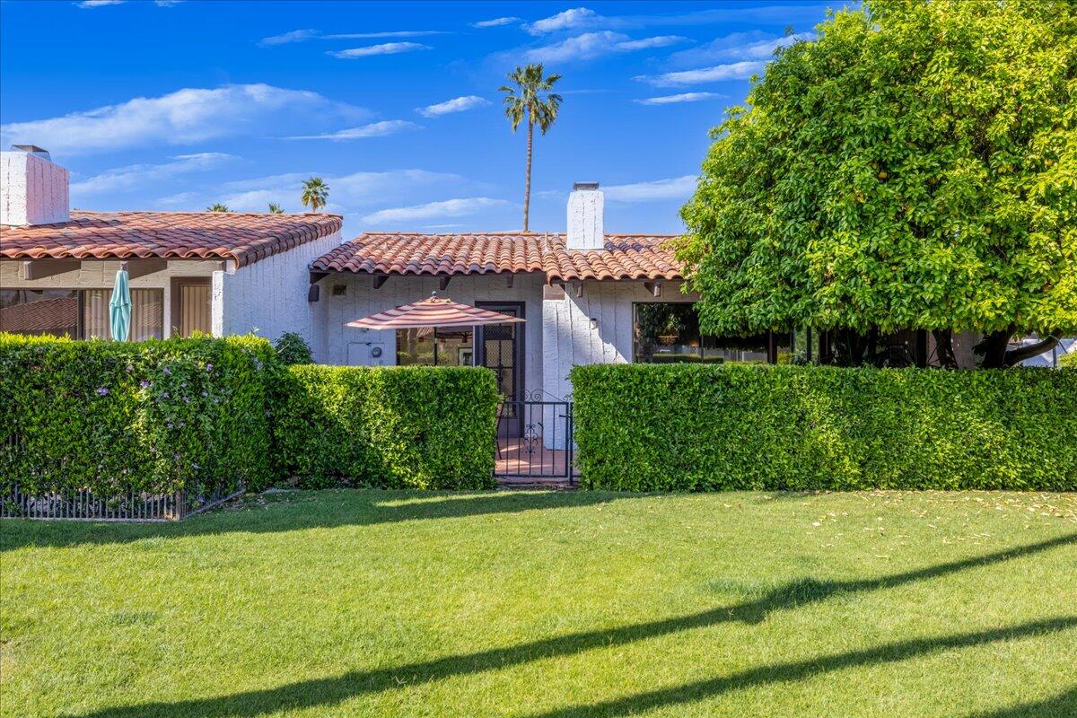 Your South Palm Springs Sanctuary Awaits! Nestled in the heart of Deepwell Ranch, this stunning 2-bedroom, 2-bath corner unit offers the perfect blend of luxury, comfort, and convenience. Just steps from the pool and spa, this home boasts breathtaking southwest mountain views along a lush greenbelt, creating a serene and picturesque backdrop from your private patio. Inside, you experience the spaciousness of vaulted wood-beamed ceilings and the warm ambiance of a fireplace, making the living area perfect for both elegant entertaining and relaxed everyday living. The open floor plan bathed in natural light, showcases an updated kitchen that flows seamlessly into the spacious family/dining room. The primary suite is a true retreat, enhanced with solar tubes and recessed lighting. It features custom closets and a spa-inspired bathroom with quartz countertops, twin sinks, and a full-length mirror. A separate soaking tub and the glass mosaic walk-in shower create a luxurious spa-like escape. The versatile guest bedroom features a Murphy bed, making it ideal as a bedroom or office. It offers access to a stylish bathroom with a glass mosaic-tiled shower and doubles as a powder room for hosting visitors. Every detail has been thoughtfully upgraded, including windows coated with film for privacy and passive temperature control that fills the space with soft, natural light. Stepping outside to your spacious back patio; the perfect spot for morning coffee, sunset cocktails, or summer barbecues, while taking in the breathtaking views. Within the patio you can either enjoy the cooling shade from the mature grapefruit tree or the warmth of the brilliant sun. As part of Deepwell Ranch, you'll enjoy resort-style amenities, including three saltwater pools and spas, tennis court, pickle ball courts, and 24-hour manned security--all within a meticulously maintained, gated community. The attached 2-car garage with epoxy floor and built-in cabinets adds convenience and ample storage.Interested in this Listing?