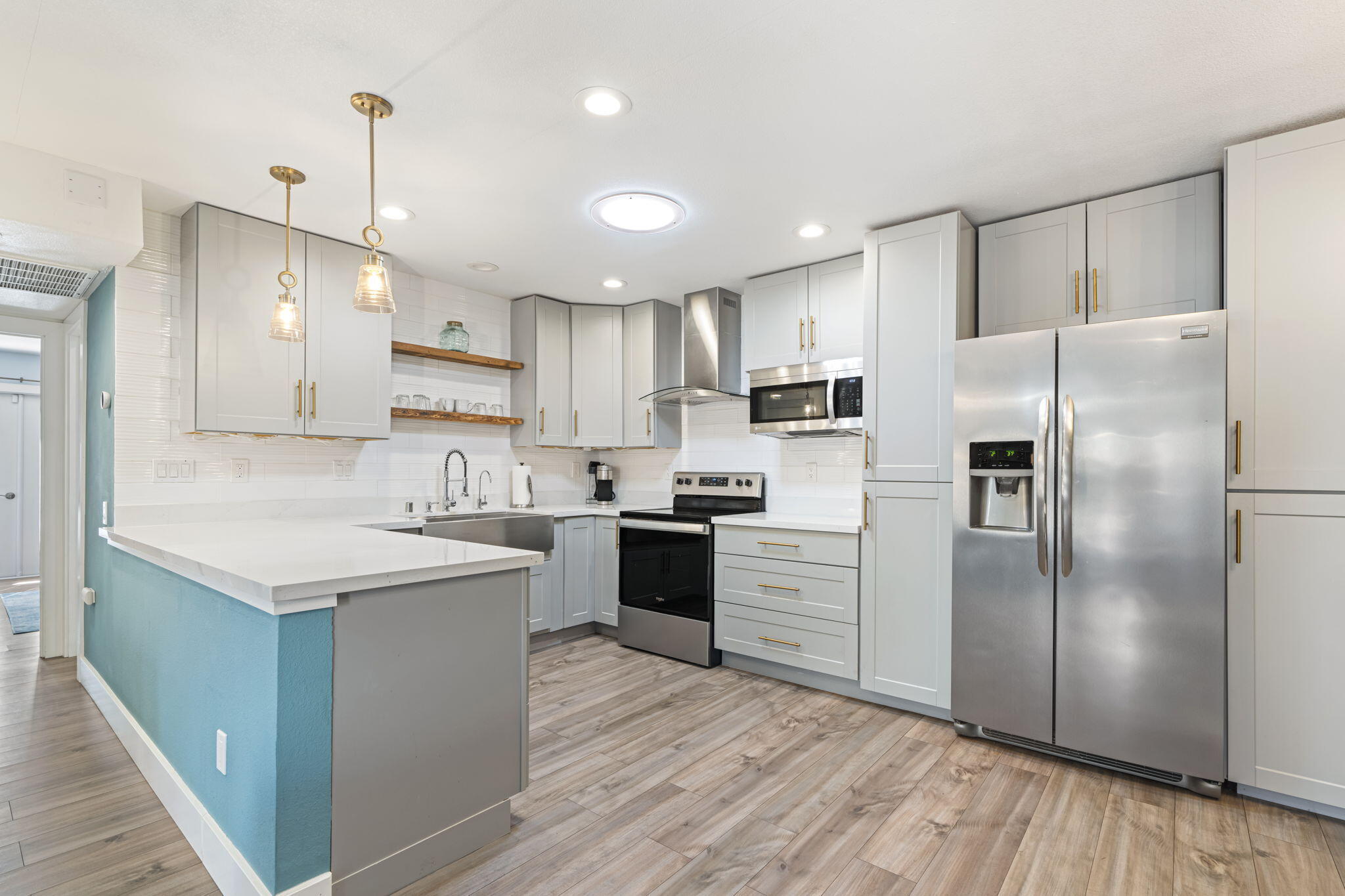 PRICE REDUCTION! Buyers are anxious to sell and willing to consider all offers. This is a fully refinished 2 bedroom. Refinished in the last 3 years with all of the latest finishings that people want! Quartz countertops throughout and beautiful, durable, heavy vinyl laminated flooring. This unit offers lots of light with added sky lights. Updated recessed lighting throughout. A backlight mirror in the bath. Tiled walk in shower. Updated appliances. The exterior space offers a larger than average outdoor living space with an outdoor dining area and a special space shaded by mature fruit trees that only need a beret, bottle of Rose and a bad french accent to complete your imagined life in the south of France.BEING SOLD COMPLETELY FURNISHED!A gate off the outdoor space leads directly out to a large, park like area for dog walking and access to the tennis courts and pickle ball.Interested in this Listing?
