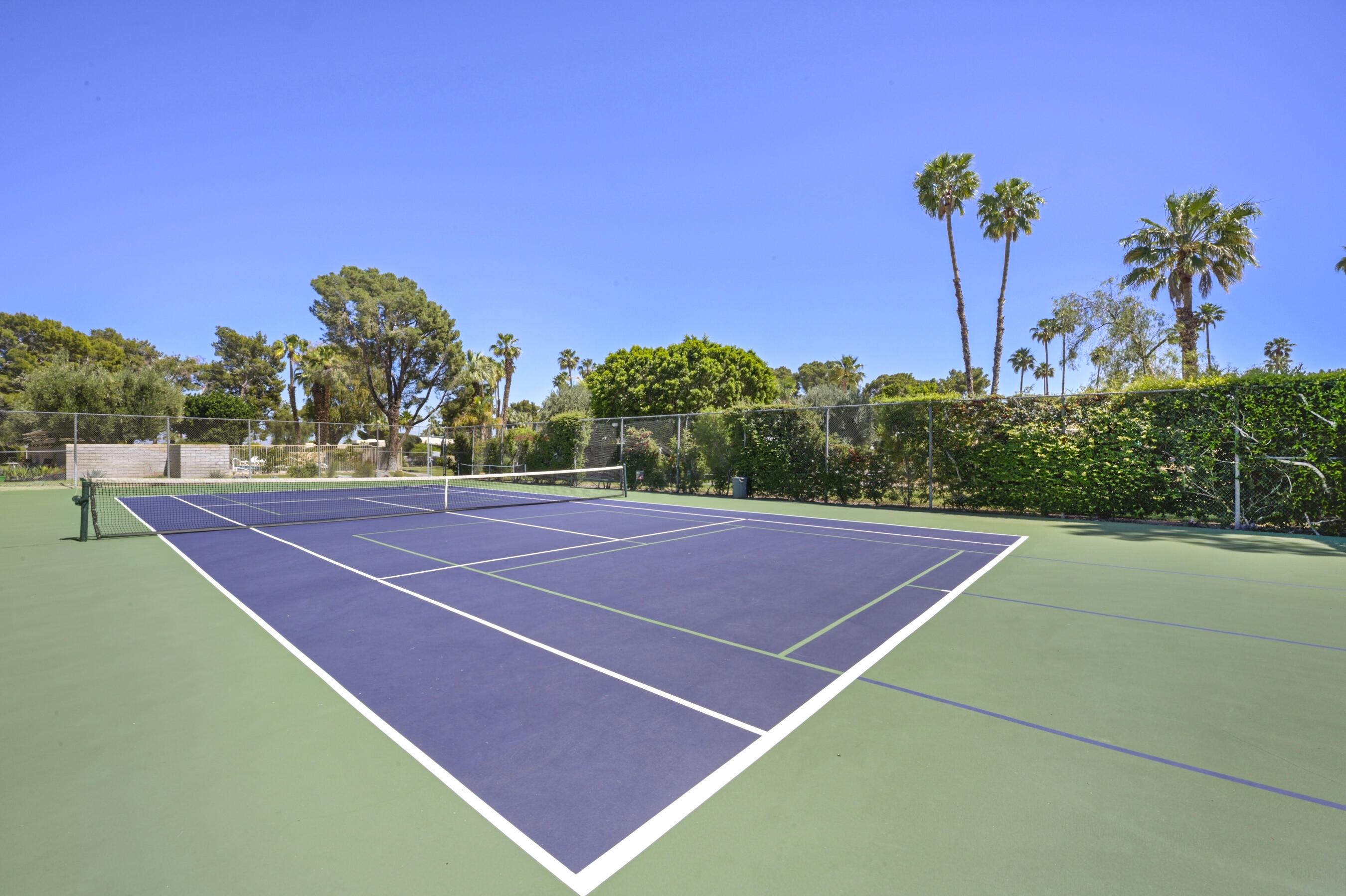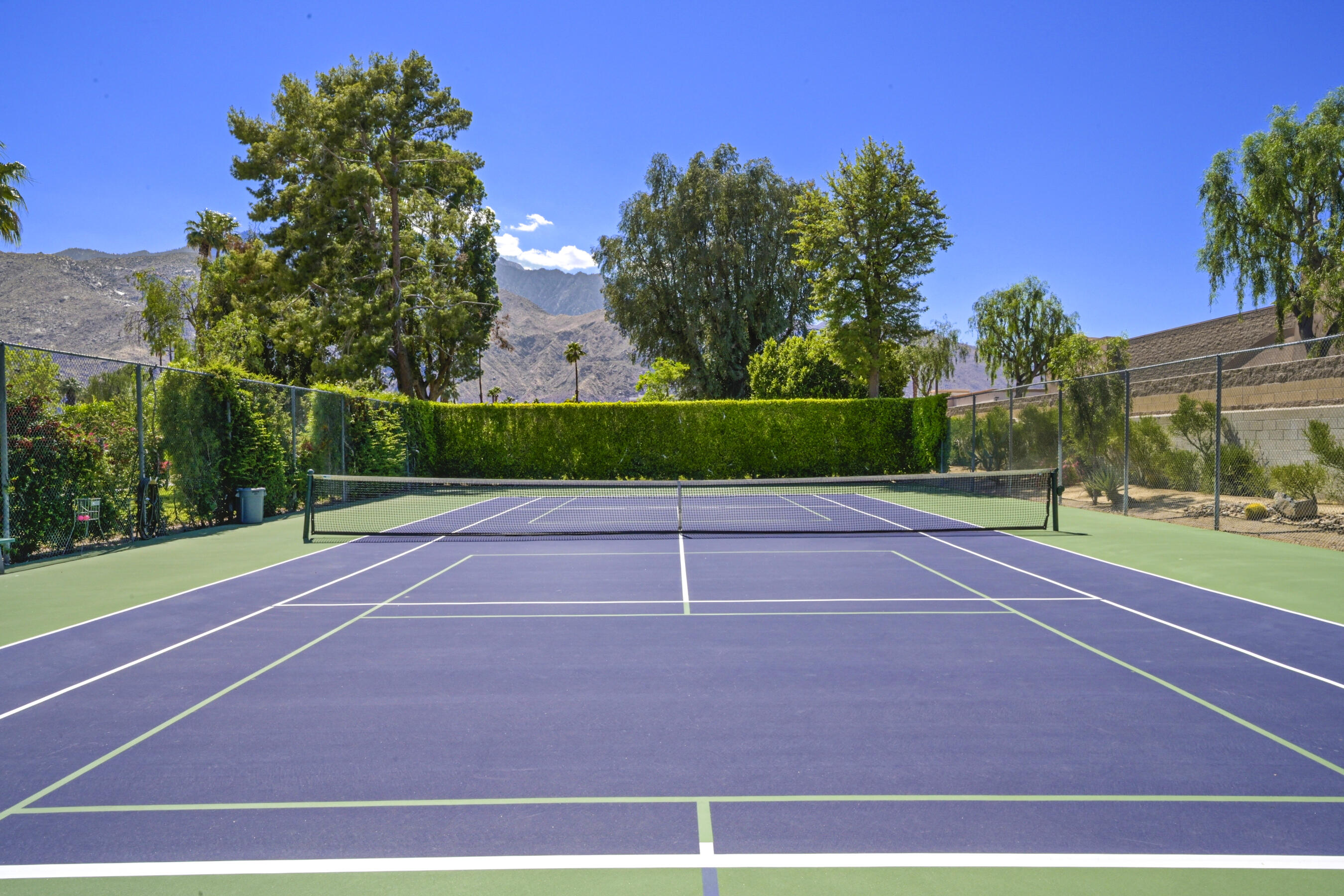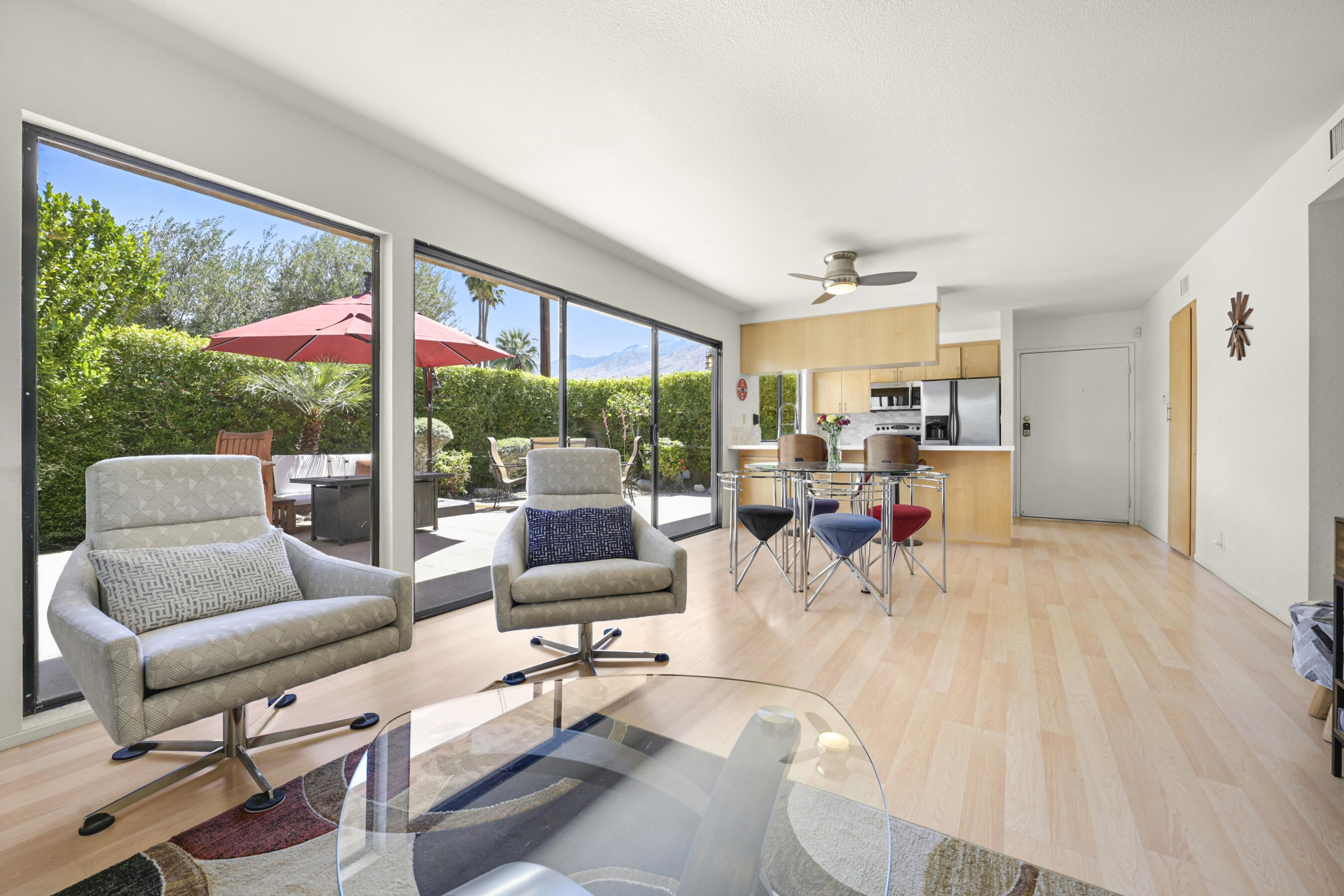 Stylish Desert Living in a Donald Wexler-Designed Home. Enjoy the privacy of a single-family home with the convenience of a condo in this architecturally significant 1,050 sq. ft. end-unit residence at Sagewood--designed by legendary modernist Donald Wexler. Situated on a premium lot within one of Palm Springs' most iconic communities, this rare offering captures the essence of mid-century design with timeless appeal and effortless indoor-outdoor flow. This 2-bedroom, 2-bathroom home is thoughtfully designed to maximize natural light, privacy, and livability. The spacious open-concept living, dining, and kitchen area is ideal for entertaining and everyday living. The kitchen features new white quartz countertops, a modern sink, and a breakfast bar, blending style, convenience, and functionality. Floor-to-ceiling windows and expansive glass sliders in the living room invite the outdoors in, opening to a private, south-facing lush garden patio with spectacular mountain views. Adorned with a gorgeous hedge, this serene outdoor space offers natural beauty, privacy, and a perfect setting for relaxation or entertaining guests. The primary bathroom has been fully remodeled, offering a luxurious spa-like experience with high-end finishes and thoughtful design. Additional highlights include an attached garage, an extra-long driveway for convenient guest parking, and prime end-unit positioning that enhances privacy and quiet enjoyment rarely found in condo living. The home is being sold furnished, offering a turnkey opportunity for full-time residents, vacationers, or investors. Sagewood is a low-density, 18-acre community with only 108 homes--one-third of the site dedicated to open green space. The landscaping is lush and meticulously maintained, featuring mature desert trees, vibrant flora, and expansive greenbelts. Community amenities include three sparkling pools with spas and a newly upgraded pickleball/tennis court, professionally installed by the same company that crafInterested in this Listing?
